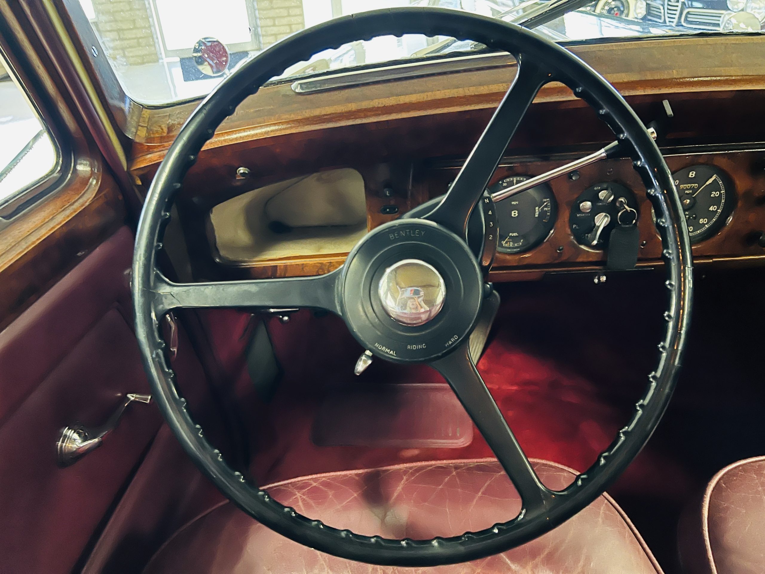 This Bentley was custom ordered in December of 1953 and was delivered to its original owner in the Middle East in March of 1954. Special features were added to accommodate the climate and conditions of the region. The suspension was tailored for maximum shock damping and springing. The roof was padded with extra insulation for the high temperatures. A heavy-duty air cleaner was added to manage the dust from the roads. Sundym glass was installed throughout to reflect the sunlight and keep the inside of the car cooler.