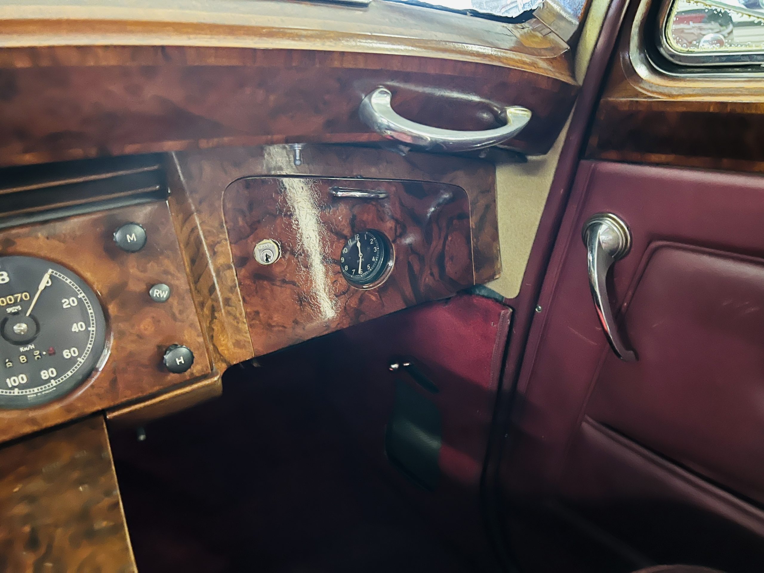 This Bentley R-type features the later larger displacement 4.6 liter straight six with twin SU carburetors, dual exhaust, and can accomplish speeds of over 100 mph and maintain speeds of 70-80 mph on the highway. Mechanically this Bentley is in sound running condition. The car’s 4-speed automatic transmission shifts smoothly and easily and starts right up. For decades, this Bentley has been garaged and regularly maintained by certified Bentley Mechanics. The chassis and undercarriage are all in good condition, cleaned, detailed and free of rust.