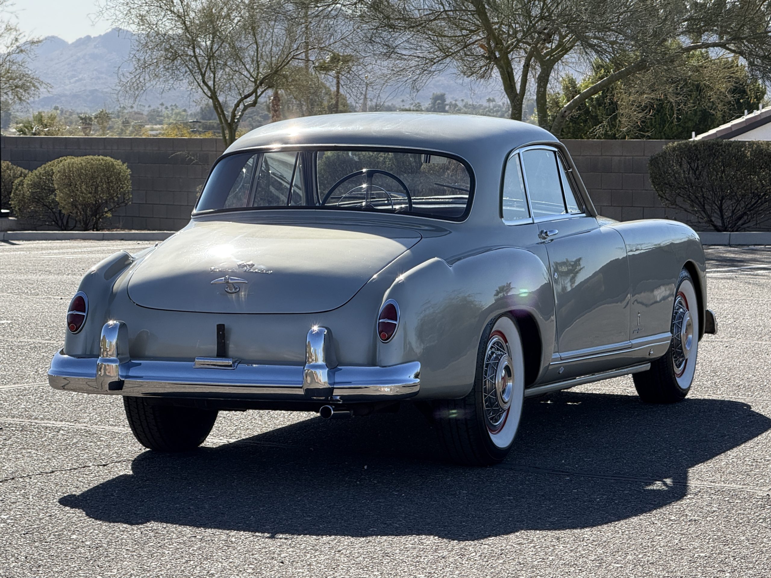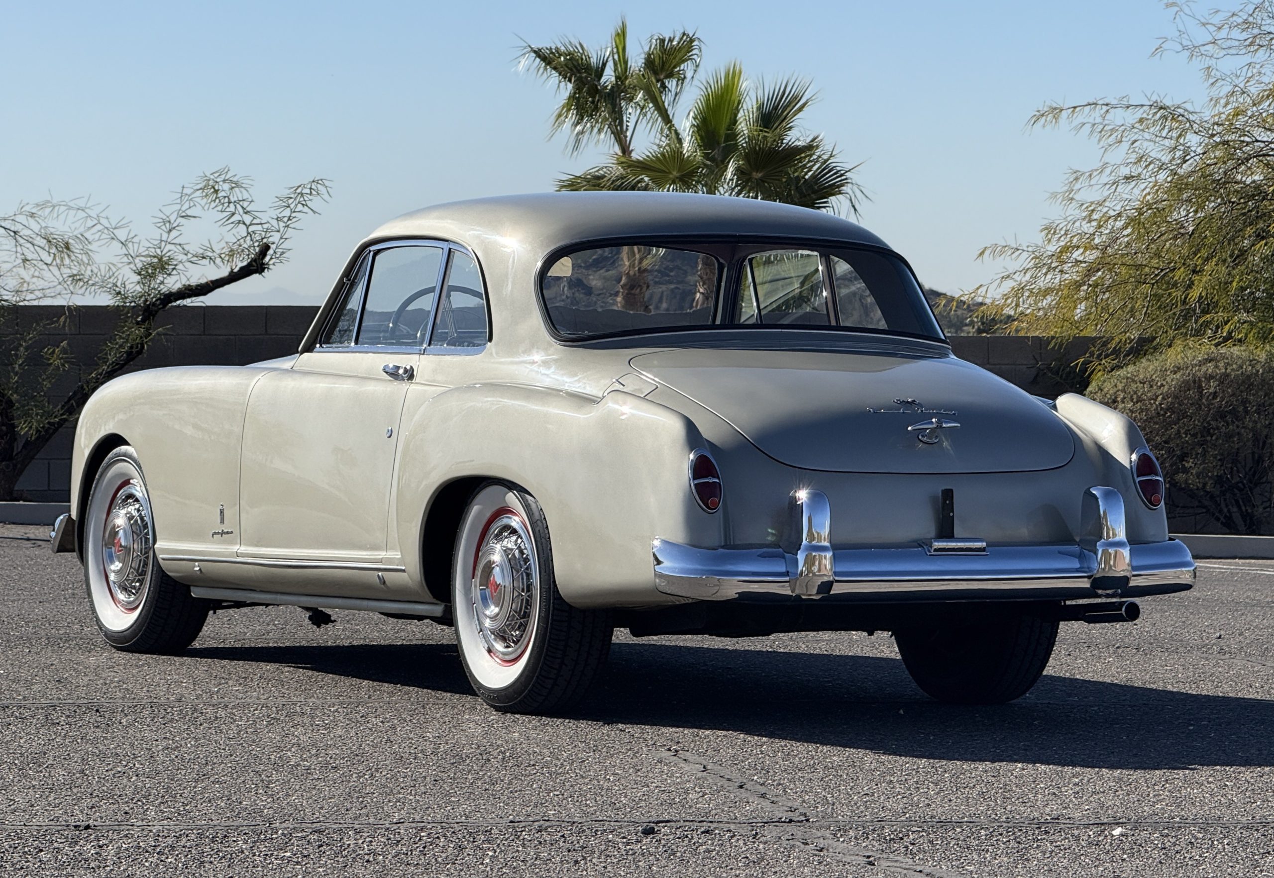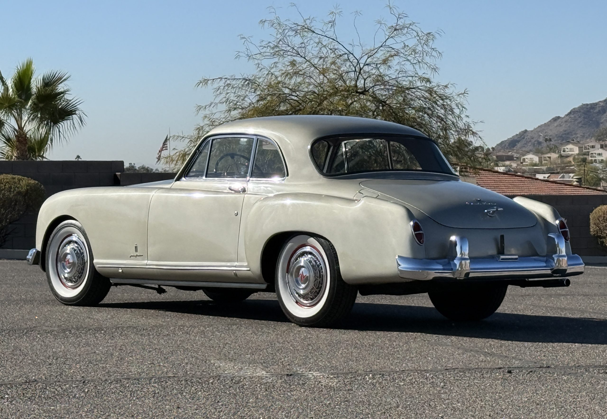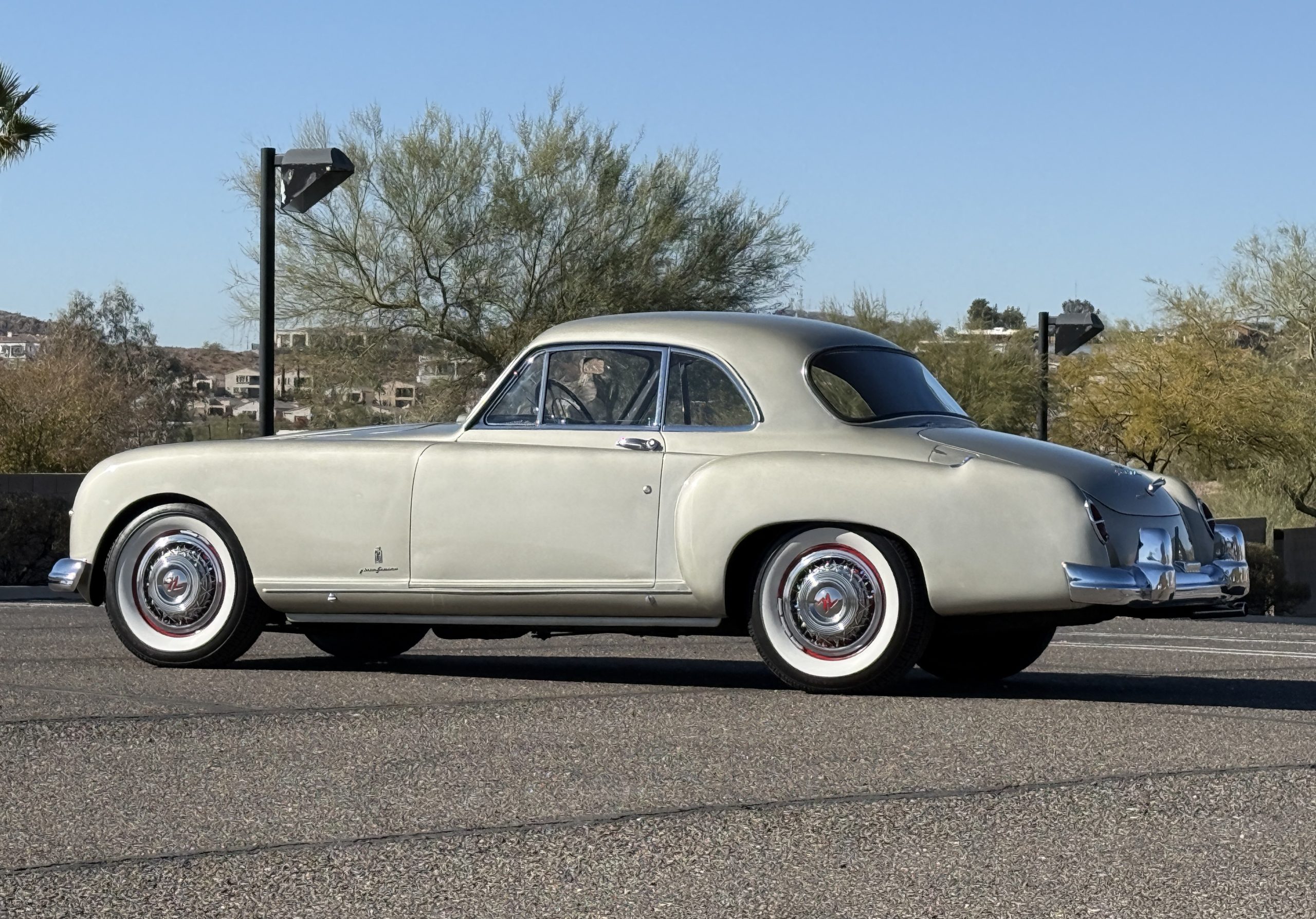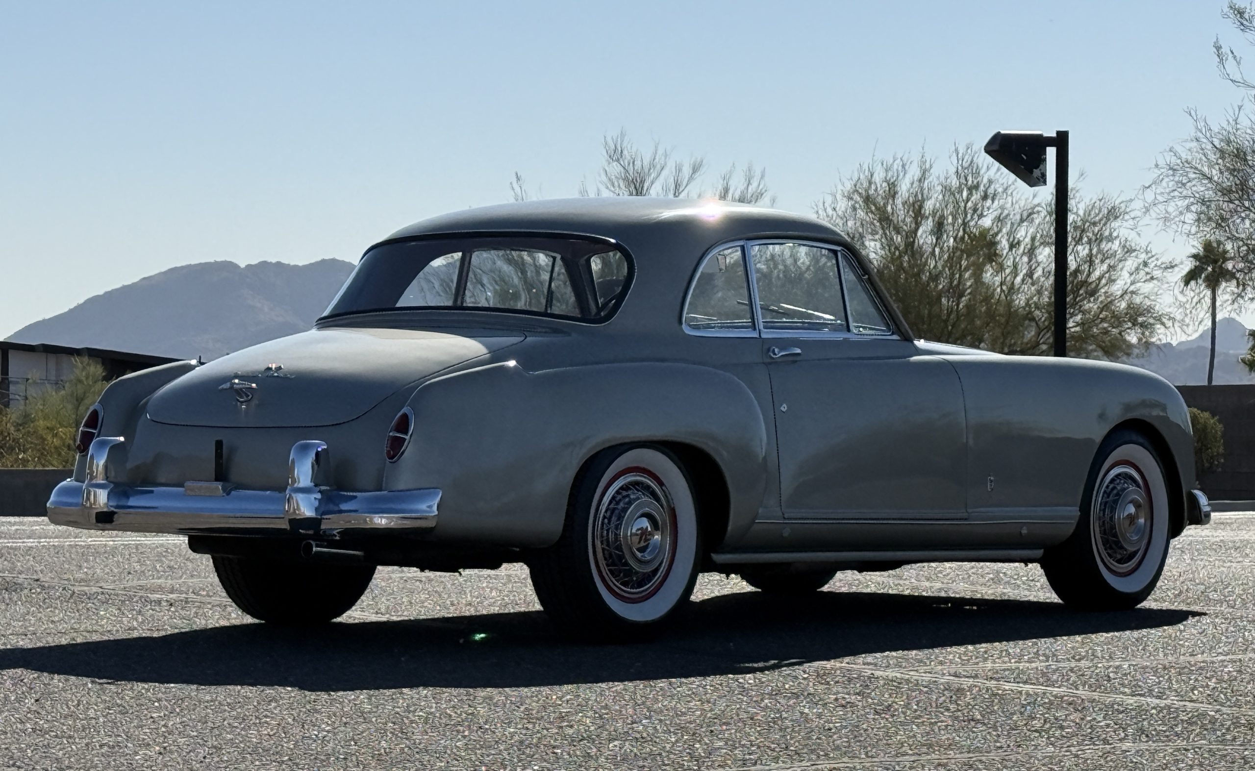 Featuring coachwork designed and fabricated by Pinin Farina of Turin, Italy, a Nash-Healey coupe was introduced alongside the roadster model for 1953. Named Le Mans to commemorate Leslie Johnson’s and Tommy Wisdom’s third-place overall finish in a race-prepped roadster at the 1952 French endurance race, the coupe features a 6″ longer wheelbase and 10″ longer body length compared with the open-topped variant. Approximately 90 Nash-Healeys were produced for 1954, its final year in production. All of them were Le Mans coupes.