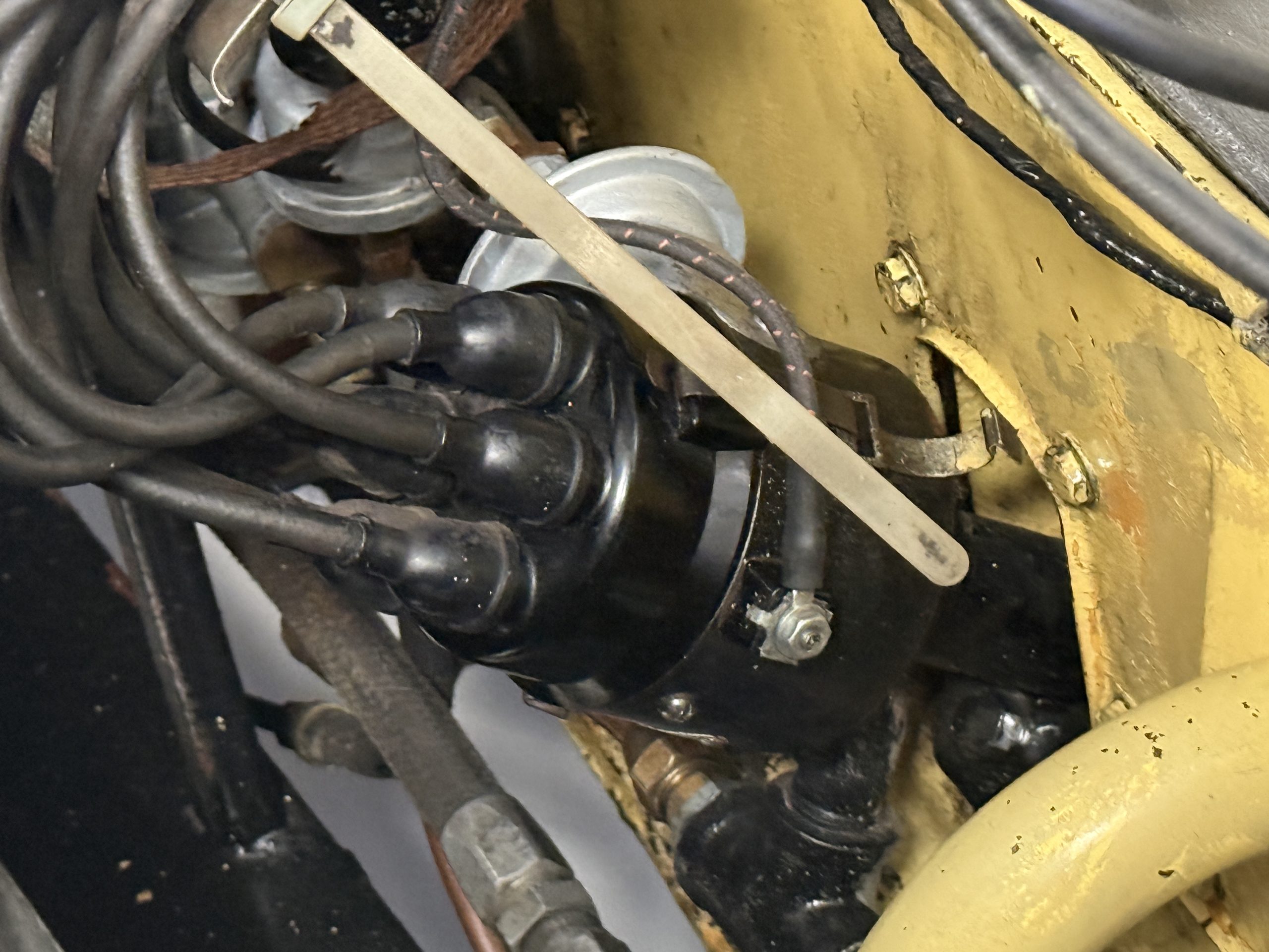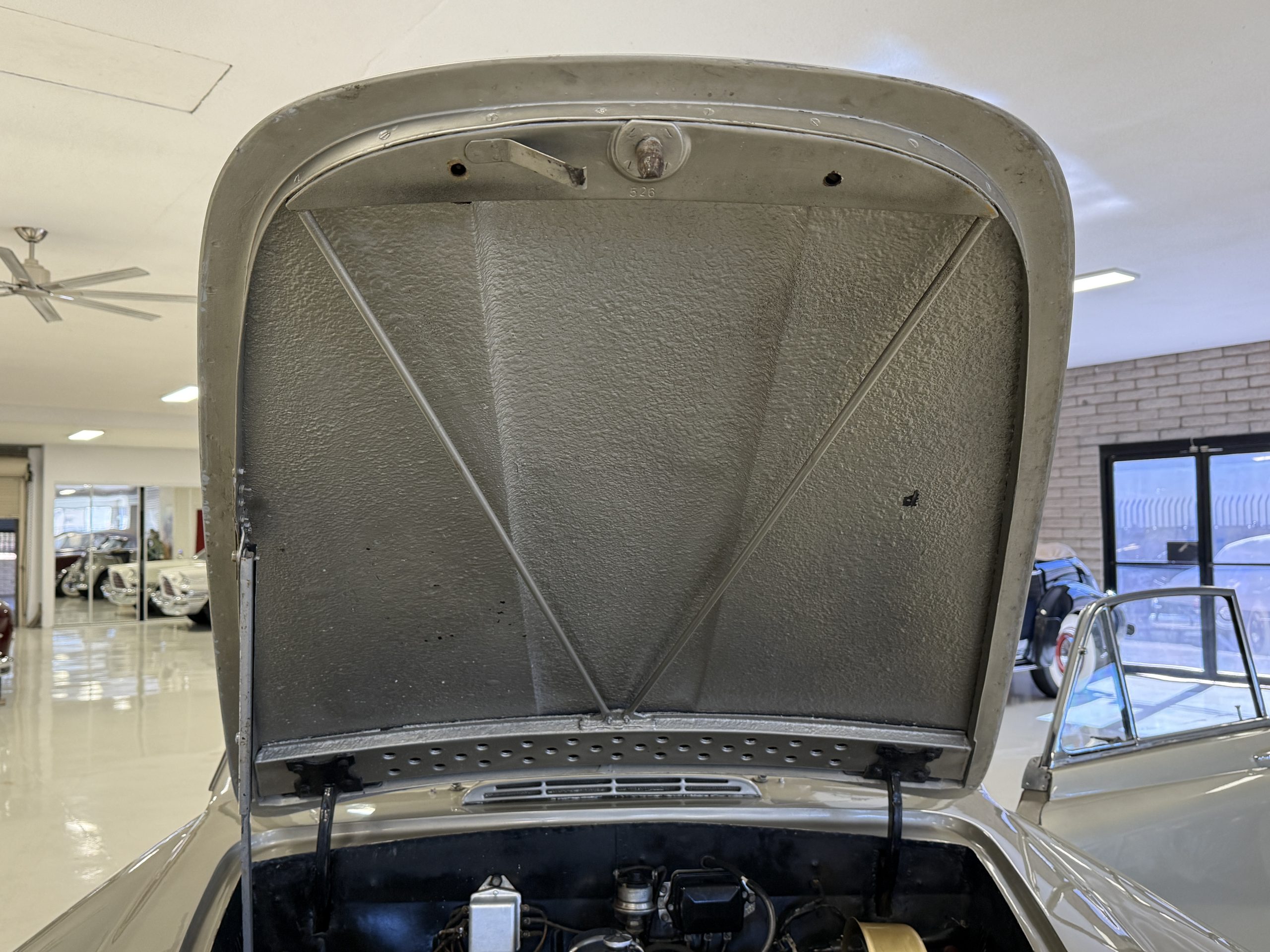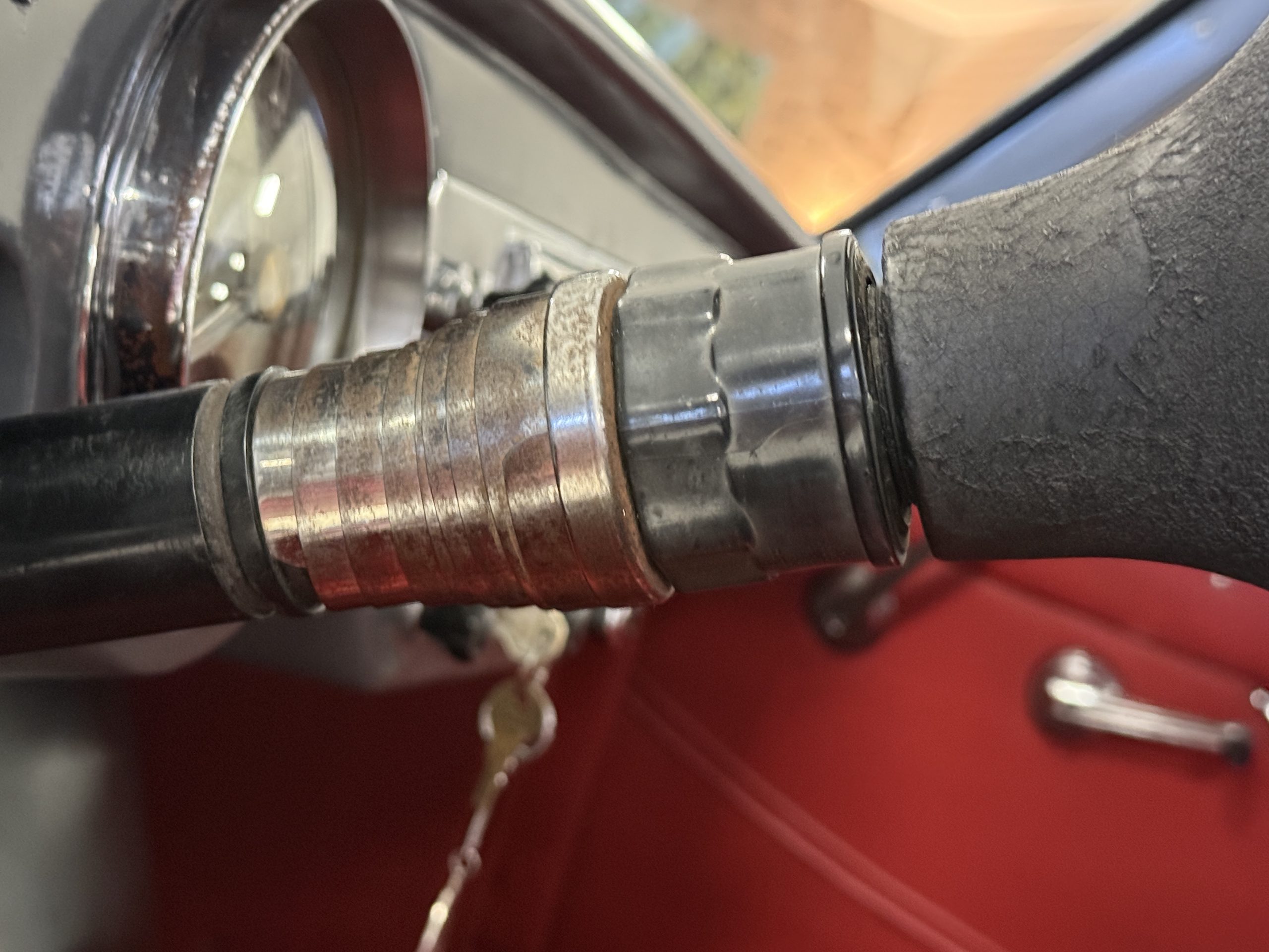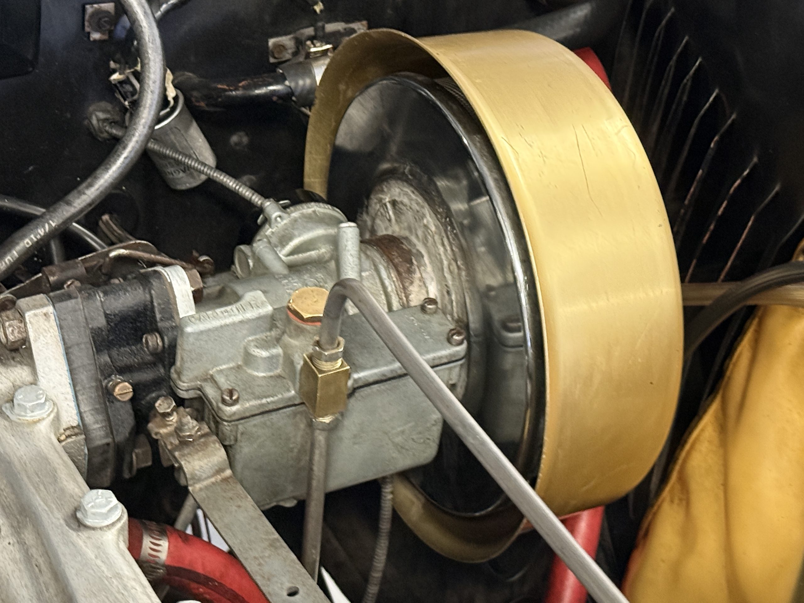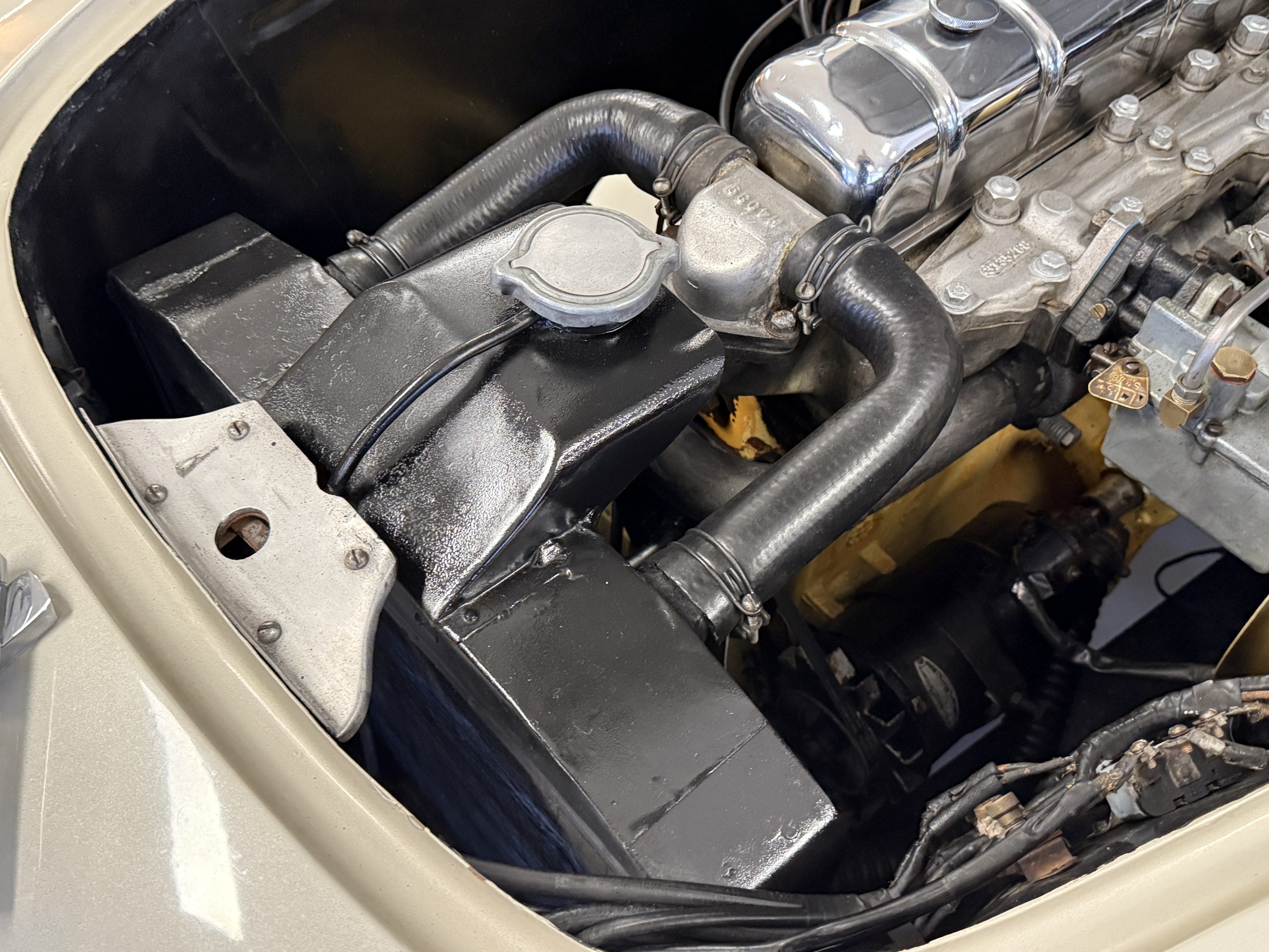 The “Le Mans Dual Jetfire” inline-six was increased in displacement to 252.6ci for 1952–1954 Nash-Healey production and was rated at 140 horsepower. The dual side-draft Carter carburetors were rebuilt in November 2024, and a valve adjustment was performed. Replacement spark plugs, engine mounts, fuel lines, a radiator cap, and an accessory belt were also installed at that time. Results from a recent compression test can be seen in the photo gallery below.