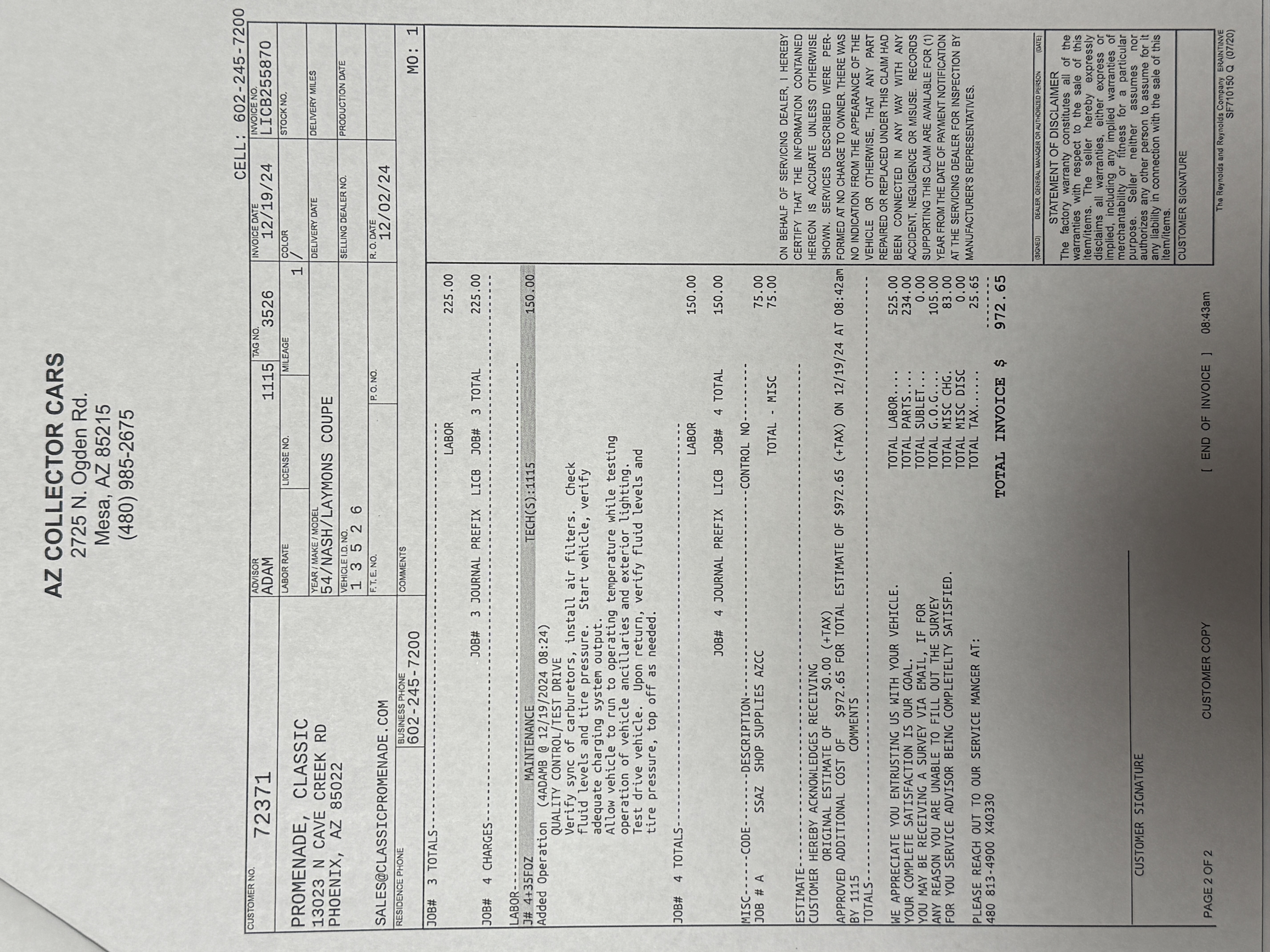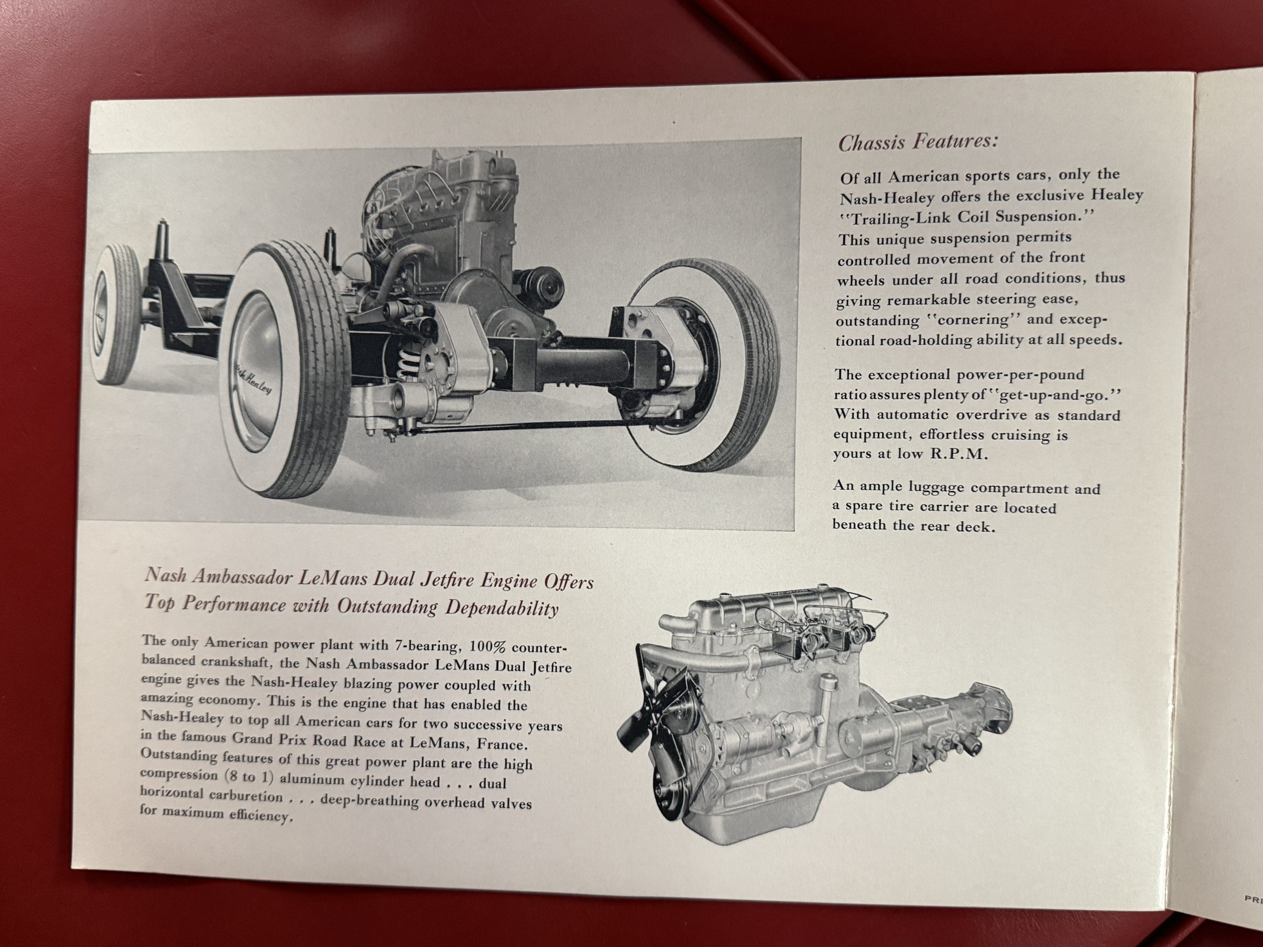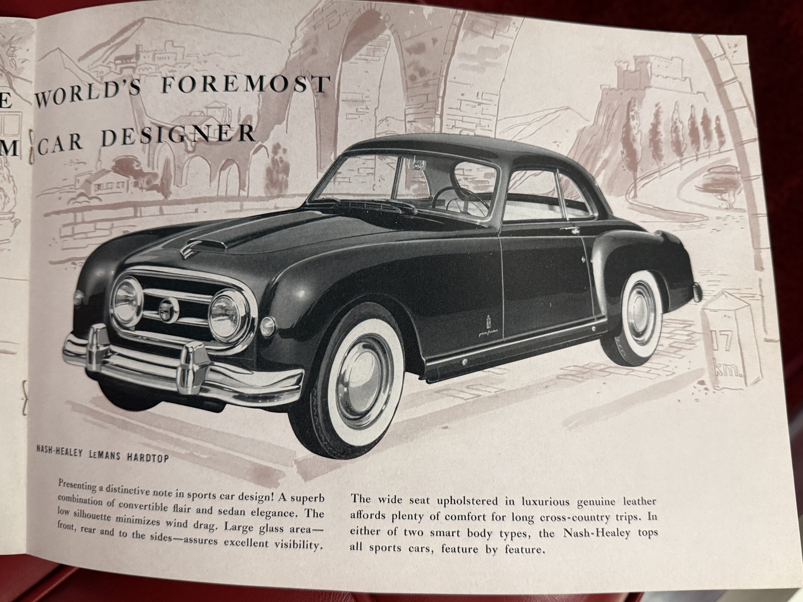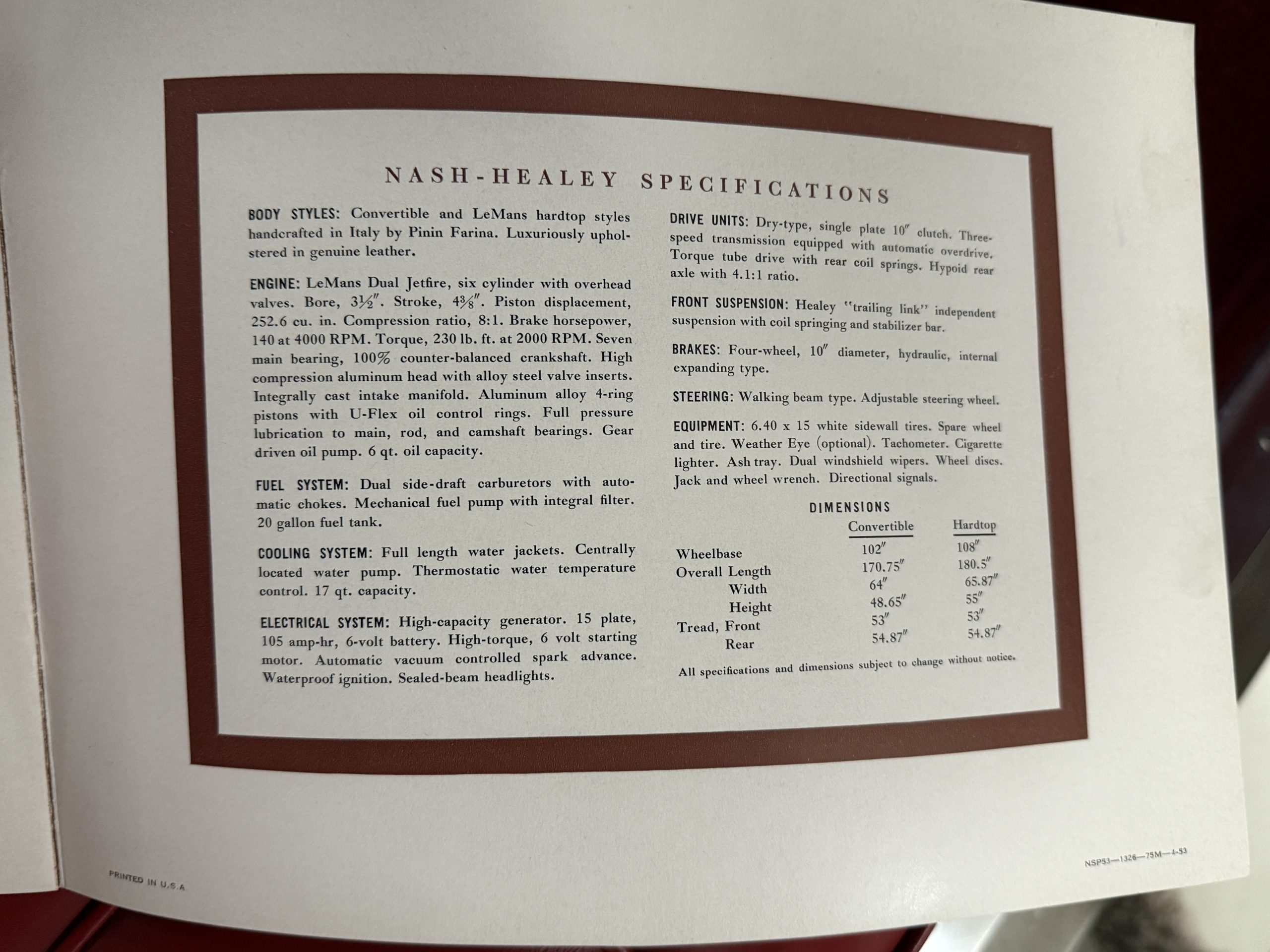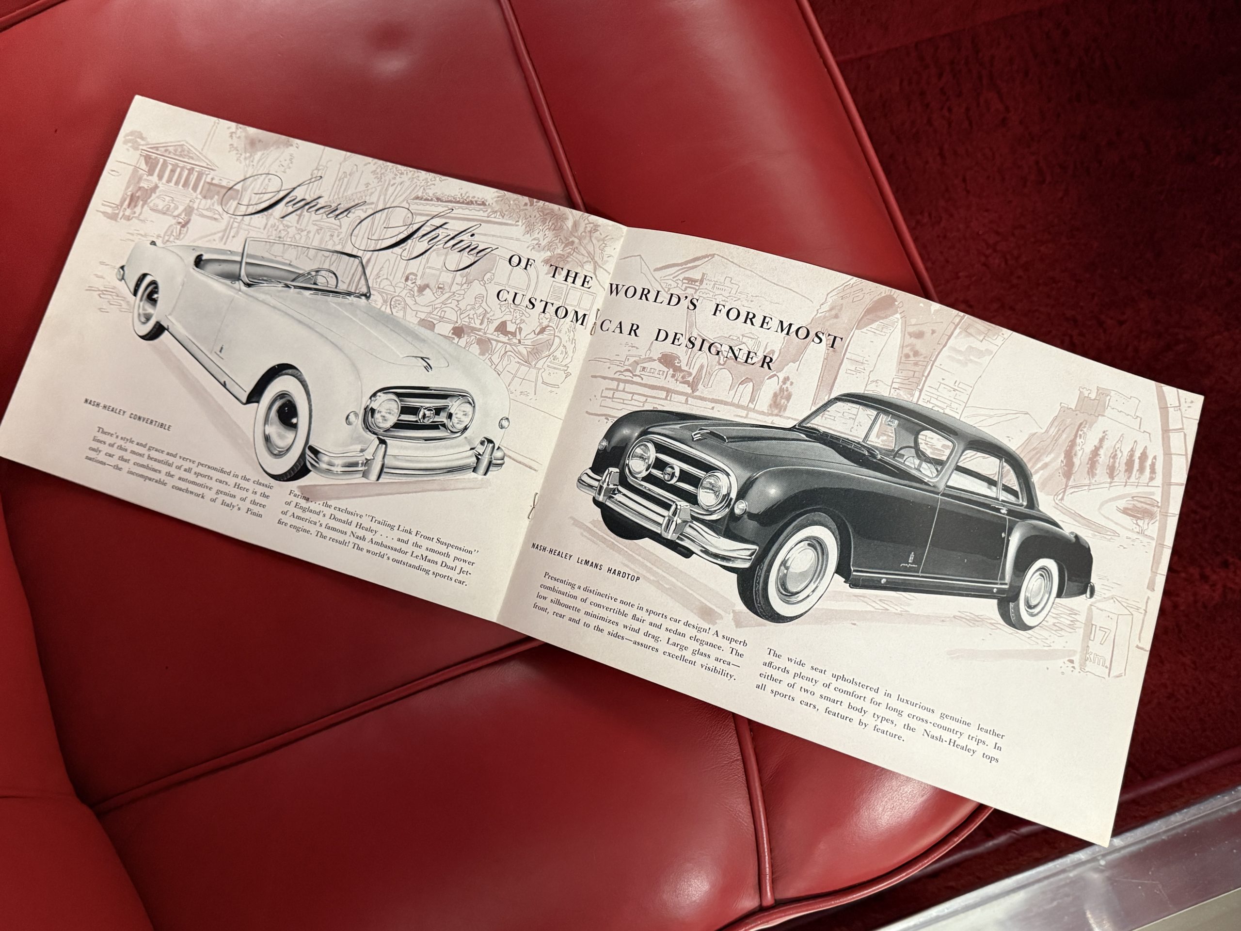 An owner’s manual, a Nash-Healey brochure, and a summary of the 1952 Le Mans race will accompany the vehicle, as pictured in the gallery along with service records from late 2024.