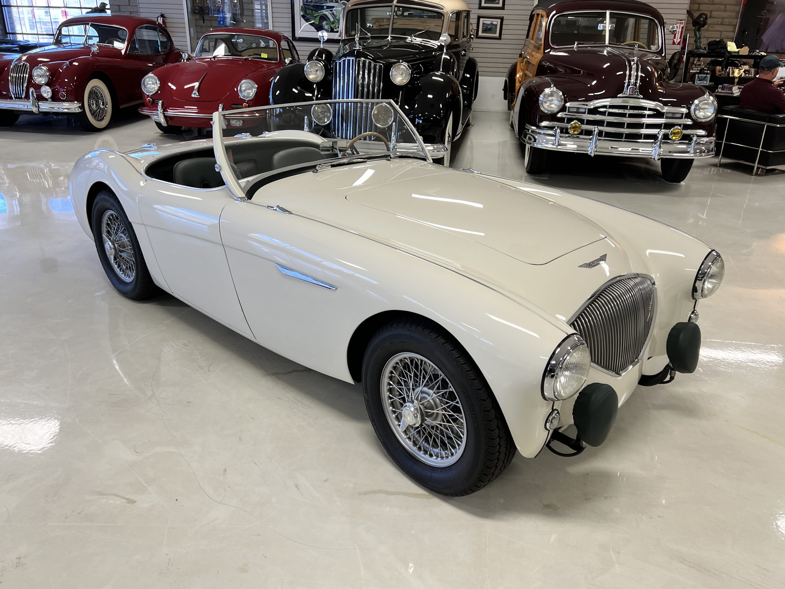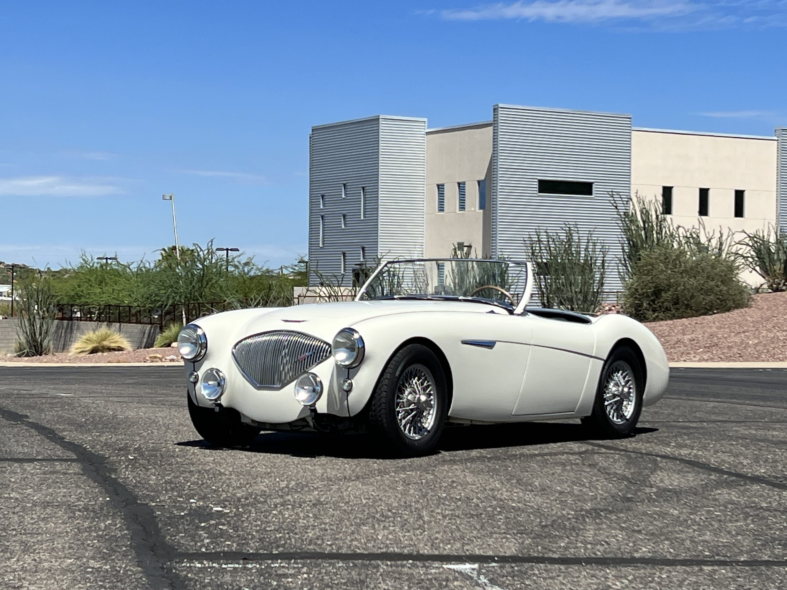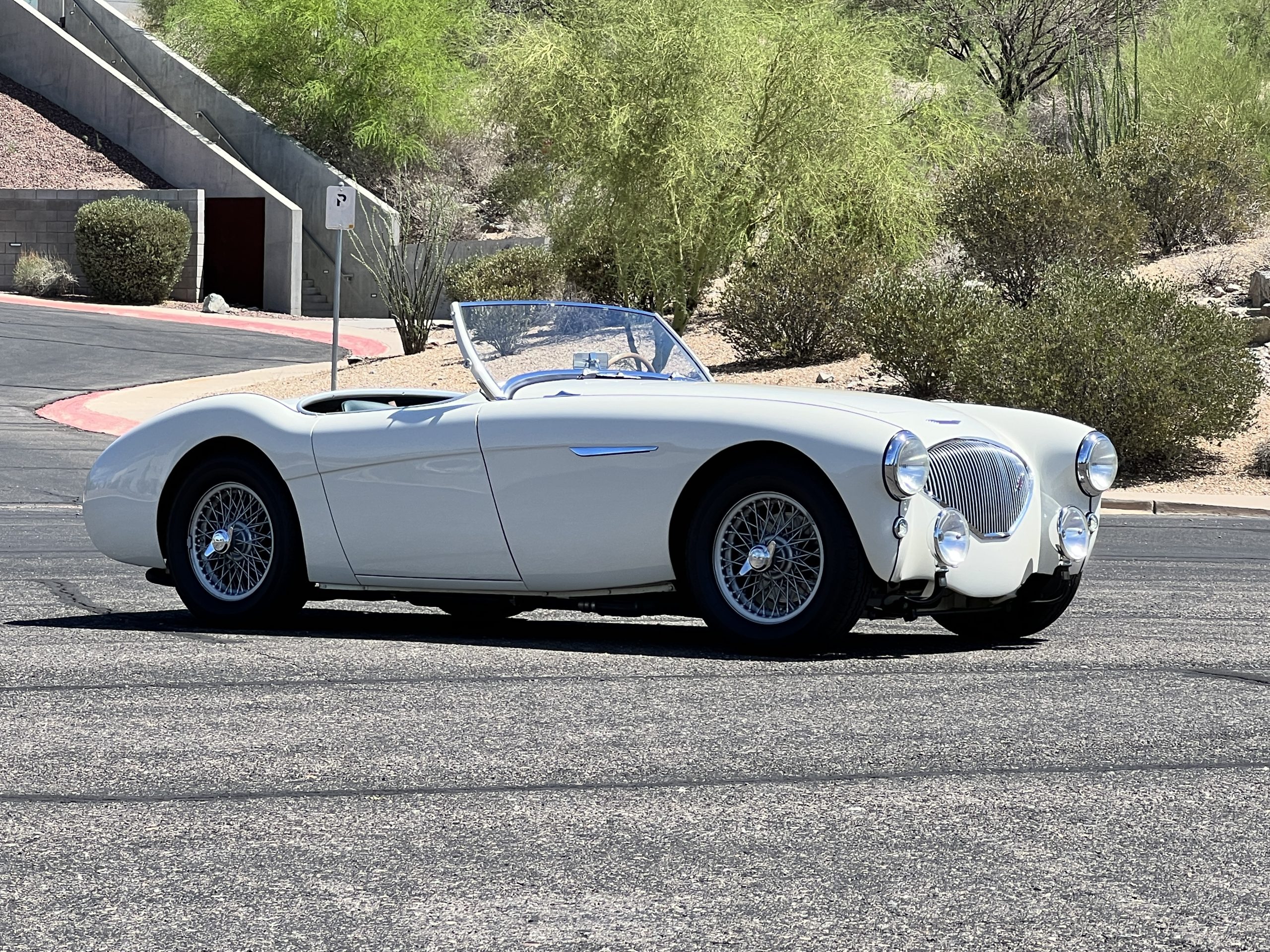 This Healey was acquired for restoration by Tom Kovacs at Fourintune about eight years ago. According to Tom, the Healey was found in the Pennysaver magazine offered for sale by Michael Hagerty. Tom kept the Healey as a base for a full-restoration. In about 2016, the present owner and Tom set out on this faithful Tribute to the legendary Austin-Healey 100S. The restoration was completed by December 2019 for the current owner, Gary Lumsden of Paradise Valley, AZ. Mr. Lumsden has added about 3,500 miles since then. Having driven this 100S Tribute ourselves, it is fast and a blast to drive!