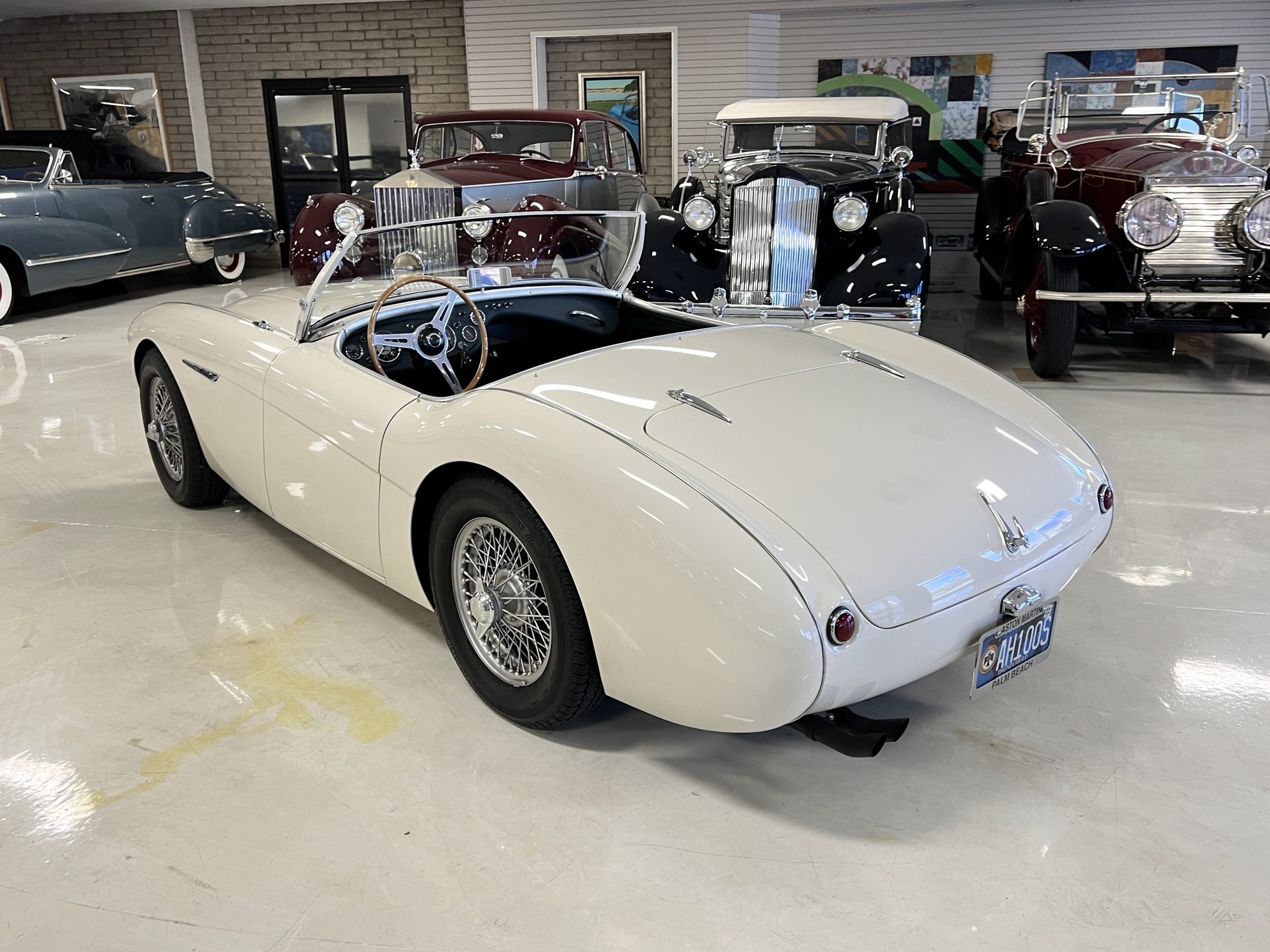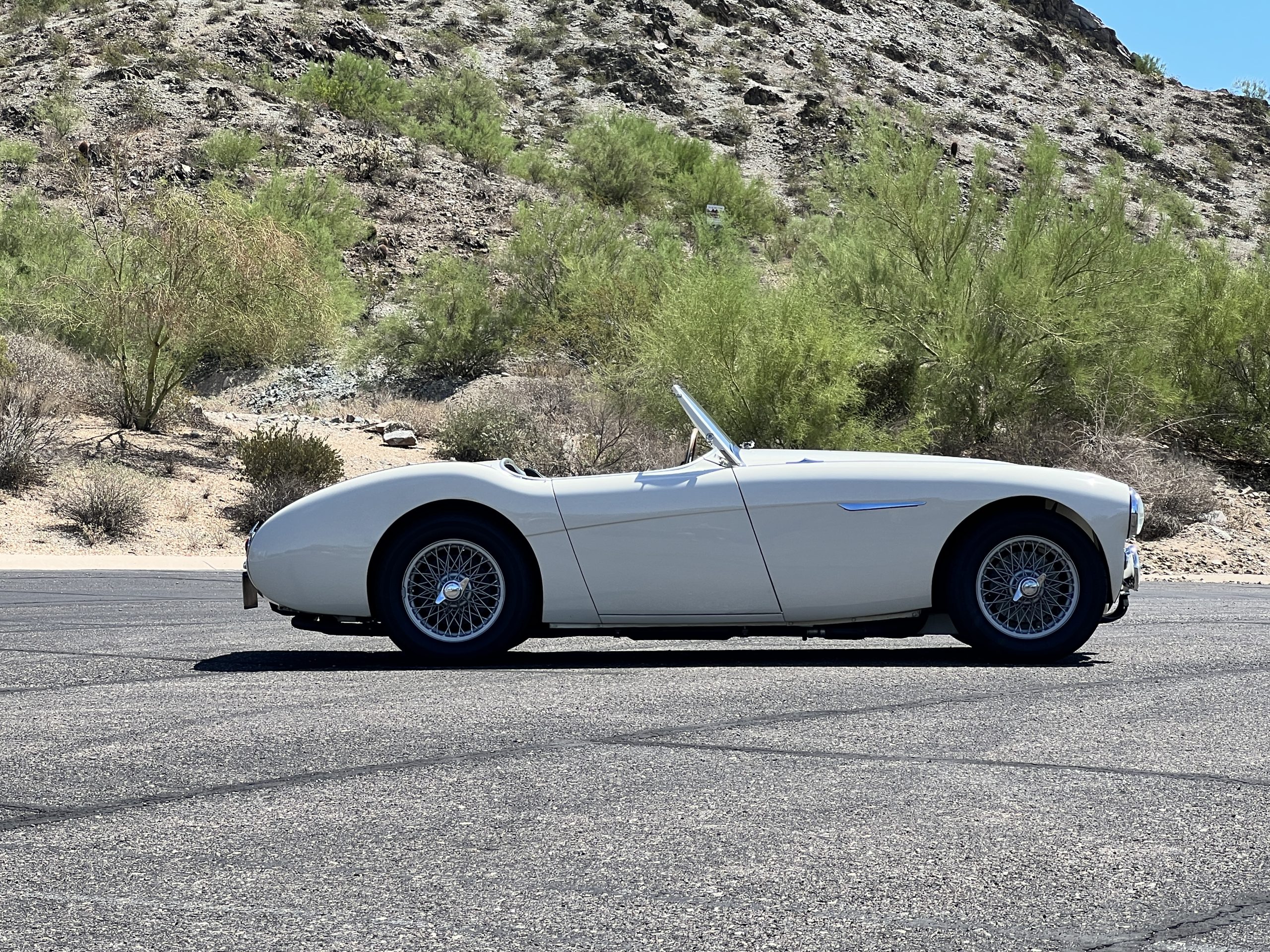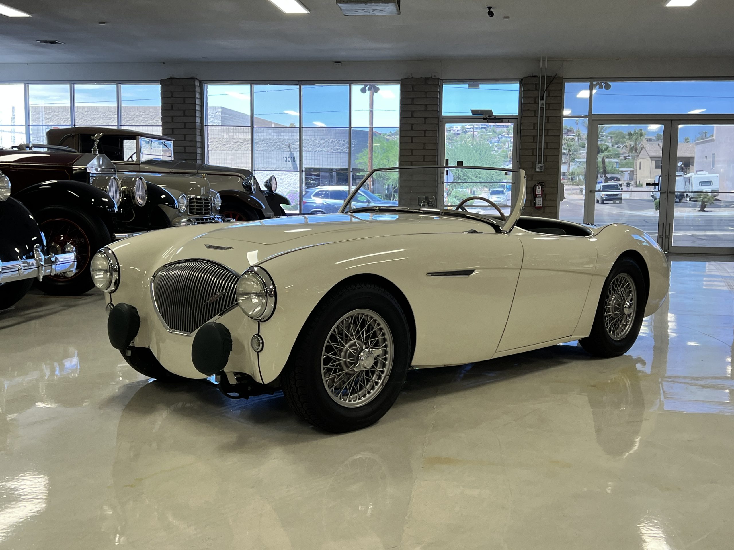 This Healey was acquired for restoration by Tom Kovacs at Fourintune about eight years ago. According to Tom, the Healey was found in the Pennysaver magazine offered for sale by Michael Hagerty. Tom kept the Healey as a base for a full-restoration. In about 2016, the present owner and Tom set out on this faithful Tribute to the legendary Austin-Healey 100S. The restoration was completed by December 2019 for the current owner, Gary Lumsden of Paradise Valley, AZ. Mr. Lumsden has added about 3,500 miles since then. Having driven this 100S Tribute ourselves, it is fast and a blast to drive!