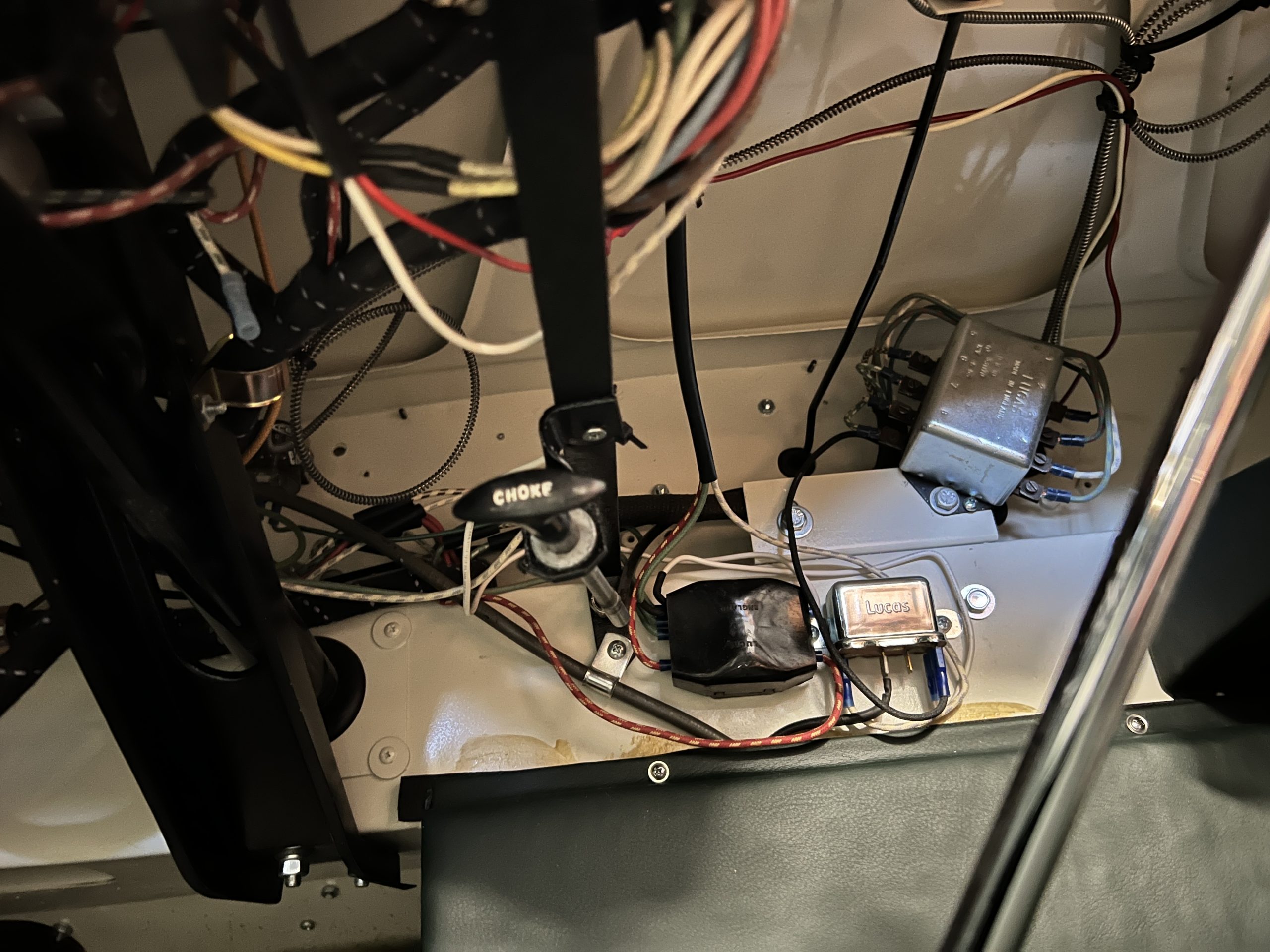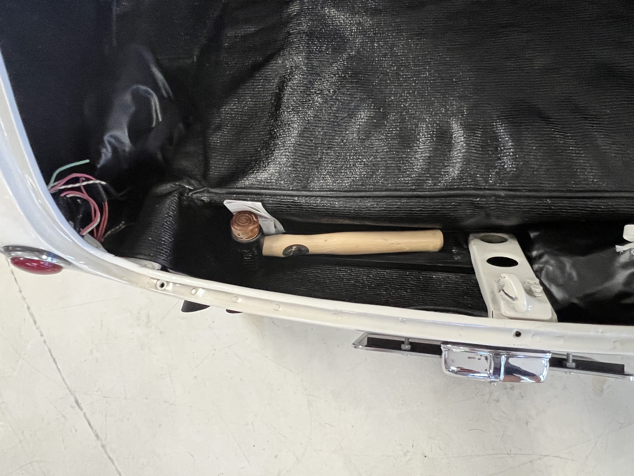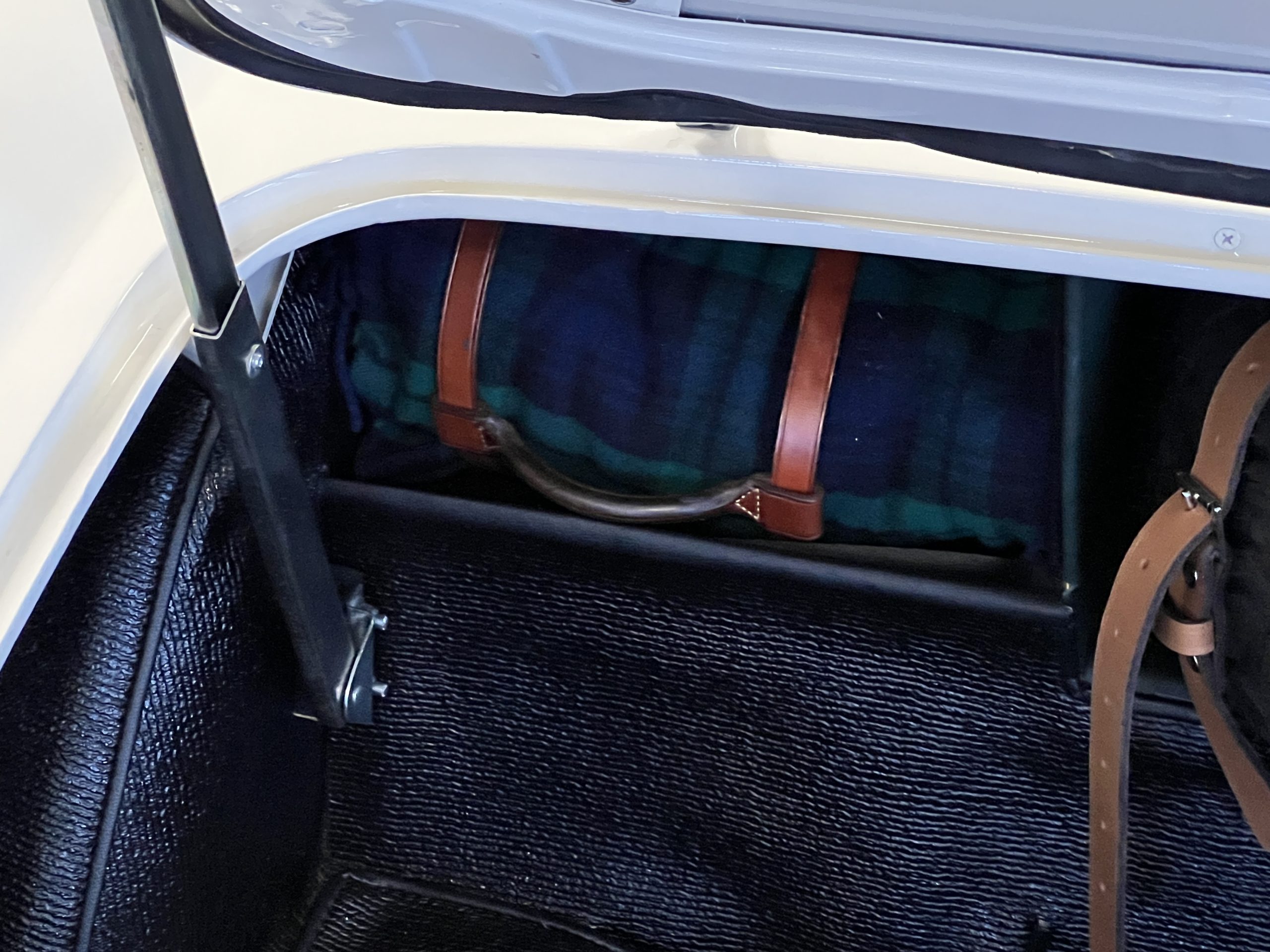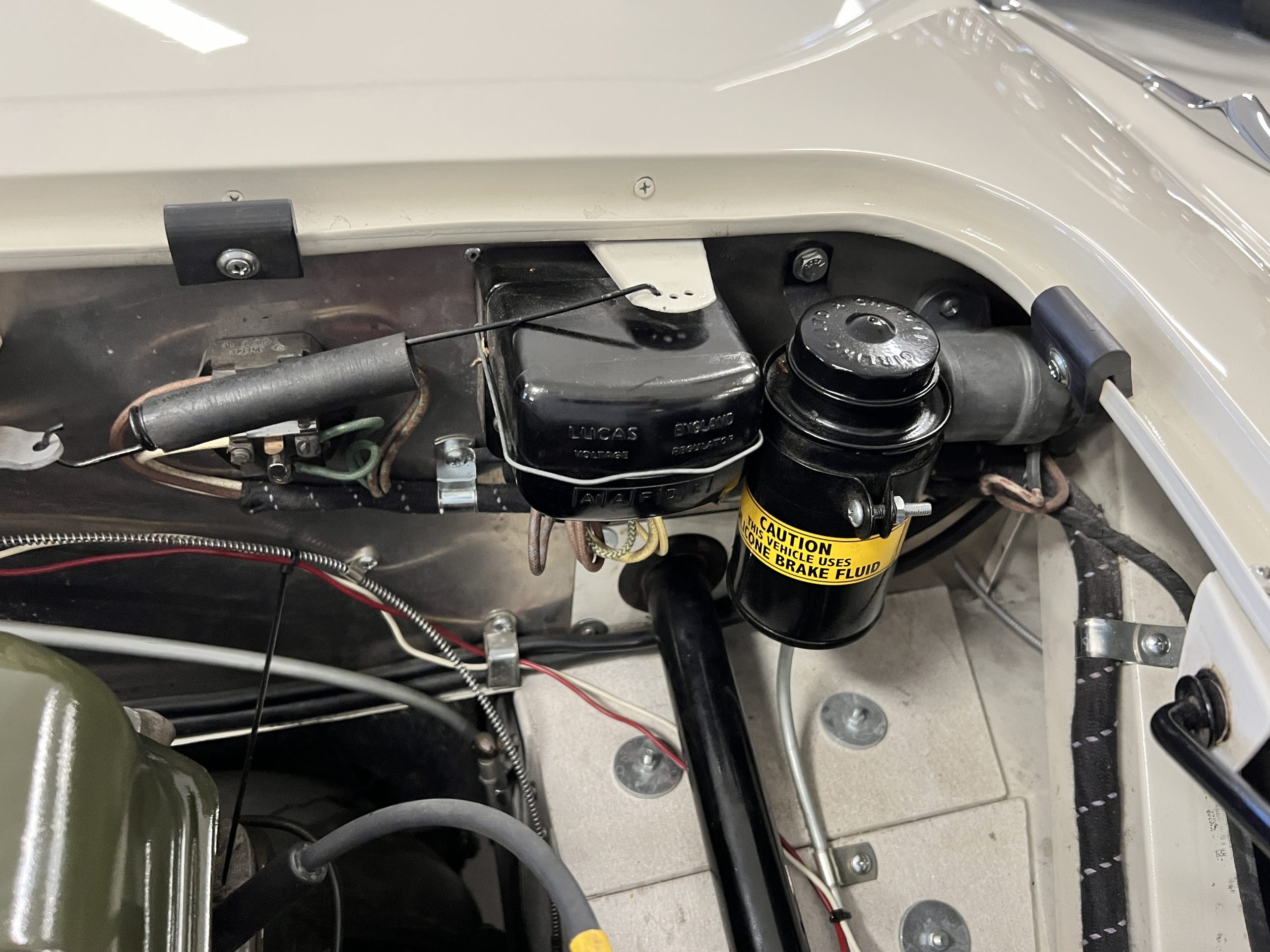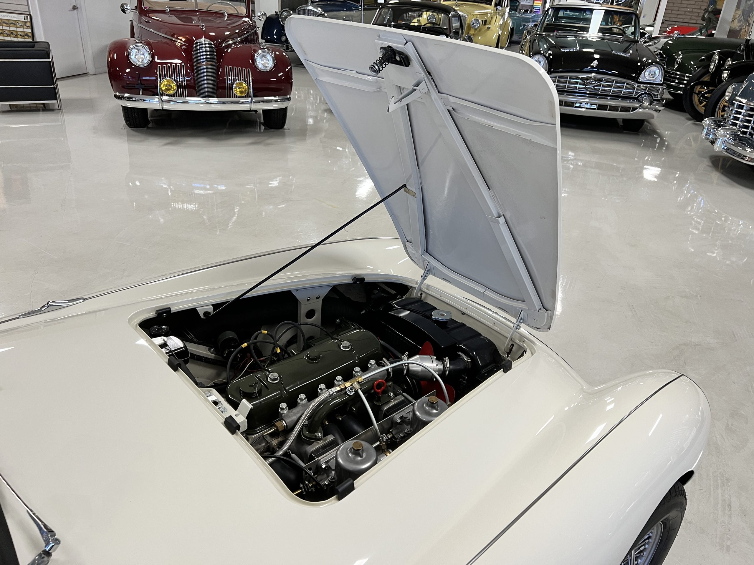 The livery is in the period correct Old English White. The upgraded gray painted 60-spoke wire wheels look great. The Lucas driving lights and deletion of the bumpers add to its visual appeal as well as making it look much like the 100S’s.