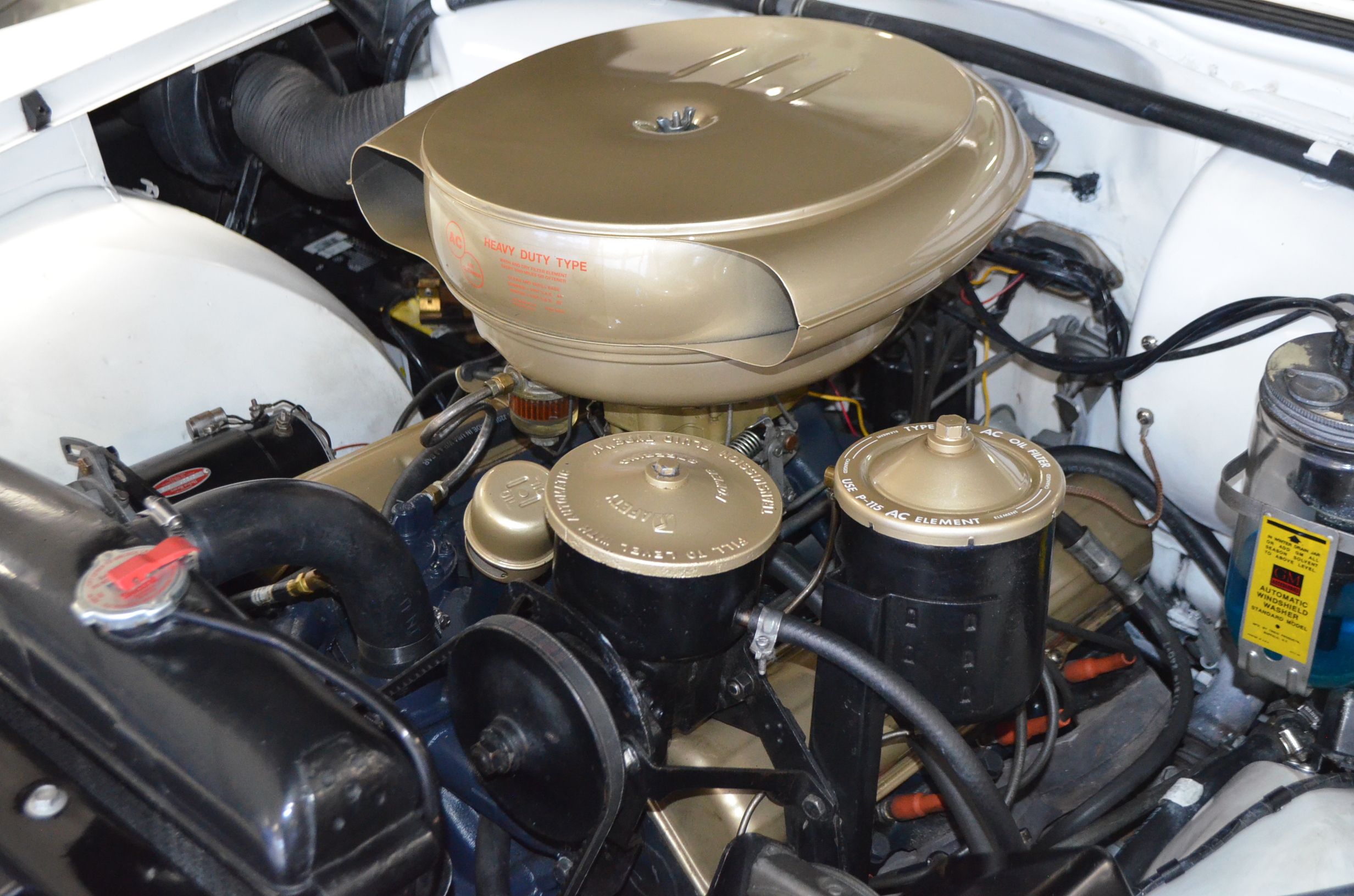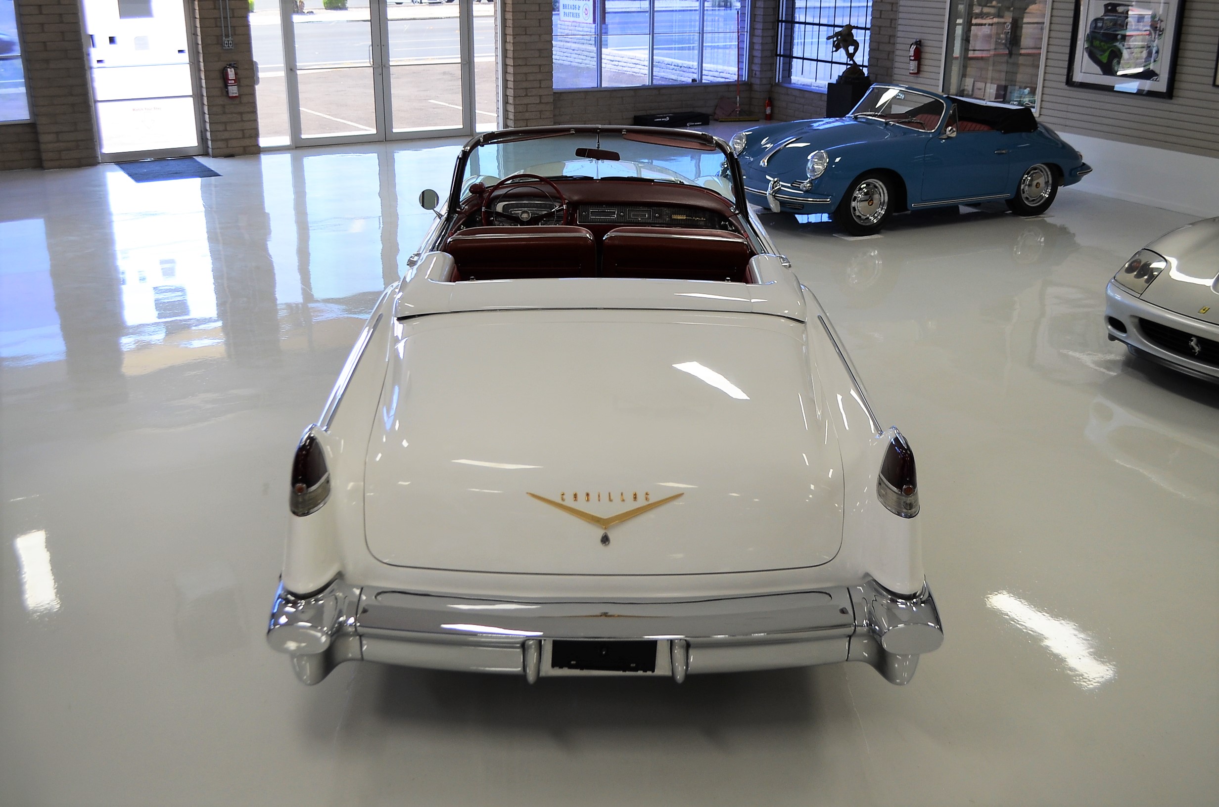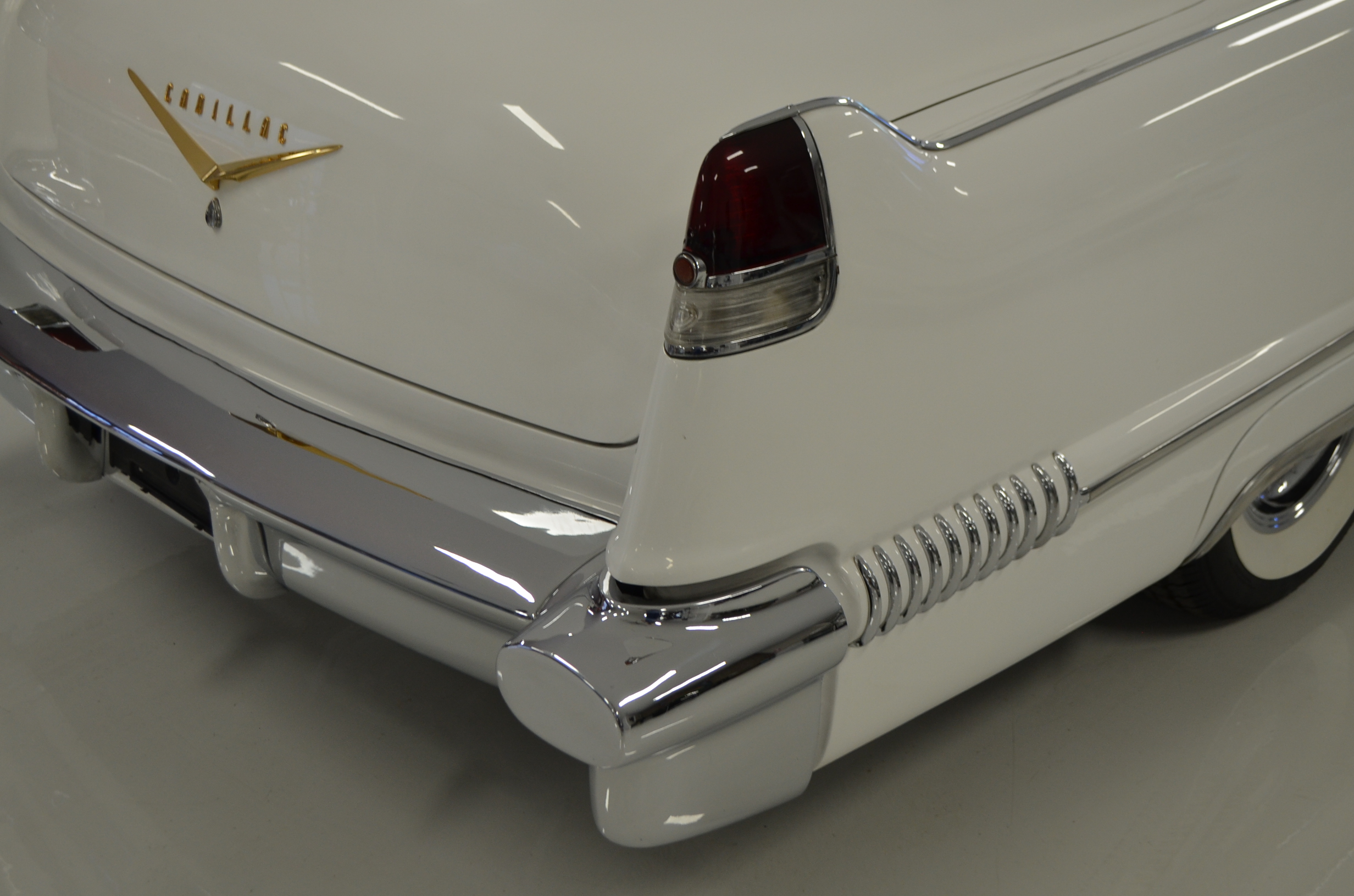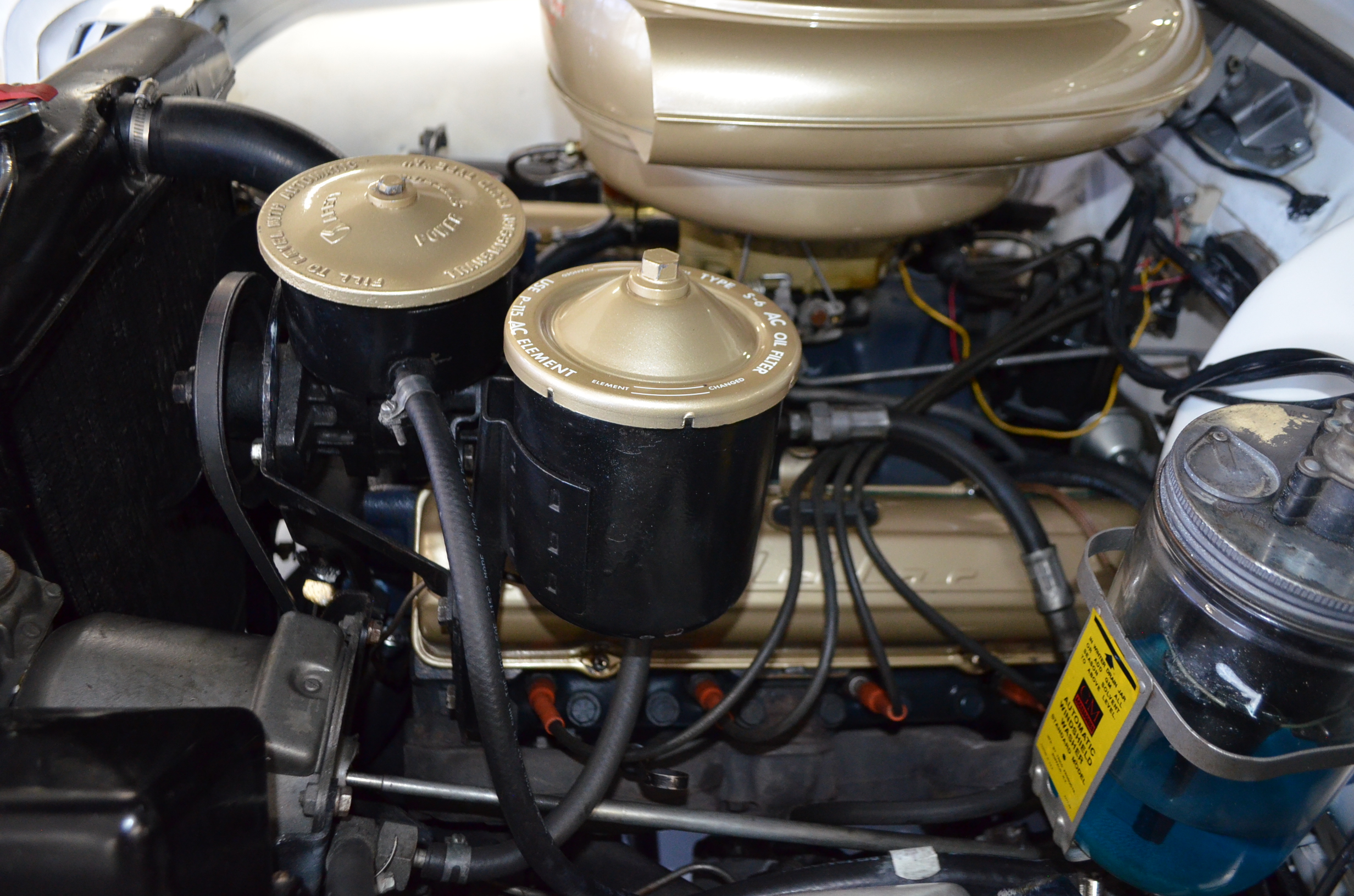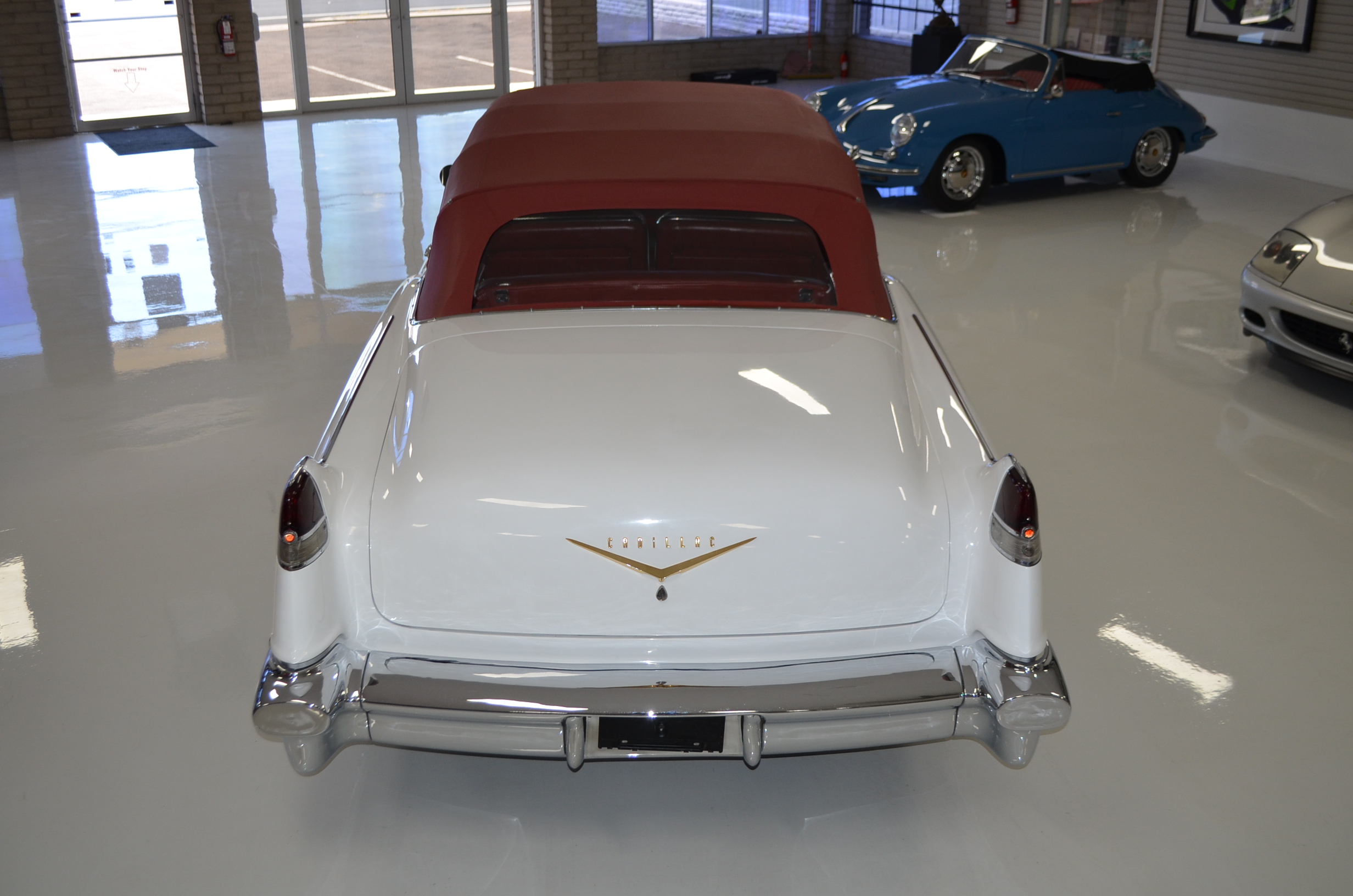 This was said to be an Arizona car that was sold at the Barrett-Jackson auction about 35 years ago. It had been fully restored mechanically and cosmetically. The buyer was a collector from Denver, CO who enjoyed the car for the next 30 years. For much of that time the car was stored and not driven. The Cadillac was then sold to the present owner, Ron Clubine from Colorado, who is quite an expert on 1956 Cadillacs. He recommissioned the car after acquiring it, including carpets, rebuilding the convertible top mechanisms and such. He also freshened the engine detailing, which is rather stunning in its current form.