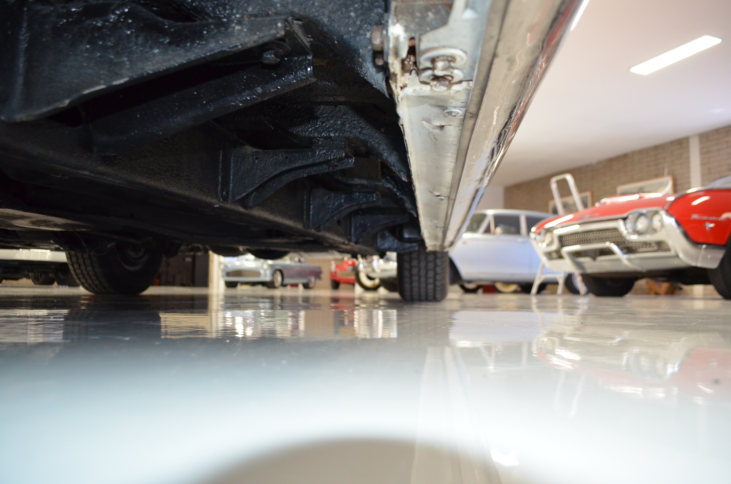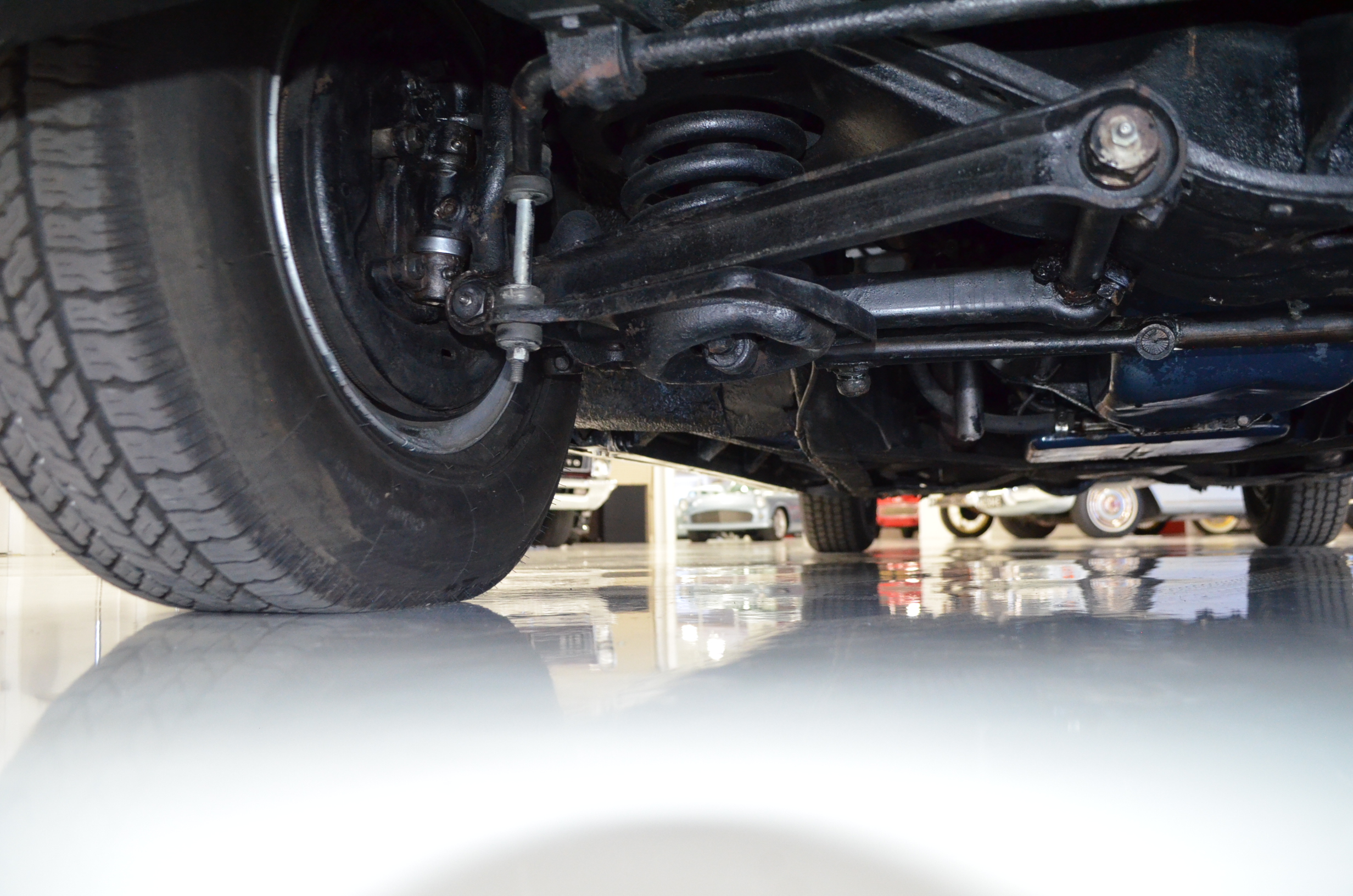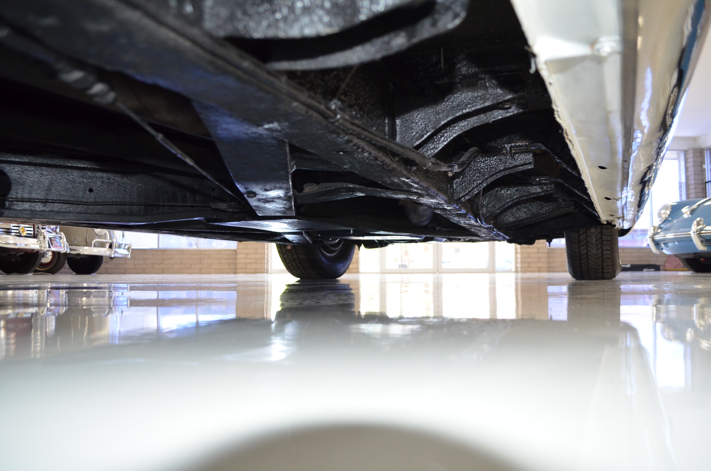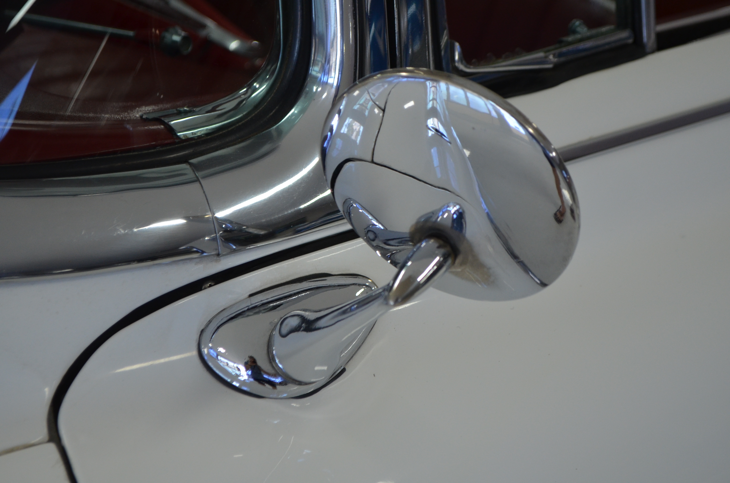 The carpets are new and in excellent condition. The red leather is older and showing cracks. There are no rips or holes, just the cracking from age. The leather is very soft and supple. The instruments are gorgeous and really complete the 1950’s look for the interior.