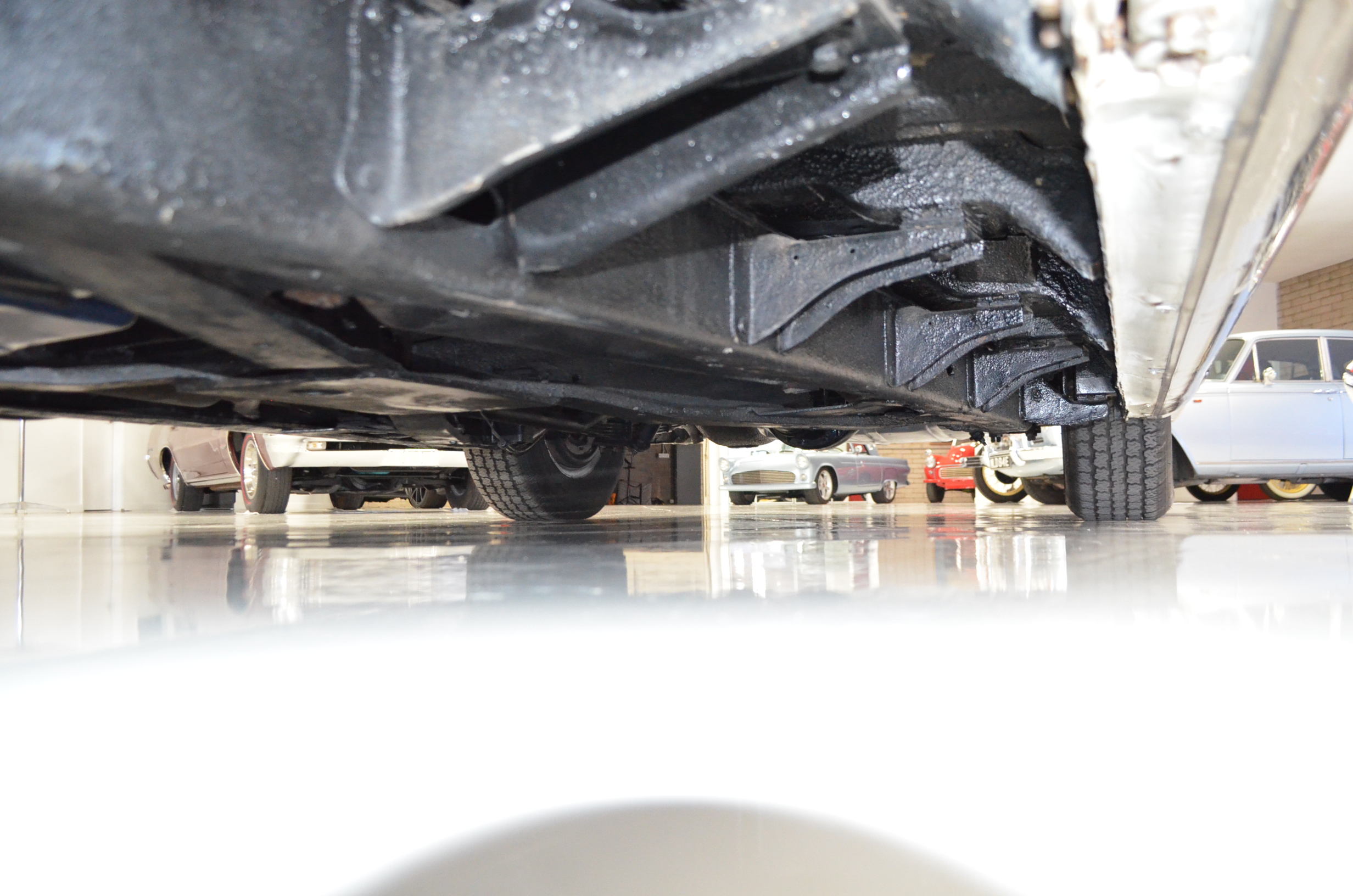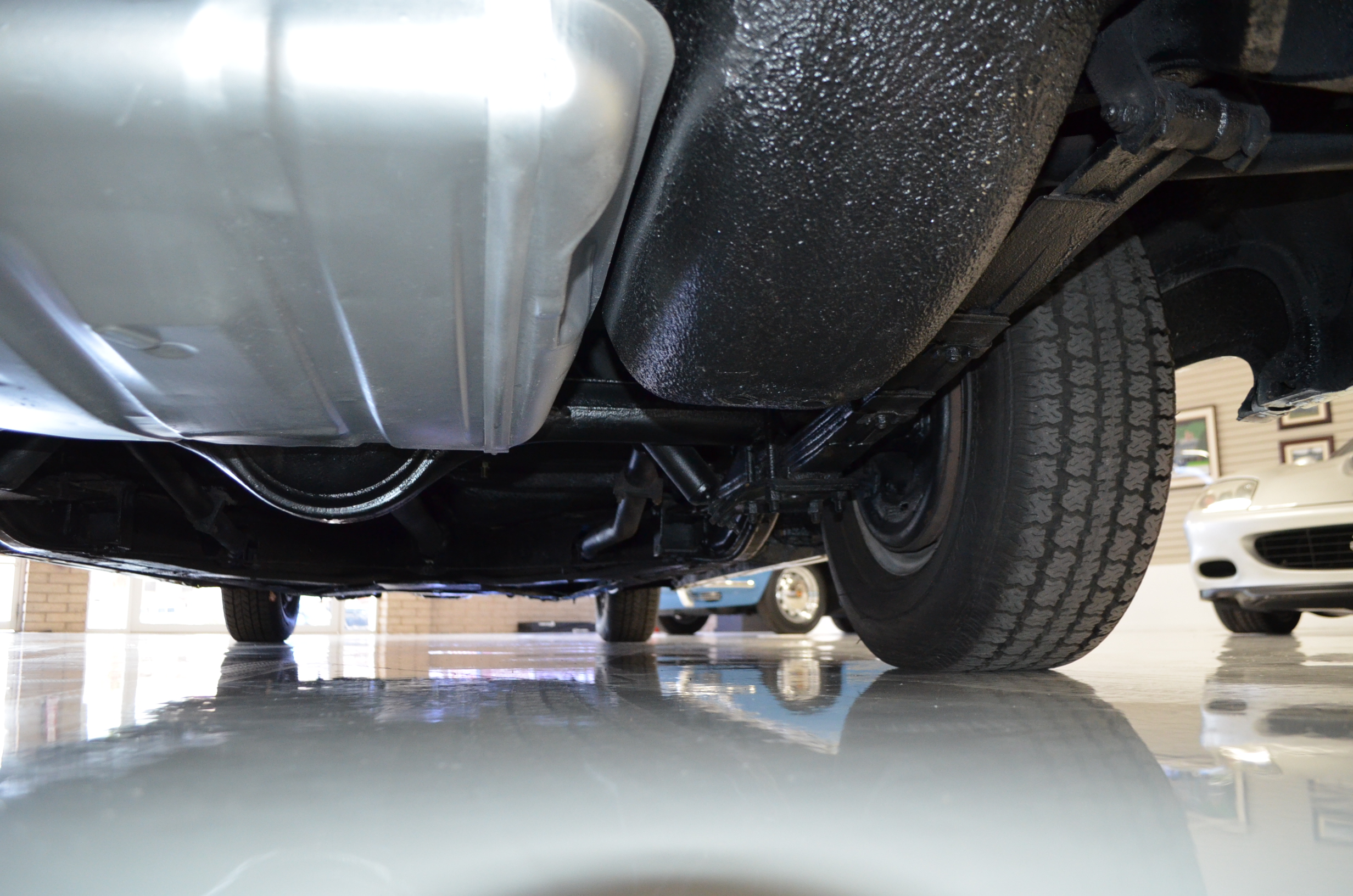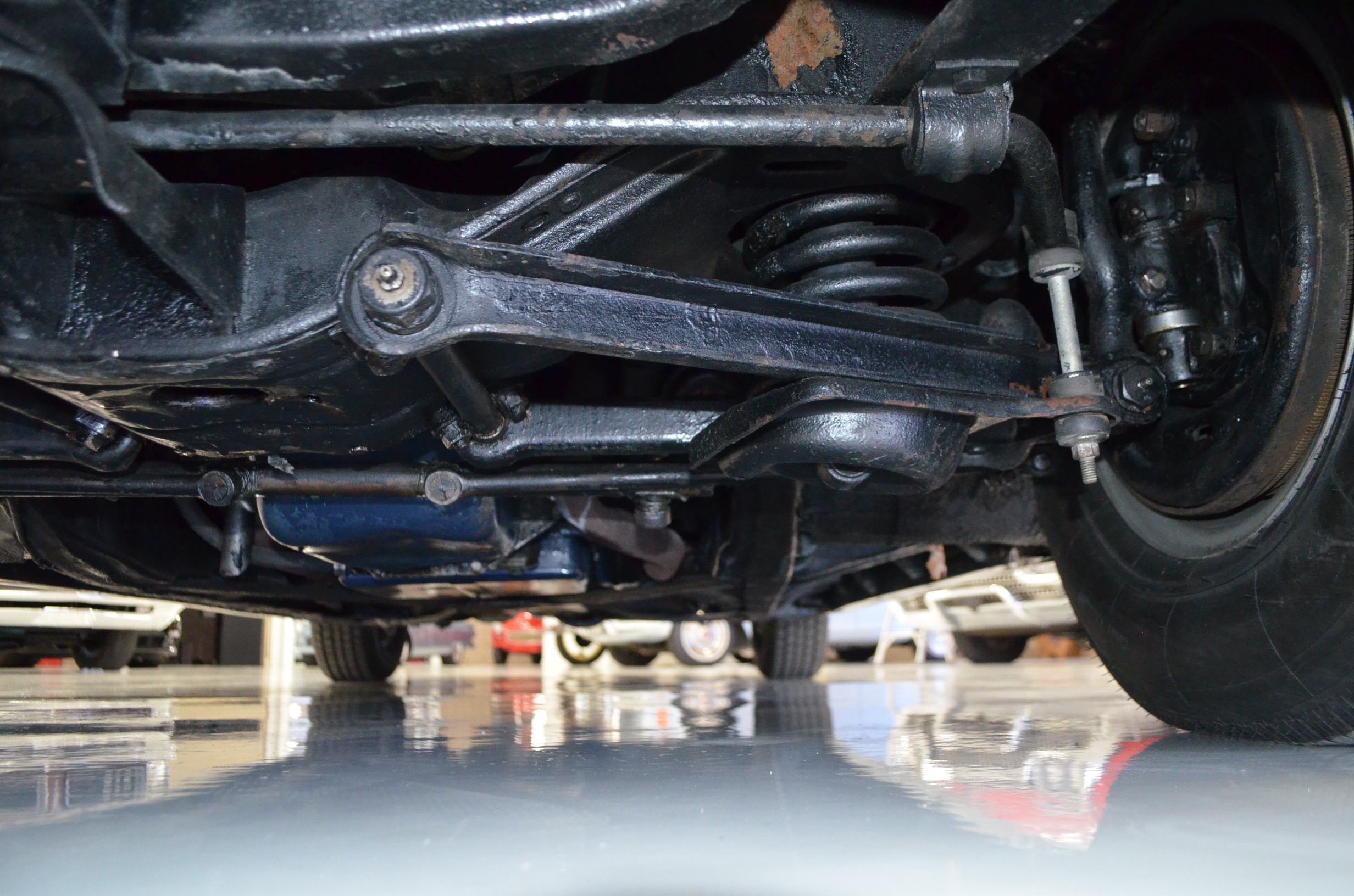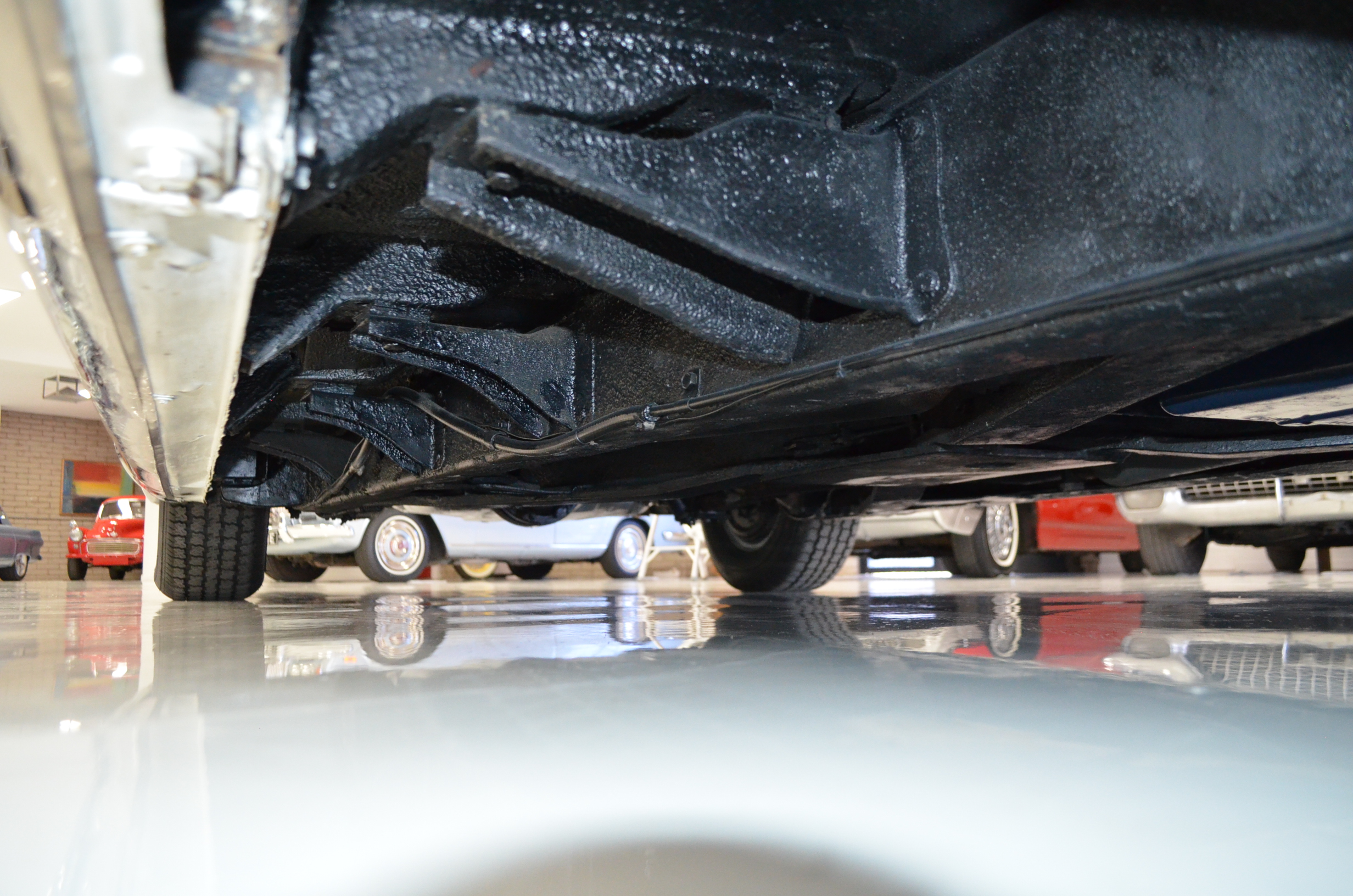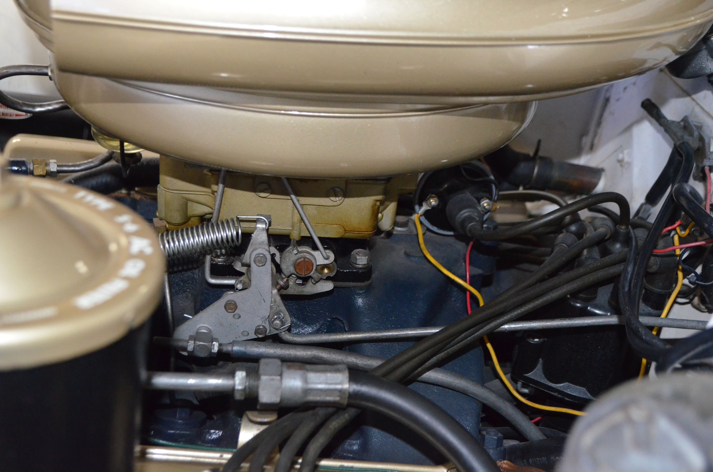 The carpets are new and in excellent condition. The red leather is older and showing cracks. There are no rips or holes, just the cracking from age. The leather is very soft and supple. The instruments are gorgeous and really complete the 1950’s look for the interior.
