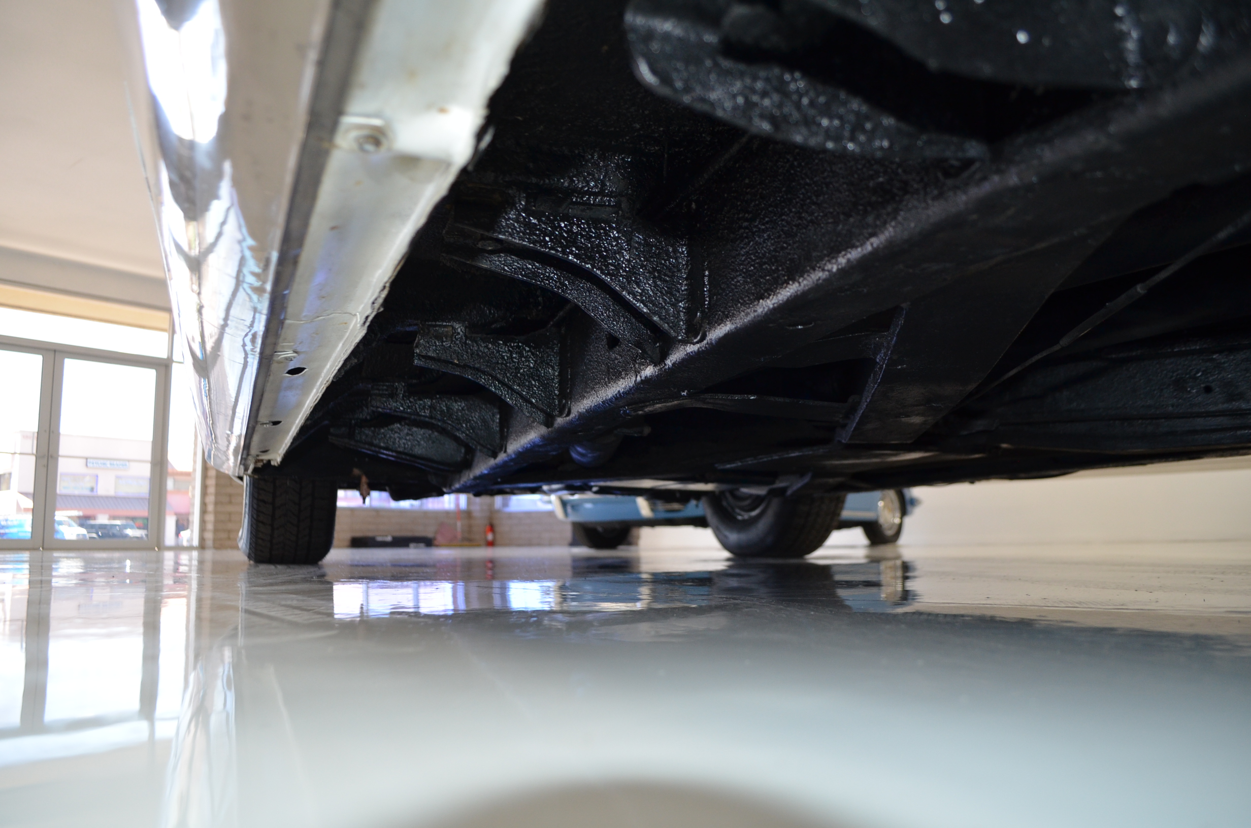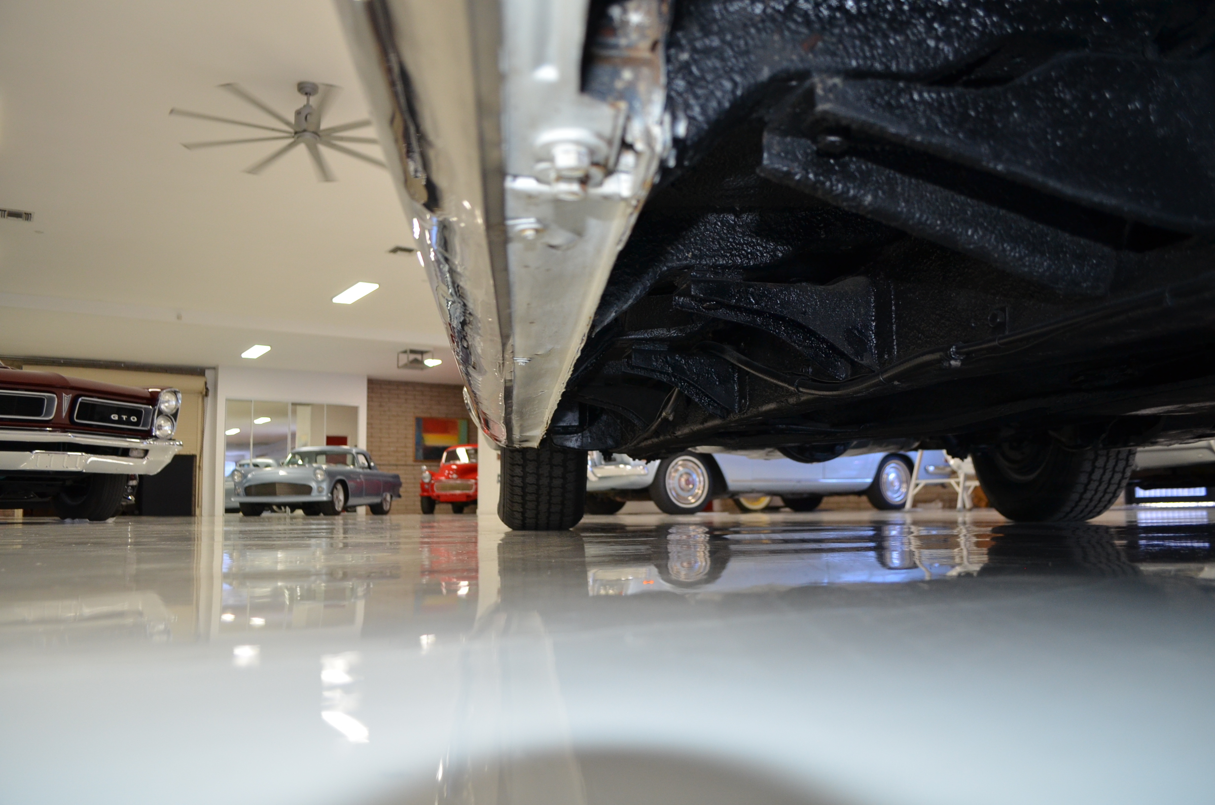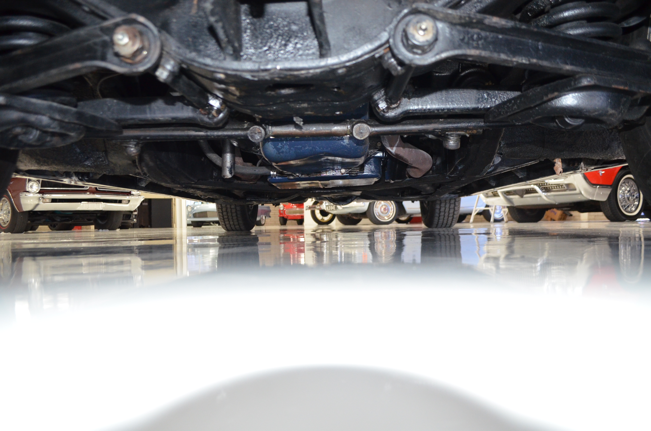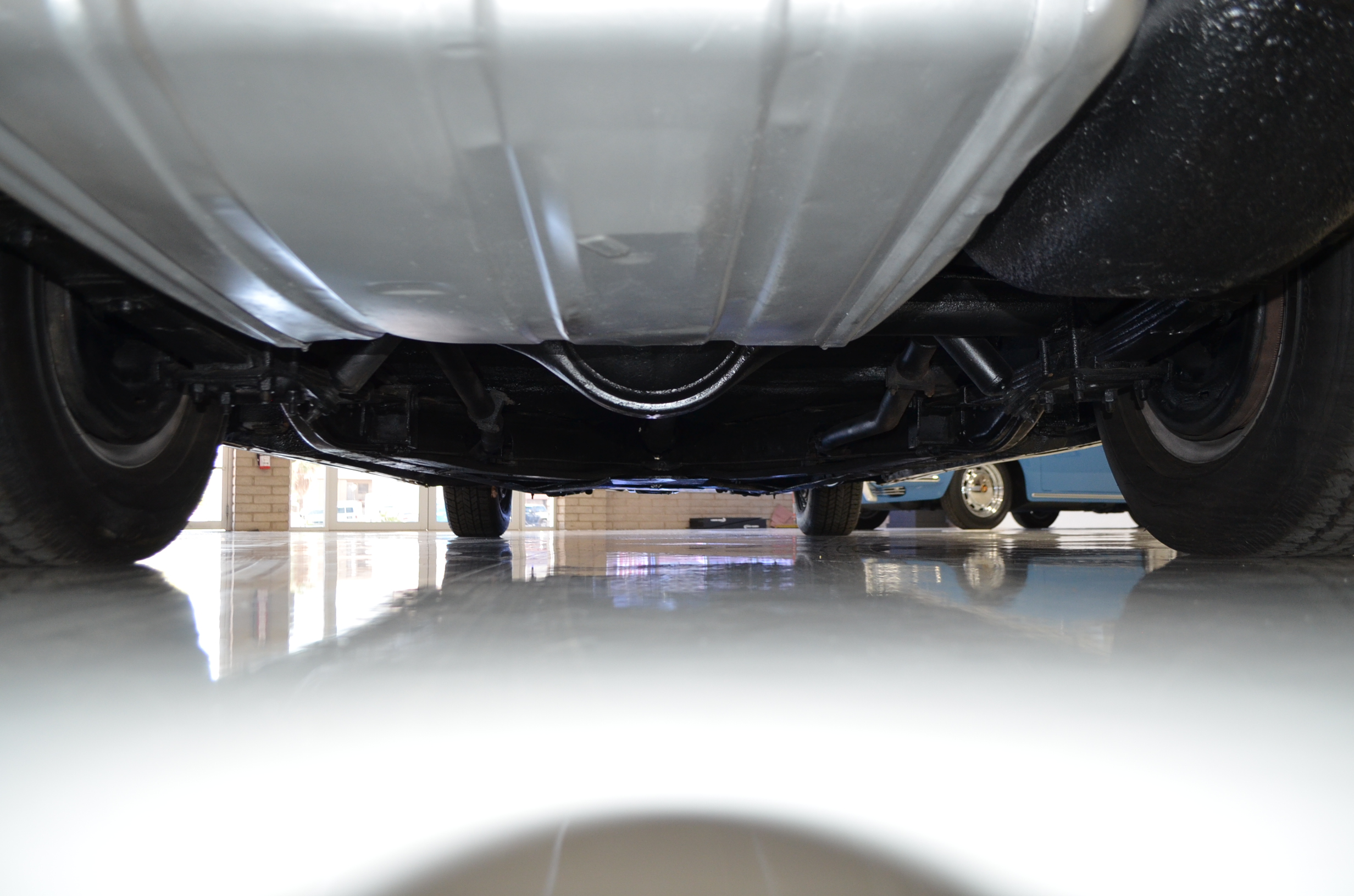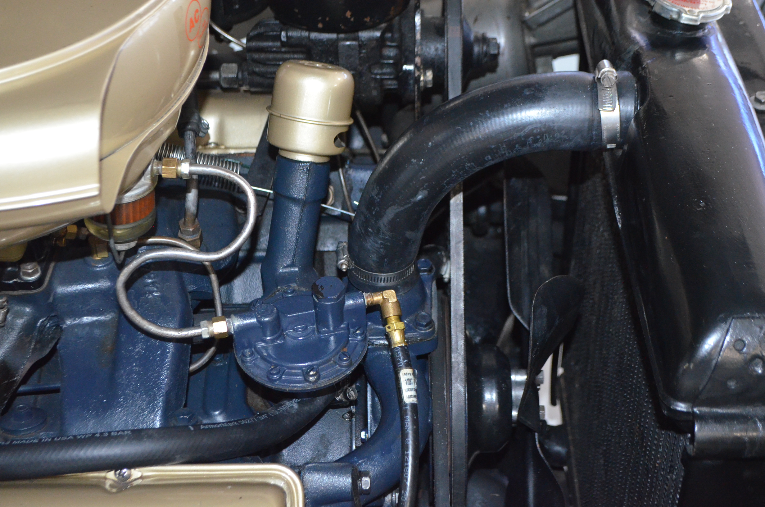 The carpets are new and in excellent condition. The red leather is older and showing cracks. There are no rips or holes, just the cracking from age. The leather is very soft and supple. The instruments are gorgeous and really complete the 1950’s look for the interior.