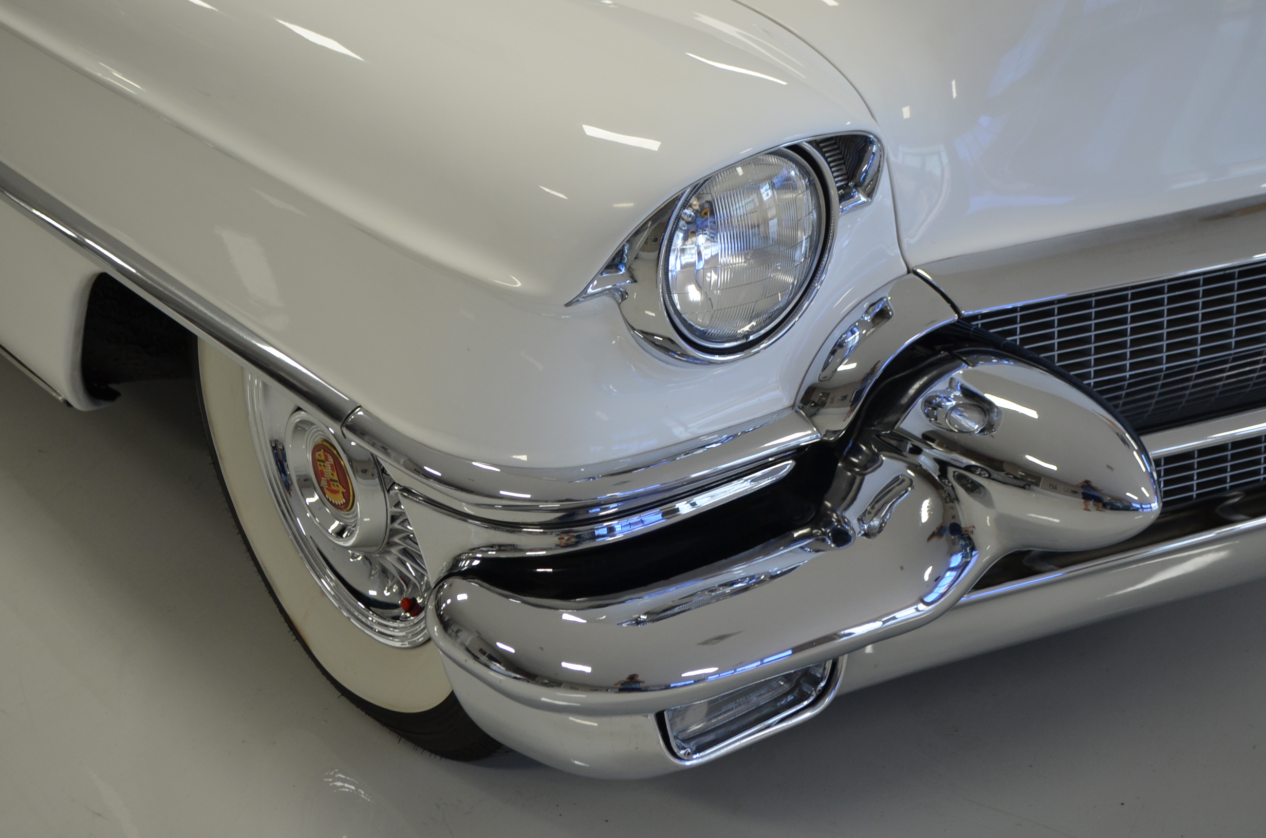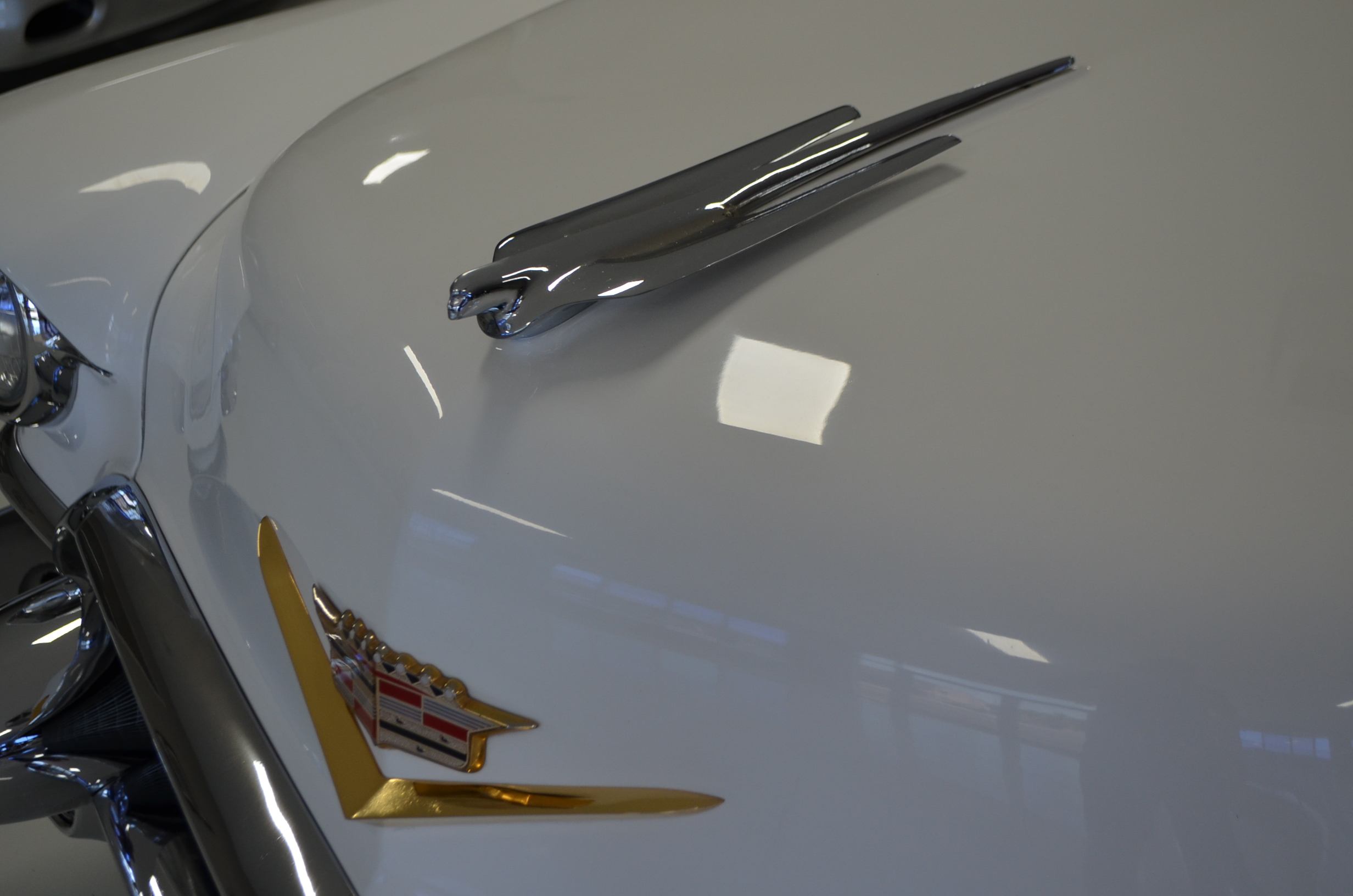 The Cadillac now runs and drives beautifully and looks very nice. The paint is older, but still looks stunning. It has many areas which have touched up chips, but the paint shines and looks beautiful overall. The chrome and stainless are in overall good condition. There are no dents or dings, but a few of the pot metal parts show some pitting and a few other items could have been chromed better. The bumpers look original and are in good condition with only some surface scratching showing.