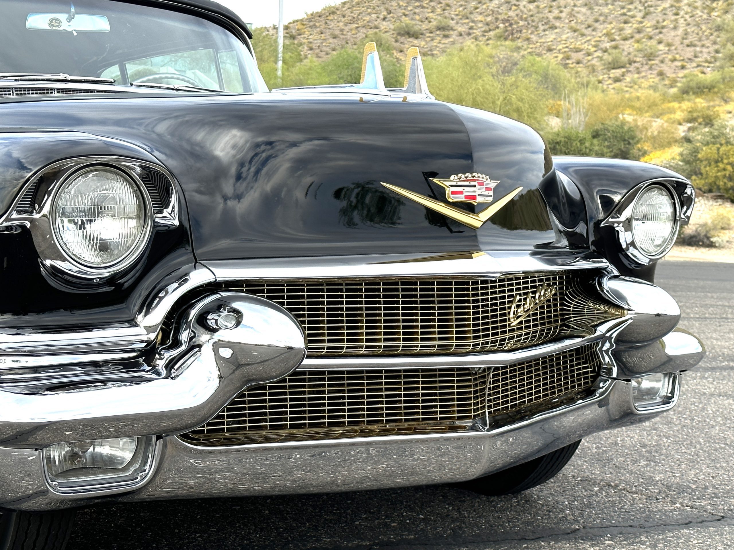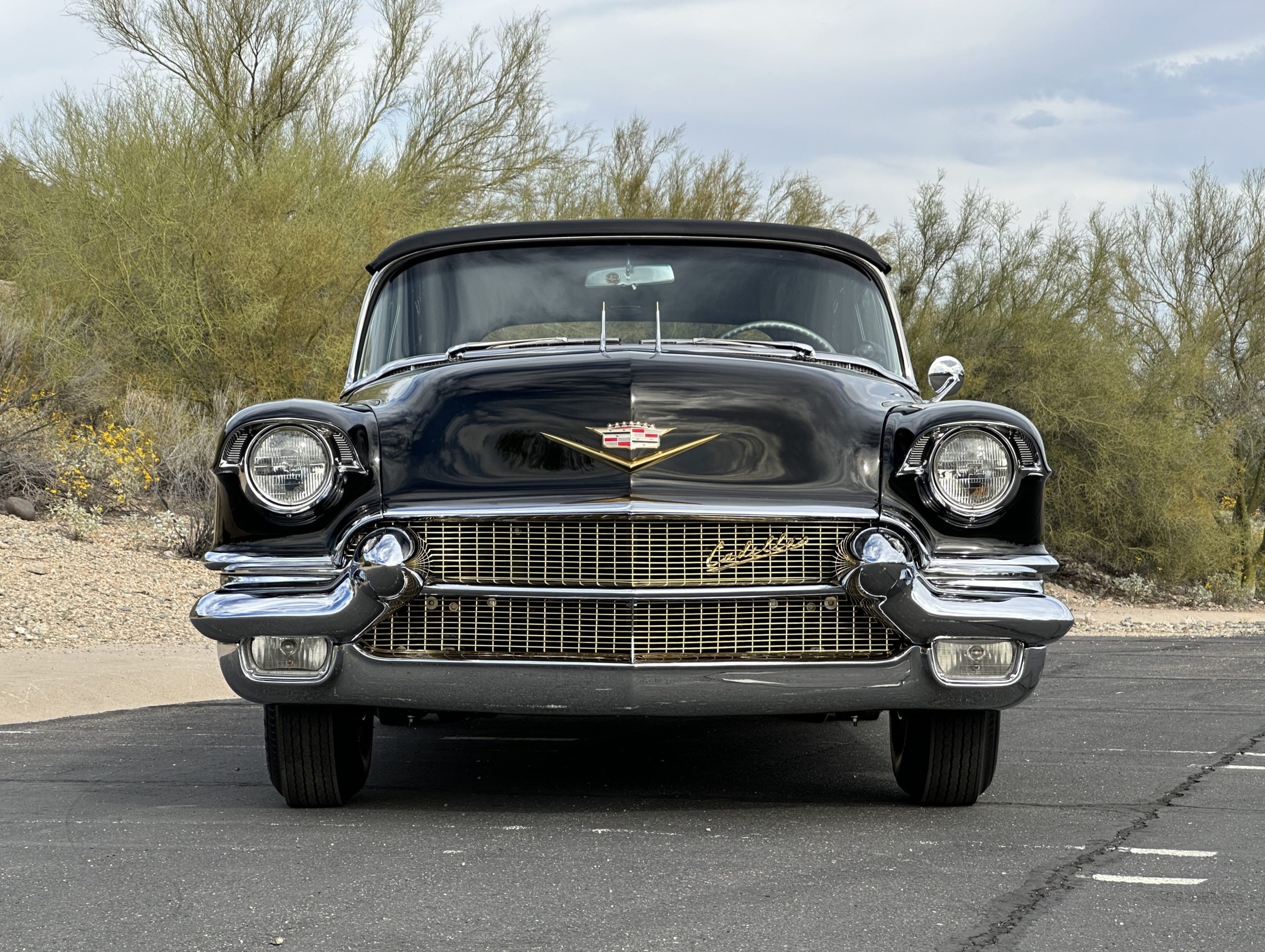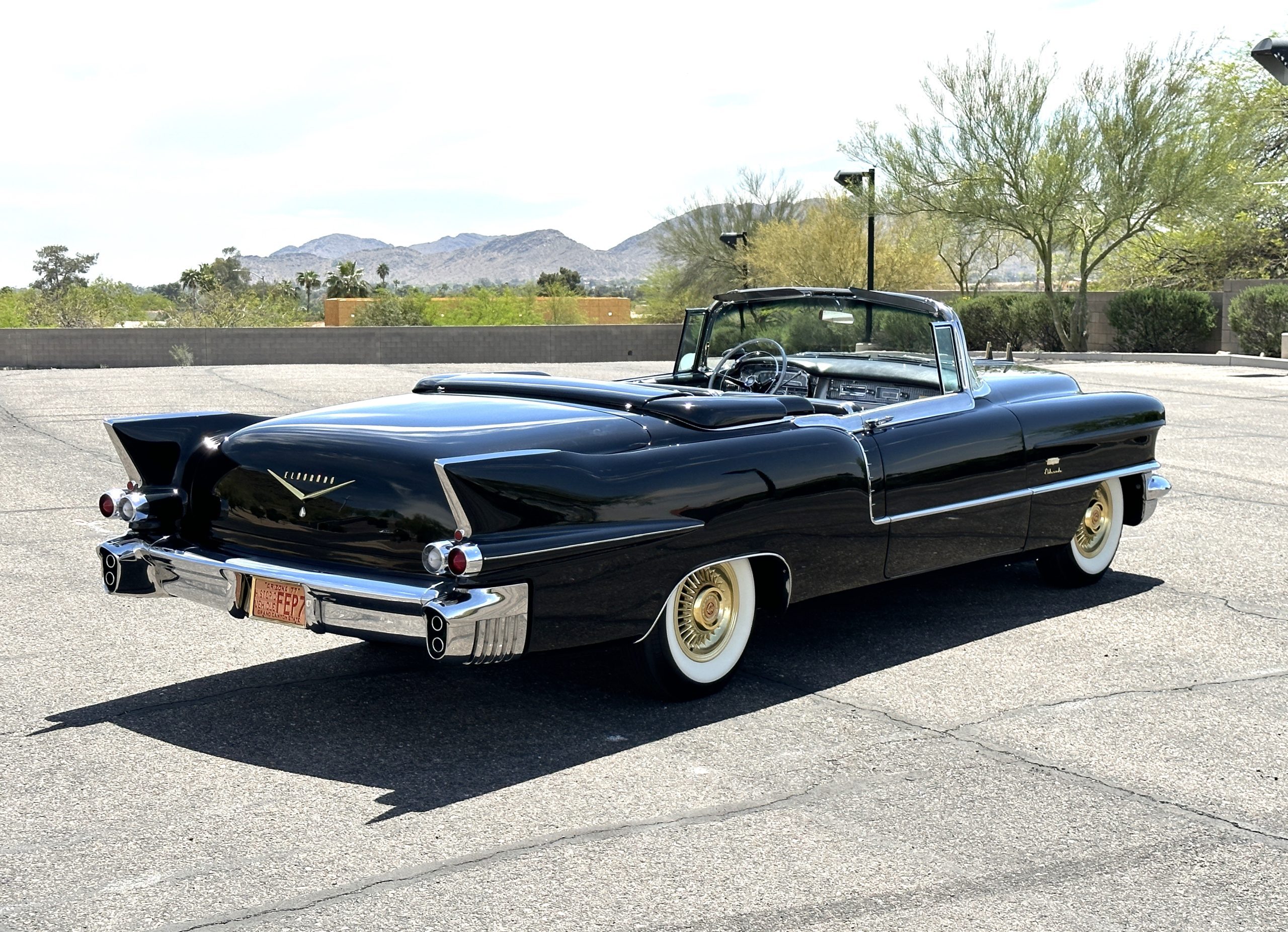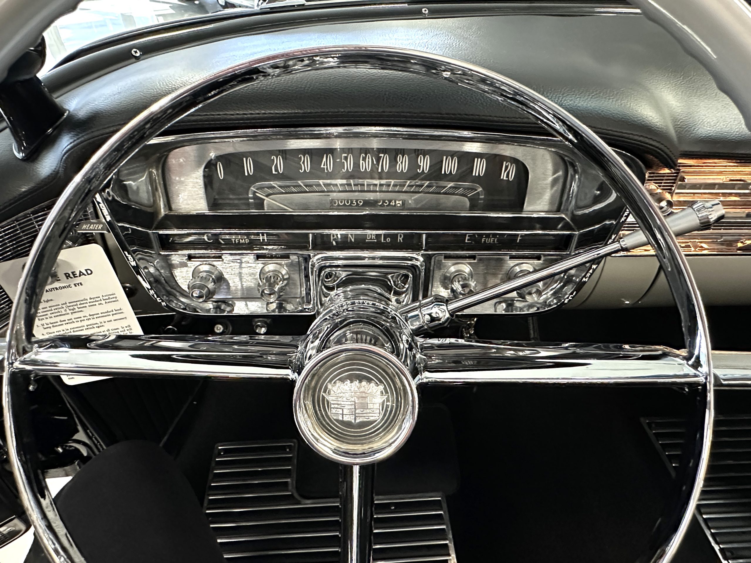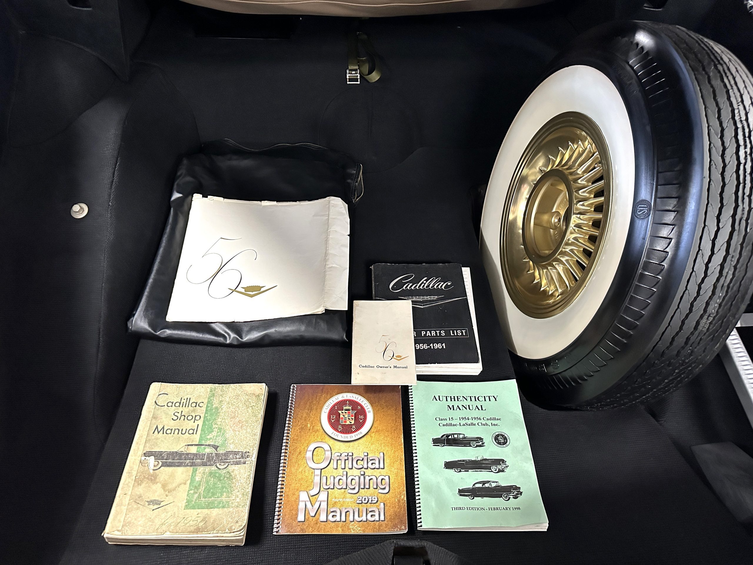 At $6,556, the Eldorado was nearly $1,800 more expensive than the lesser Series 62 Convertible. This Biarritz is one of 2,150 produced and was sent from the factory to Kansas City, KS. By February 20, 1976, she was acquired by David Ventresca of Los Angeles, CA. The history file contains the original California title and many years of registrations. Mr. Ventresca had produced many award-winning Cadillacs. His 1953 Eldorado was included in the General Motors 2011 Cadillac Heritage Display at Pebble Beach. By 1980, the Biarritz was acquired by Harvey Stelte from Alberta, Canada to be restored. Mr. Stelte carefully and thoroughly disassembled the Biarritz for a rotisserie restoration and accumulated countless extra parts but failed to make further progress in his 35 years of ownership. The Biarritz was stored until the current owner purchased her on July 23, 2015. The current owner began the extensive, photo documented, three-year restoration that was led by Art Wright Restorations in Tempe, AZ. Each of the specialty trades were done by some of the most respected restoration professionals. The restoration was completed in 2019 and the results are what we consider to be a better-than-new, stunning 1956 Cadillac Eldorado Biarritz. In her inaugural competition, she easily earned a Senior Award at the Cadillac & LaSalle Club 2019 Grand National Meet in Louisville, KY.