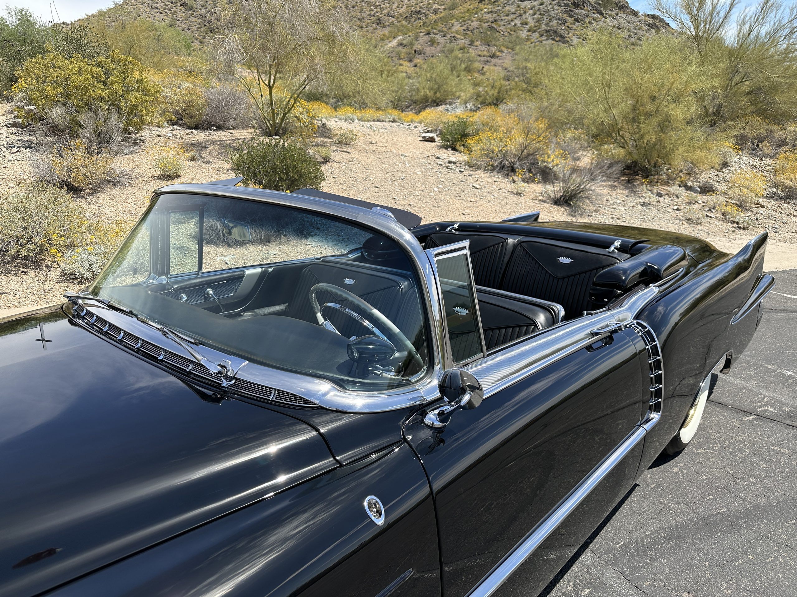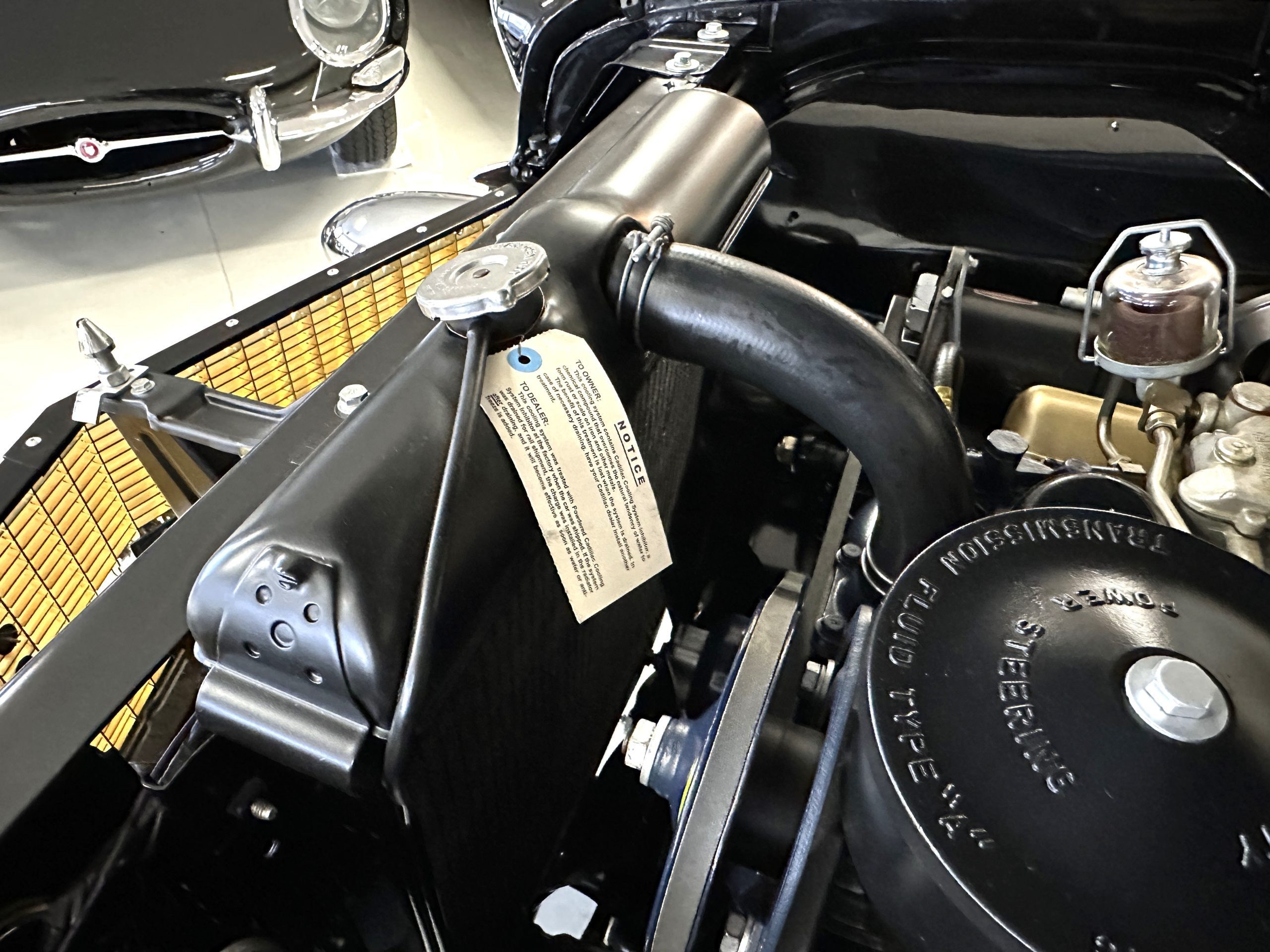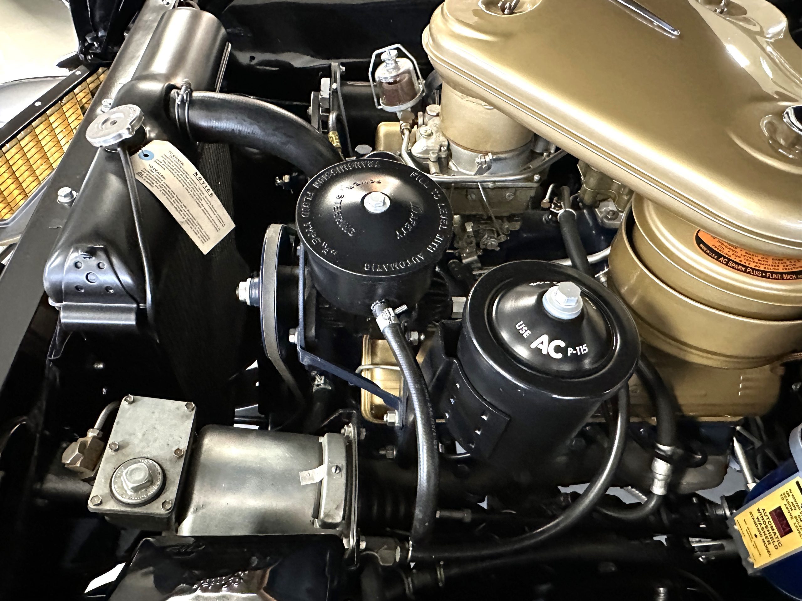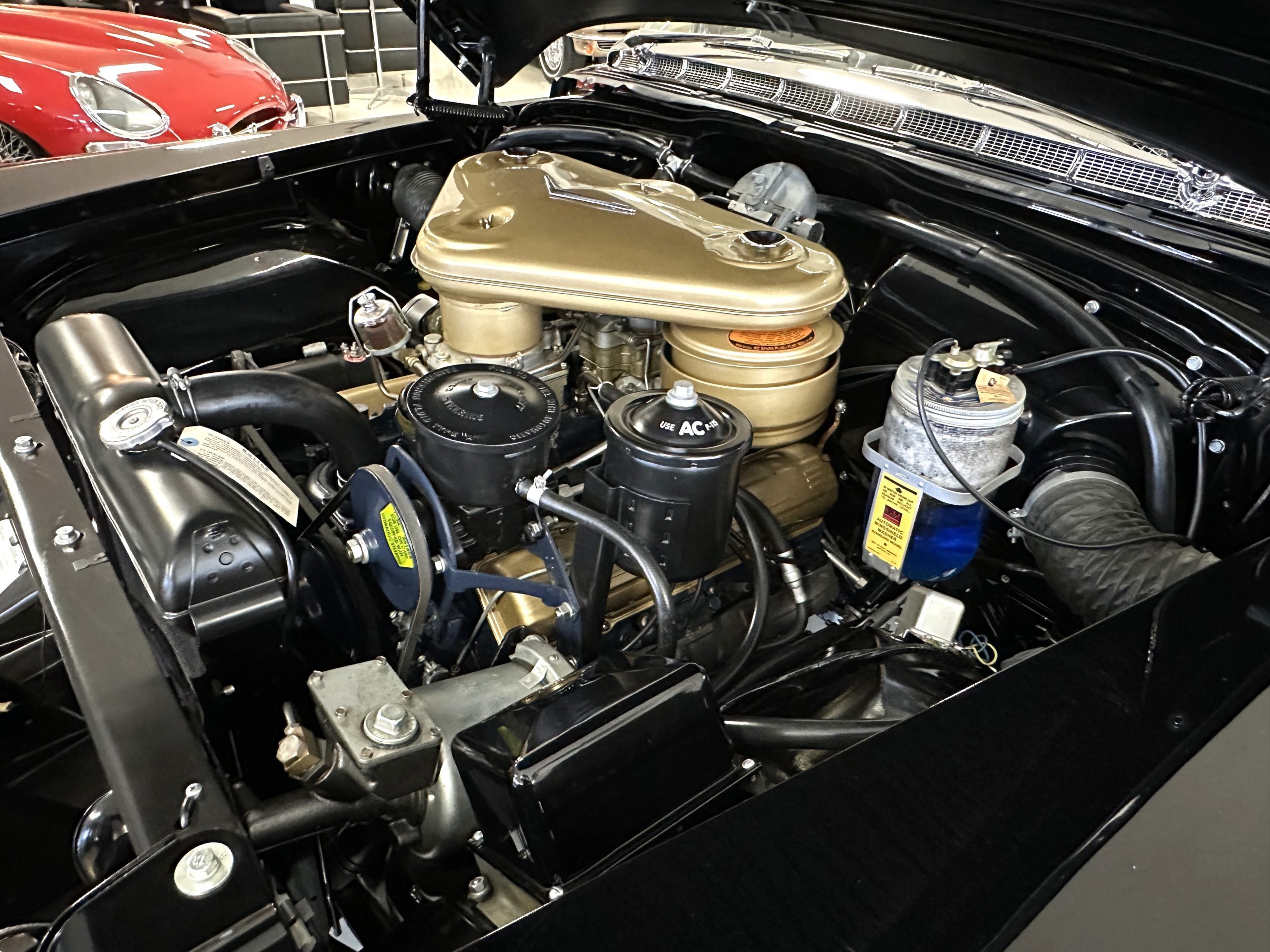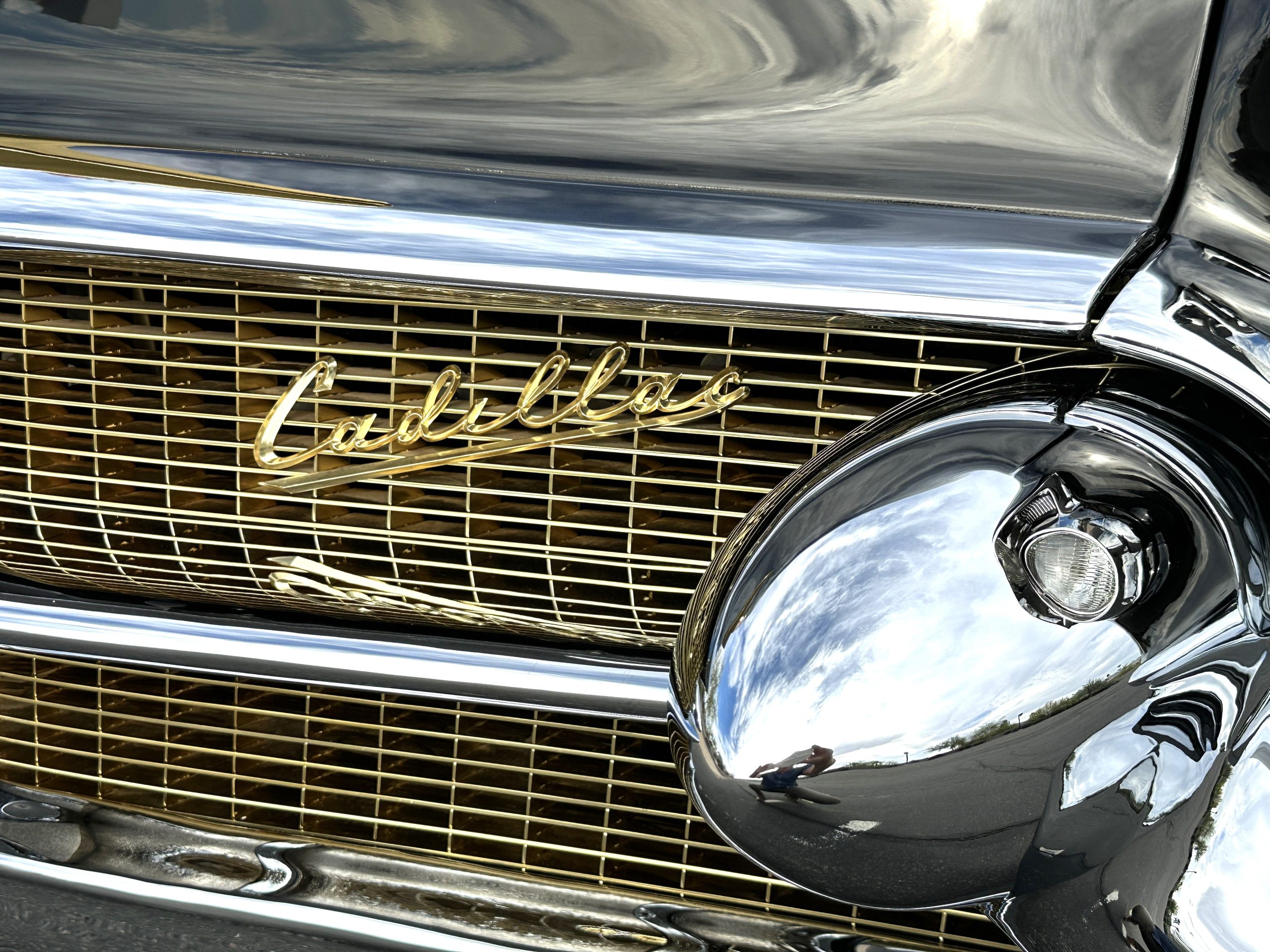 The gorgeous factory black paint (Paint Code 10) is absolutely stunning. She has incredible luster and is polished to perfection presenting a deep and rich mirror finish. The original and NOS trim details have all been meticulously replated and also polished to perfection. The door caps and side moldings are in as-new condition and devoid of imperfections. The 200-plus piece front grill was painstakingly completely disassembled and anodized in the correct gold color in California and includes a NOS Cadillac script logo. The gorgeous three-piece Sabre wheels were restored and anodized in the correct gold color by Valley Wire Wheels. She has perfect and correct new black vinyl power convertible top (Top Code 2) that had never been down before our photo shoot and operates flawlessly. The Parade Boot is in new condition and comes complete with the storage case which fits nicely into place inside the trunk with the factory correct holding straps.