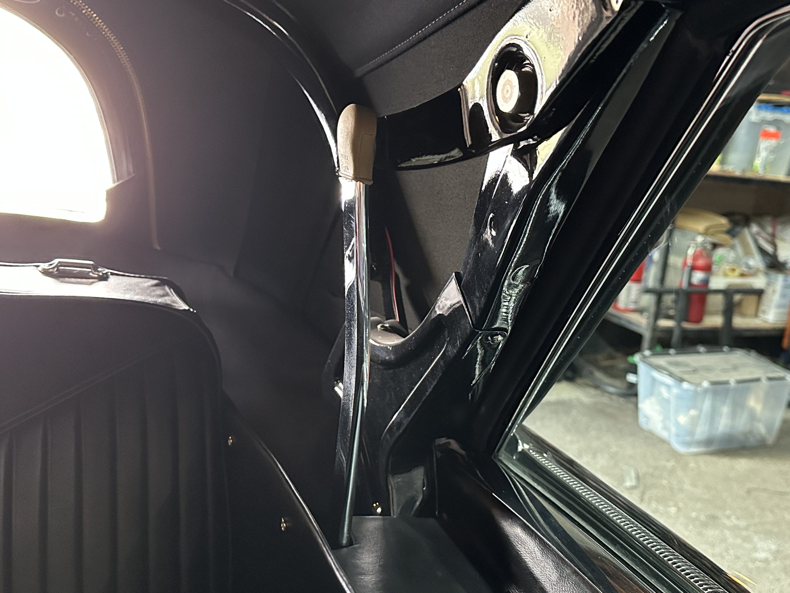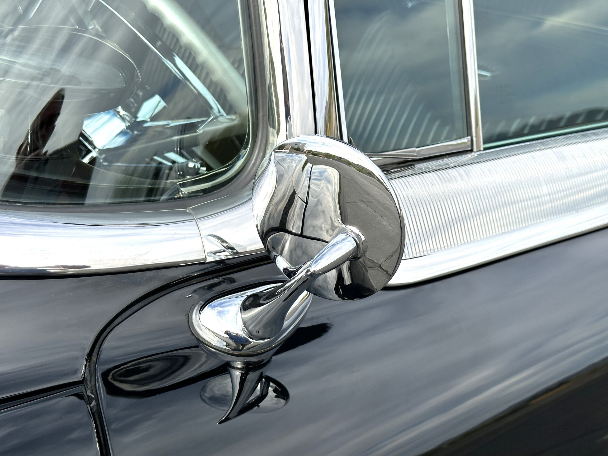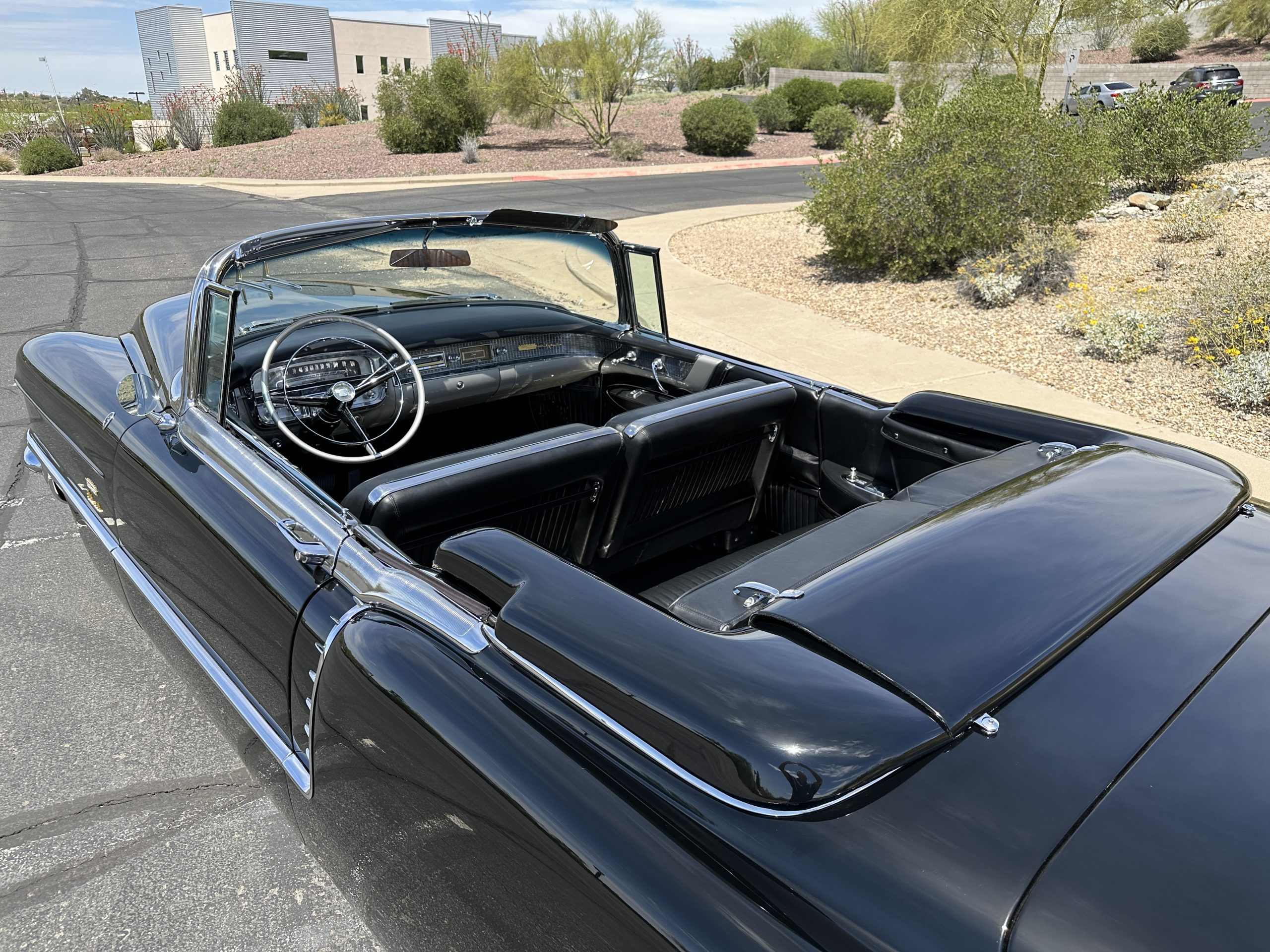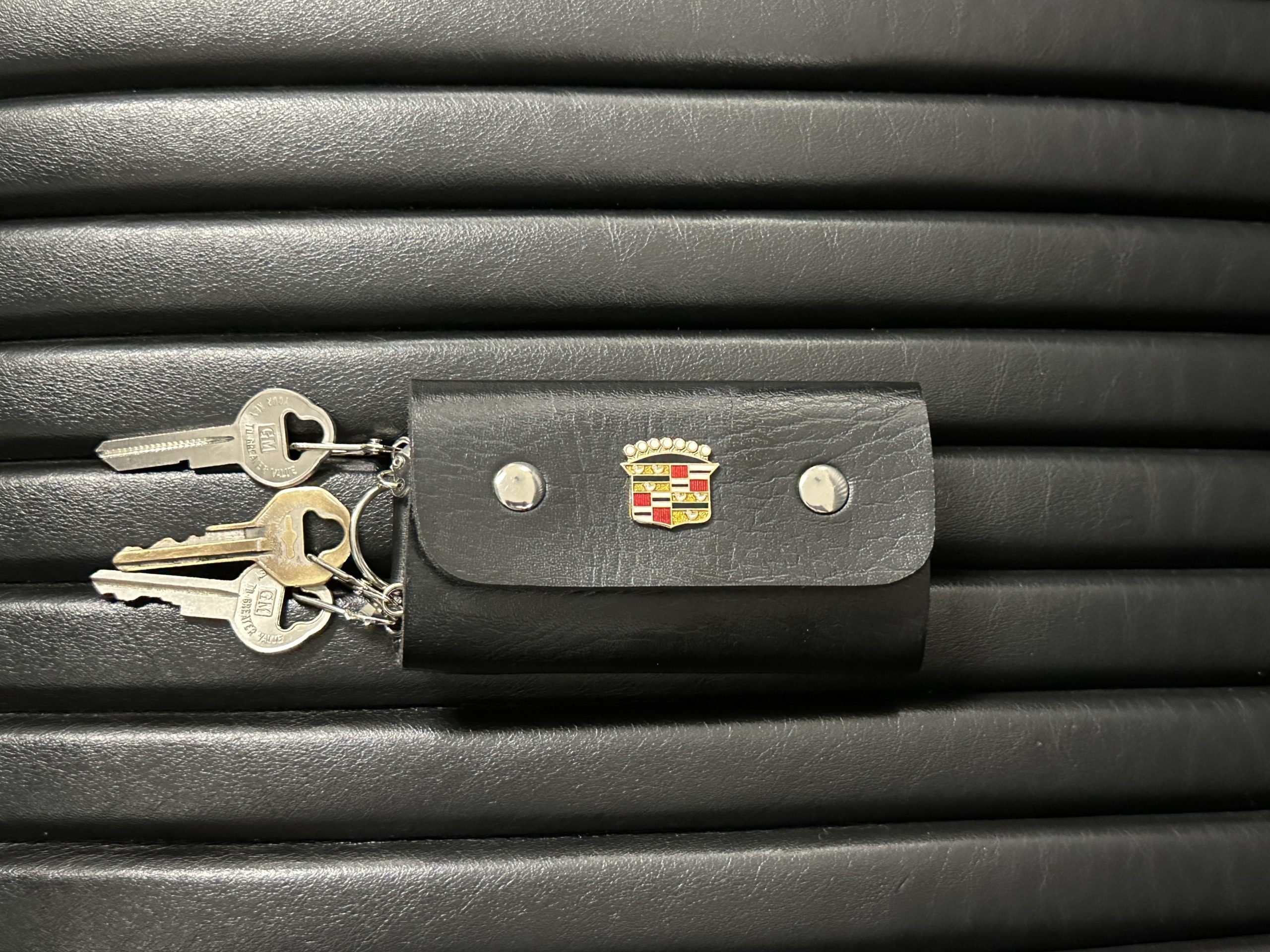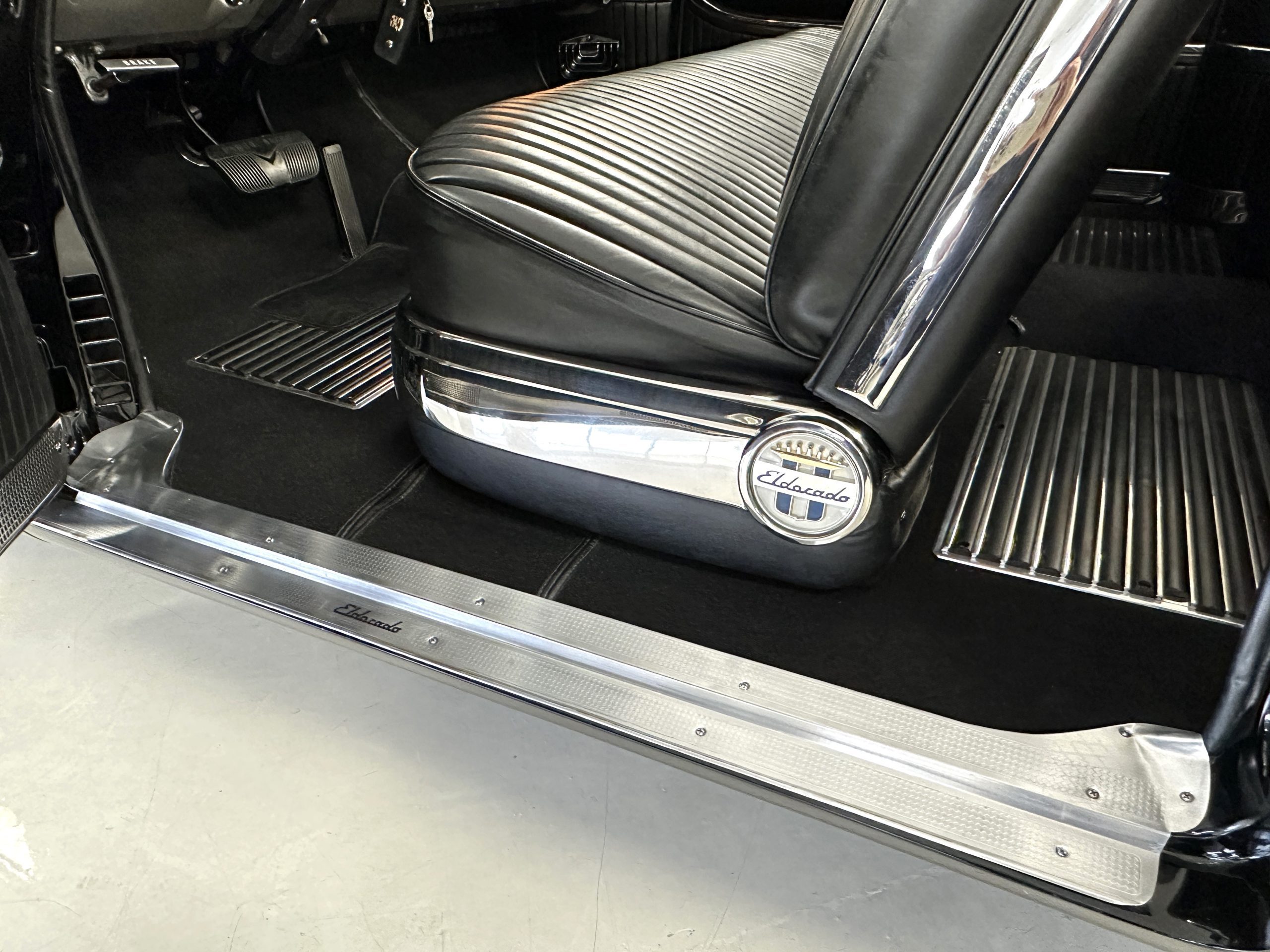 The gorgeous factory black paint (Paint Code 10) is absolutely stunning. She has incredible luster and is polished to perfection presenting a deep and rich mirror finish. The original and NOS trim details have all been meticulously replated and also polished to perfection. The door caps and side moldings are in as-new condition and devoid of imperfections. The 200-plus piece front grill was painstakingly completely disassembled and anodized in the correct gold color in California and includes a NOS Cadillac script logo. The gorgeous three-piece Sabre wheels were restored and anodized in the correct gold color by Valley Wire Wheels. She has perfect and correct new black vinyl power convertible top (Top Code 2) that had never been down before our photo shoot and operates flawlessly. The Parade Boot is in new condition and comes complete with the storage case which fits nicely into place inside the trunk with the factory correct holding straps.