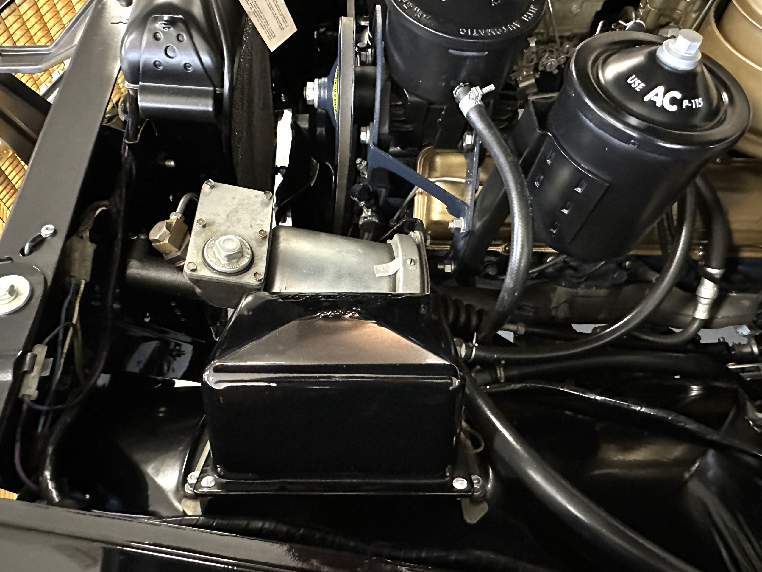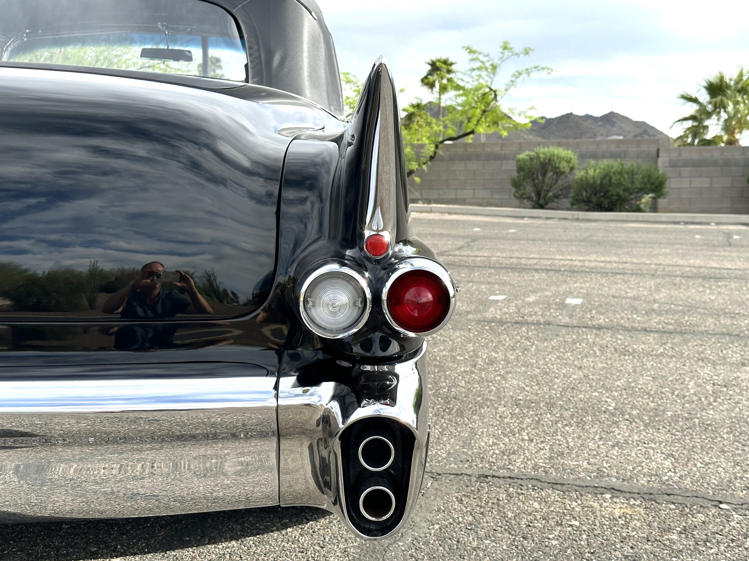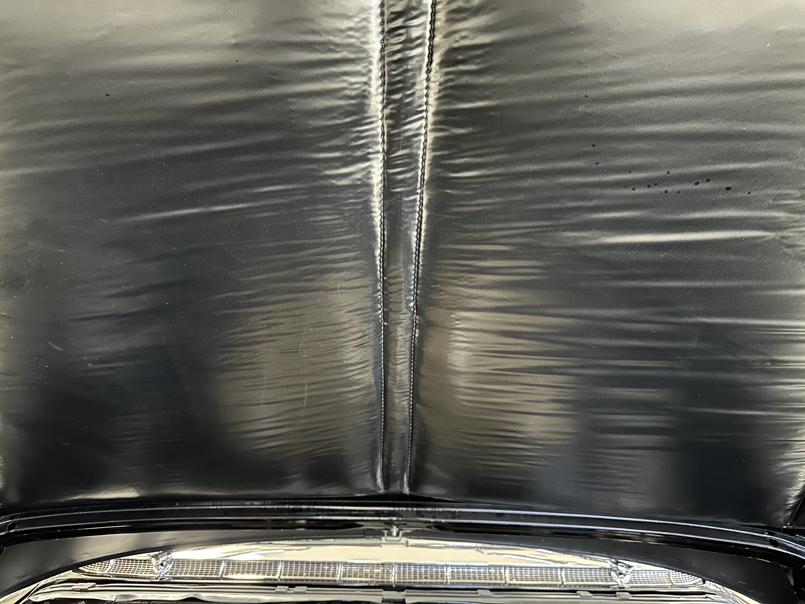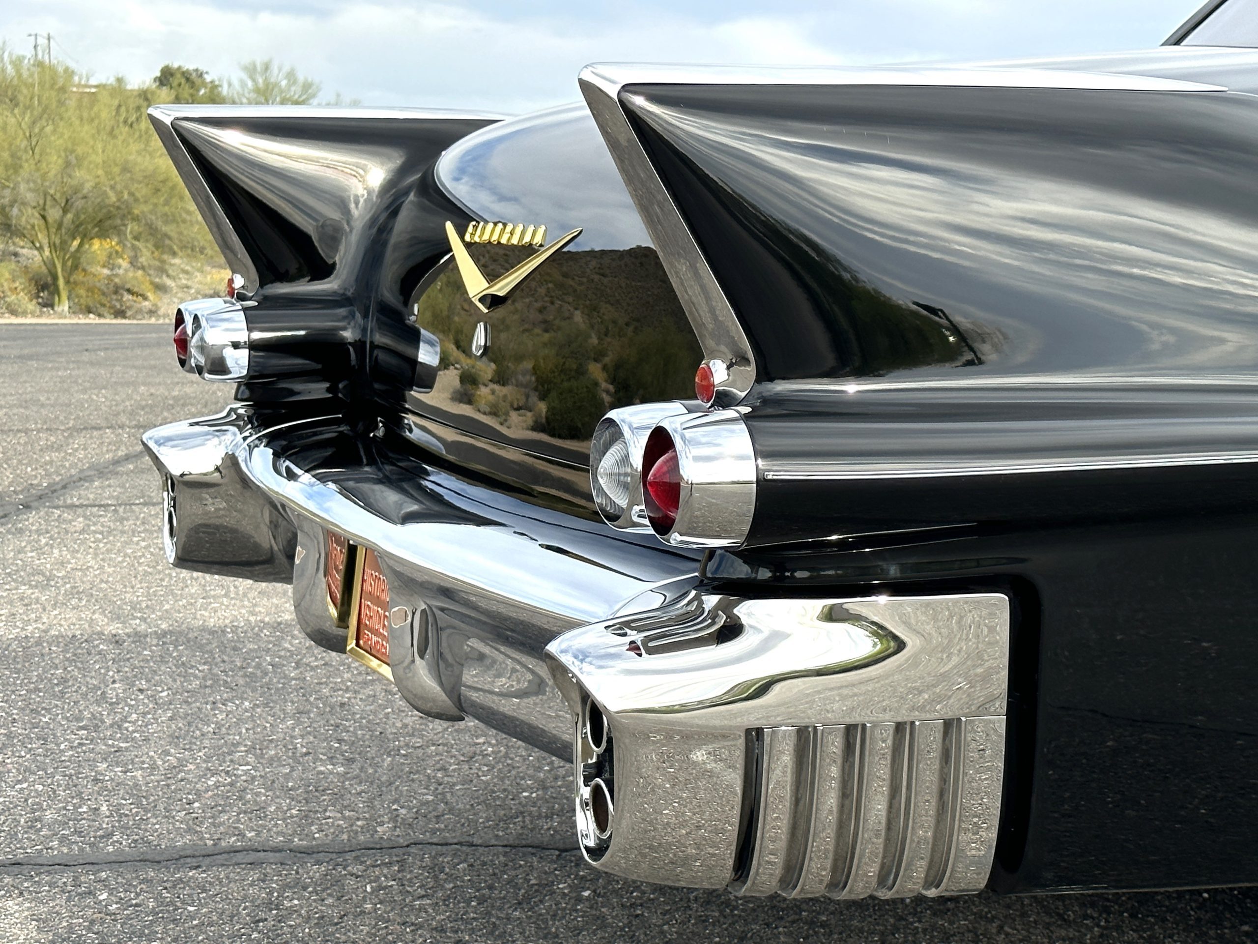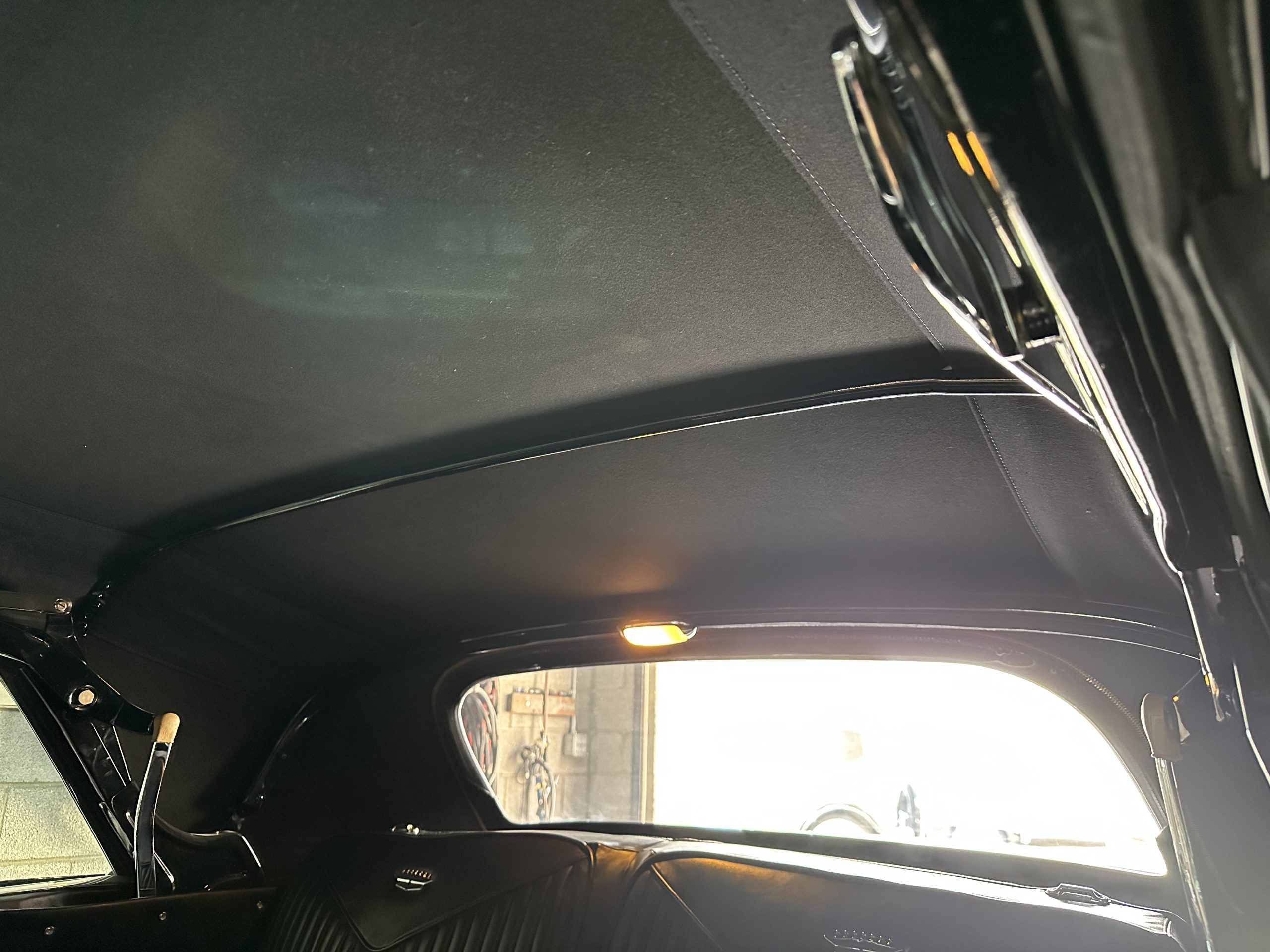 The gorgeous factory black paint (Paint Code 10) is absolutely stunning. She has incredible luster and is polished to perfection presenting a deep and rich mirror finish. The original and NOS trim details have all been meticulously replated and also polished to perfection. The door caps and side moldings are in as-new condition and devoid of imperfections. The 200-plus piece front grill was painstakingly completely disassembled and anodized in the correct gold color in California and includes a NOS Cadillac script logo. The gorgeous three-piece Sabre wheels were restored and anodized in the correct gold color by Valley Wire Wheels. She has perfect and correct new black vinyl power convertible top (Top Code 2) that had never been down before our photo shoot and operates flawlessly. The Parade Boot is in new condition and comes complete with the storage case which fits nicely into place inside the trunk with the factory correct holding straps.