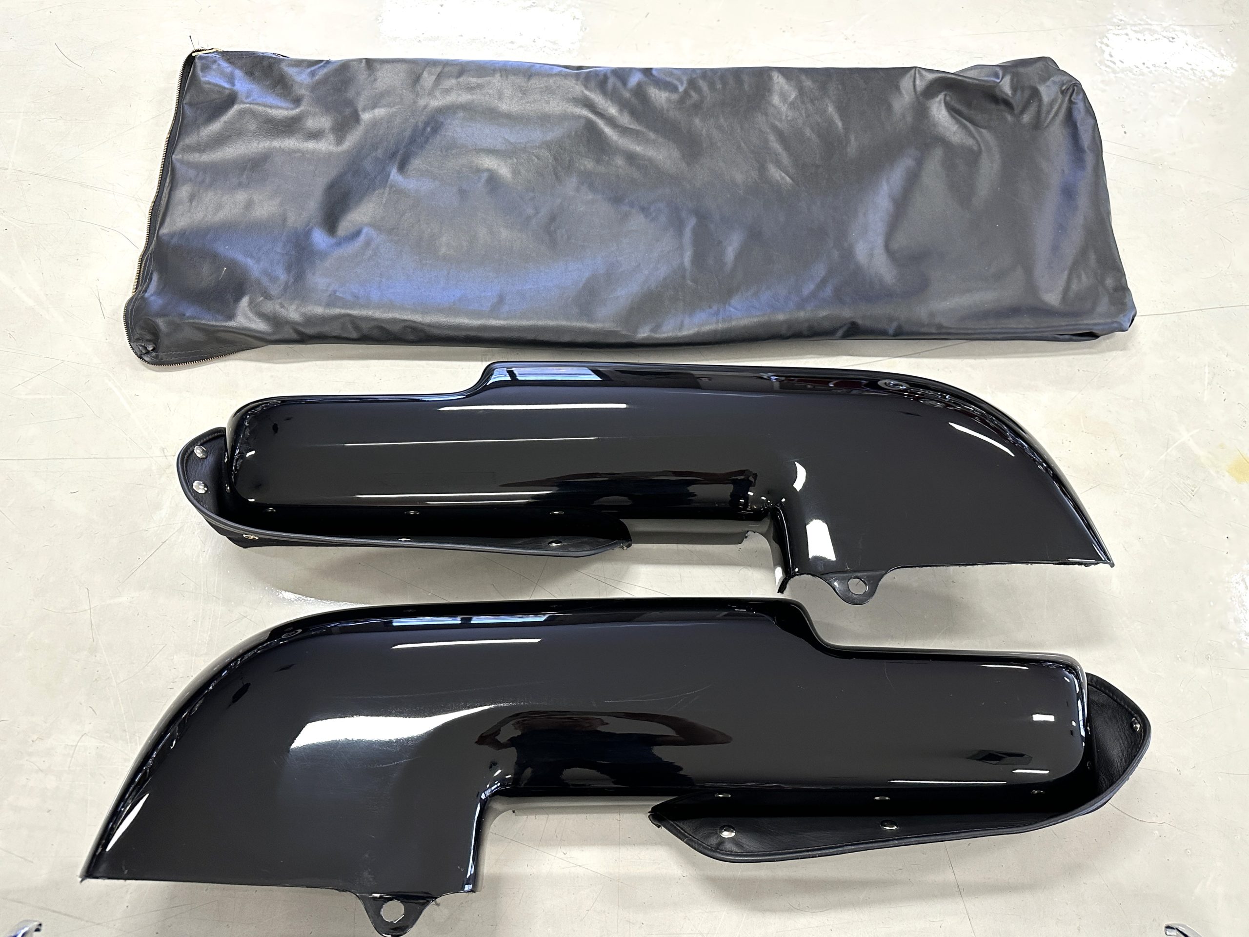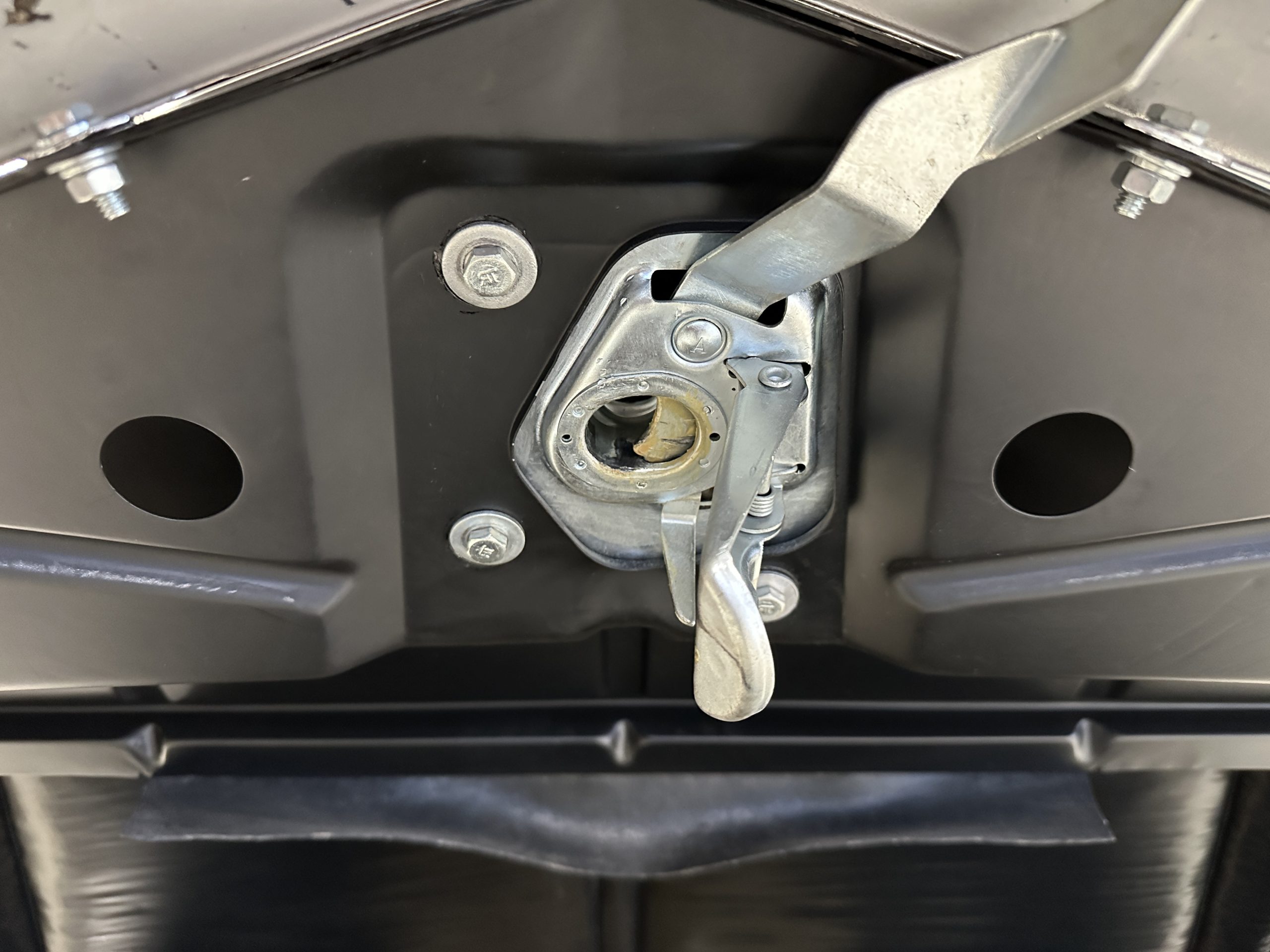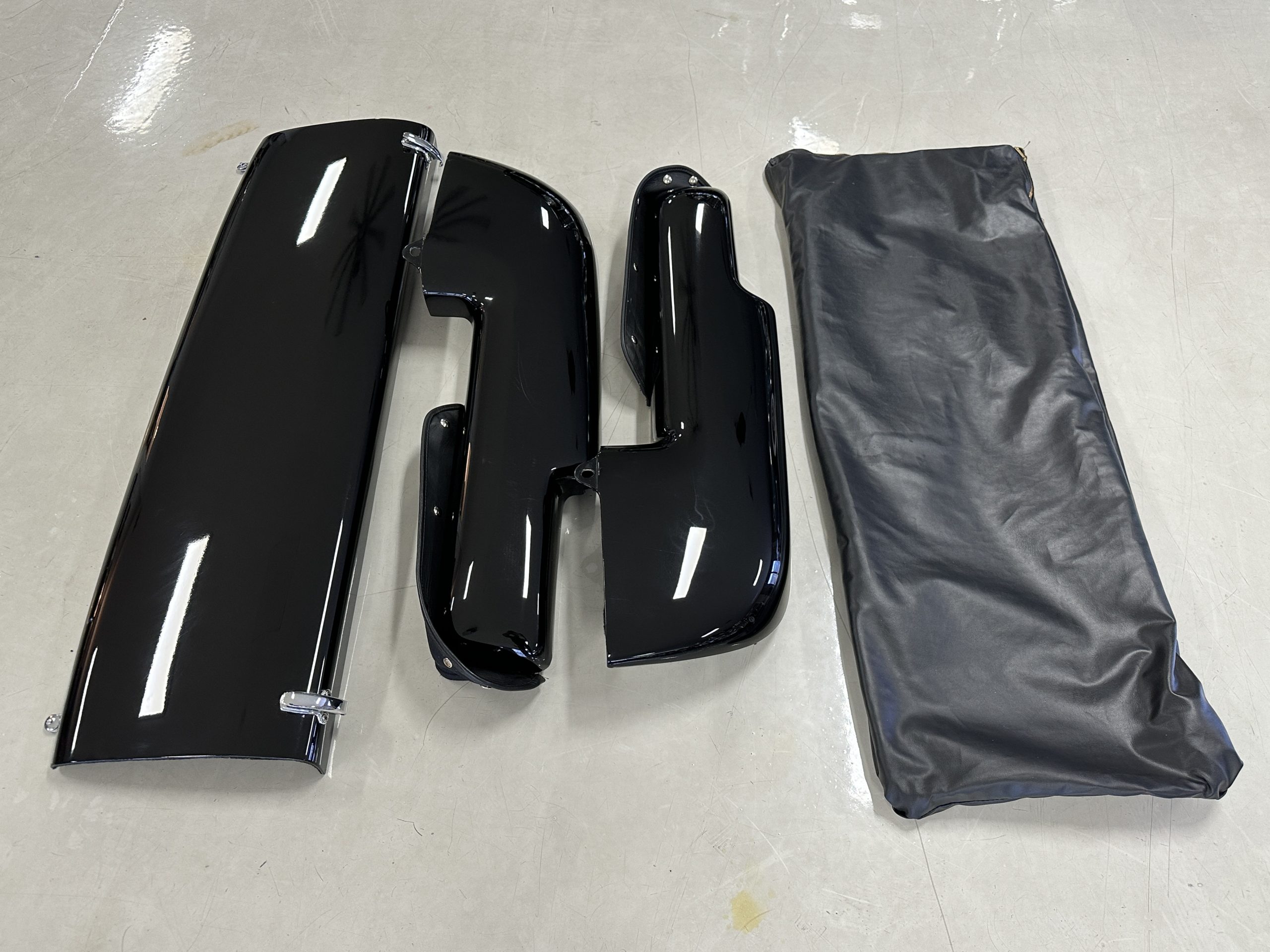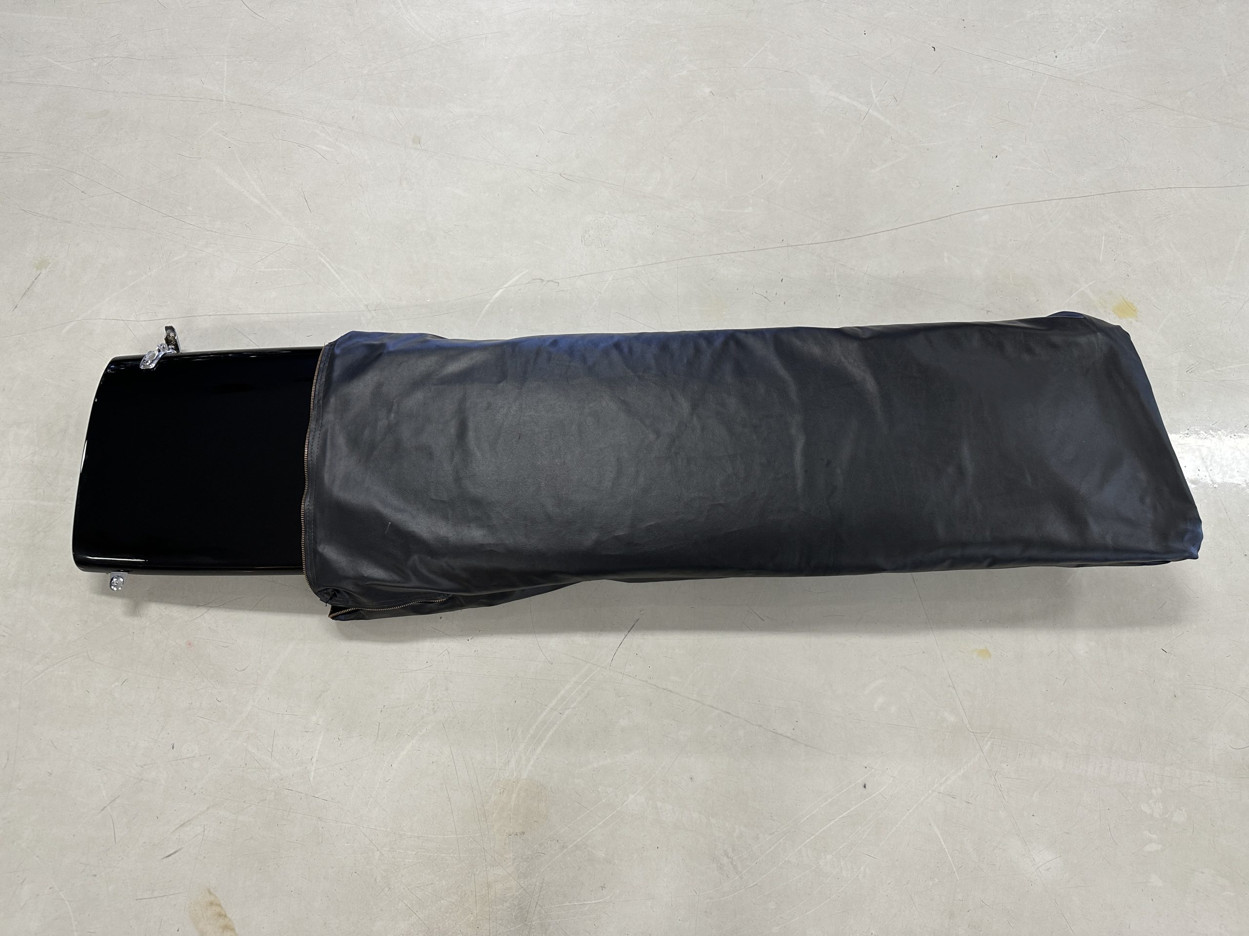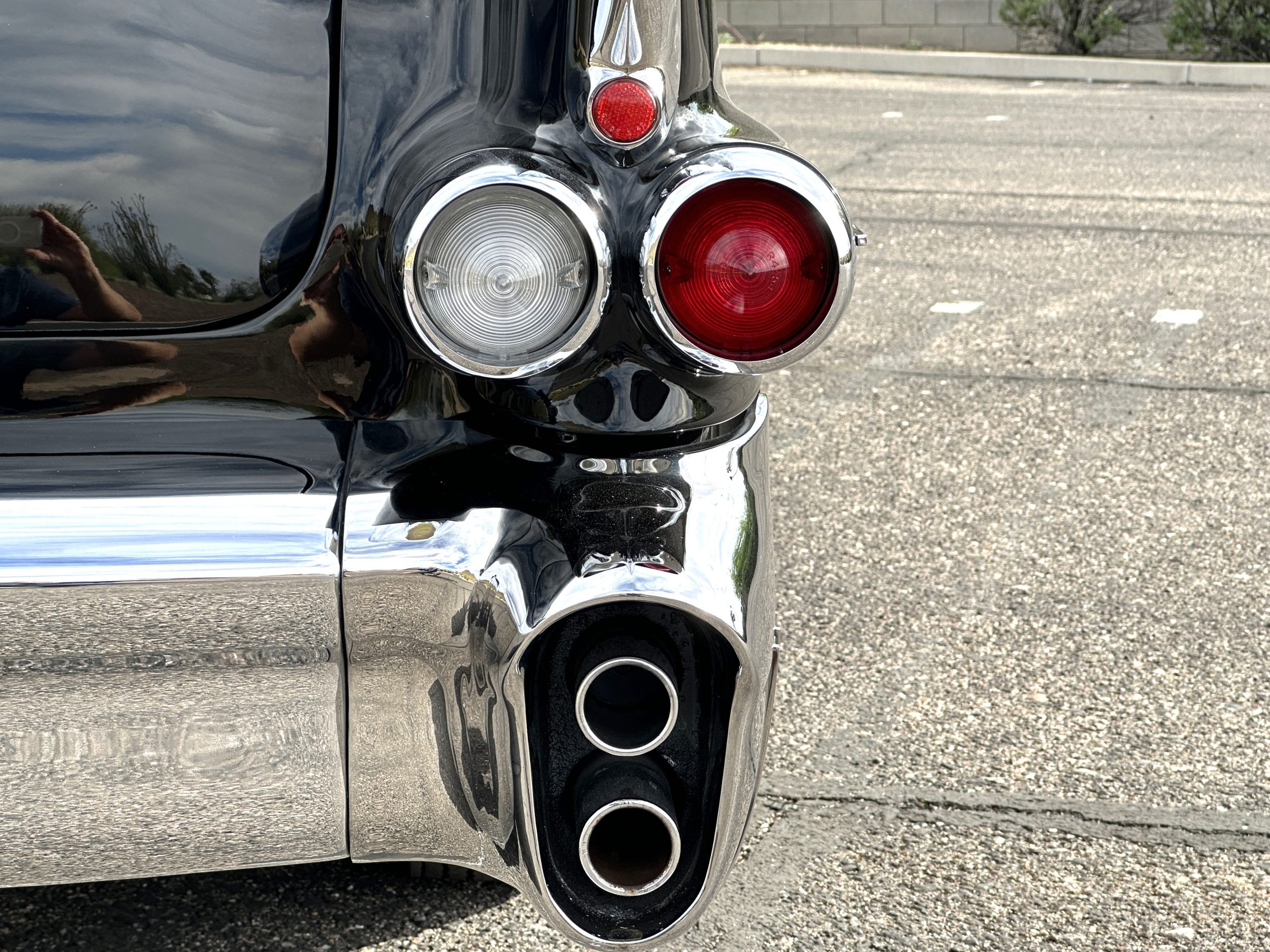 The gorgeous factory black paint (Paint Code 10) is absolutely stunning. She has incredible luster and is polished to perfection presenting a deep and rich mirror finish. The original and NOS trim details have all been meticulously replated and also polished to perfection. The door caps and side moldings are in as-new condition and devoid of imperfections. The 200-plus piece front grill was painstakingly completely disassembled and anodized in the correct gold color in California and includes a NOS Cadillac script logo. The gorgeous three-piece Sabre wheels were restored and anodized in the correct gold color by Valley Wire Wheels. She has perfect and correct new black vinyl power convertible top (Top Code 2) that had never been down before our photo shoot and operates flawlessly. The Parade Boot is in new condition and comes complete with the storage case which fits nicely into place inside the trunk with the factory correct holding straps.
