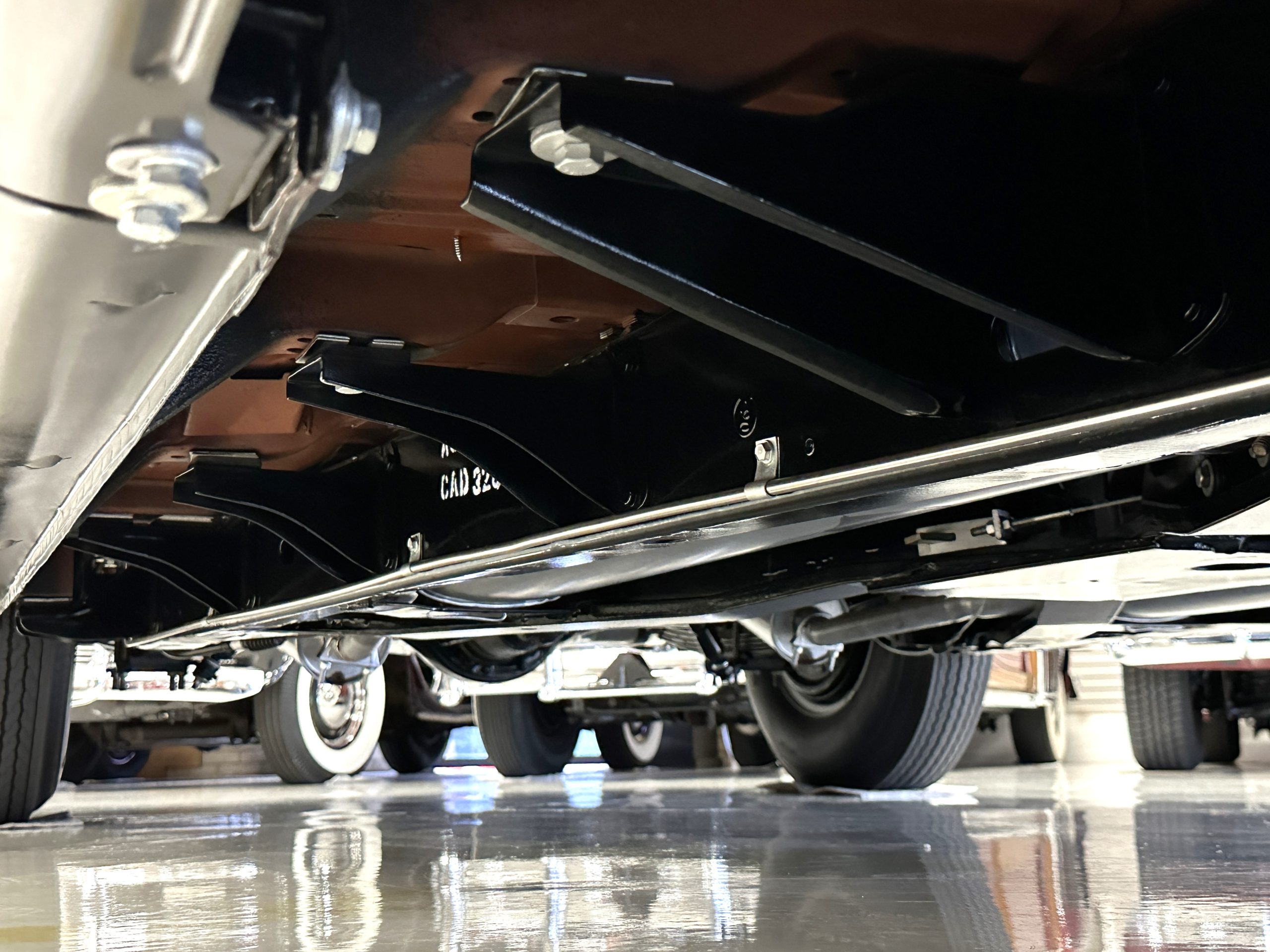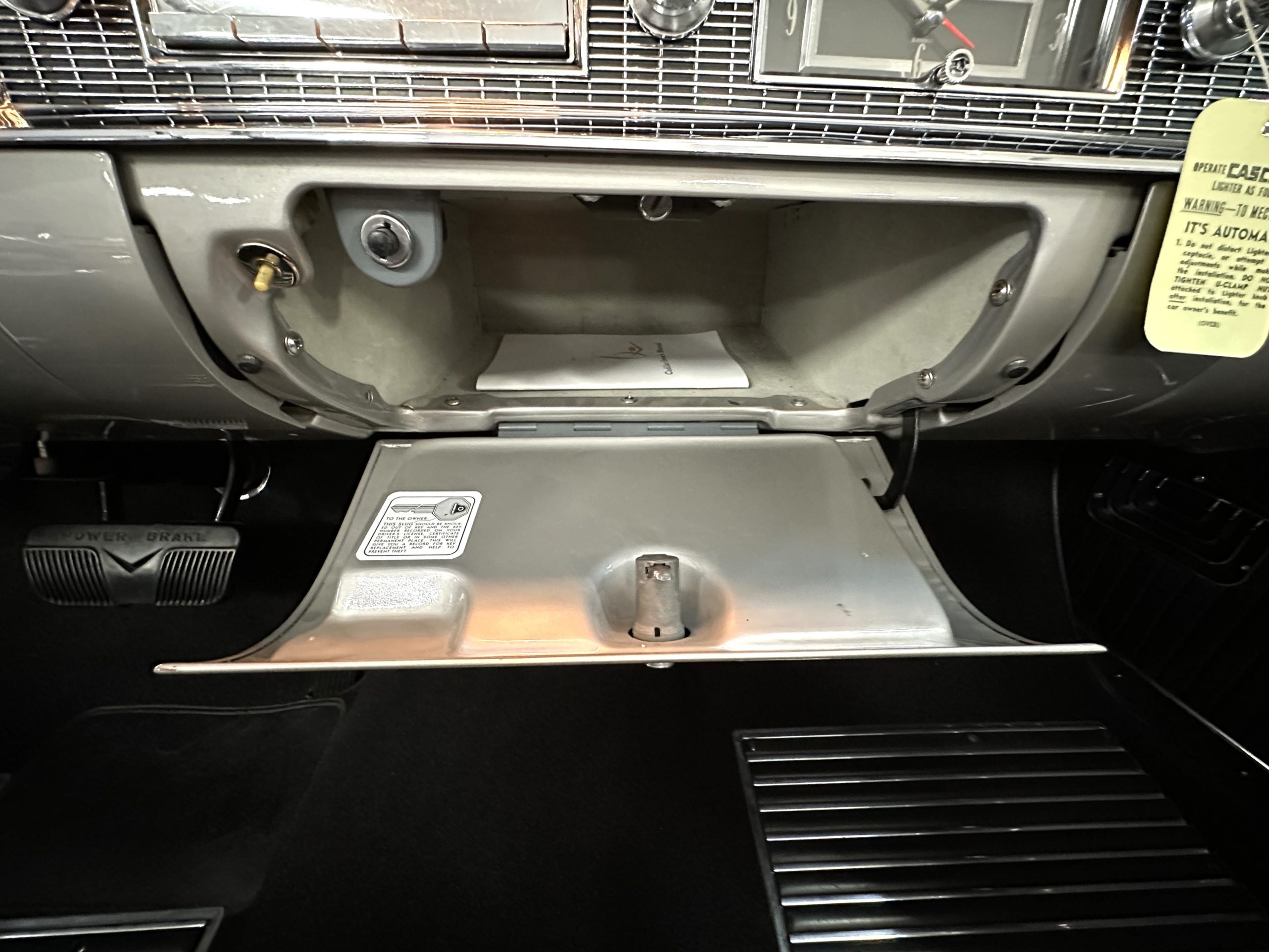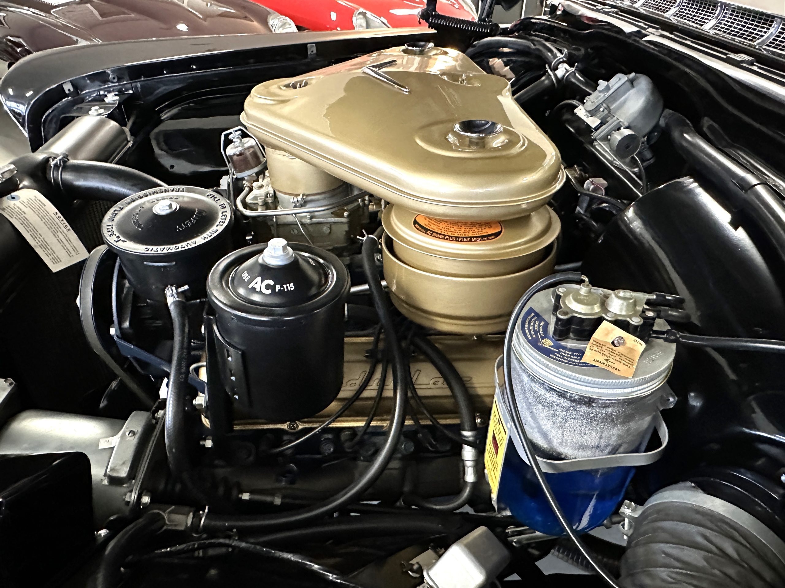 The engine compartment is in concours condition and shows as factory correct and new. The matching numbers drivetrain is powered by a newly rebuilt 365 ci overhead valve V-8 producing 305 hp through the dual 4-barrel carburetors. The power is transferred through a newly restored 4-speed Hydra-Matic Automatic Transmission. Her underbody has been coated in the factory-correct Red Oxide Primer and shows as new. All suspension parts and brakes are all correct and in new condition. This Biarritz has completed less than 40 miles since the completion of the restoration.