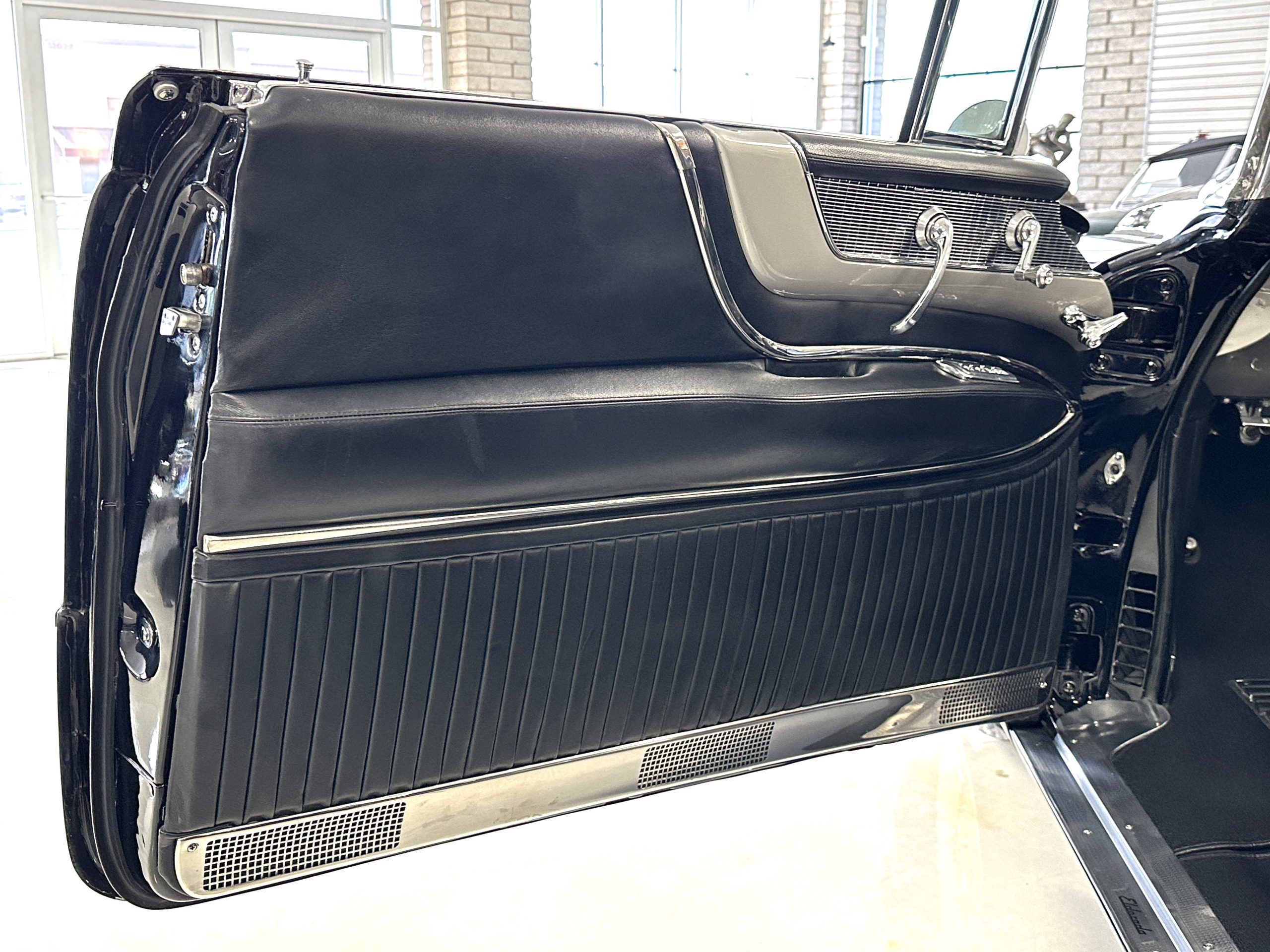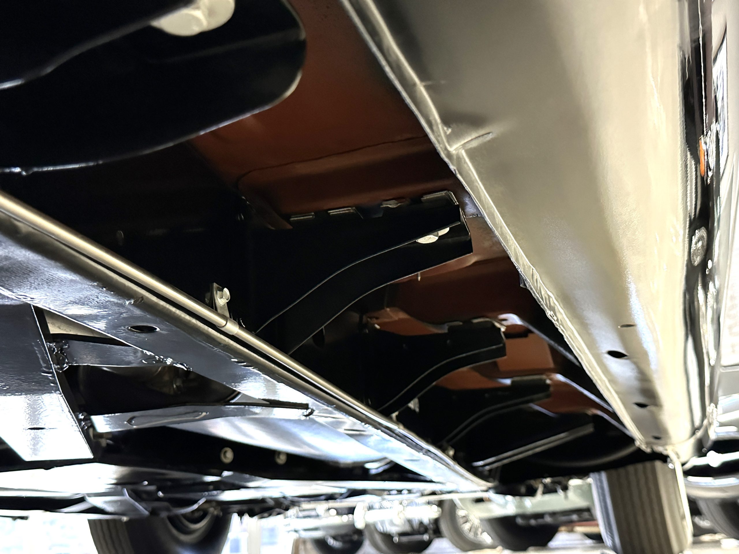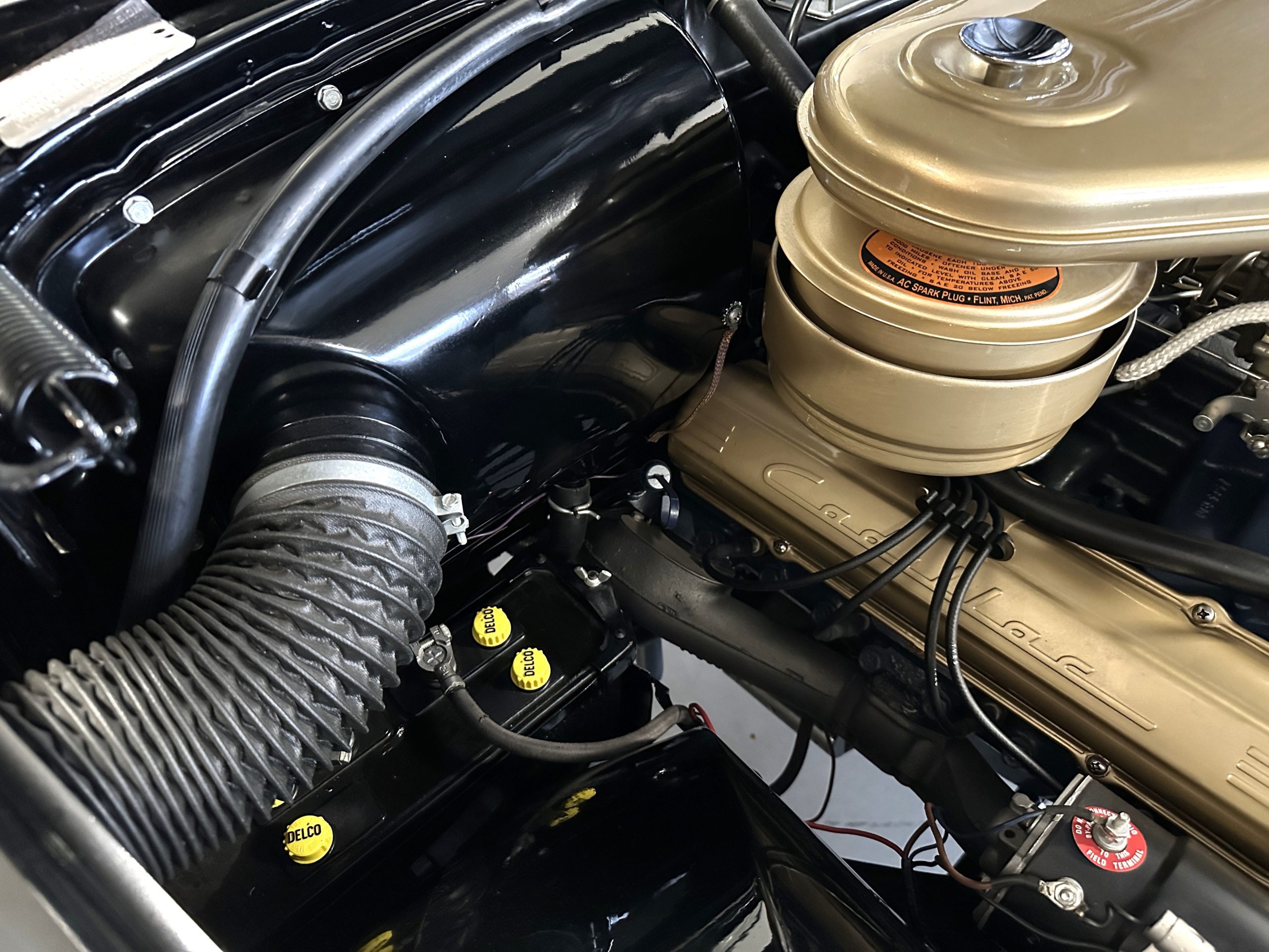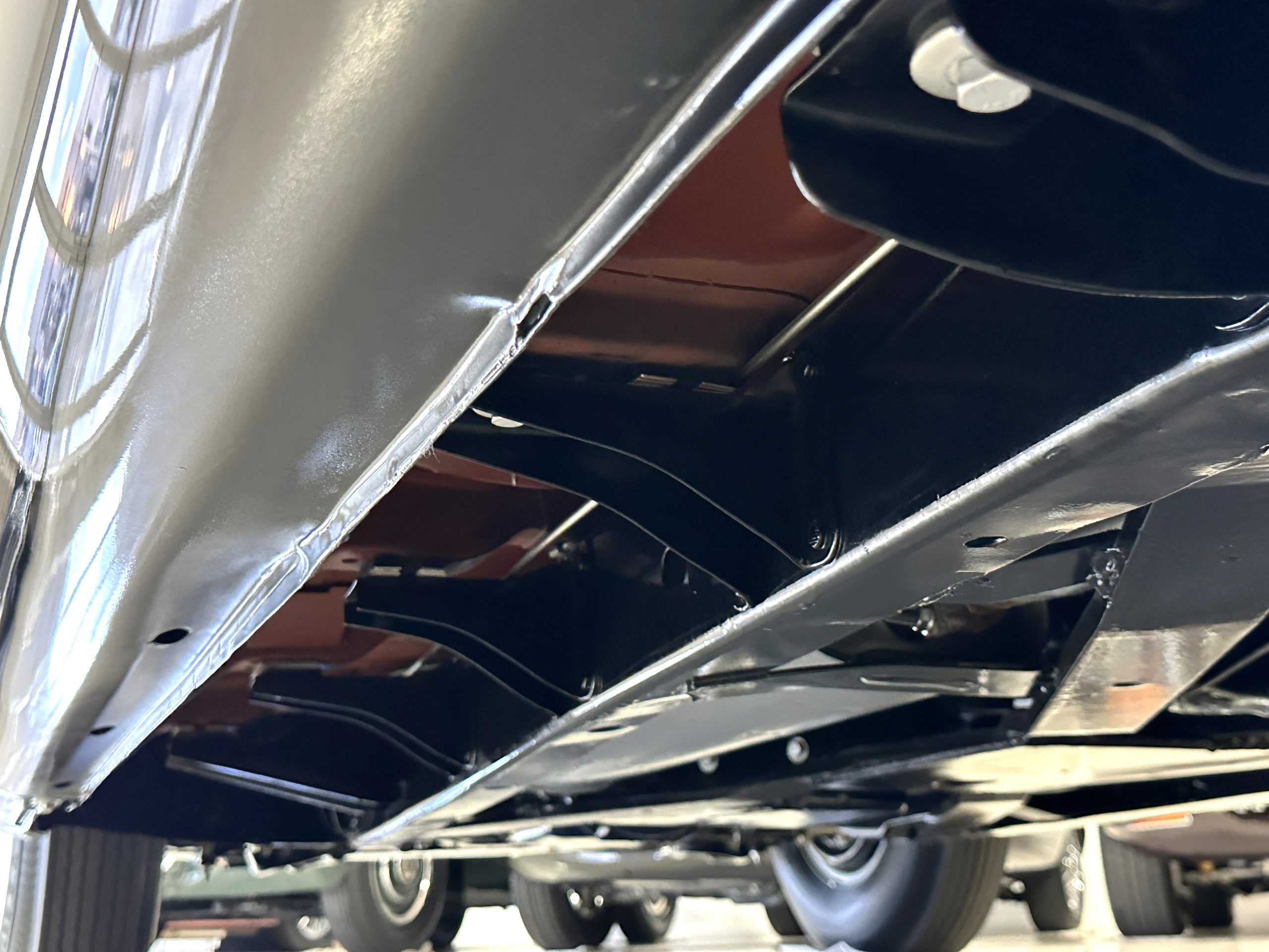 The engine compartment is in concours condition and shows as factory correct and new. The matching numbers drivetrain is powered by a newly rebuilt 365 ci overhead valve V-8 producing 305 hp through the dual 4-barrel carburetors. The power is transferred through a newly restored 4-speed Hydra-Matic Automatic Transmission. Her underbody has been coated in the factory-correct Red Oxide Primer and shows as new. All suspension parts and brakes are all correct and in new condition. This Biarritz has completed less than 40 miles since the completion of the restoration.