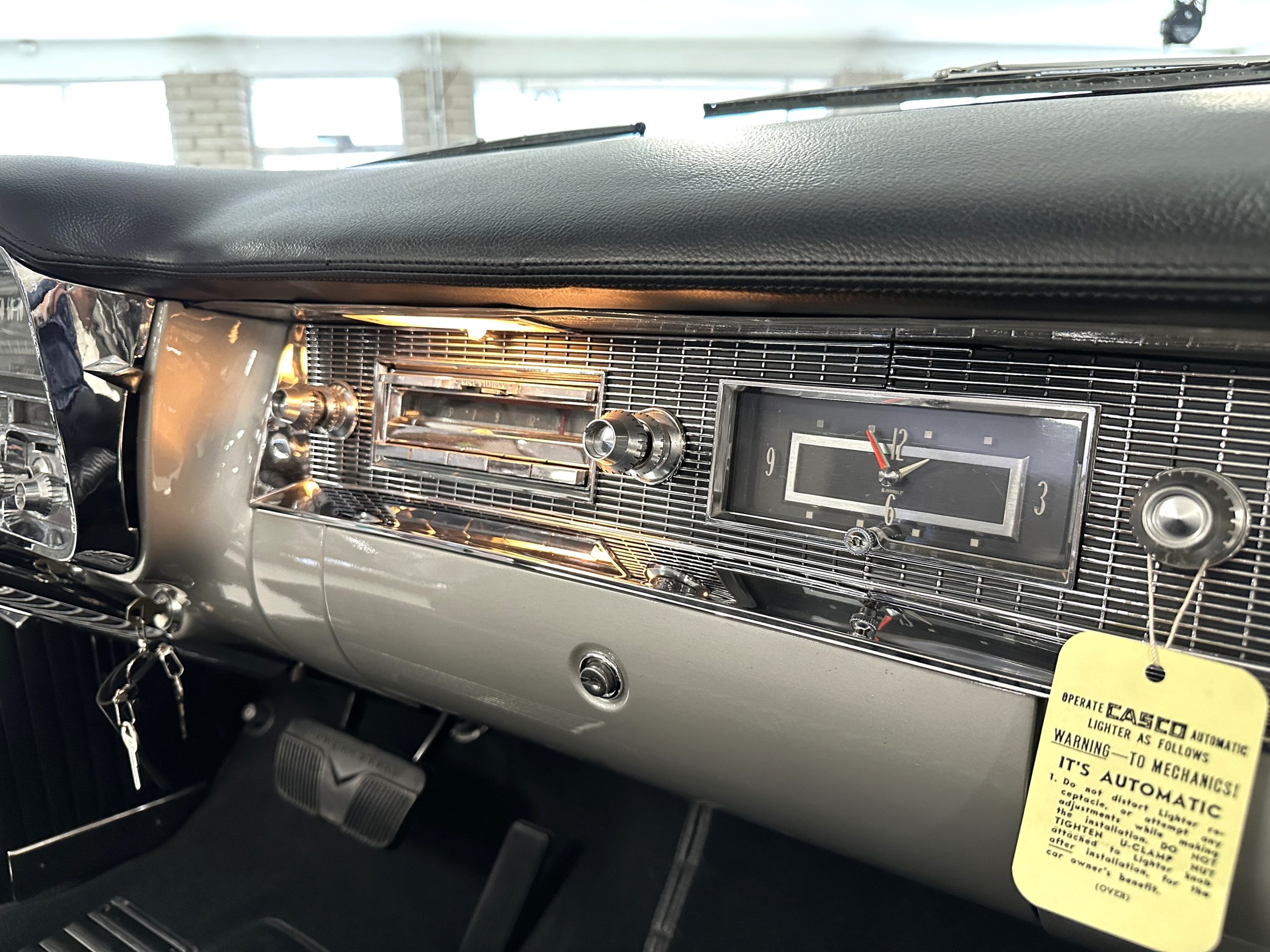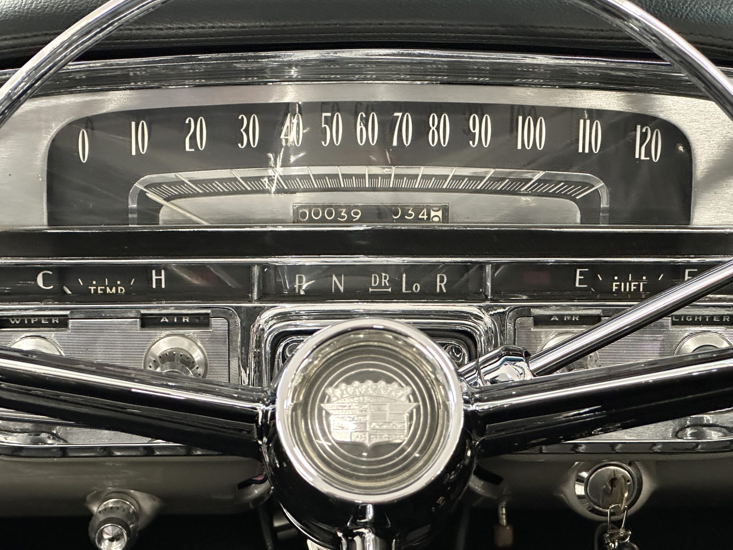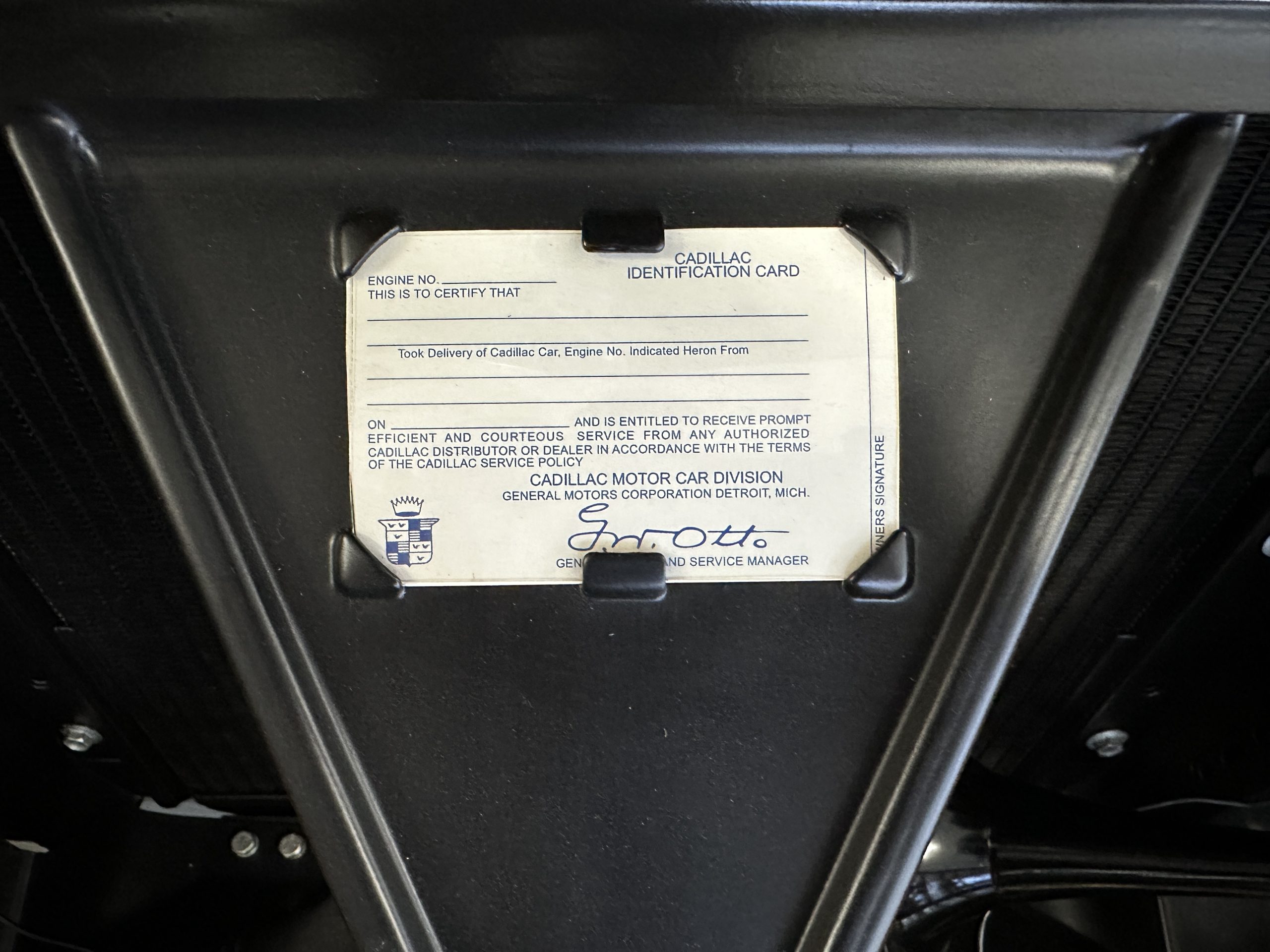 The flawless black-on-black leather interior (Trim Code 11) is factory correct and was restored by Carl Kranston of Original Leather Interiors. It was a seven-month process which required seven cow hides, the most of any Cadillac model. The interior is well optioned and includes the signal-seeking Wonder Bar AM radio, EZ Eye glass (Accessory Code E), Heater (Accessory Code H), Autronic-Eye, Remote Control Trunk Lock (Accessory Code S) and Casco Automatic cigar/cigarette lighter. The overall attention to detail and finish of the interior is stunning and show as new, or better-than-new.