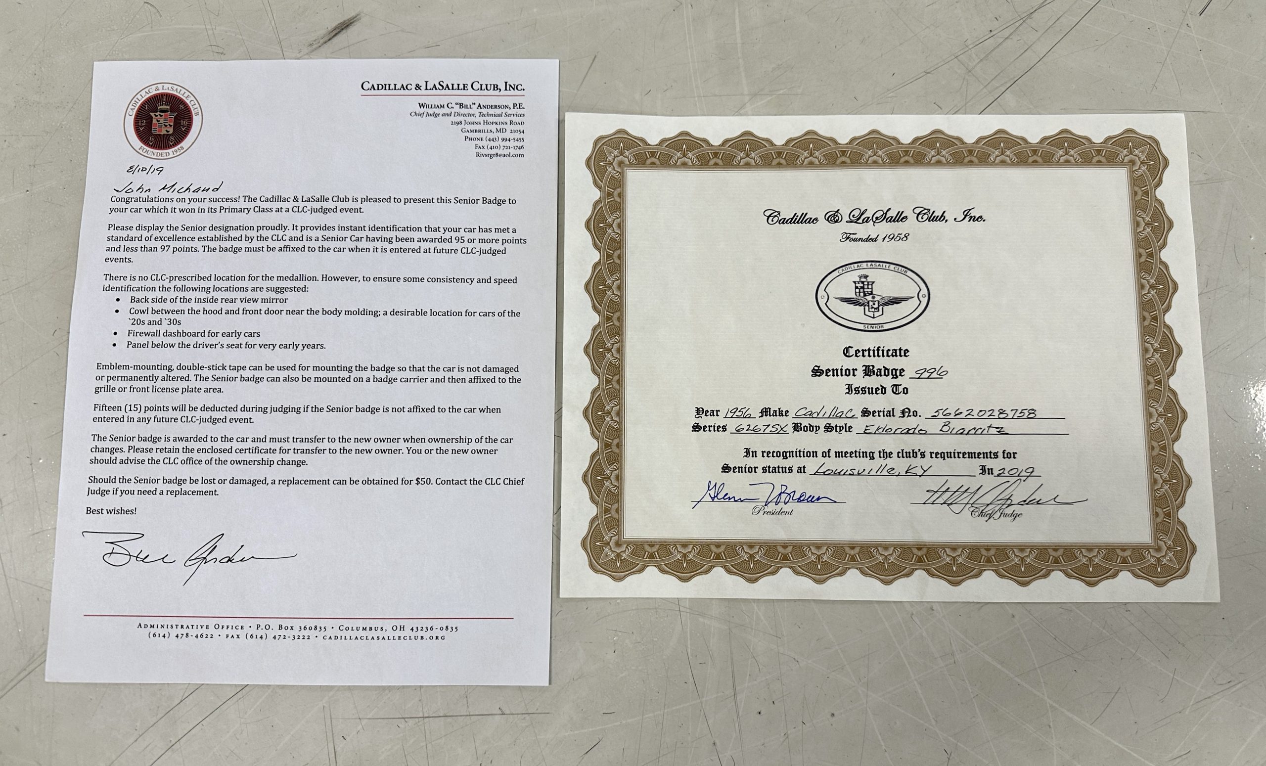 This Biarritz comes complete with photos recording the restoration process, extensive restoration documents, receipts, owner’s manuals, Cadillac advertising glamor brochure, Cadillac Shop Manual, Official Judging Manual, Authenticity Manual and Cadillac Parts List Manual.