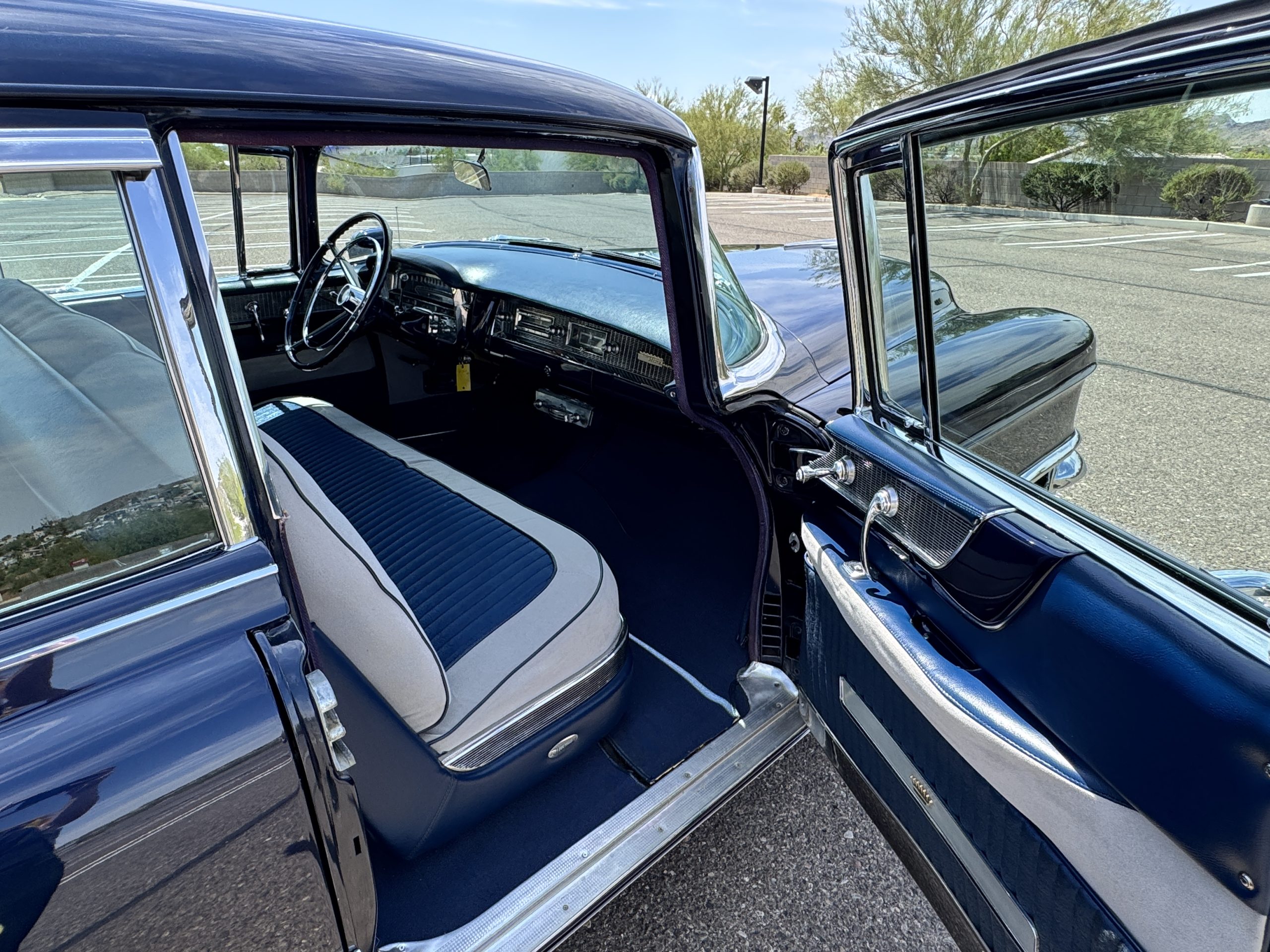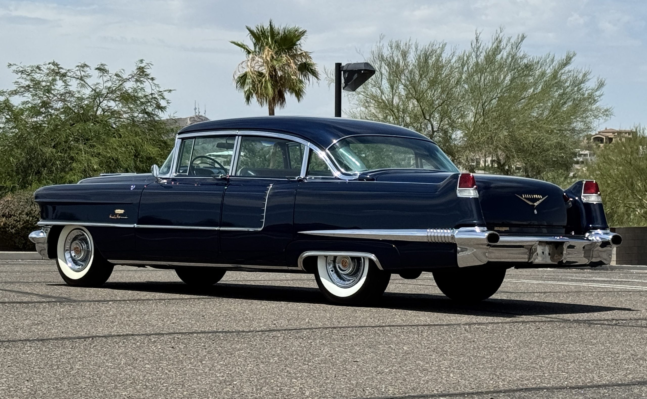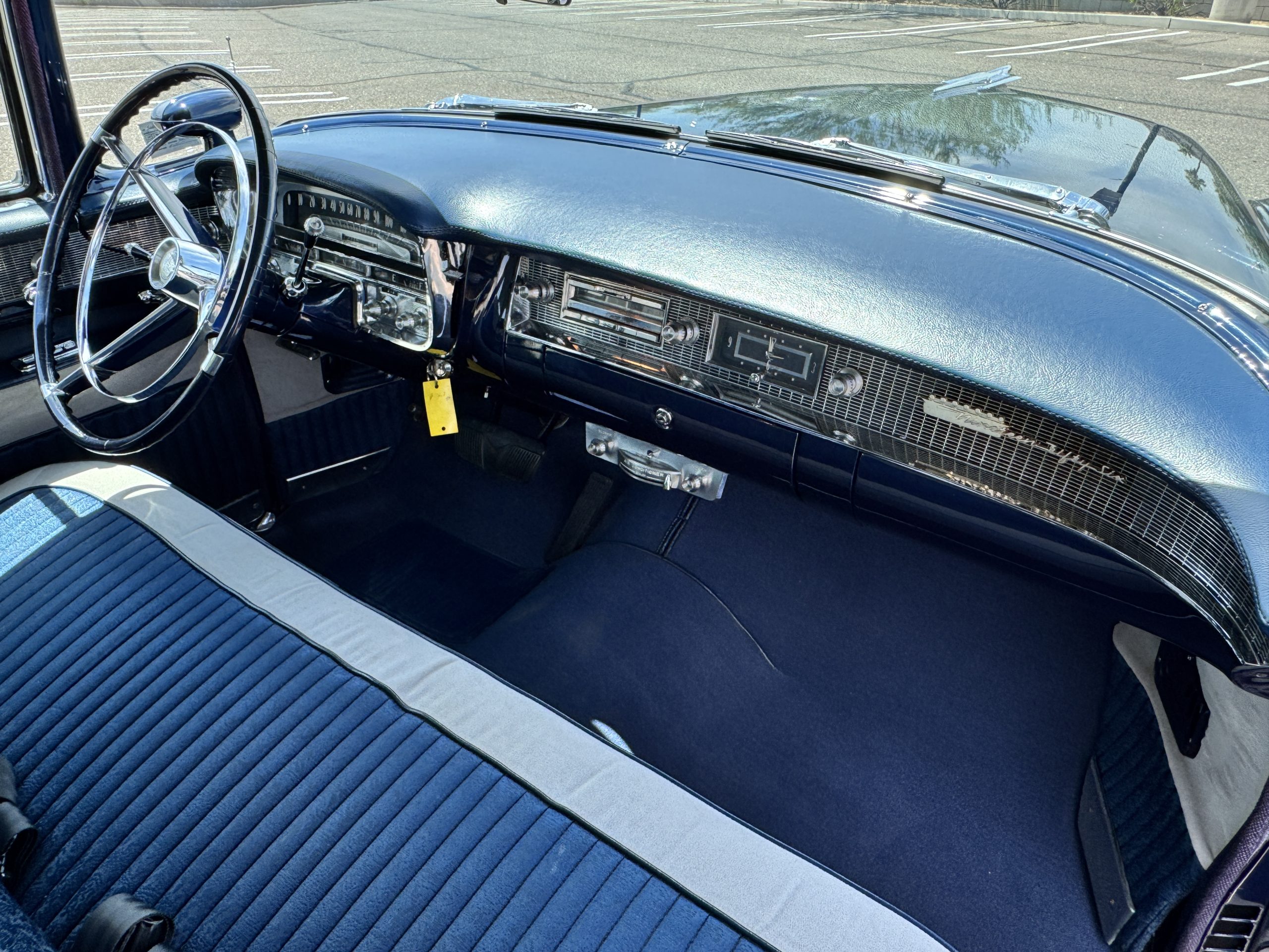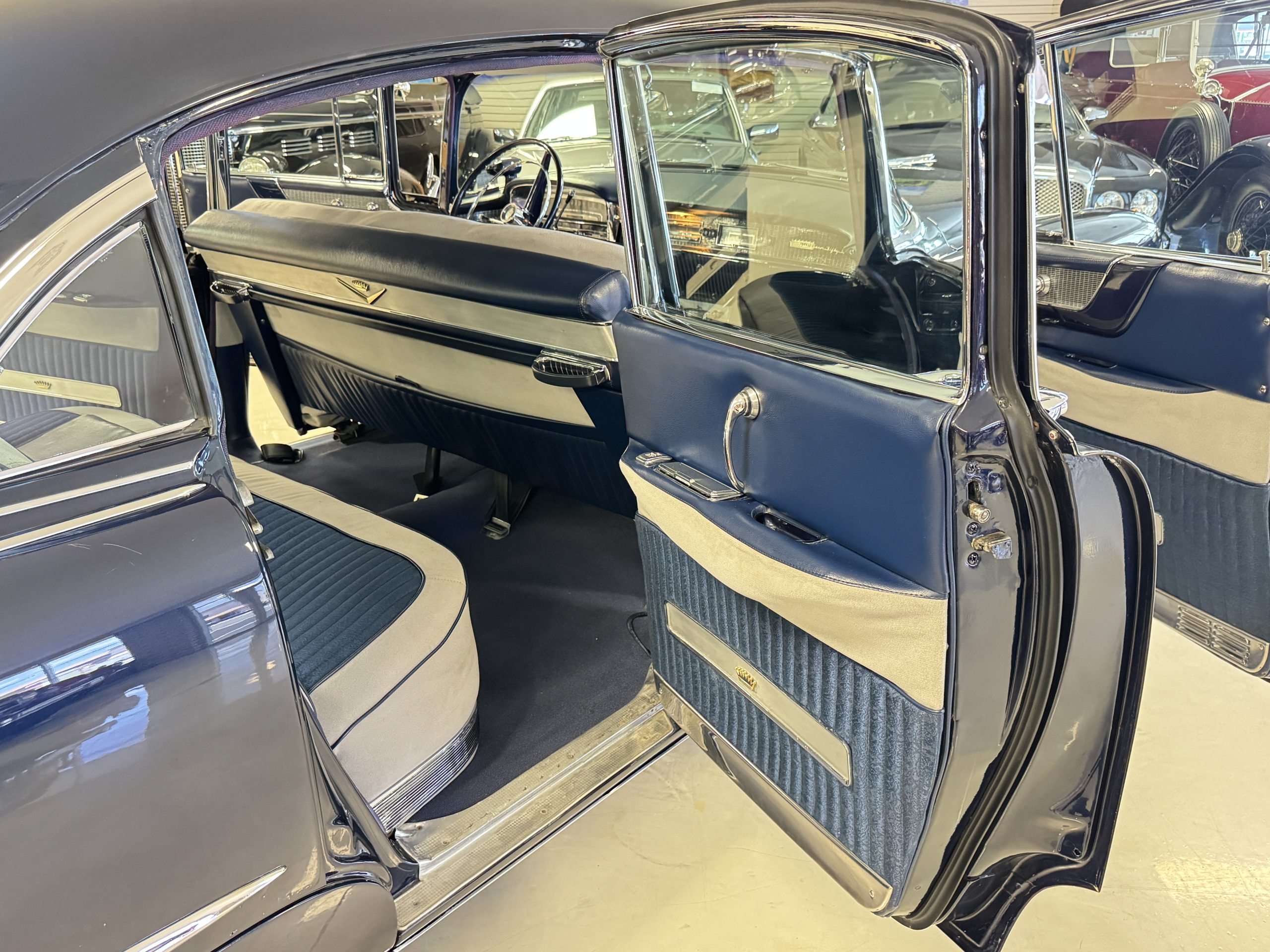 This is a beautiful 1956 Cadillac Fleetwood Sixty Special that is an older restoration that is in very good overall condition with 21,000 miles. The Sixty Special was top of the line model offered by Cadillac that has a spacious and luxurious interior similar to a limousine. The gorgeous Cobalt Blue exterior with the rare optional gold trim along with front and rear air conditioning, make this an ideal classic daily driver, weekend show car or touring.