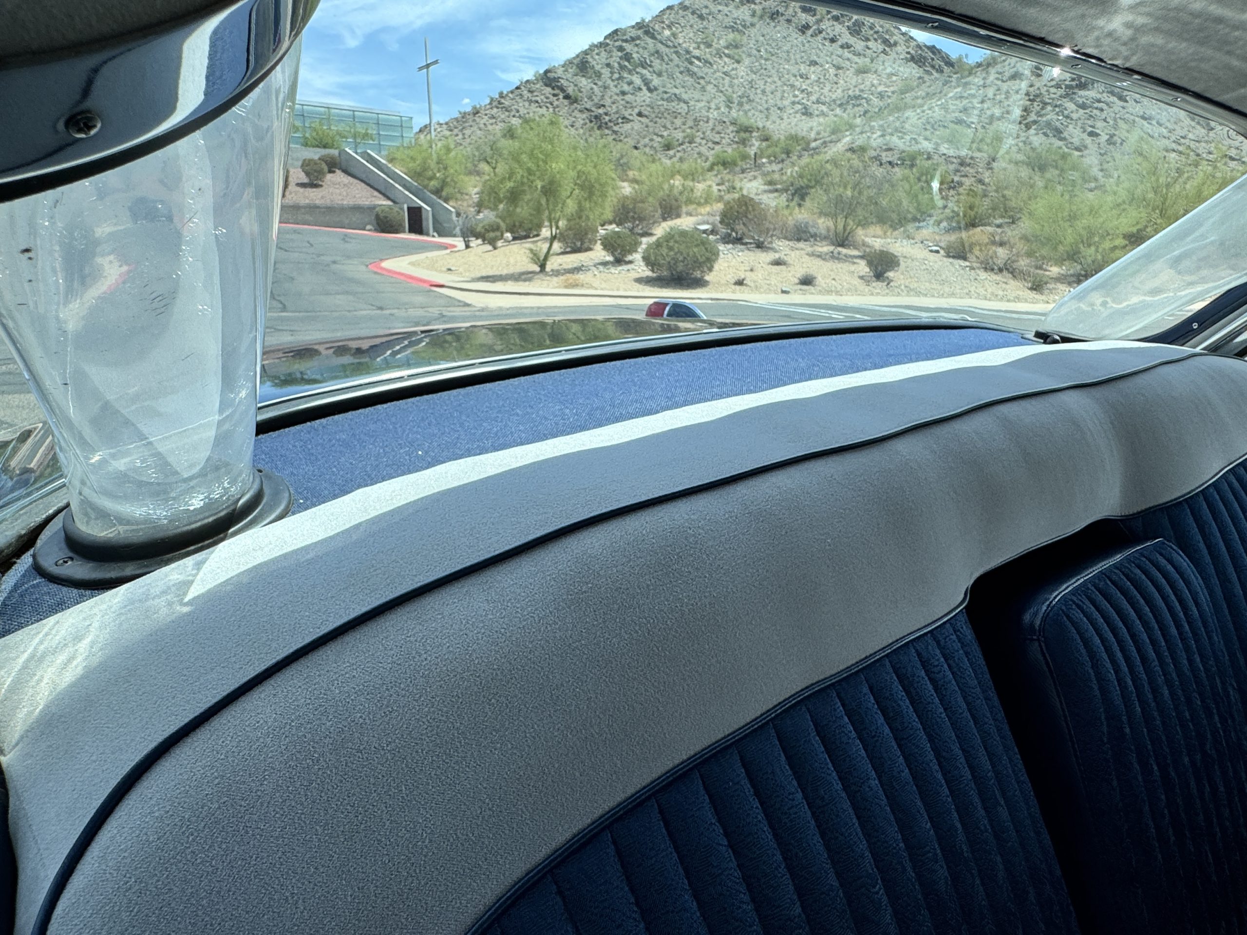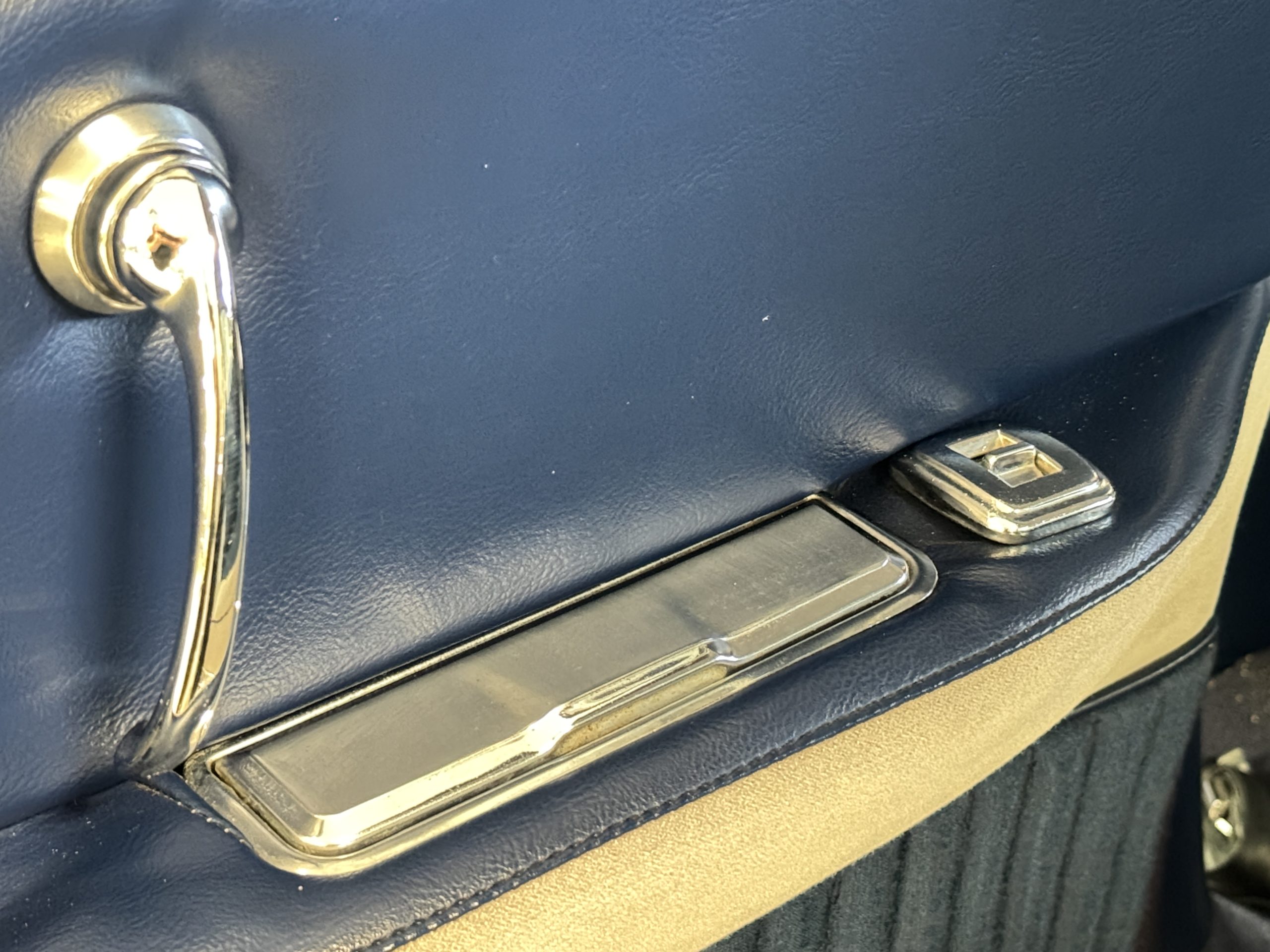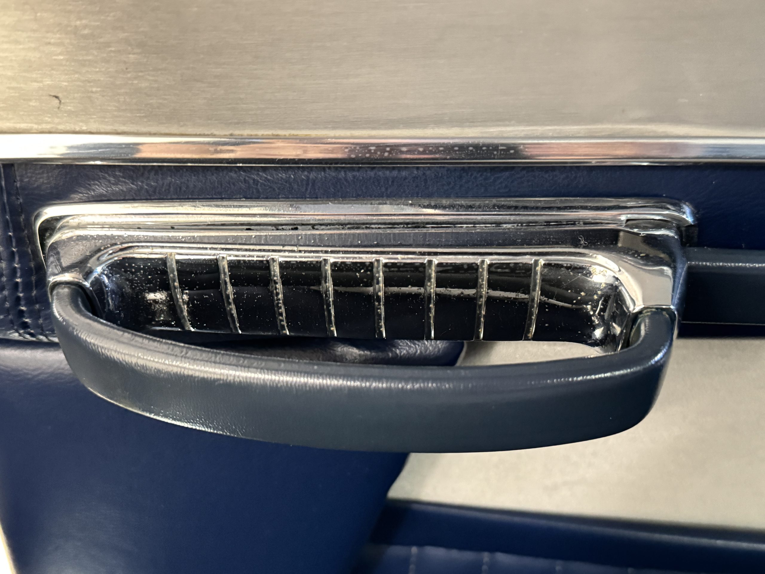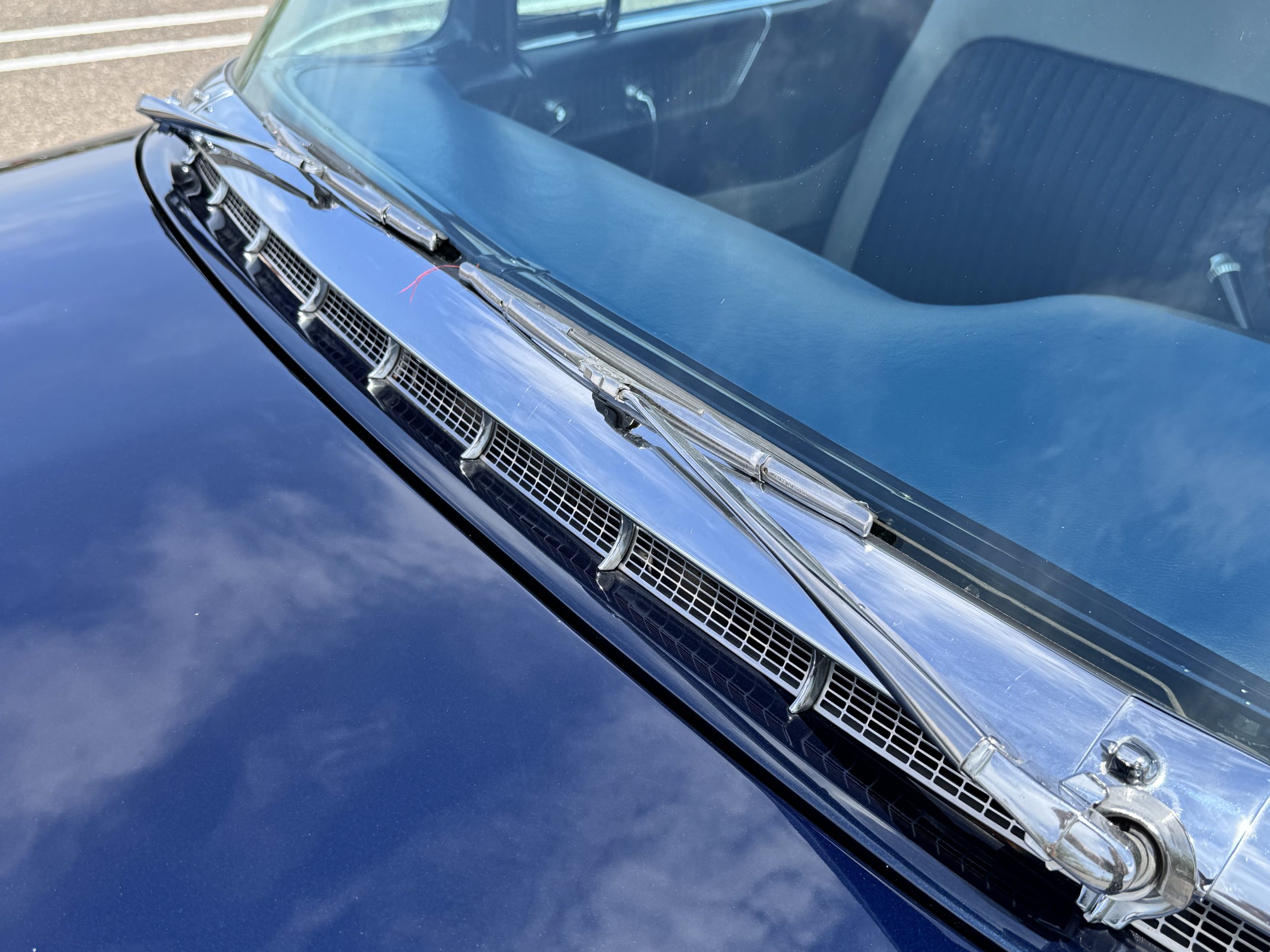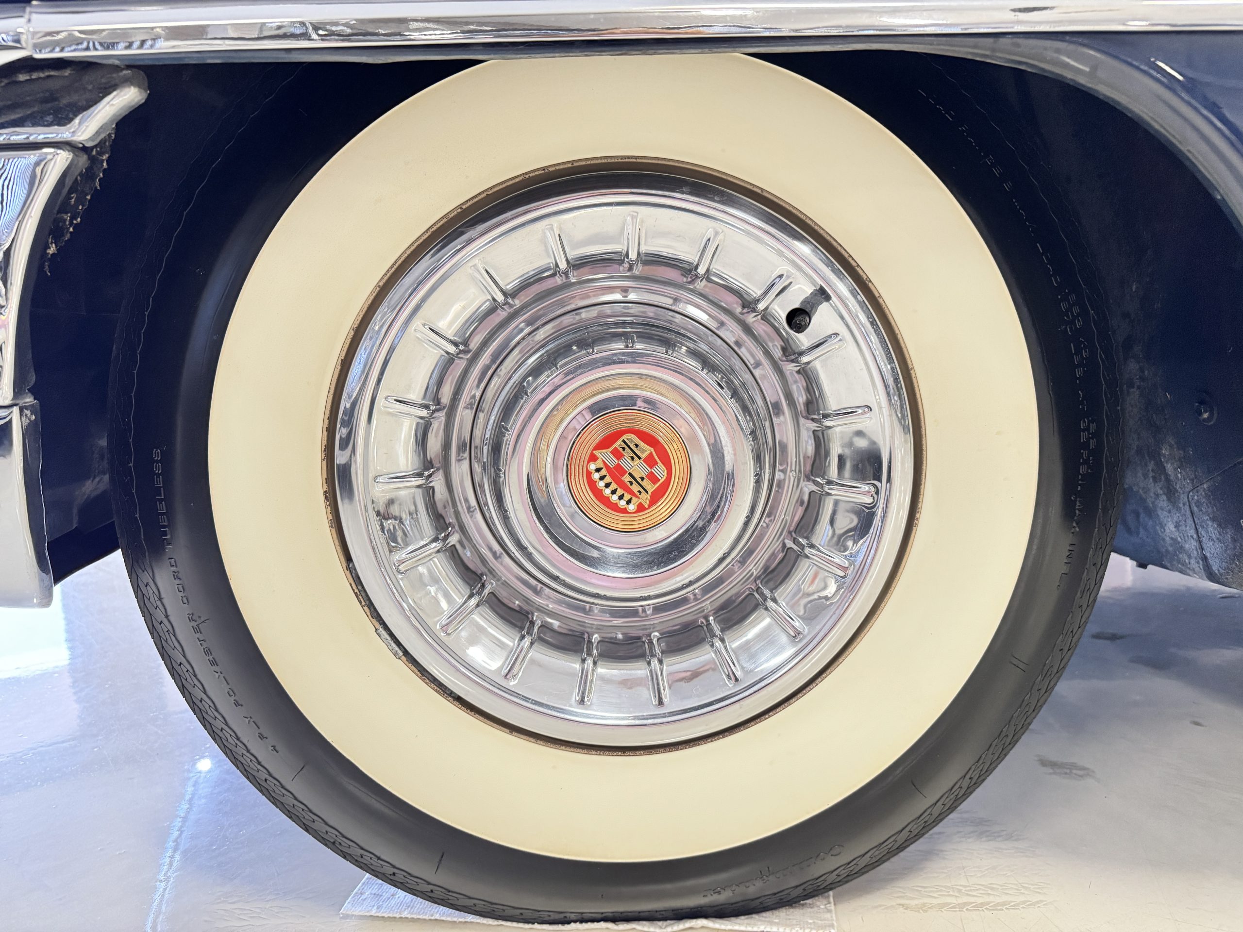 The Cobalt Blue (Paint Code 26) paint has a beautiful shine and luster and is in great condition with minimal rock chips that have been touched up from normal use. The original color combination for this car is Pecos Beige (Paint Code 44) and Taupe Metallic (Paint Code 48) and was changed to Cobalt Blue when restored.  The gold anodized grill is original and is in great condition! The gold anodized grill is a rare upgrade for the Sixty Special that stems from the highly popular Eldorado models. The chrome and stainless-steel trim are beautifully polished and largely show quality with normal imperfections from use. The Cobalt Blue paint is complemented by the American Classic bias-ply wide whitewall tires with two brand new tires. A filler test has been completed with clean results. The exterior is in overall very good condition and needs nothing to be enjoyed!