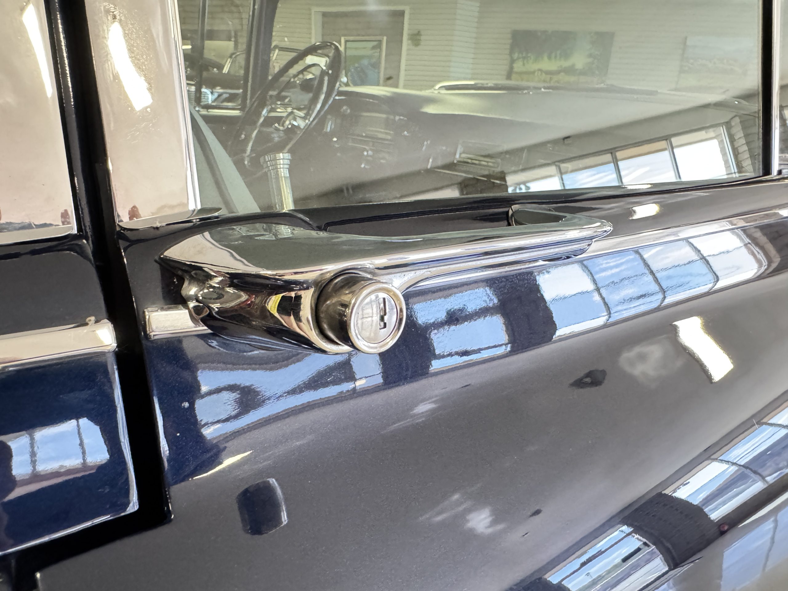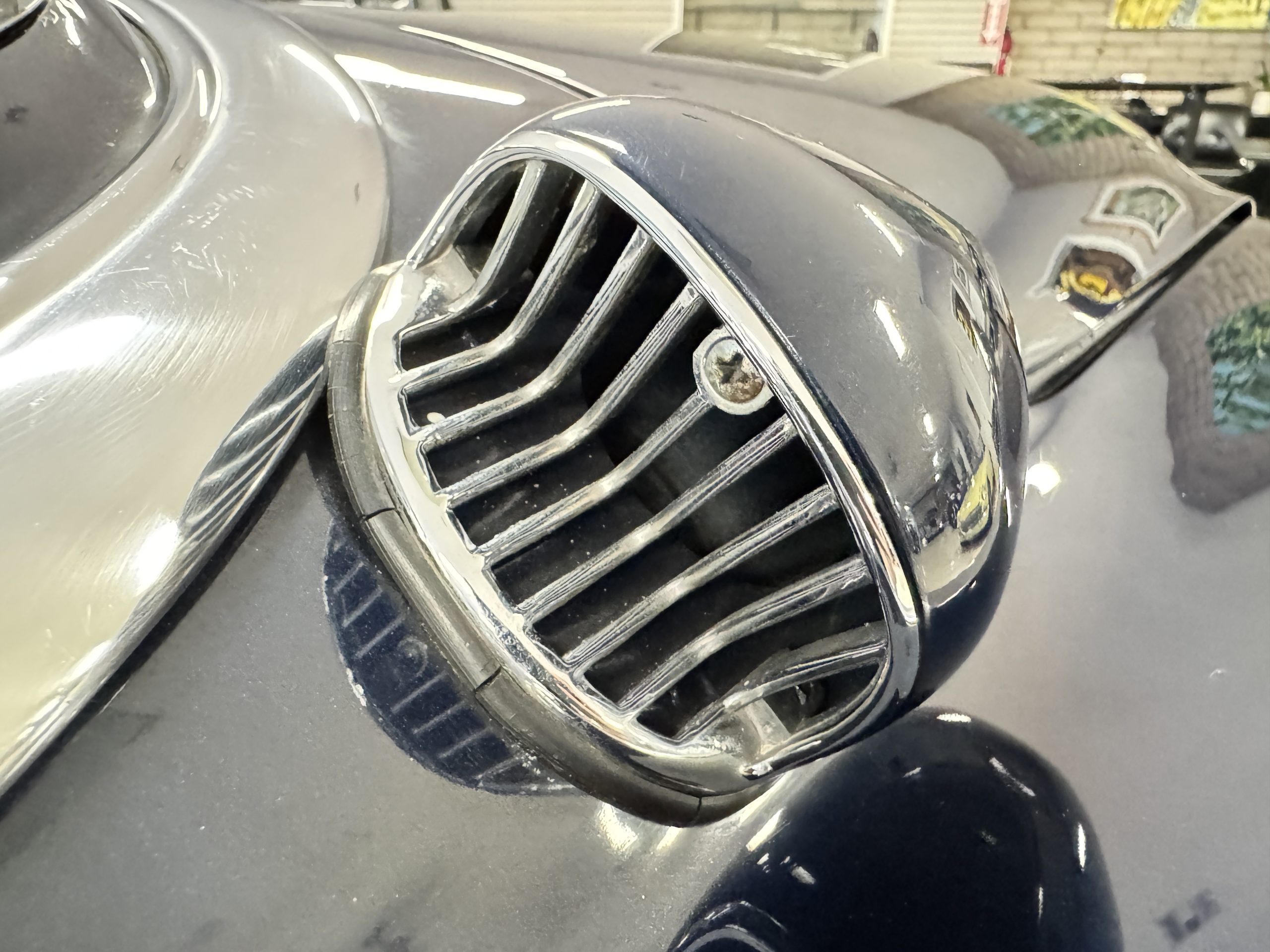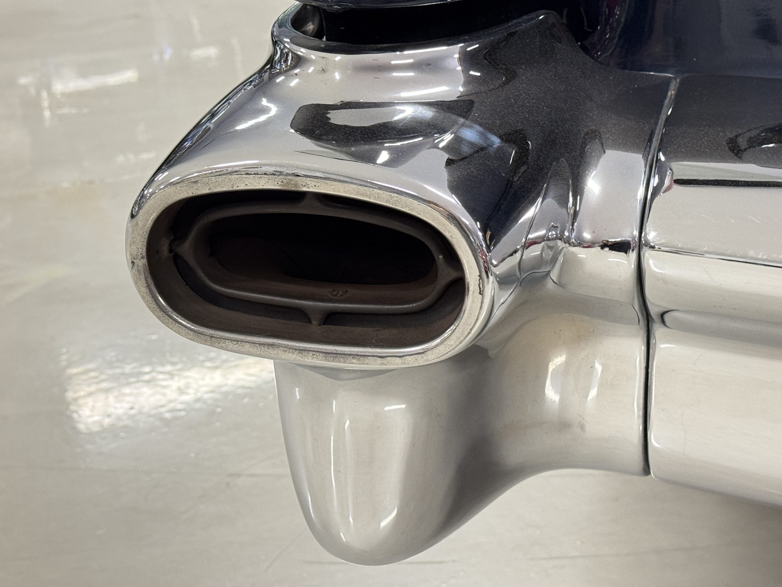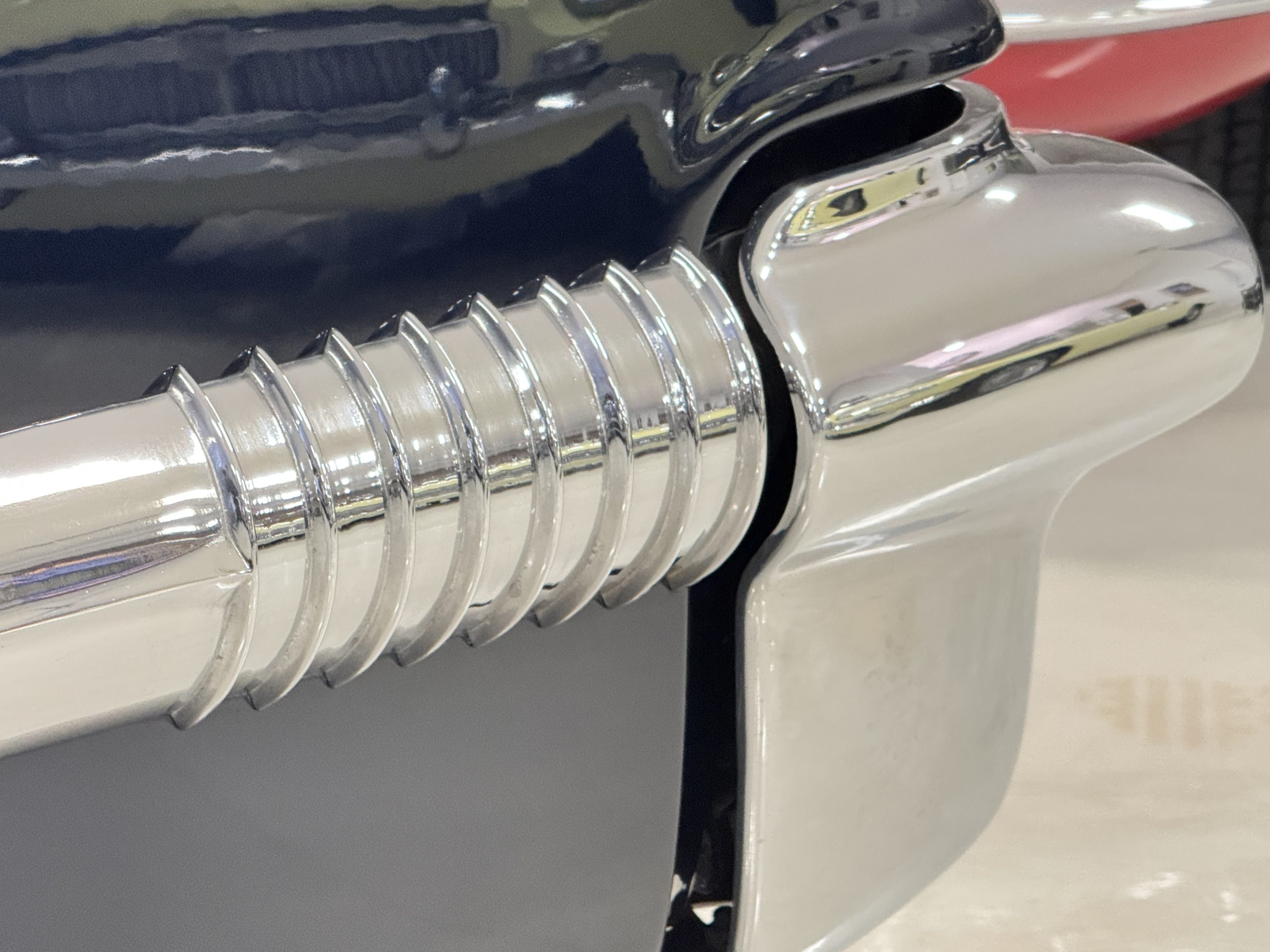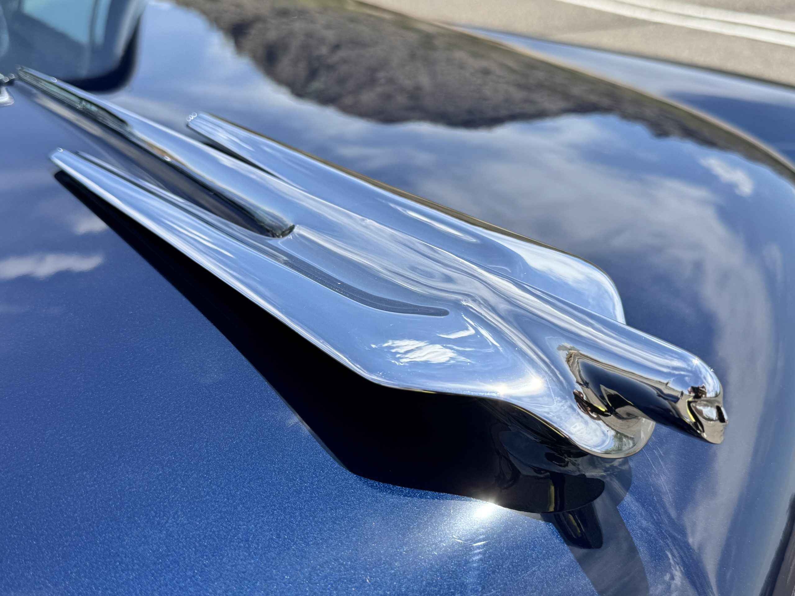 The Cobalt Blue (Paint Code 26) paint has a beautiful shine and luster and is in great condition with minimal rock chips that have been touched up from normal use. The original color combination for this car is Pecos Beige (Paint Code 44) and Taupe Metallic (Paint Code 48) and was changed to Cobalt Blue when restored.  The gold anodized grill is original and is in great condition! The gold anodized grill is a rare upgrade for the Sixty Special that stems from the highly popular Eldorado models. The chrome and stainless-steel trim are beautifully polished and largely show quality with normal imperfections from use. The Cobalt Blue paint is complemented by the American Classic bias-ply wide whitewall tires with two brand new tires. A filler test has been completed with clean results. The exterior is in overall very good condition and needs nothing to be enjoyed!