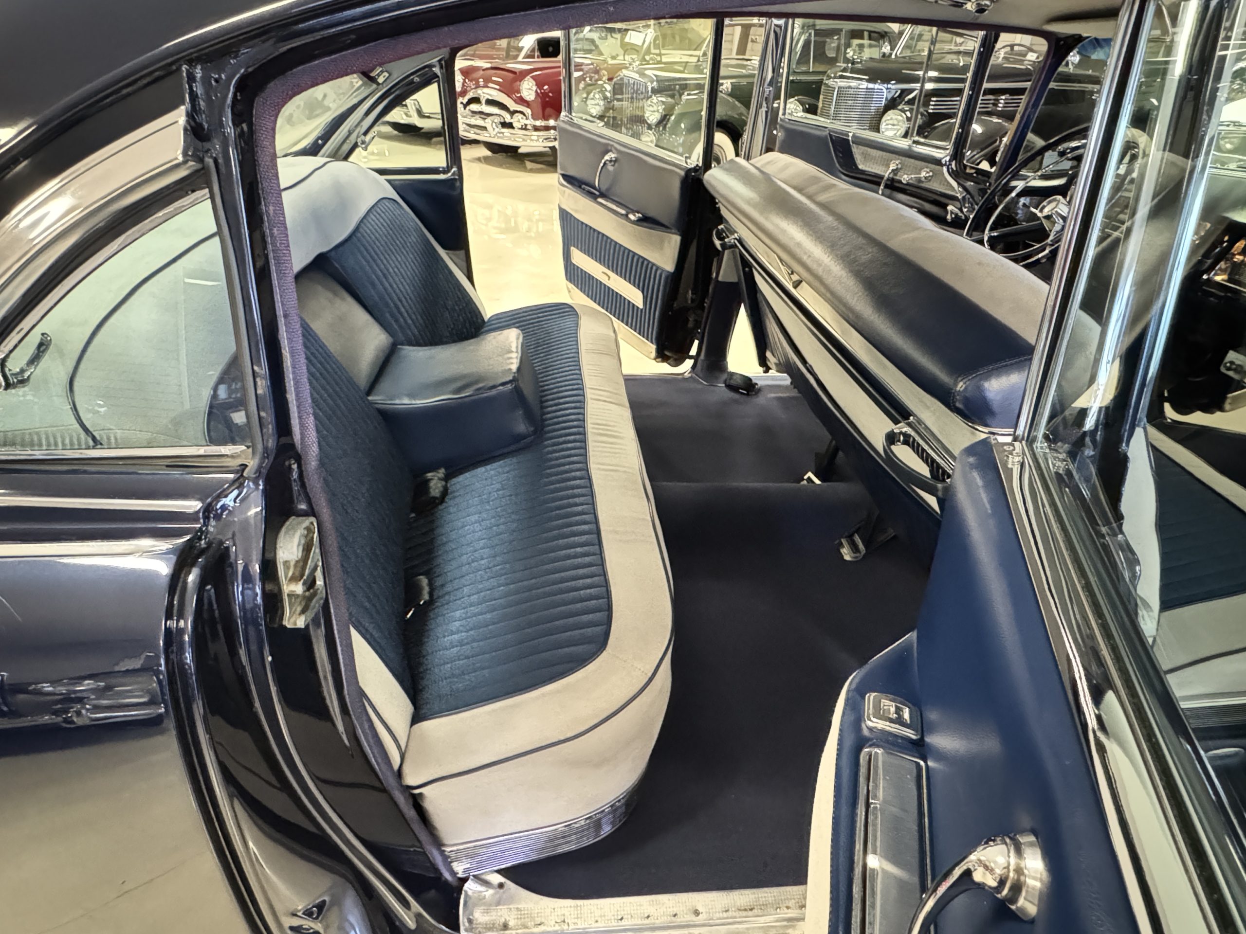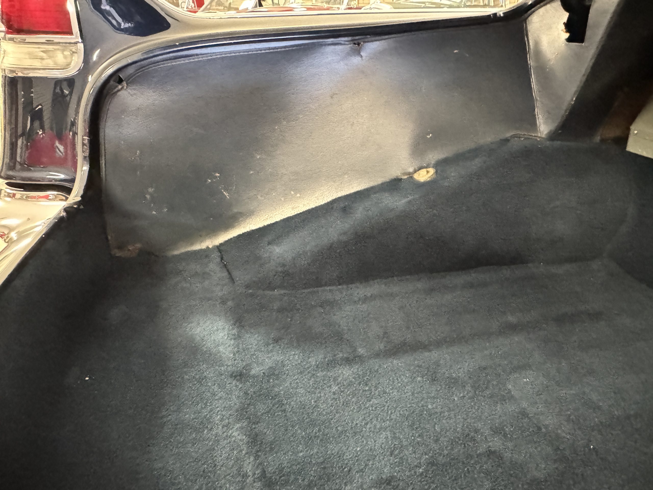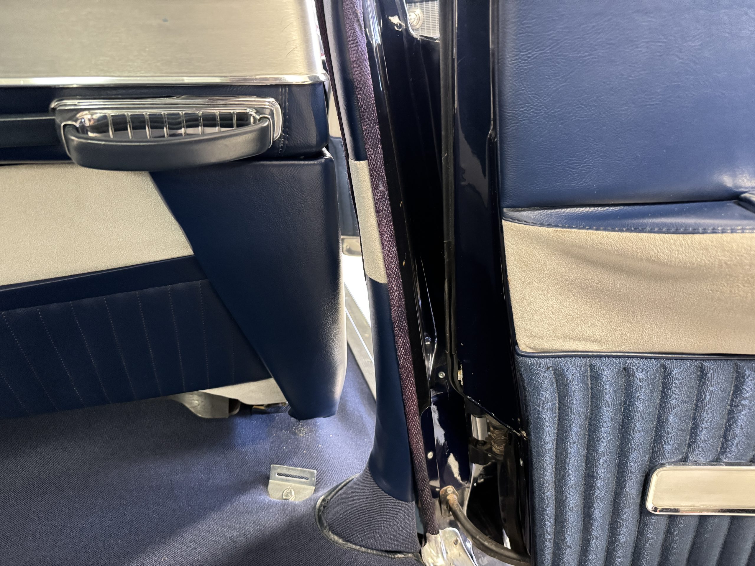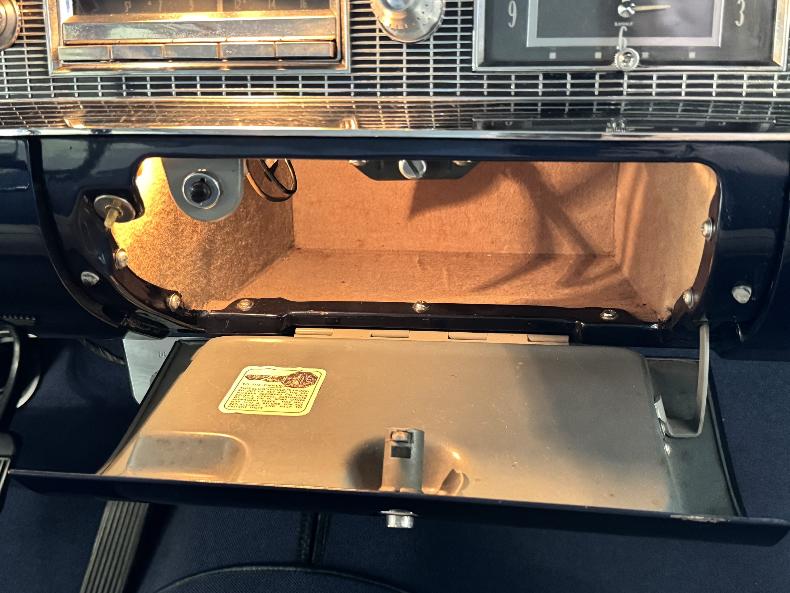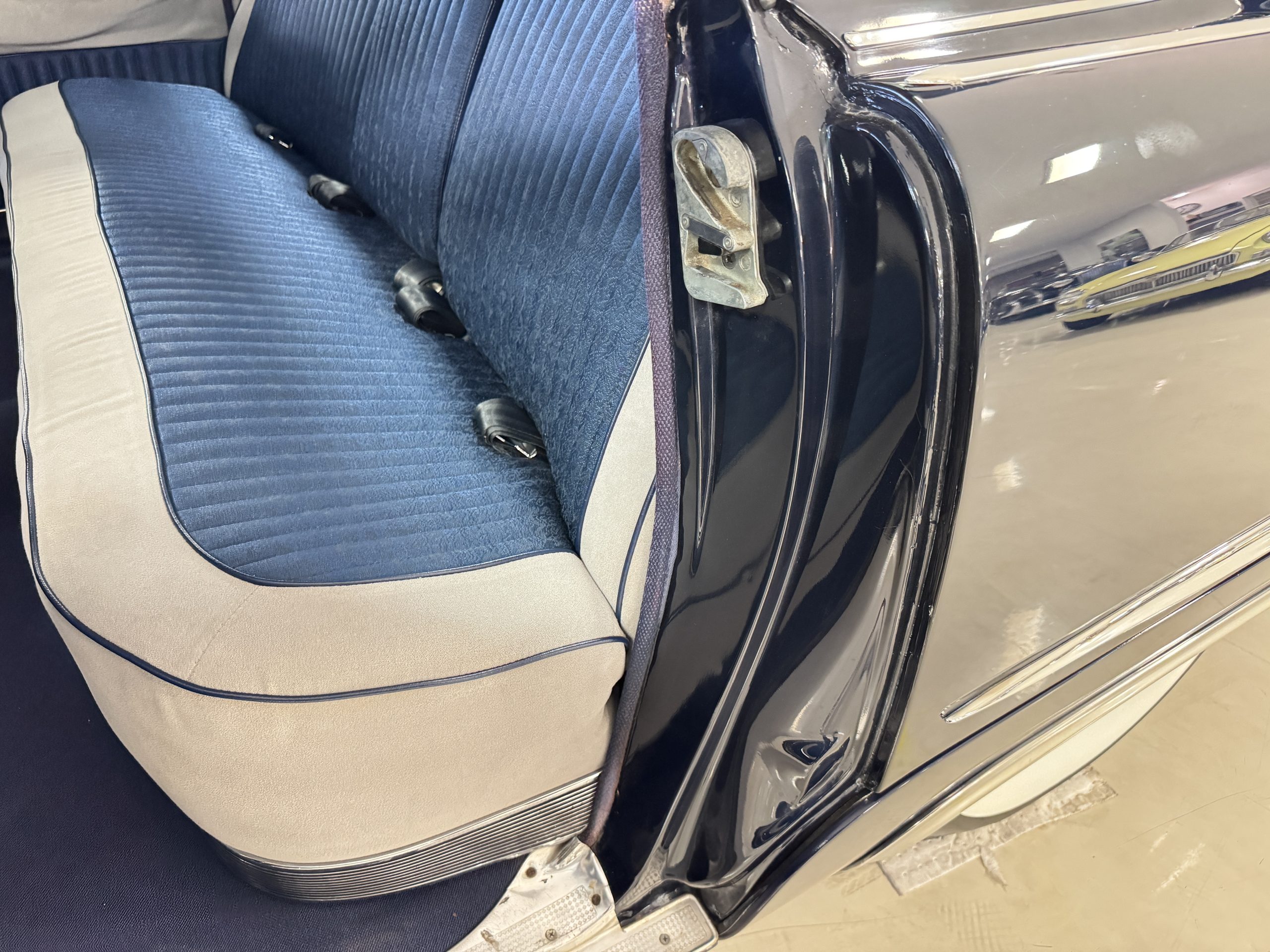 The interior of this Cadillac is in very good overall condition reflecting a very good quality older restoration. The interior is a Dark Blue Brocade with Grey Broadcloth with Dark Blue piping and is in very good condition. The Dark Blue dashpad is in excellent condition, and the steering wheel is in good condition with three minor cracks from normal use. This Sixty Special has front and back air conditioning through overhead vents that have been recently serviced and blows cold. This Cadillac comes with the Autronic eye, Wonderbar AM radio works well and power adjustable front seats. The power antenna motor works and the antenna mast needs to be replaced. Overall, this Cadillac is in very good condition and would be a great car to use as a classic driver, at local shows or touring.