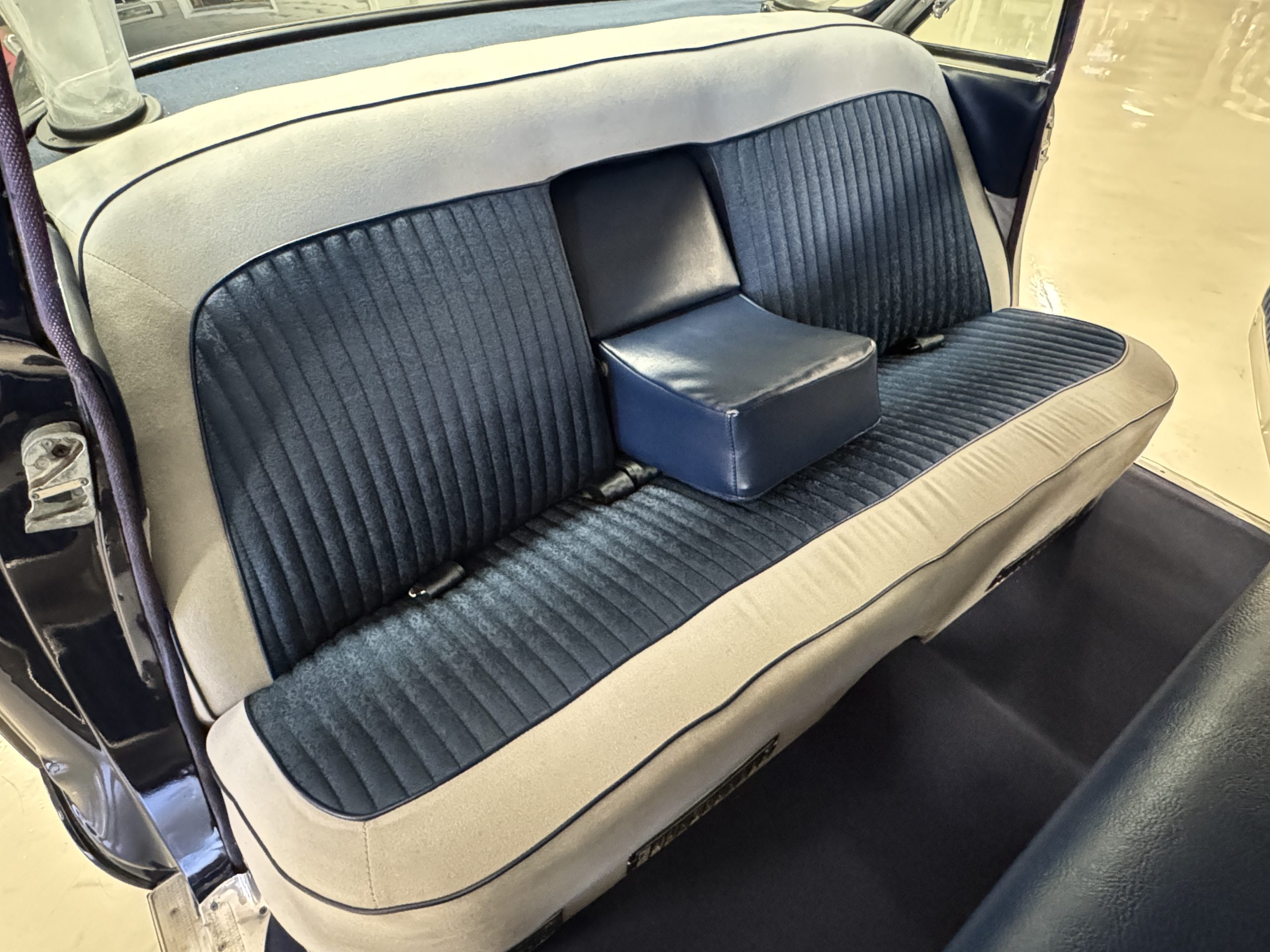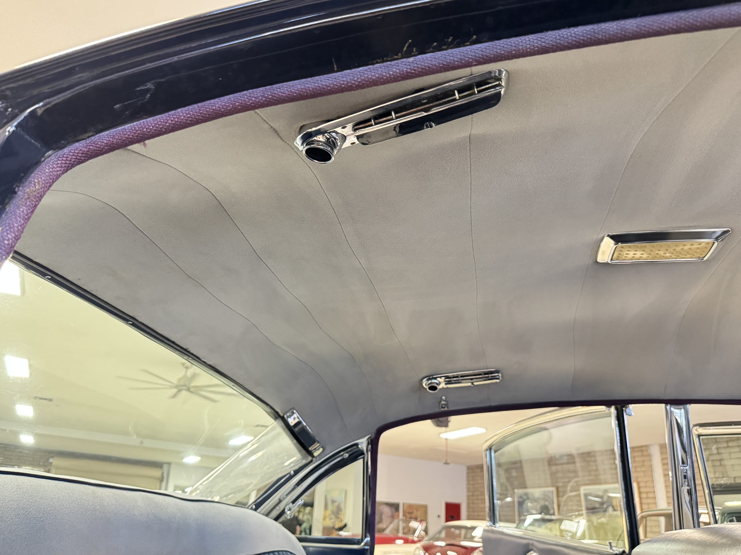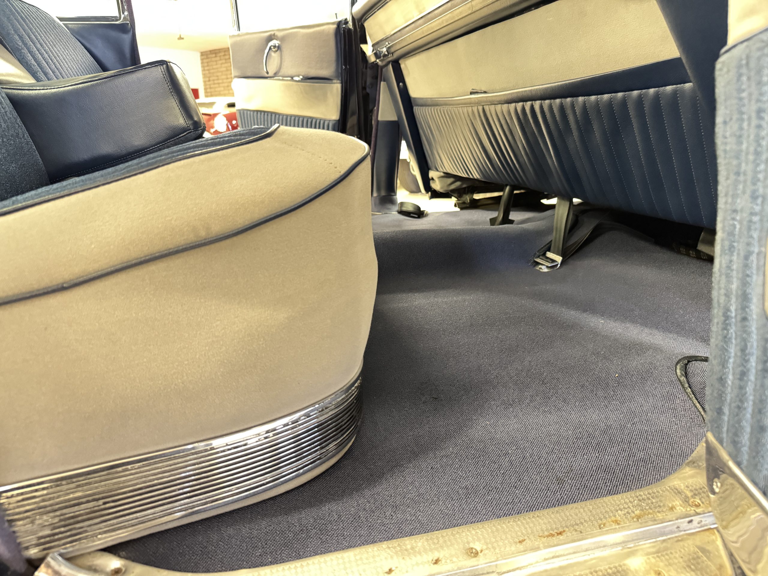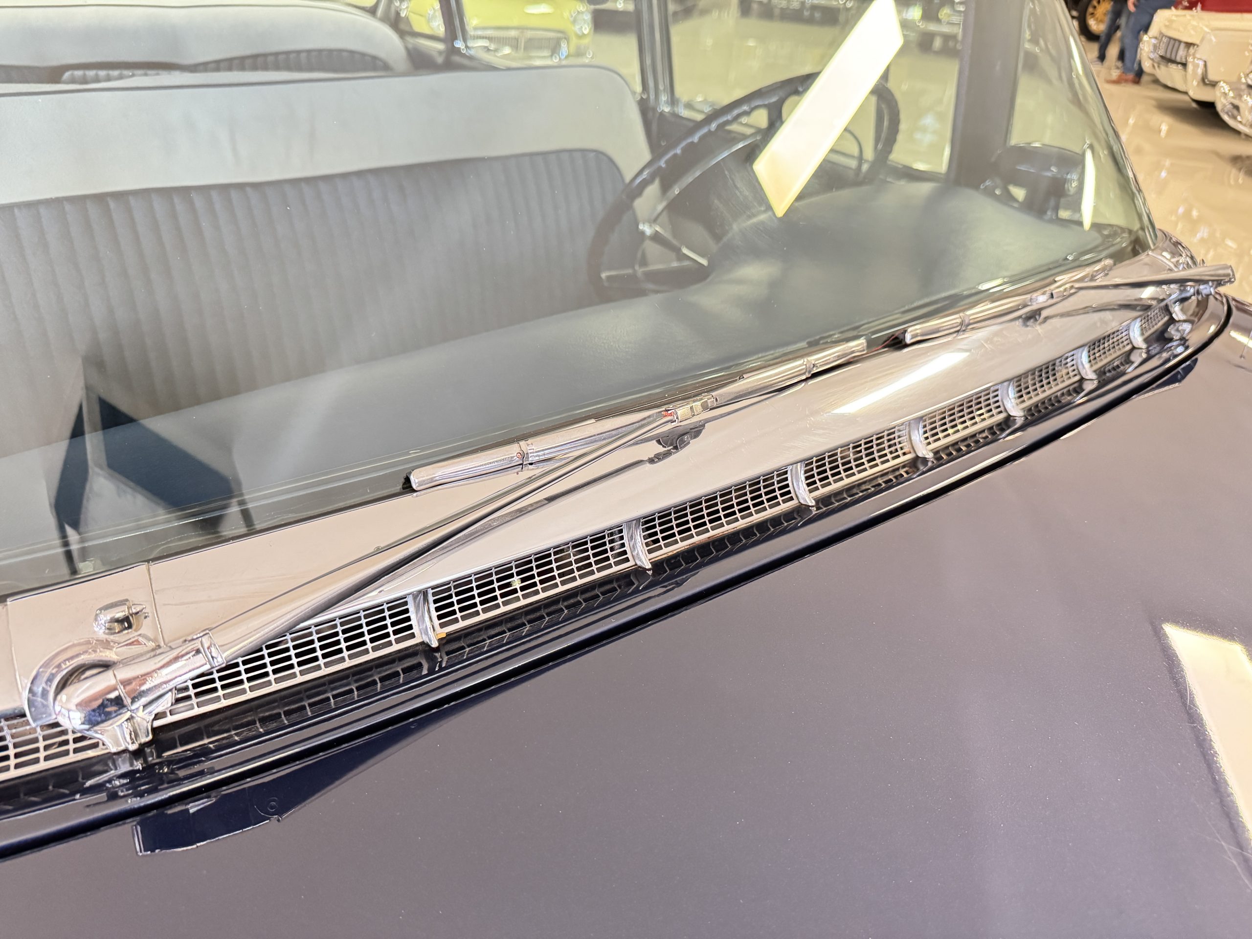 The interior of this Cadillac is in very good overall condition reflecting a very good quality older restoration. The interior is a Dark Blue Brocade with Grey Broadcloth with Dark Blue piping and is in very good condition. The Dark Blue dashpad is in excellent condition, and the steering wheel is in good condition with three minor cracks from normal use. This Sixty Special has front and back air conditioning through overhead vents that have been recently serviced and blows cold. This Cadillac comes with the Autronic eye, Wonderbar AM radio works well and power adjustable front seats. The power antenna motor works and the antenna mast needs to be replaced. Overall, this Cadillac is in very good condition and would be a great car to use as a classic driver, at local shows or touring.
