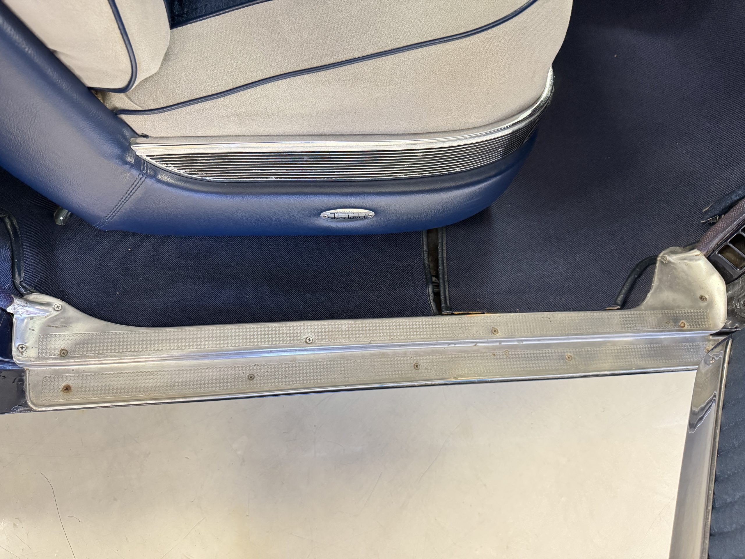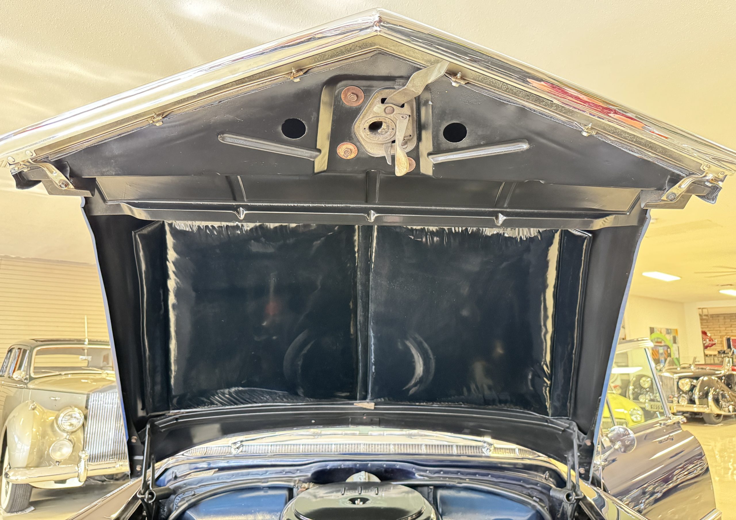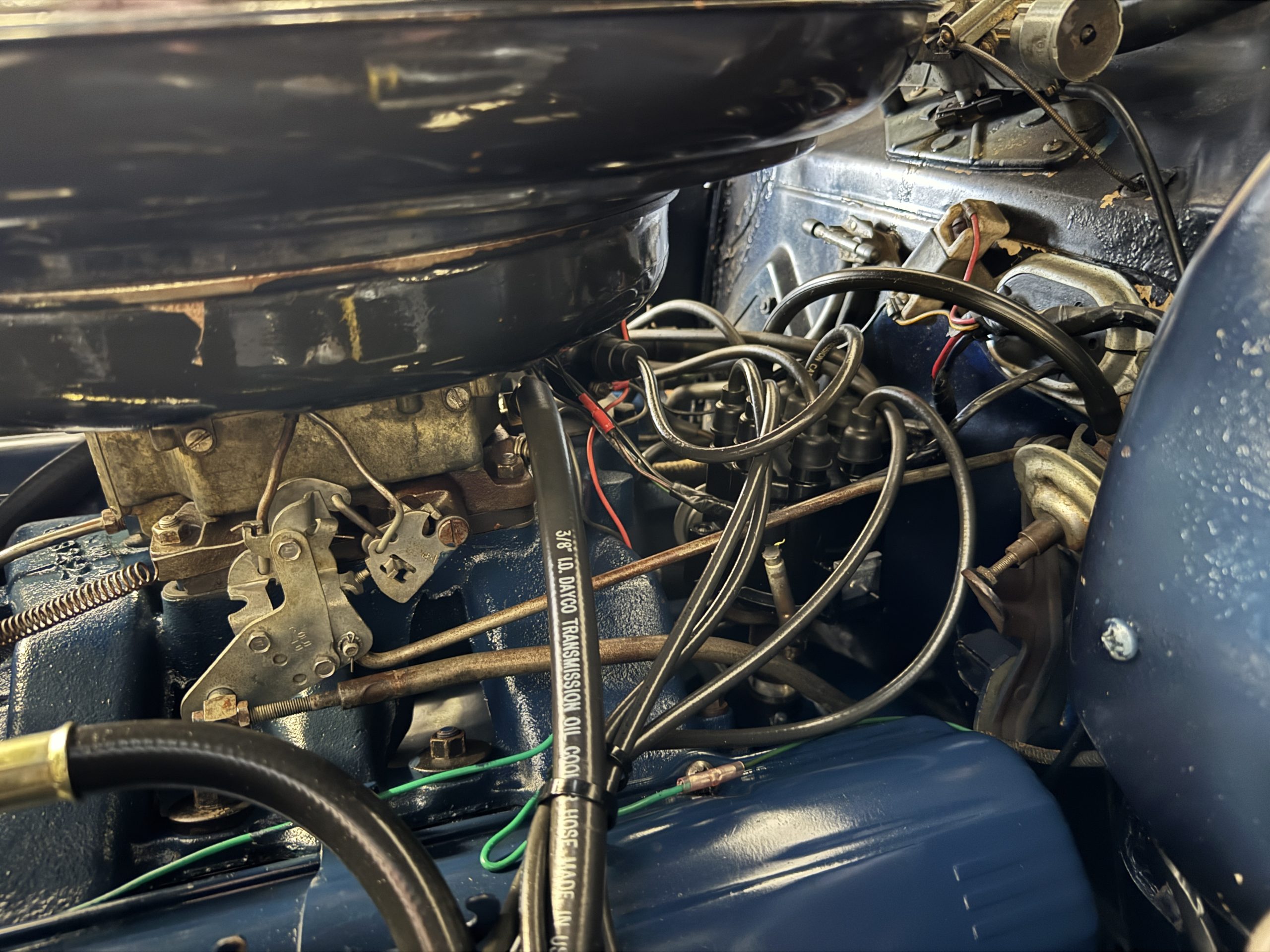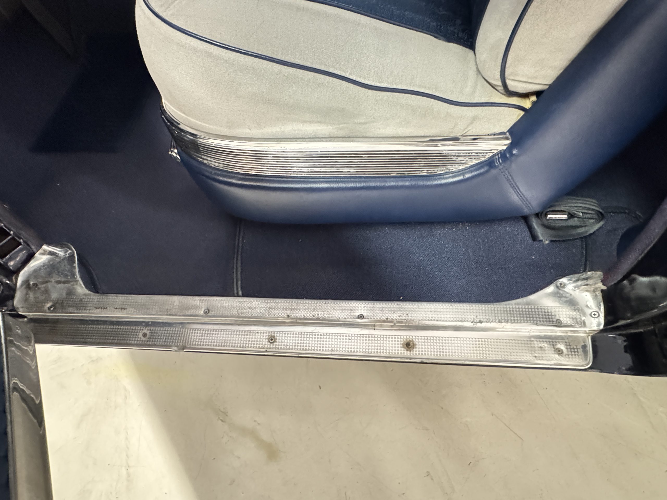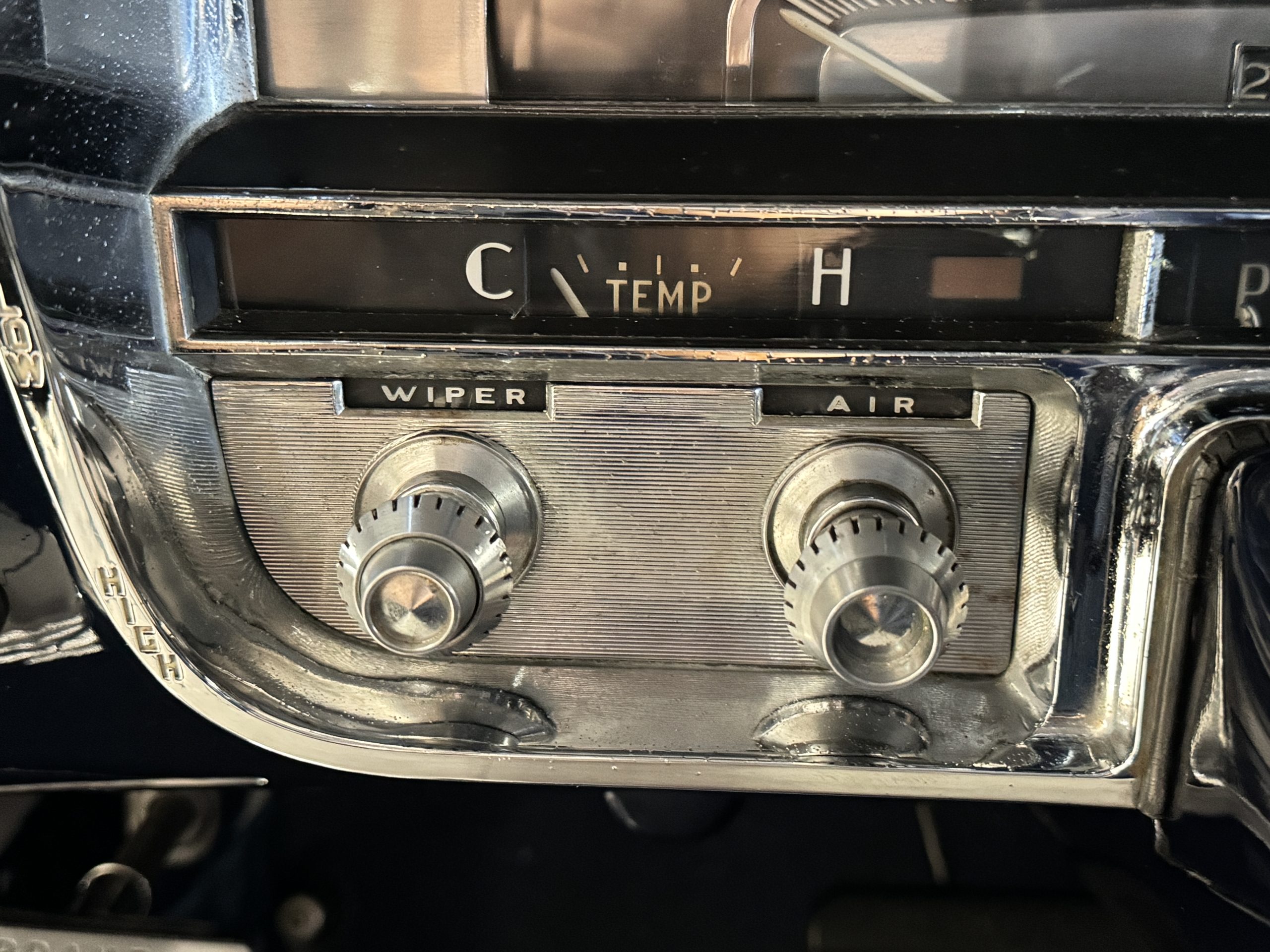 The interior of this Cadillac is in very good overall condition reflecting a very good quality older restoration. The interior is a Dark Blue Brocade with Grey Broadcloth with Dark Blue piping and is in very good condition. The Dark Blue dashpad is in excellent condition, and the steering wheel is in good condition with three minor cracks from normal use. This Sixty Special has front and back air conditioning through overhead vents that have been recently serviced and blows cold. This Cadillac comes with the Autronic eye, Wonderbar AM radio works well and power adjustable front seats. The power antenna motor works and the antenna mast needs to be replaced. Overall, this Cadillac is in very good condition and would be a great car to use as a classic driver, at local shows or touring.