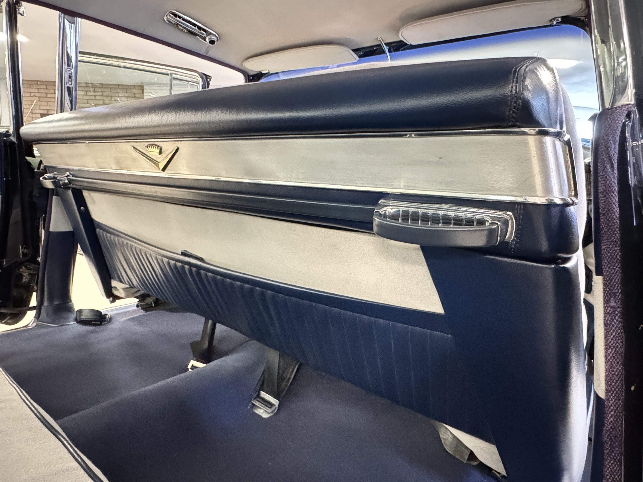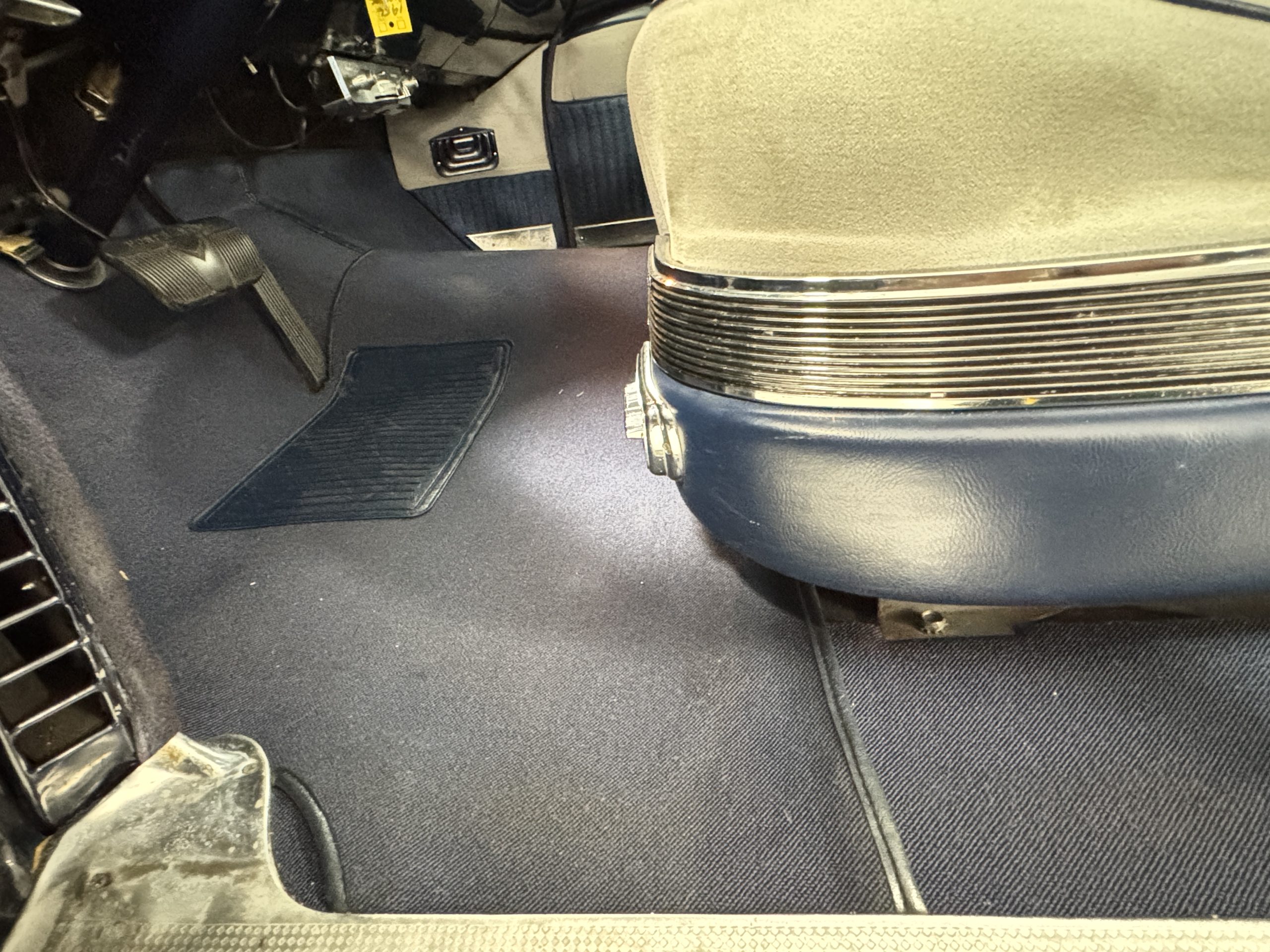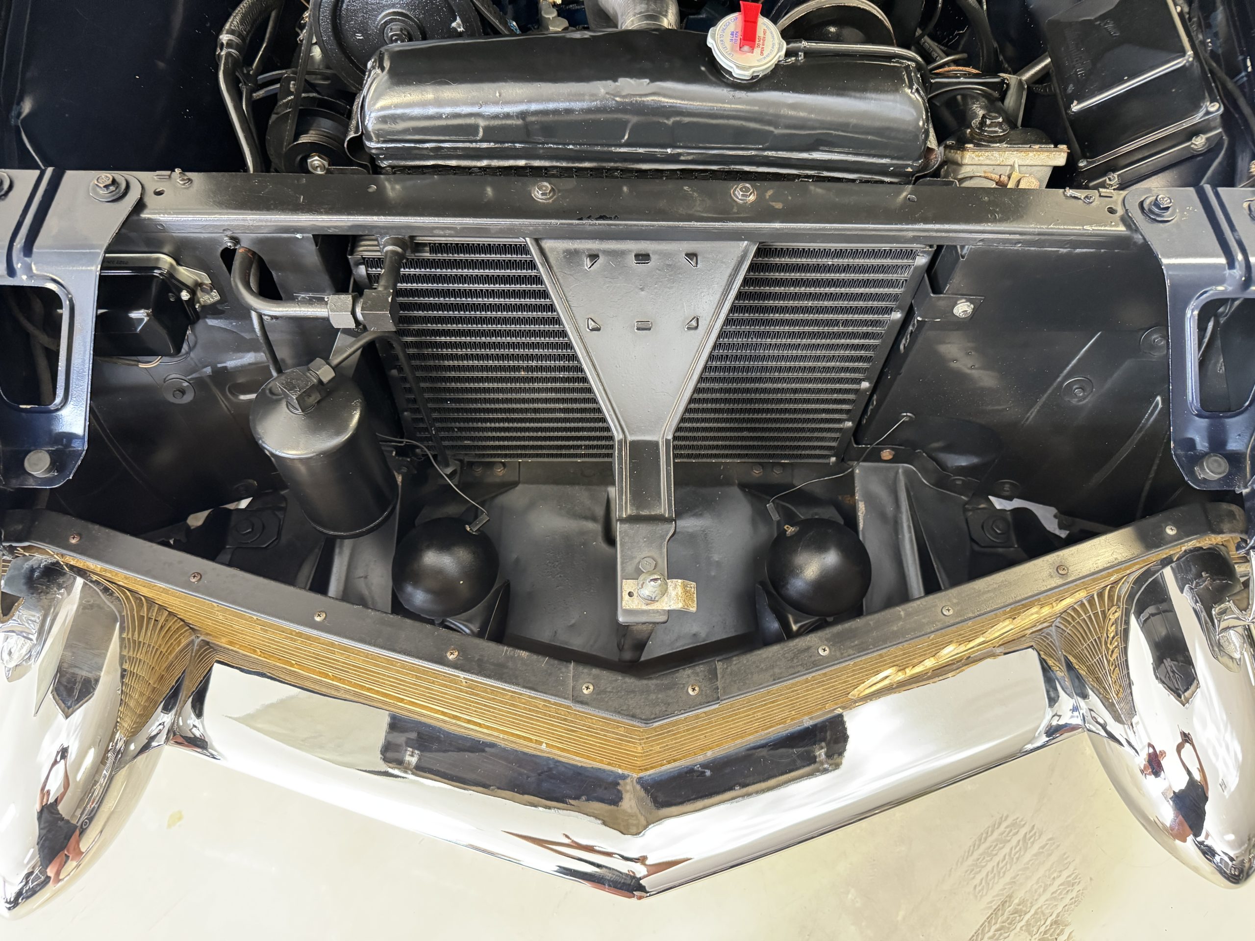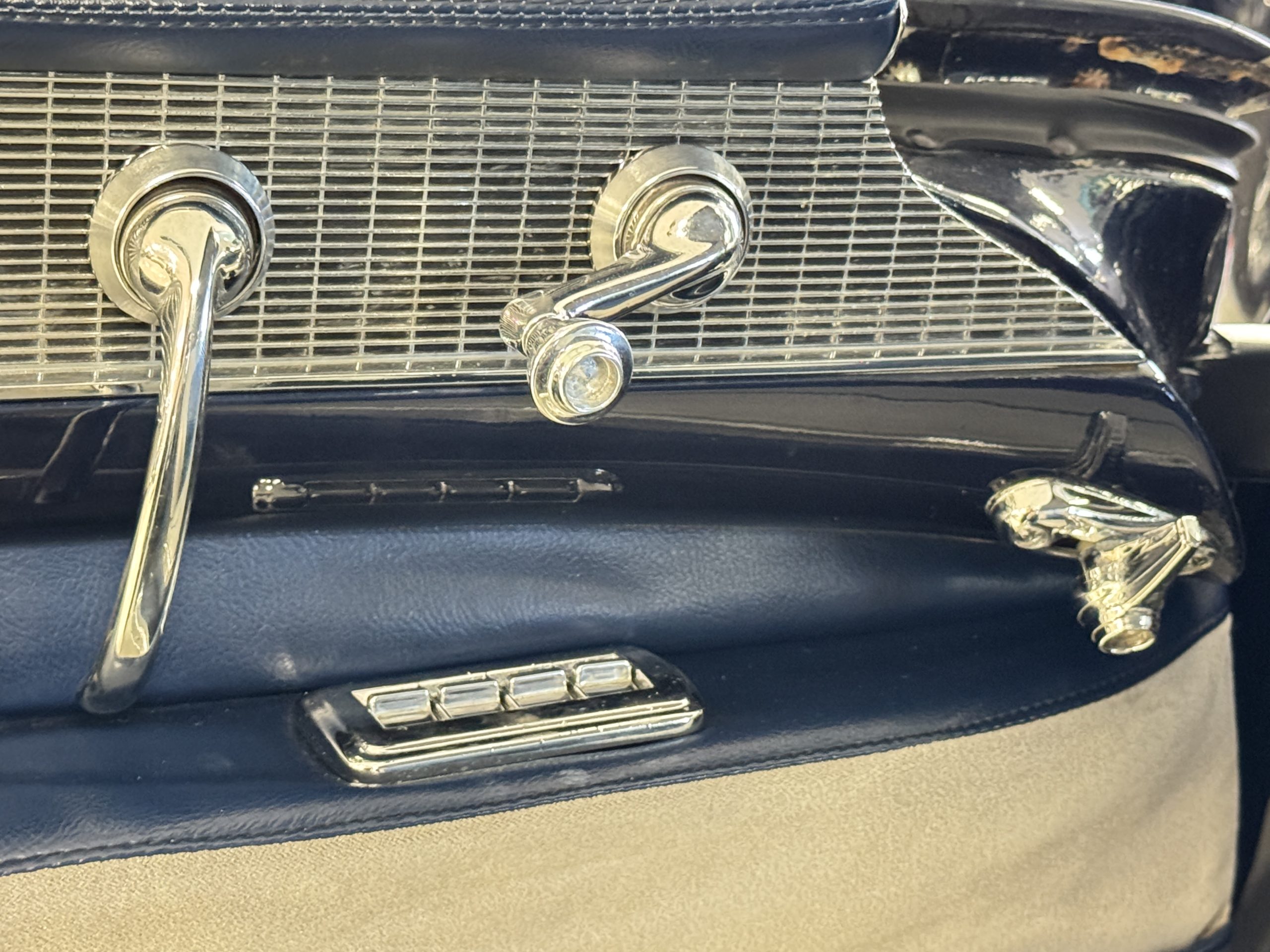 The interior of this Cadillac is in very good overall condition reflecting a very good quality older restoration. The interior is a Dark Blue Brocade with Grey Broadcloth with Dark Blue piping and is in very good condition. The Dark Blue dashpad is in excellent condition, and the steering wheel is in good condition with three minor cracks from normal use. This Sixty Special has front and back air conditioning through overhead vents that have been recently serviced and blows cold. This Cadillac comes with the Autronic eye, Wonderbar AM radio works well and power adjustable front seats. The power antenna motor works and the antenna mast needs to be replaced. Overall, this Cadillac is in very good condition and would be a great car to use as a classic driver, at local shows or touring.