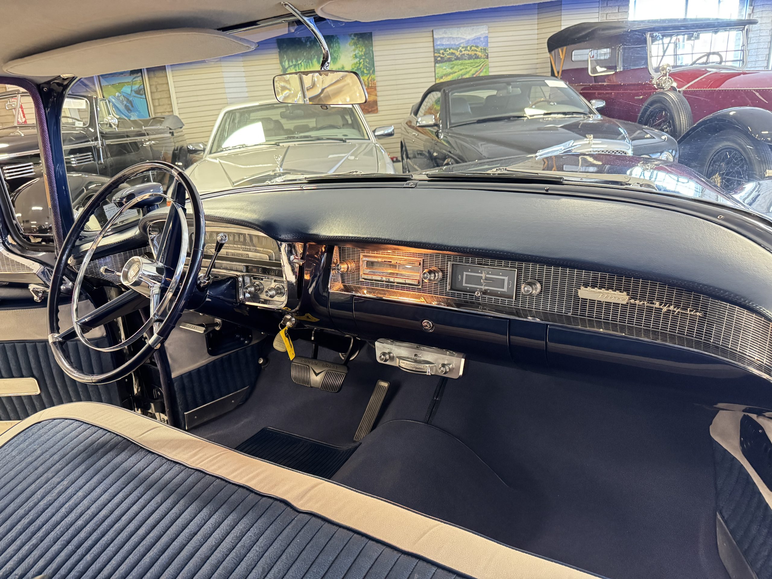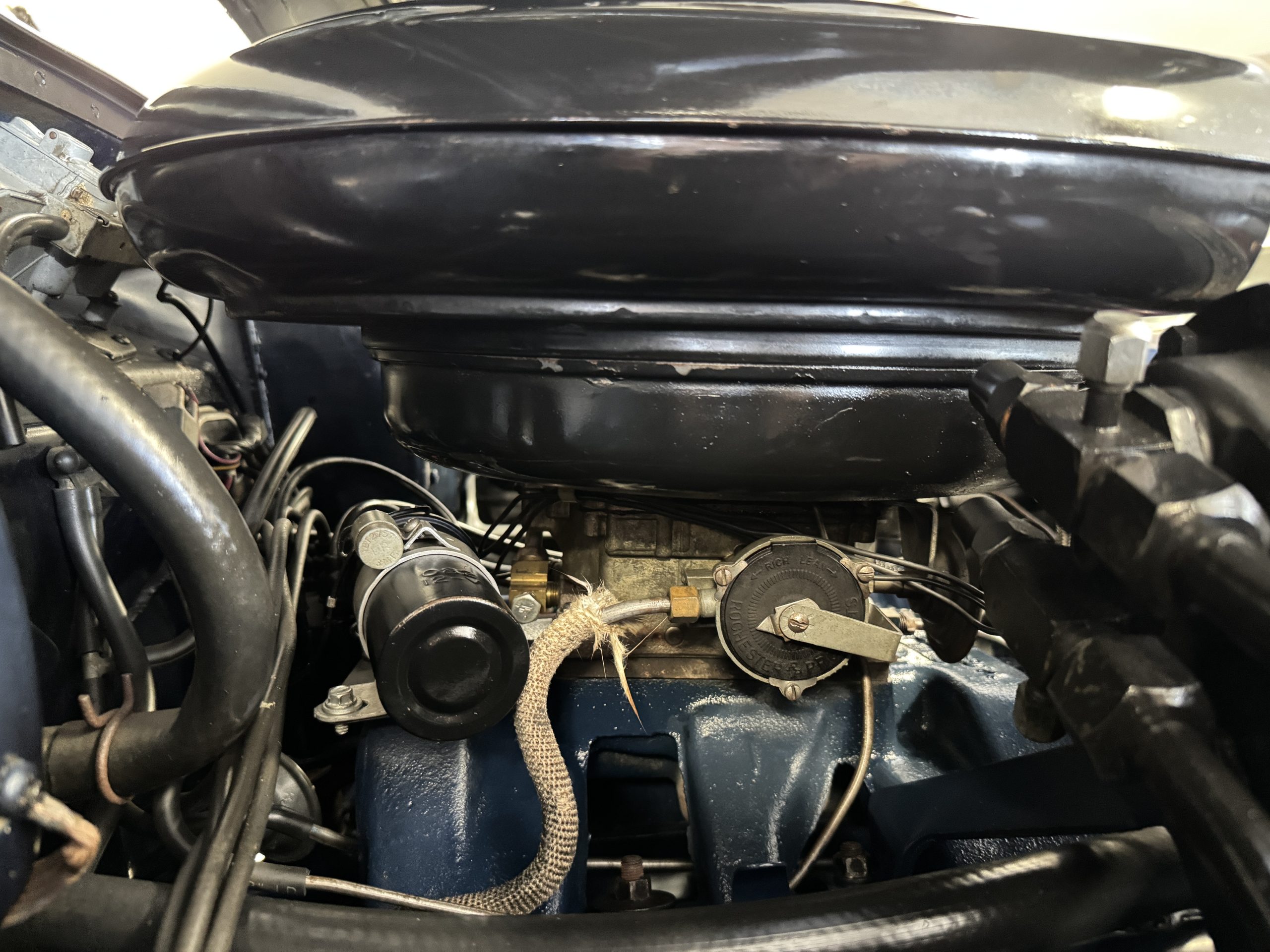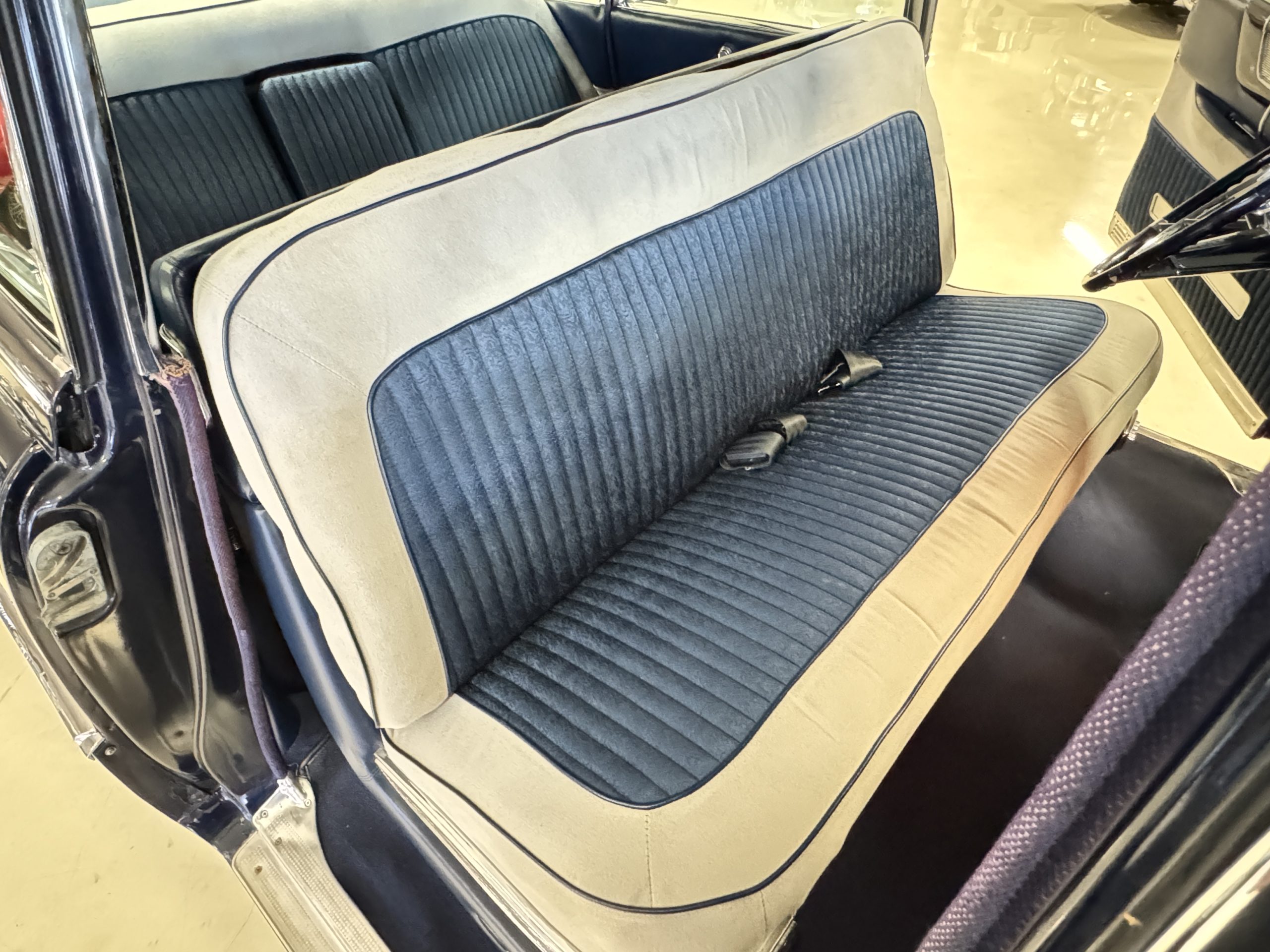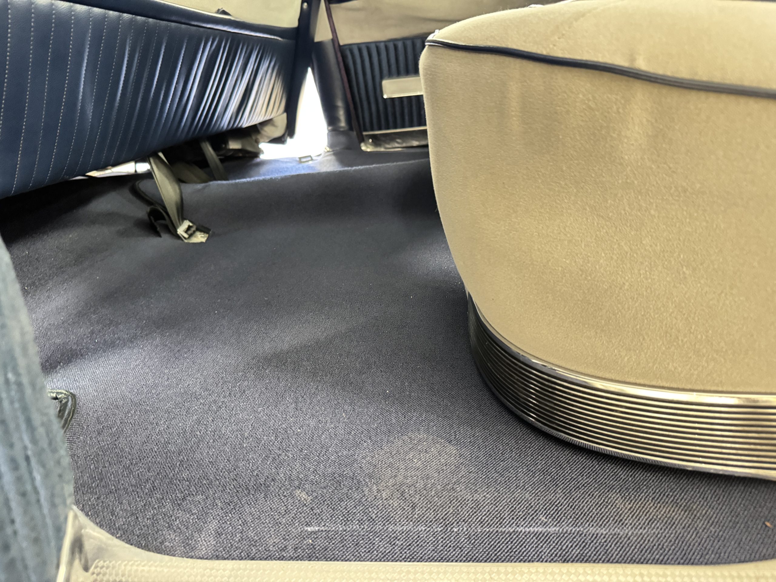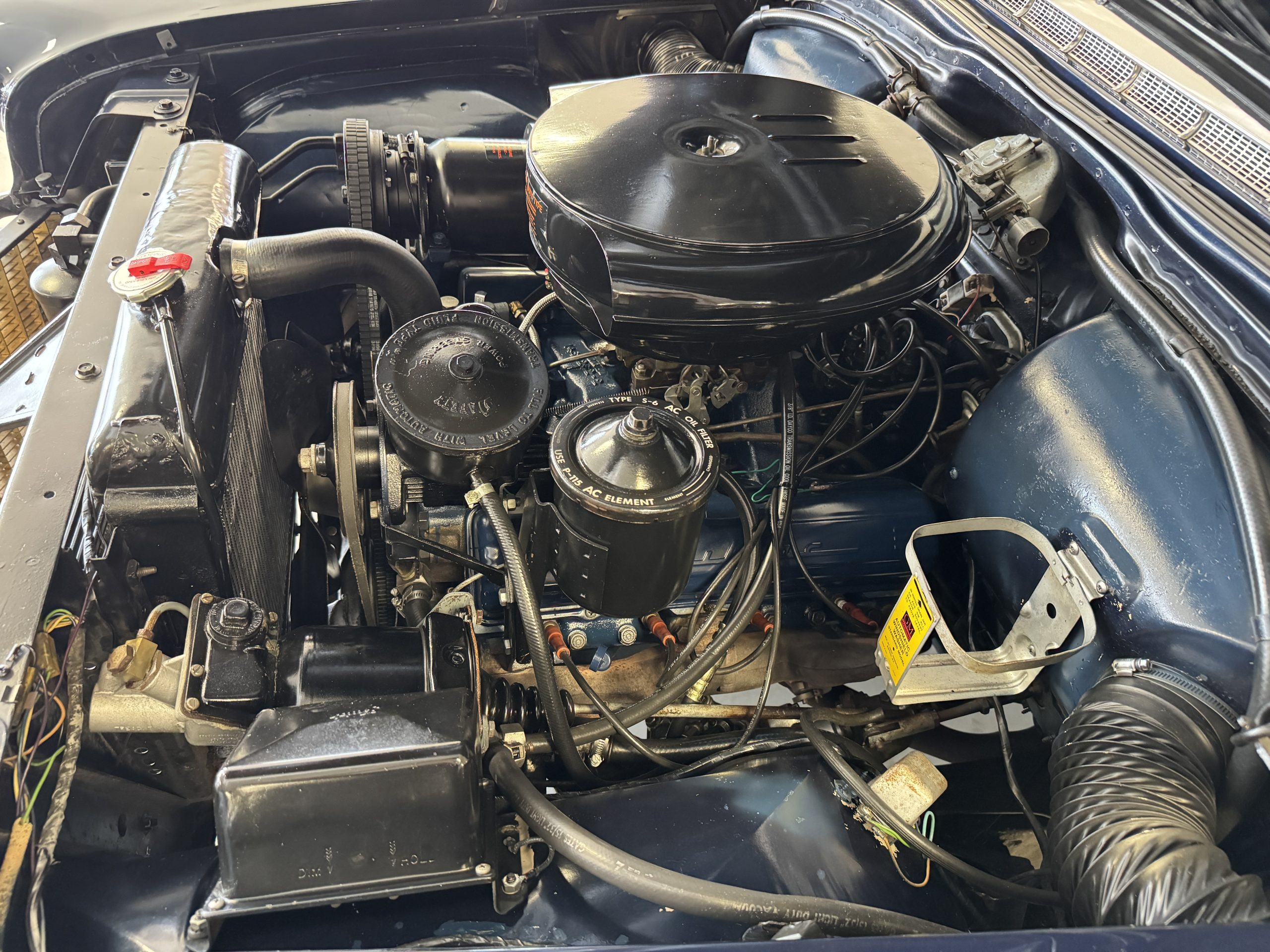 The interior of this Cadillac is in very good overall condition reflecting a very good quality older restoration. The interior is a Dark Blue Brocade with Grey Broadcloth with Dark Blue piping and is in very good condition. The Dark Blue dashpad is in excellent condition, and the steering wheel is in good condition with three minor cracks from normal use. This Sixty Special has front and back air conditioning through overhead vents that have been recently serviced and blows cold. This Cadillac comes with the Autronic eye, Wonderbar AM radio works well and power adjustable front seats. The power antenna motor works and the antenna mast needs to be replaced. Overall, this Cadillac is in very good condition and would be a great car to use as a classic driver, at local shows or touring.