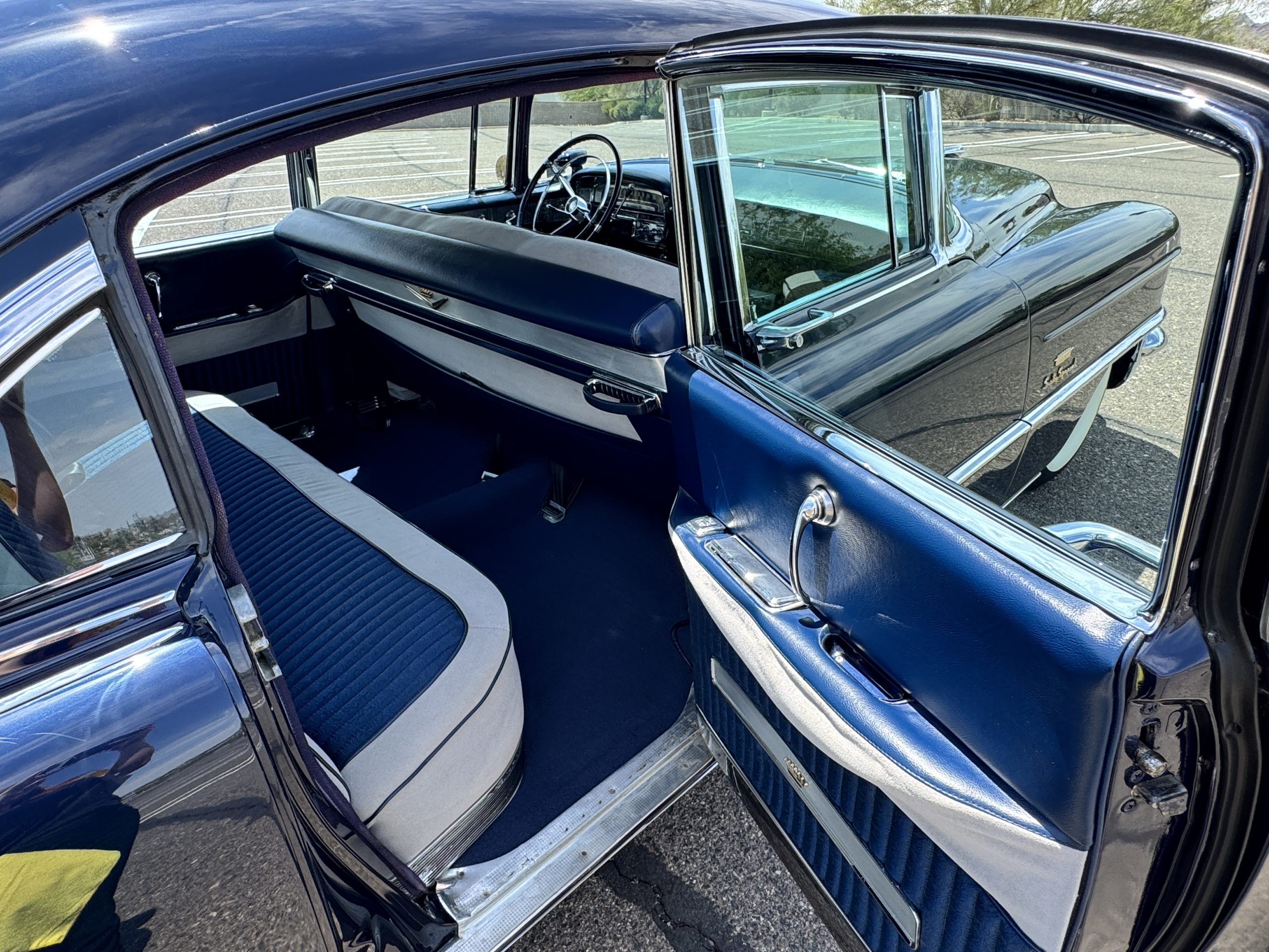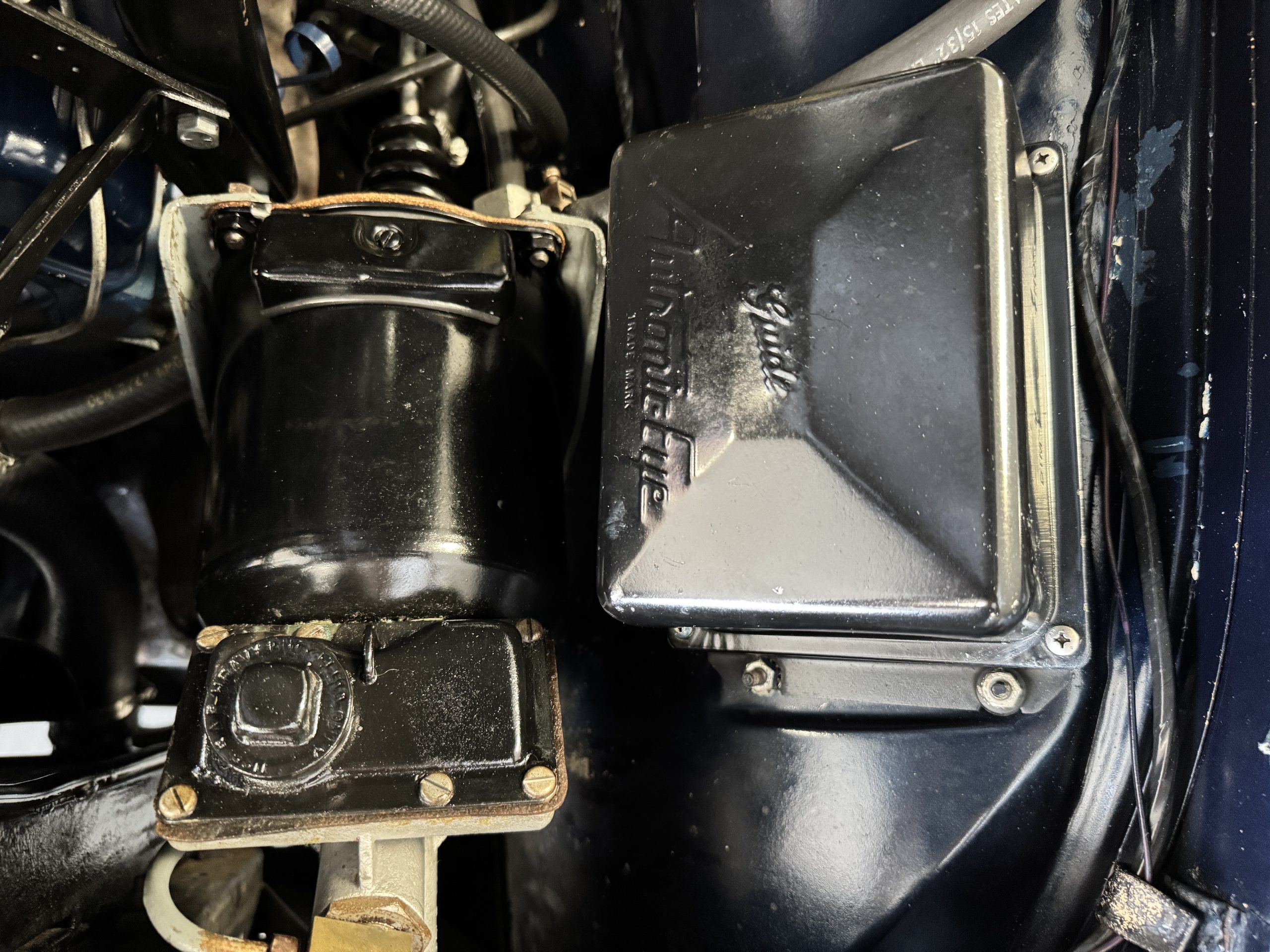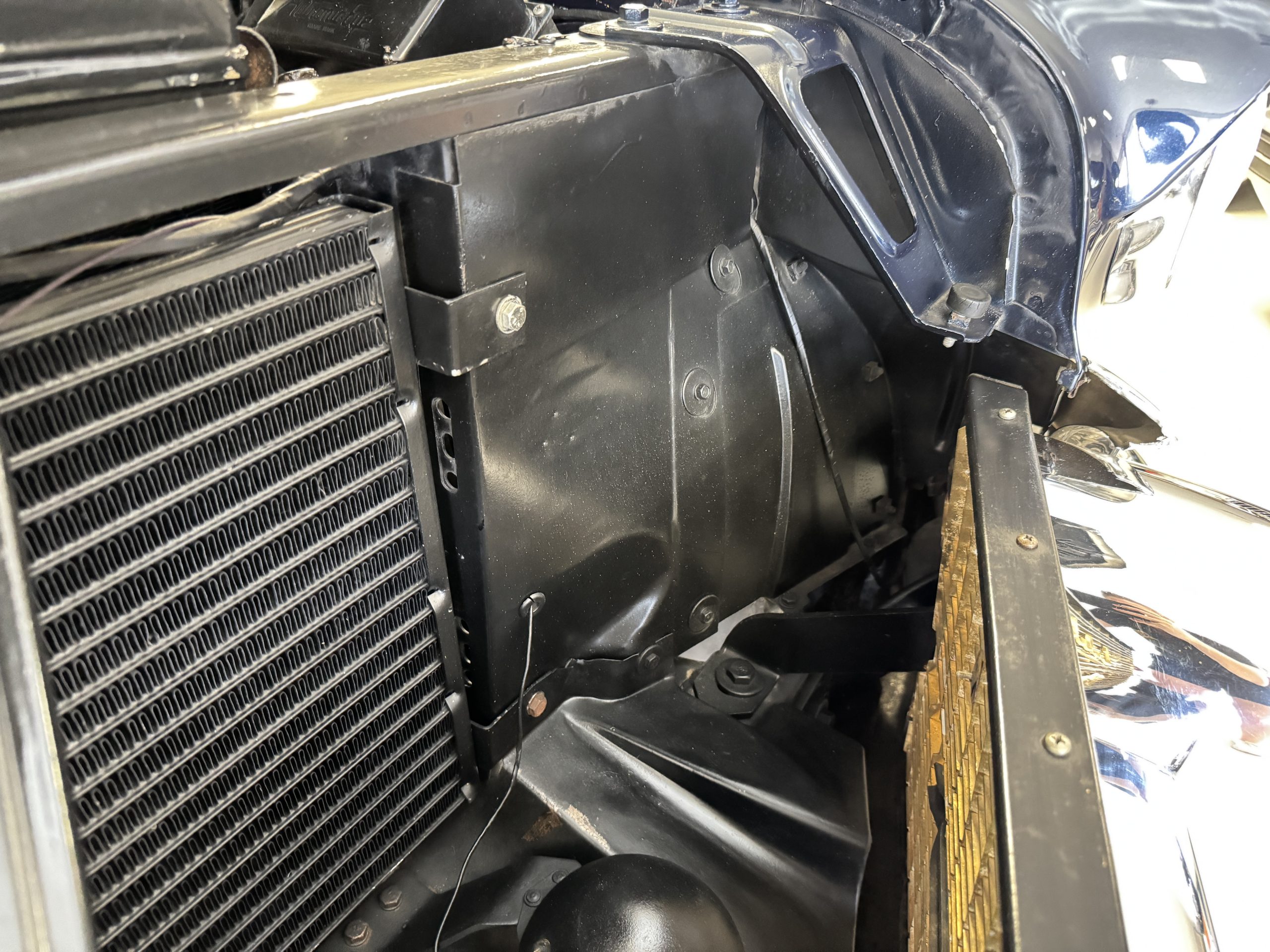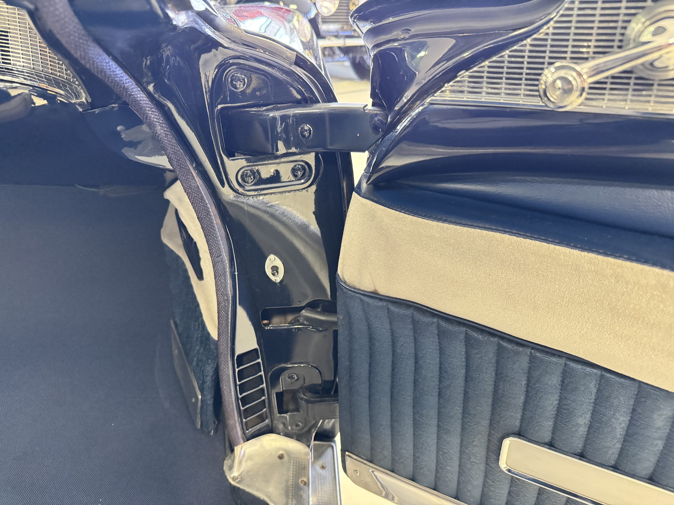 The interior of this Cadillac is in very good overall condition reflecting a very good quality older restoration. The interior is a Dark Blue Brocade with Grey Broadcloth with Dark Blue piping and is in very good condition. The Dark Blue dashpad is in excellent condition, and the steering wheel is in good condition with three minor cracks from normal use. This Sixty Special has front and back air conditioning through overhead vents that have been recently serviced and blows cold. This Cadillac comes with the Autronic eye, Wonderbar AM radio works well and power adjustable front seats. The power antenna motor works and the antenna mast needs to be replaced. Overall, this Cadillac is in very good condition and would be a great car to use as a classic driver, at local shows or touring.