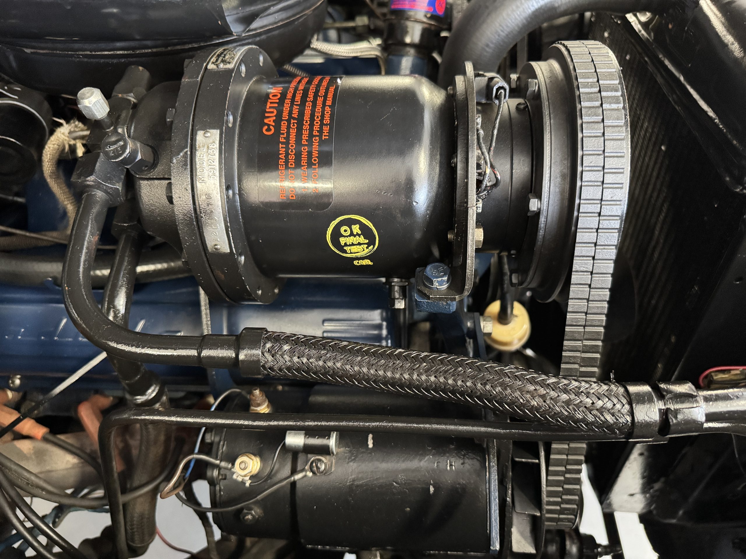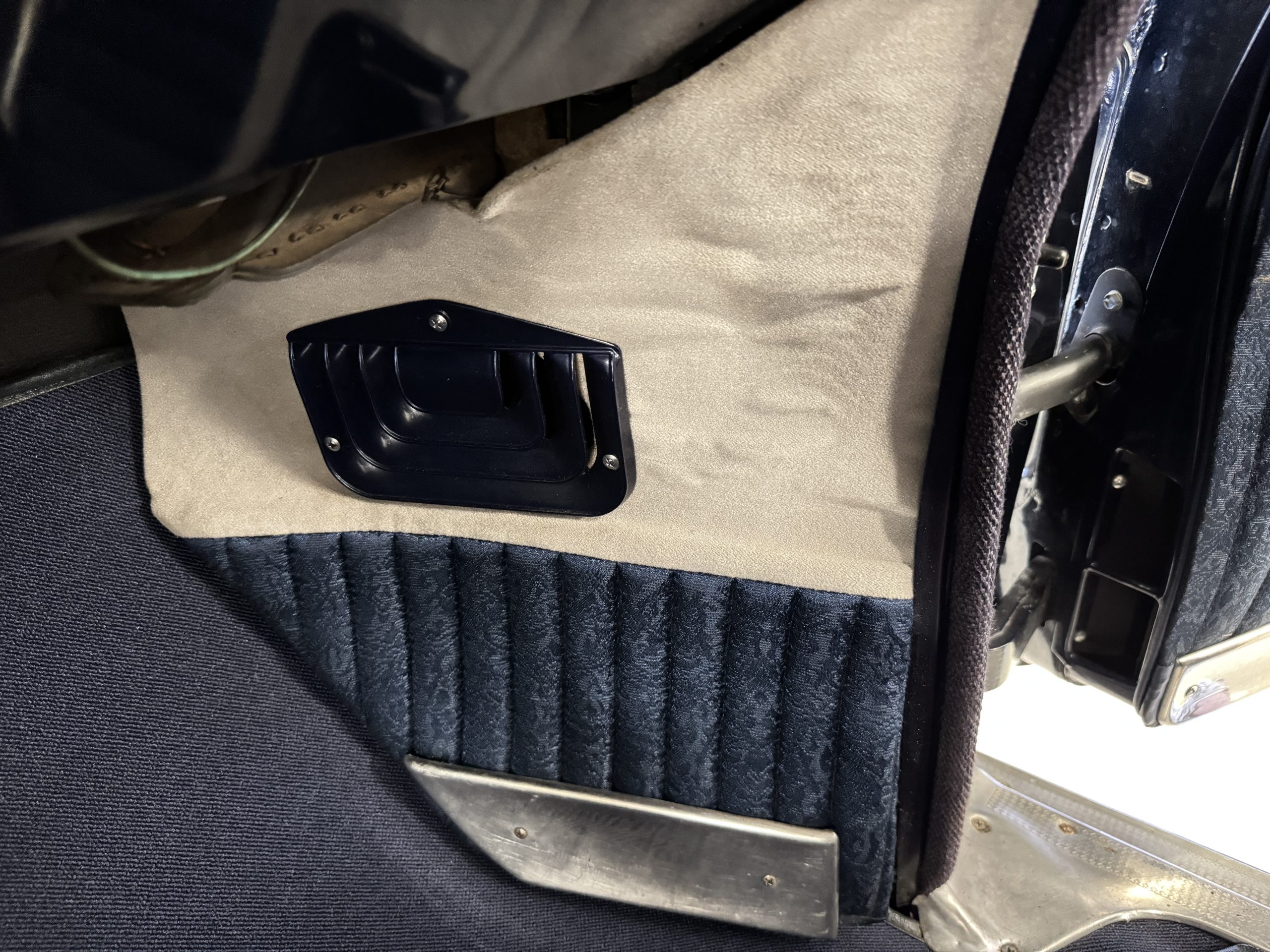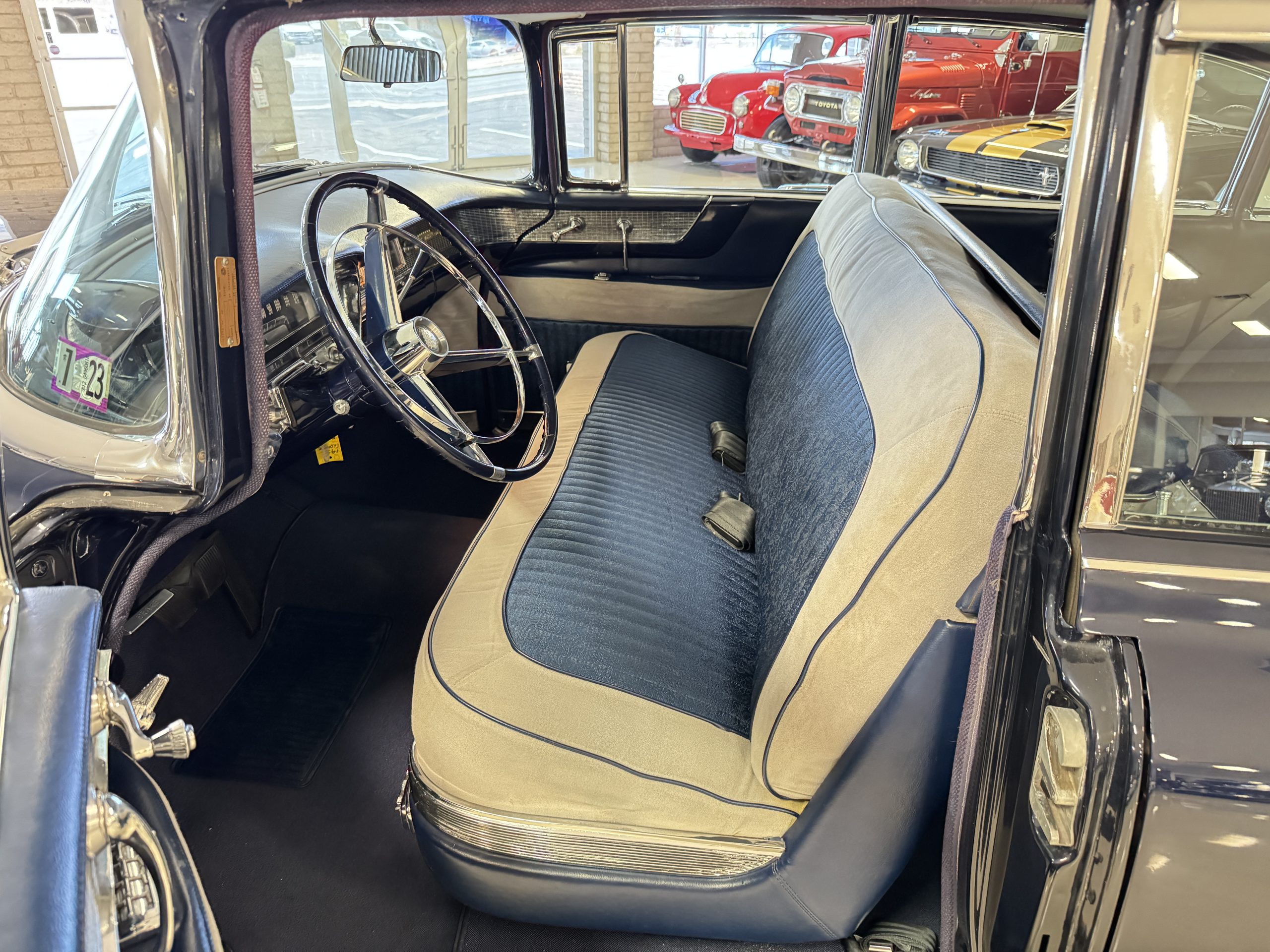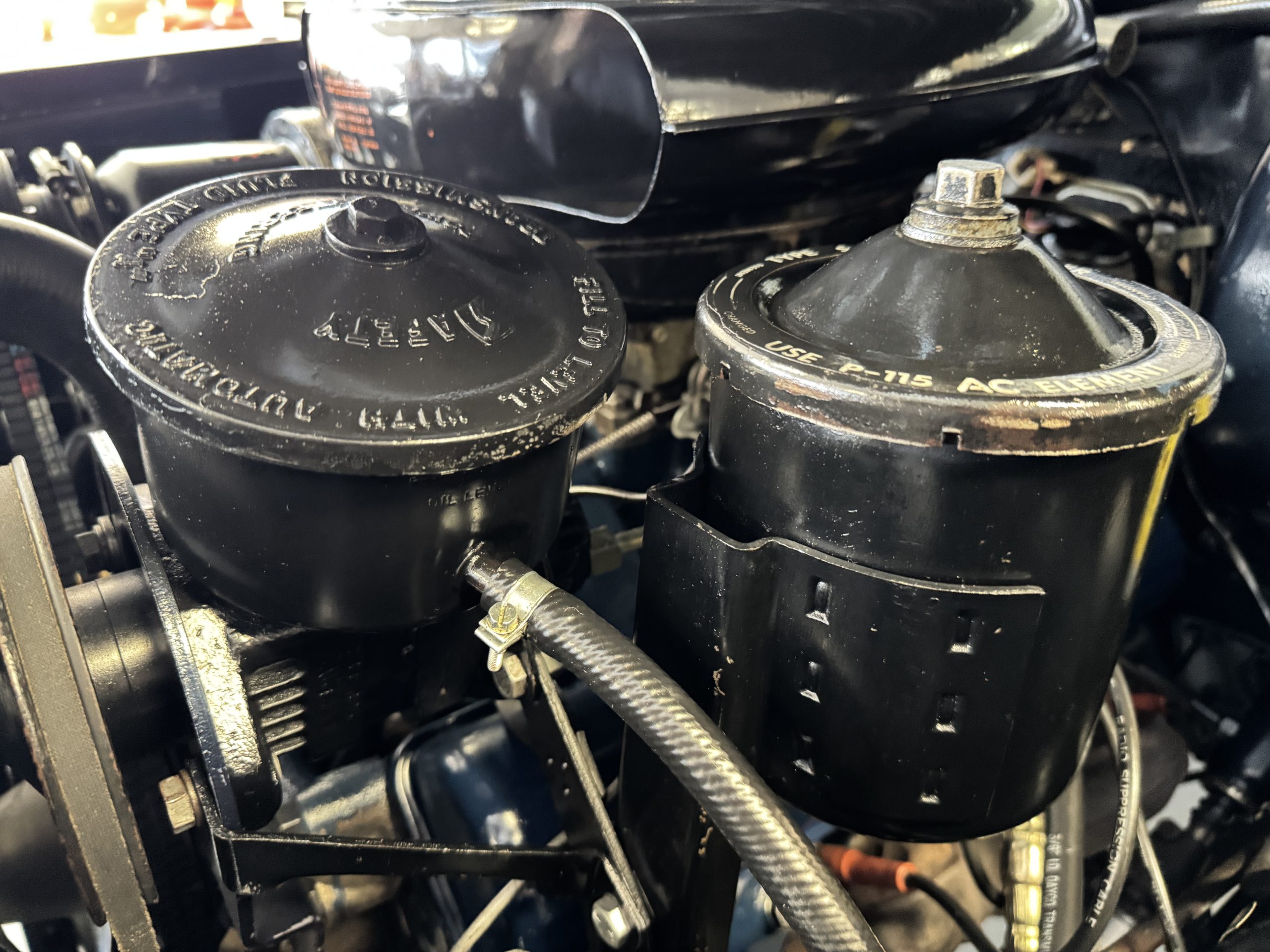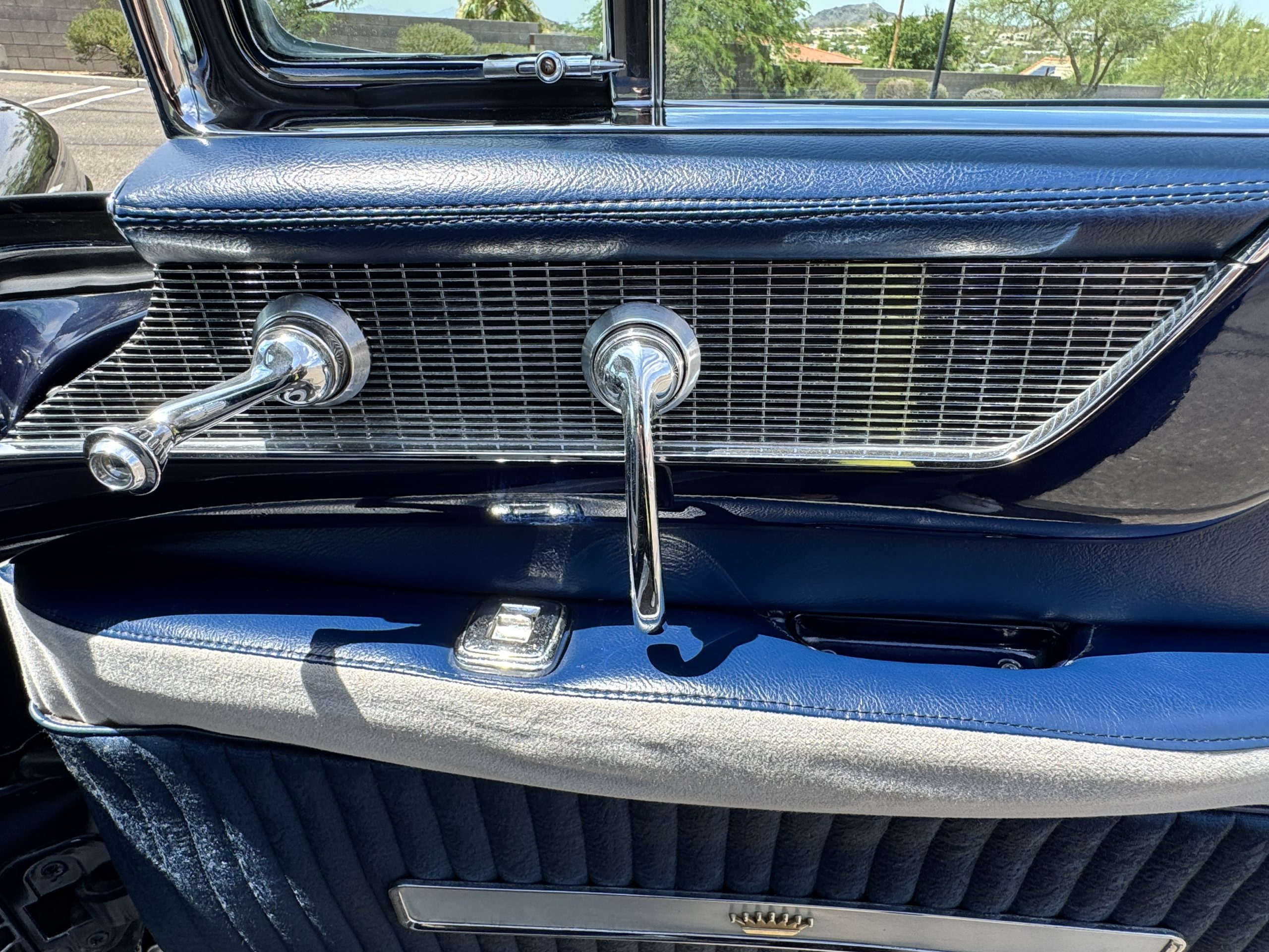 The interior of this Cadillac is in very good overall condition reflecting a very good quality older restoration. The interior is a Dark Blue Brocade with Grey Broadcloth with Dark Blue piping and is in very good condition. The Dark Blue dashpad is in excellent condition, and the steering wheel is in good condition with three minor cracks from normal use. This Sixty Special has front and back air conditioning through overhead vents that have been recently serviced and blows cold. This Cadillac comes with the Autronic eye, Wonderbar AM radio works well and power adjustable front seats. The power antenna motor works and the antenna mast needs to be replaced. Overall, this Cadillac is in very good condition and would be a great car to use as a classic driver, at local shows or touring.