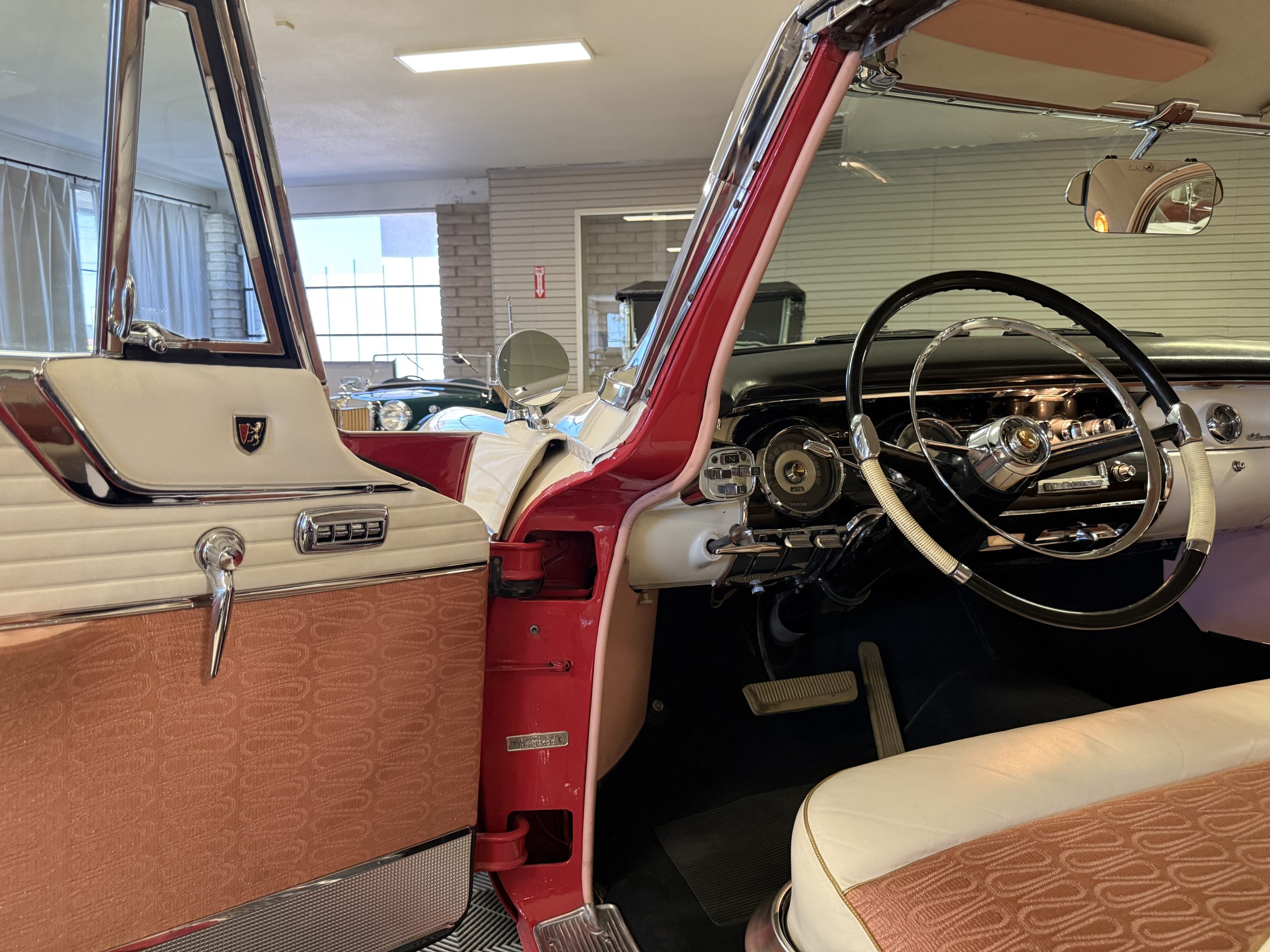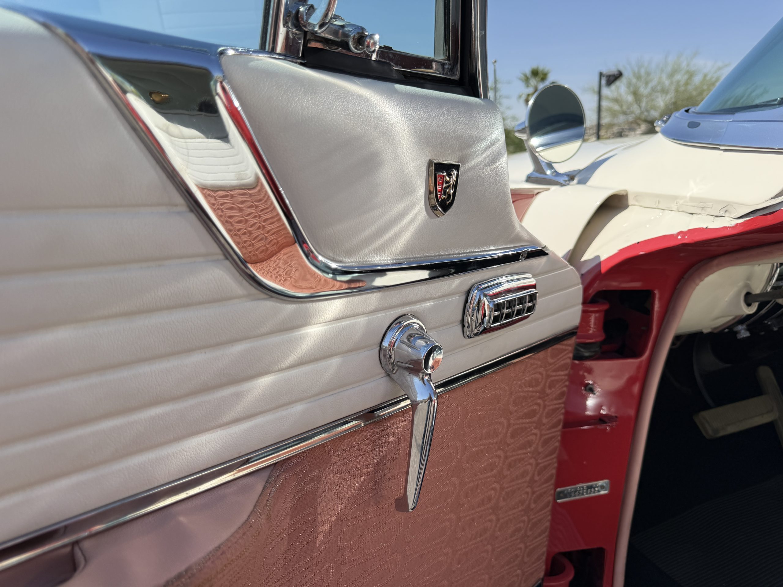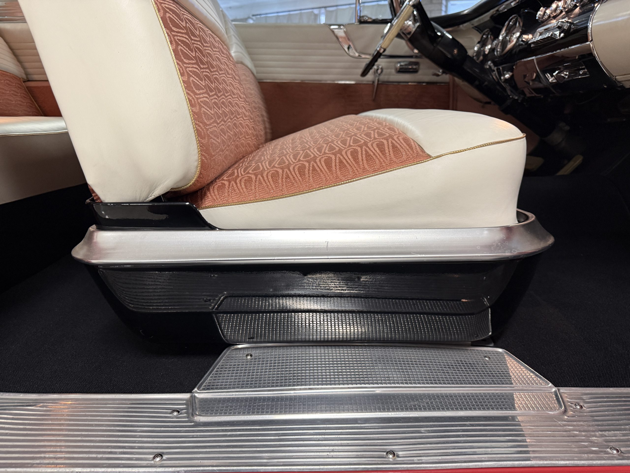 This 1956 Chrysler New Yorker St. Regis is in overall excellent condition and has a 354ci V8 “FirePower” Hemi showing 5,000 miles. This New Yorker has the PowerFlite automatic transmission with push-button control. The Chrysler presents in tri-tone Raven Black, Regimental Red, and Sand Dune Beige finish paired with white and coral interior all in excellent overall condition. This New Yorker is a beautiful example that would be a joy for local shows and weekend driving!