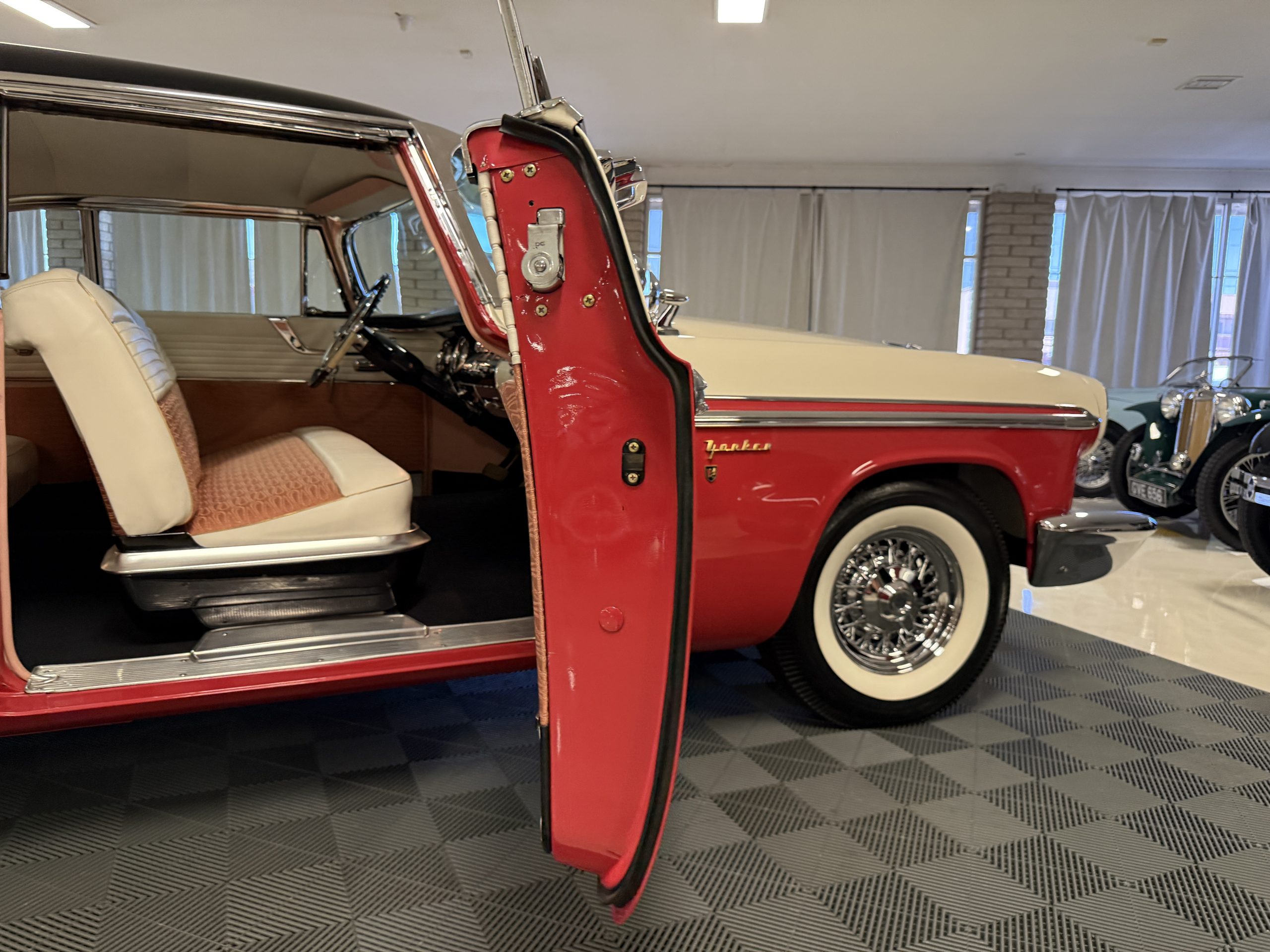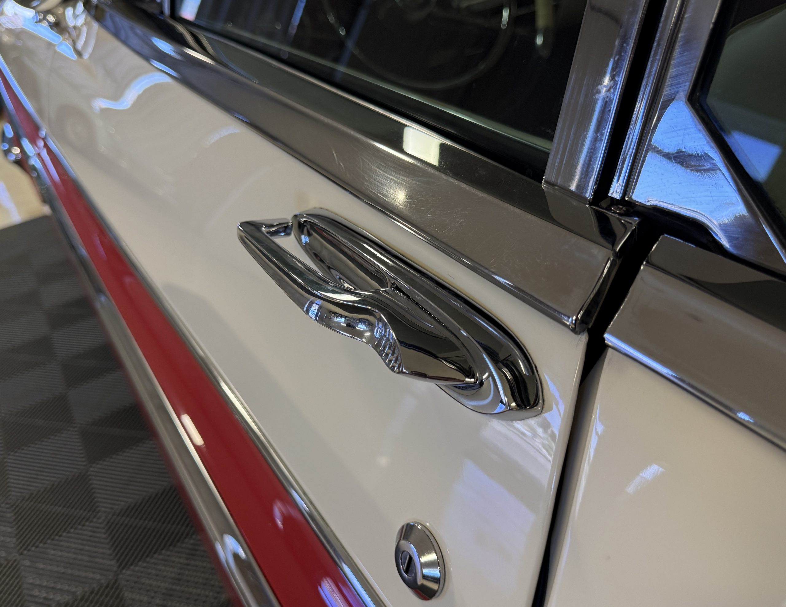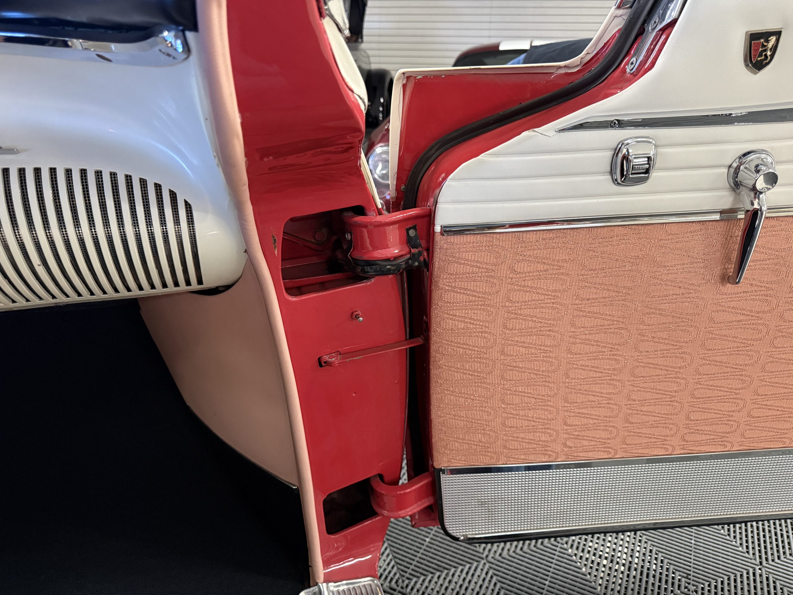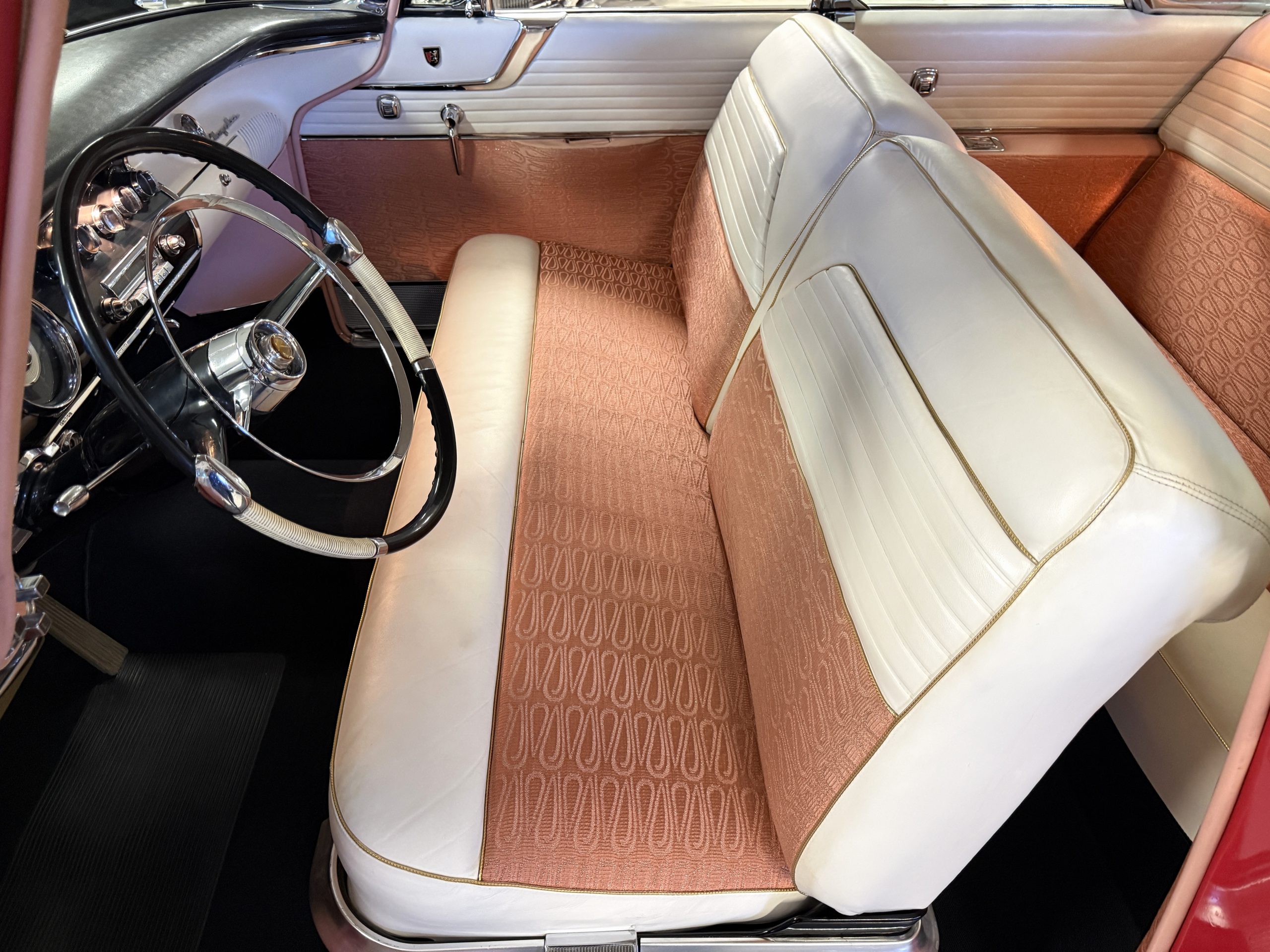 This 1956 Chrysler New Yorker St. Regis is in overall excellent condition and has a 354ci V8 “FirePower” Hemi showing 5,000 miles. This New Yorker has the PowerFlite automatic transmission with push-button control. The Chrysler presents in tri-tone Raven Black, Regimental Red, and Sand Dune Beige finish paired with white and coral interior all in excellent overall condition. This New Yorker is a beautiful example that would be a joy for local shows and weekend driving!