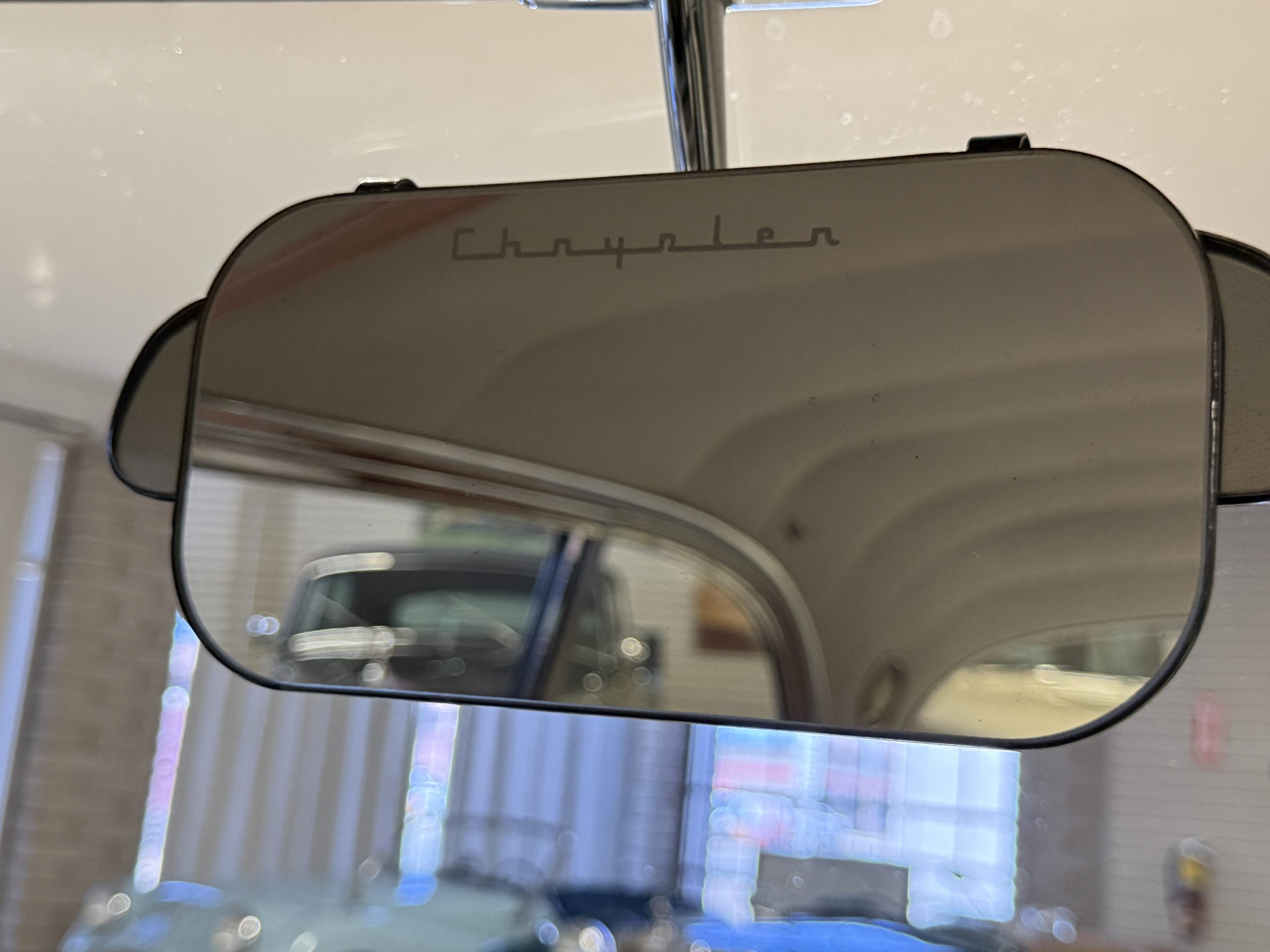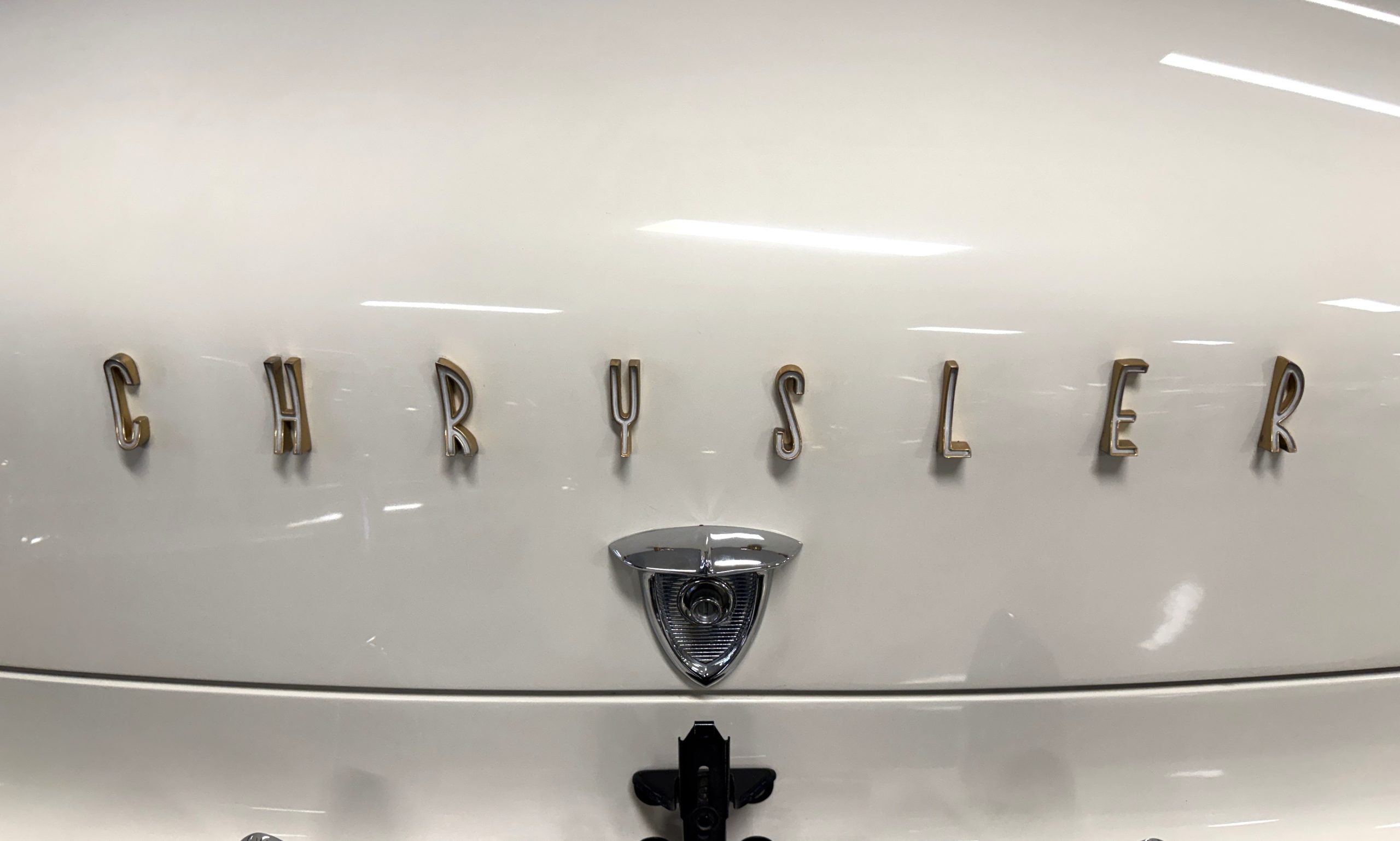 The exterior of the Chrysler is in excellent condition, finished in tri-tone Raven Black, Regimental Red, and Sand Dune Beige. The chrome is in excellent overall condition across the bumpers, trim, and brightwork accessories. The Chrysler has Solex tinted glass, headlights, turn signals, and low beams that are in good working condition. The Chrysler is fitted with wire wheels, paired with 8.20-15 bias ply whitewall tires that are in good condition, though the DOT date code of 2002 indicates replacement is recommended prior to extended driving. The exterior is in excellent condition and the tri-tone color combination makes a big impression for enthusiasts of the era!