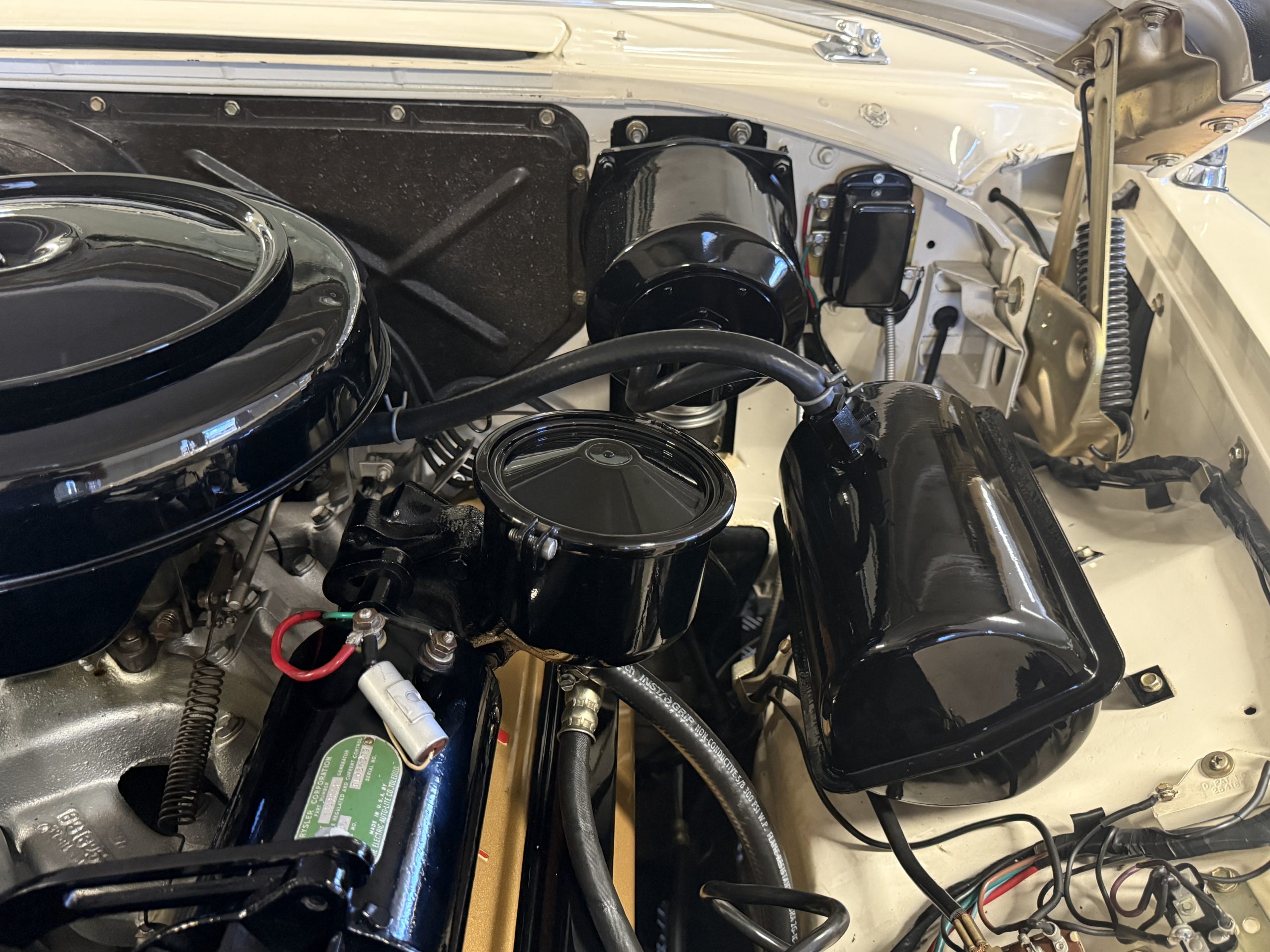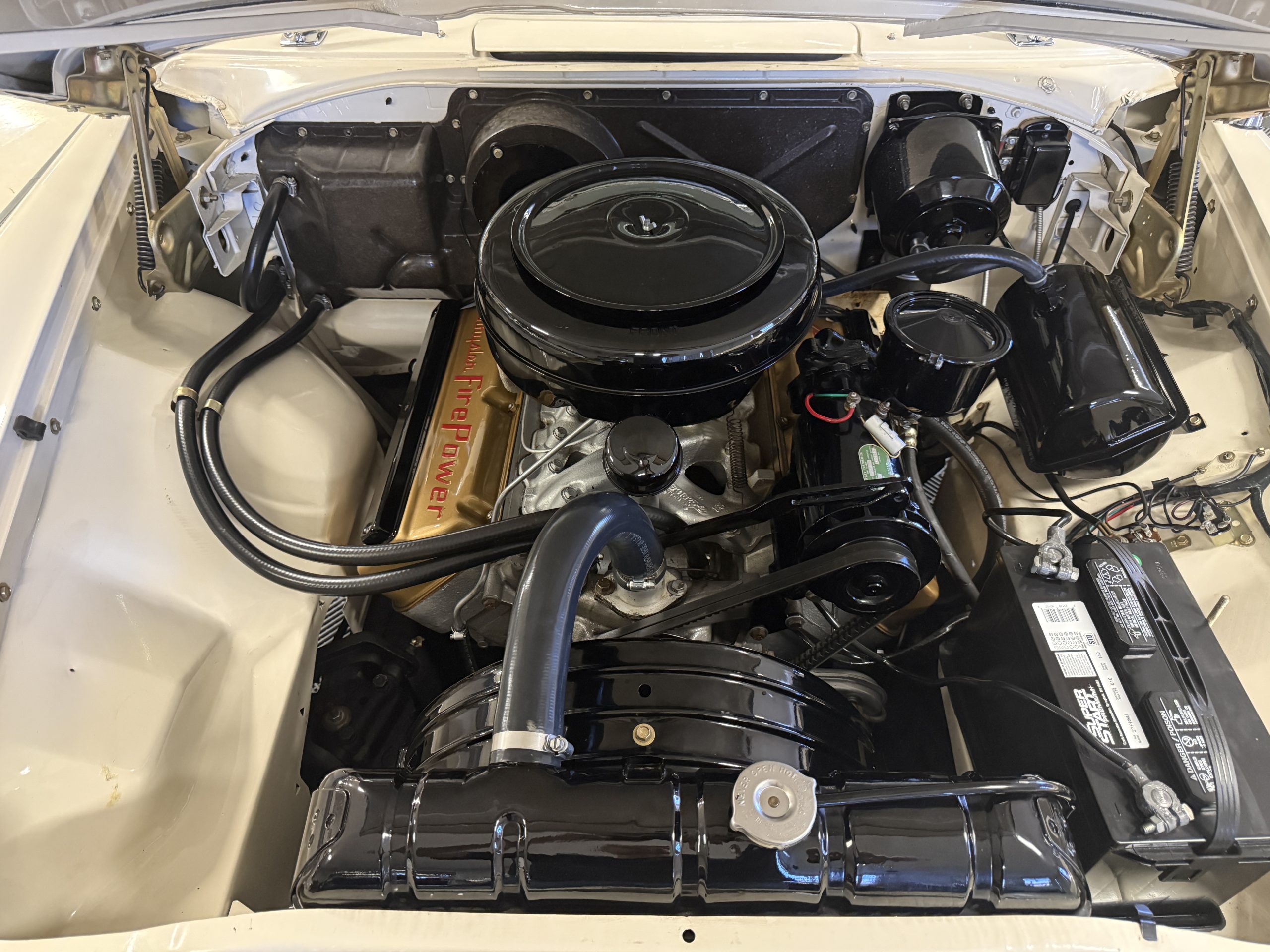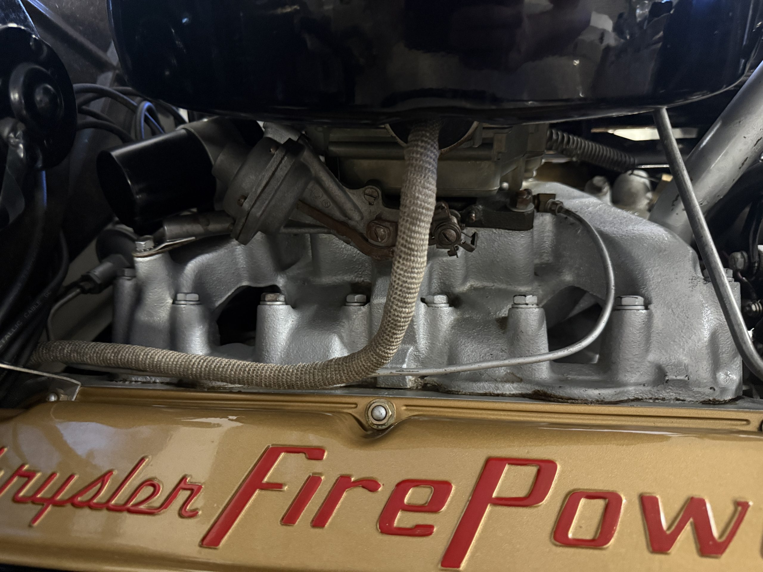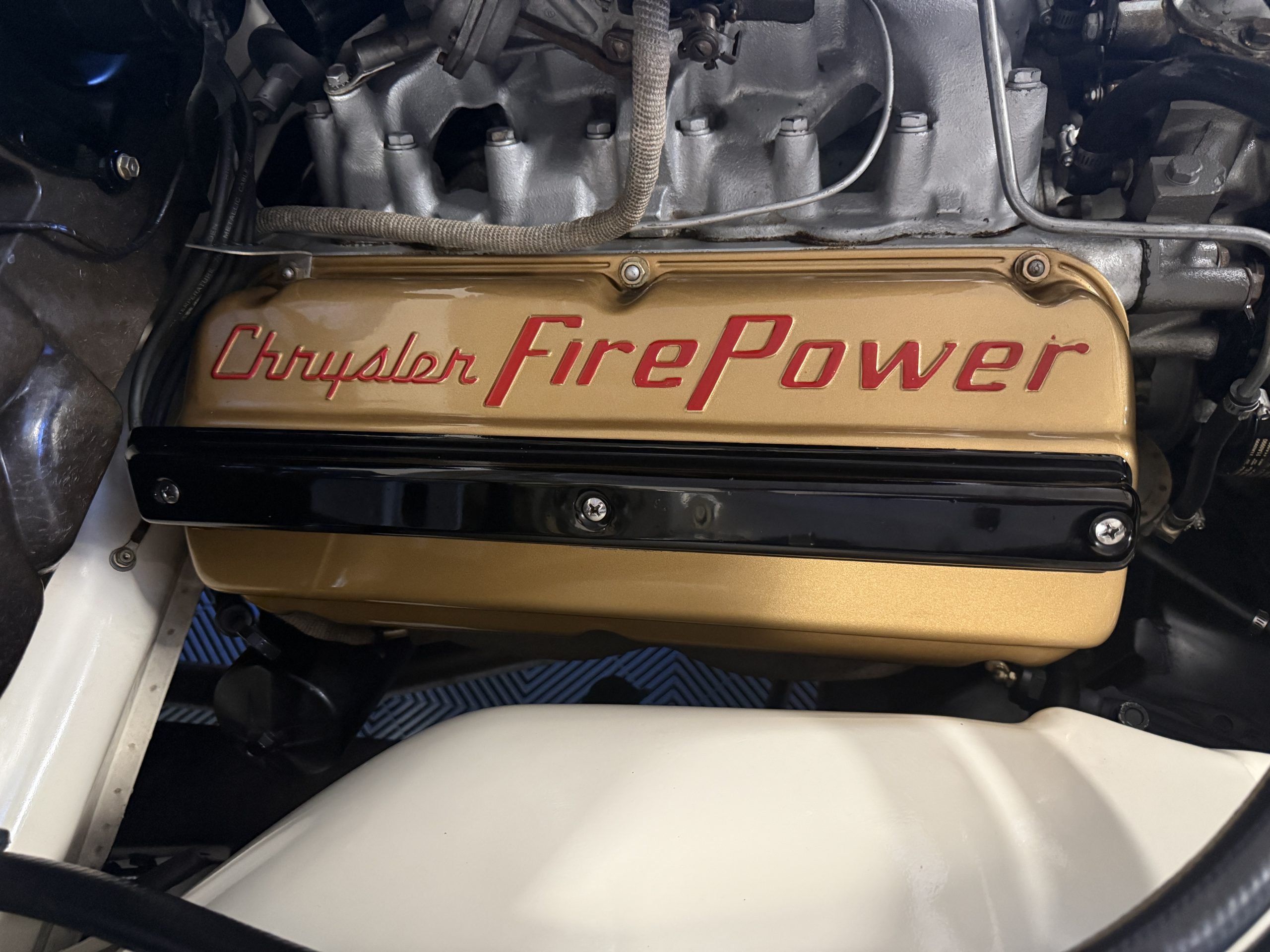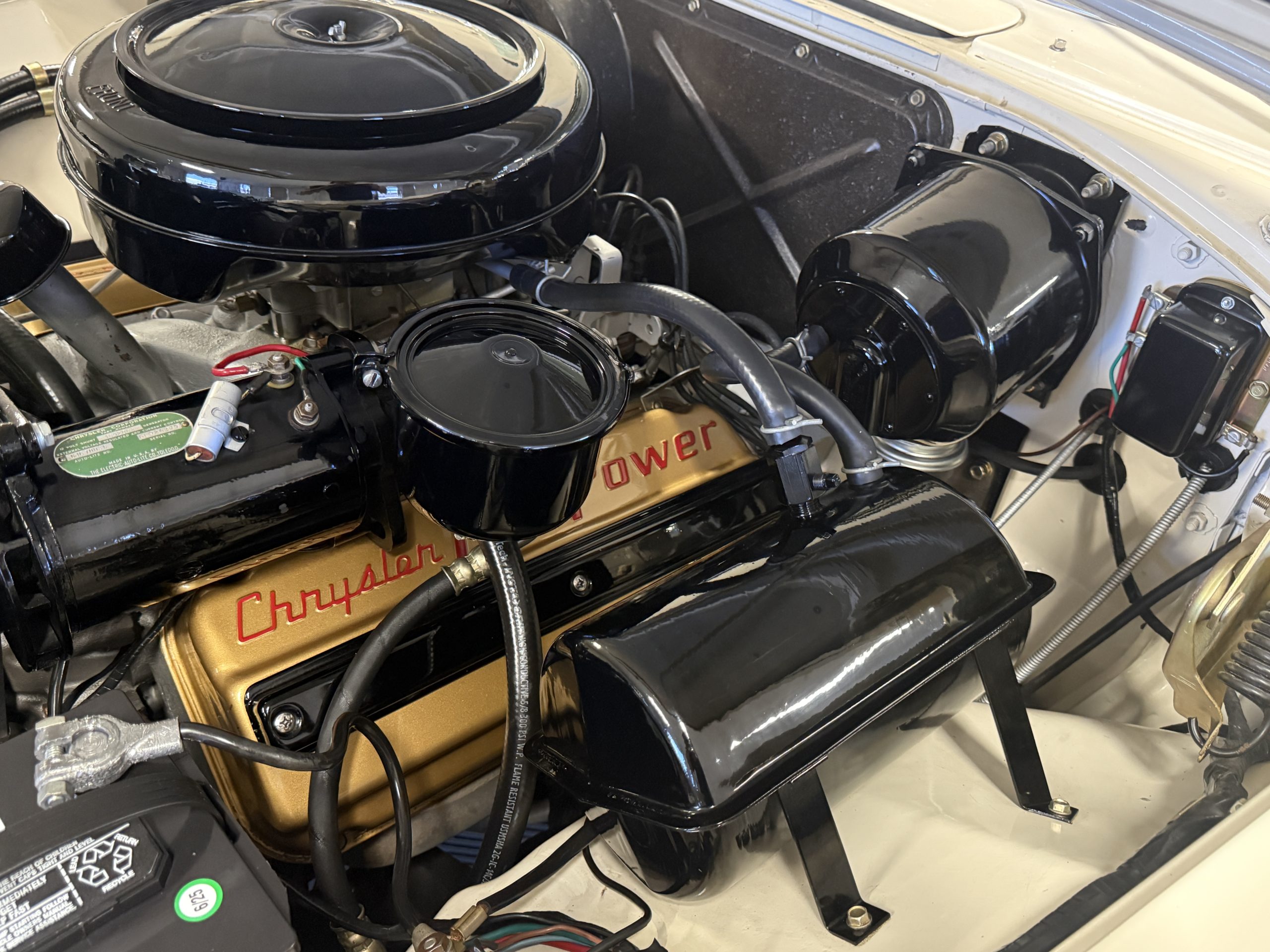 The Chrysler is powered by the 354ci FirePower HEMI V8 producing 280 horsepower, paired with the PowerFlite automatic transmission with push-button control. The Chrysler has power steering, drum brakes with power assist and dual exhaust. This Chrysler is in great mechanical condition, and the opening the engine bay is truly one of the best parts about the New Yorker.