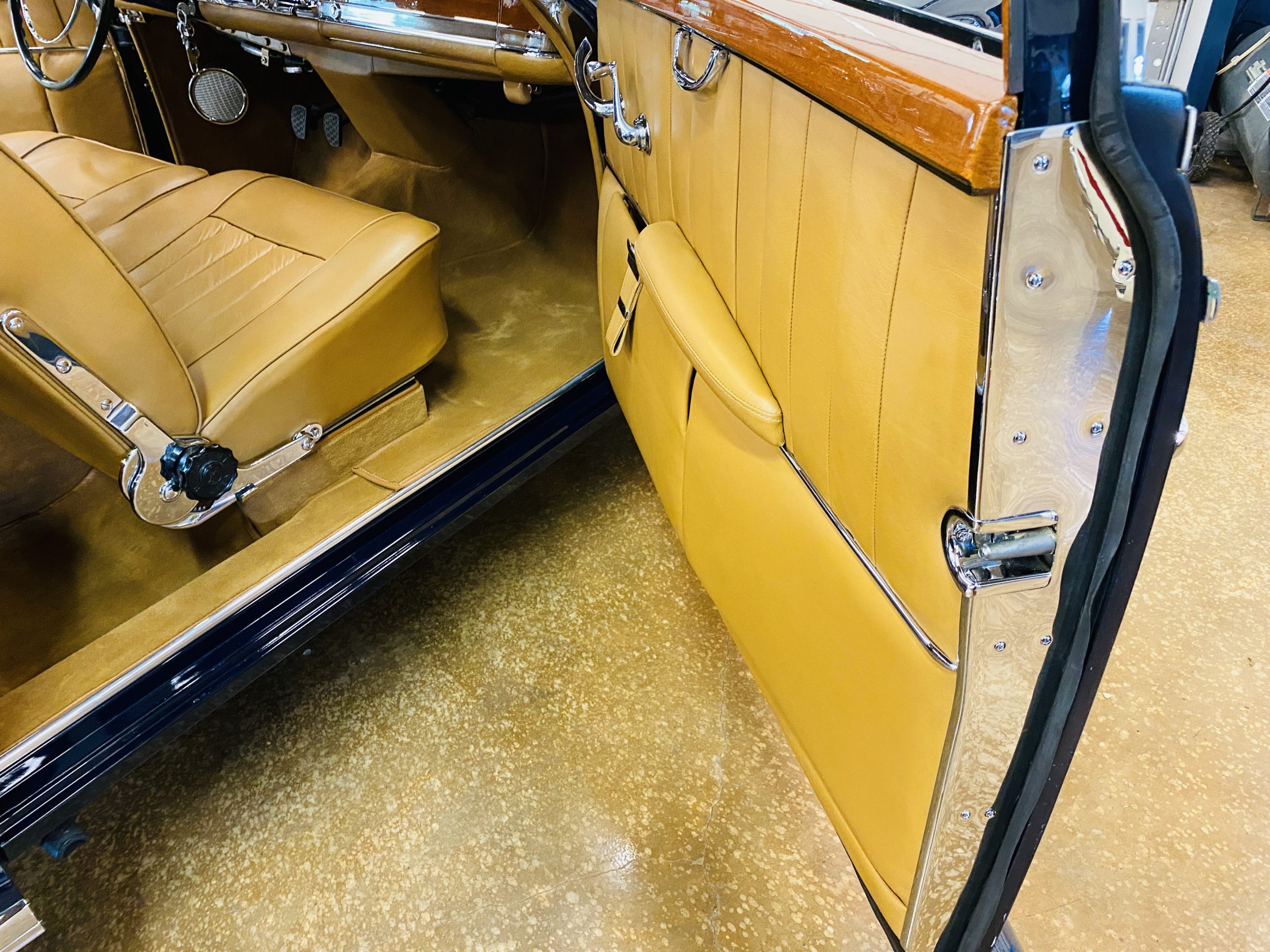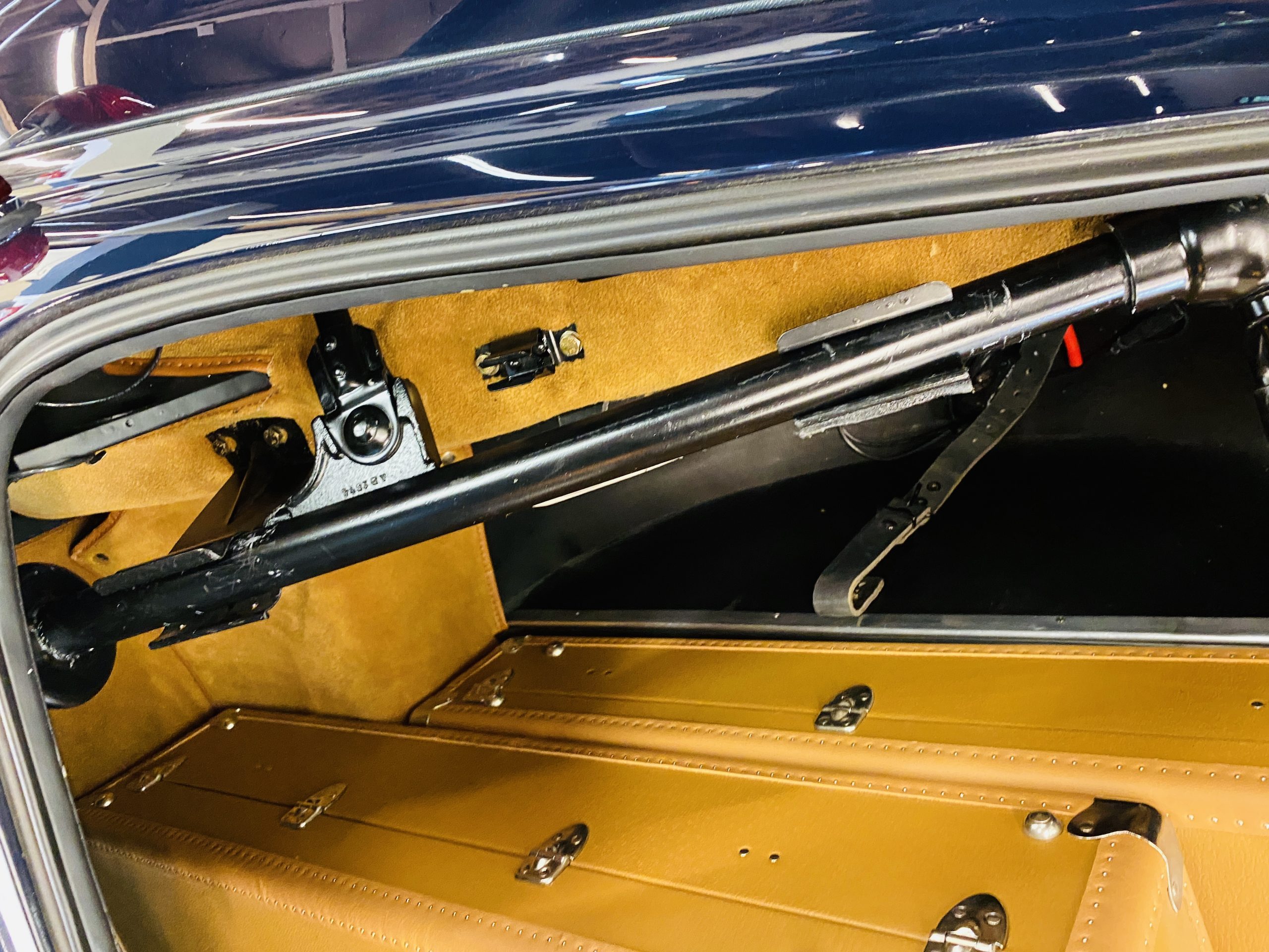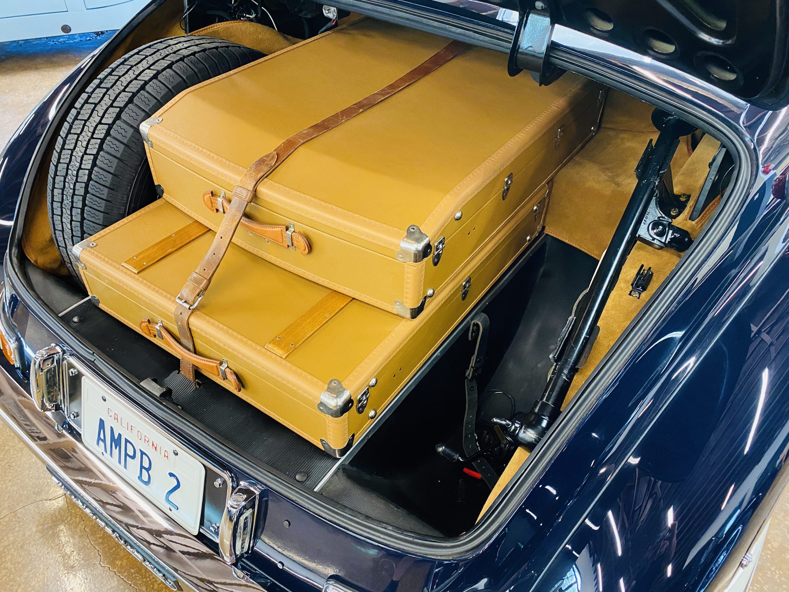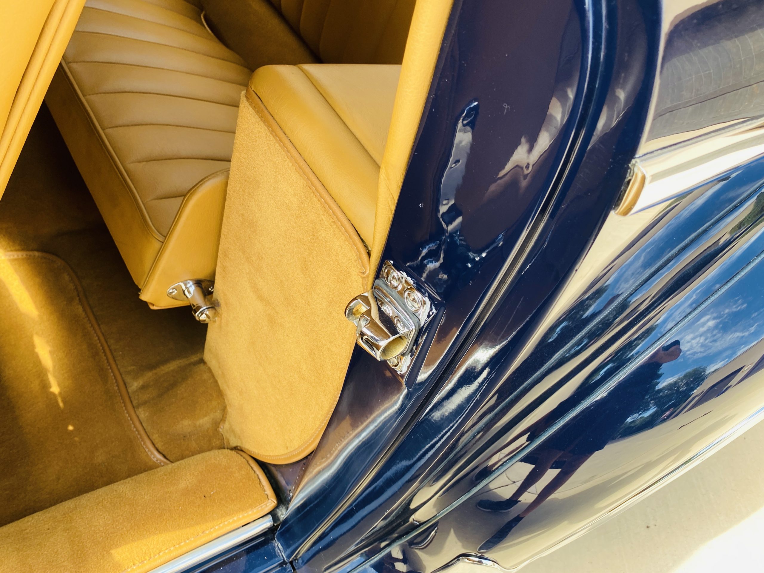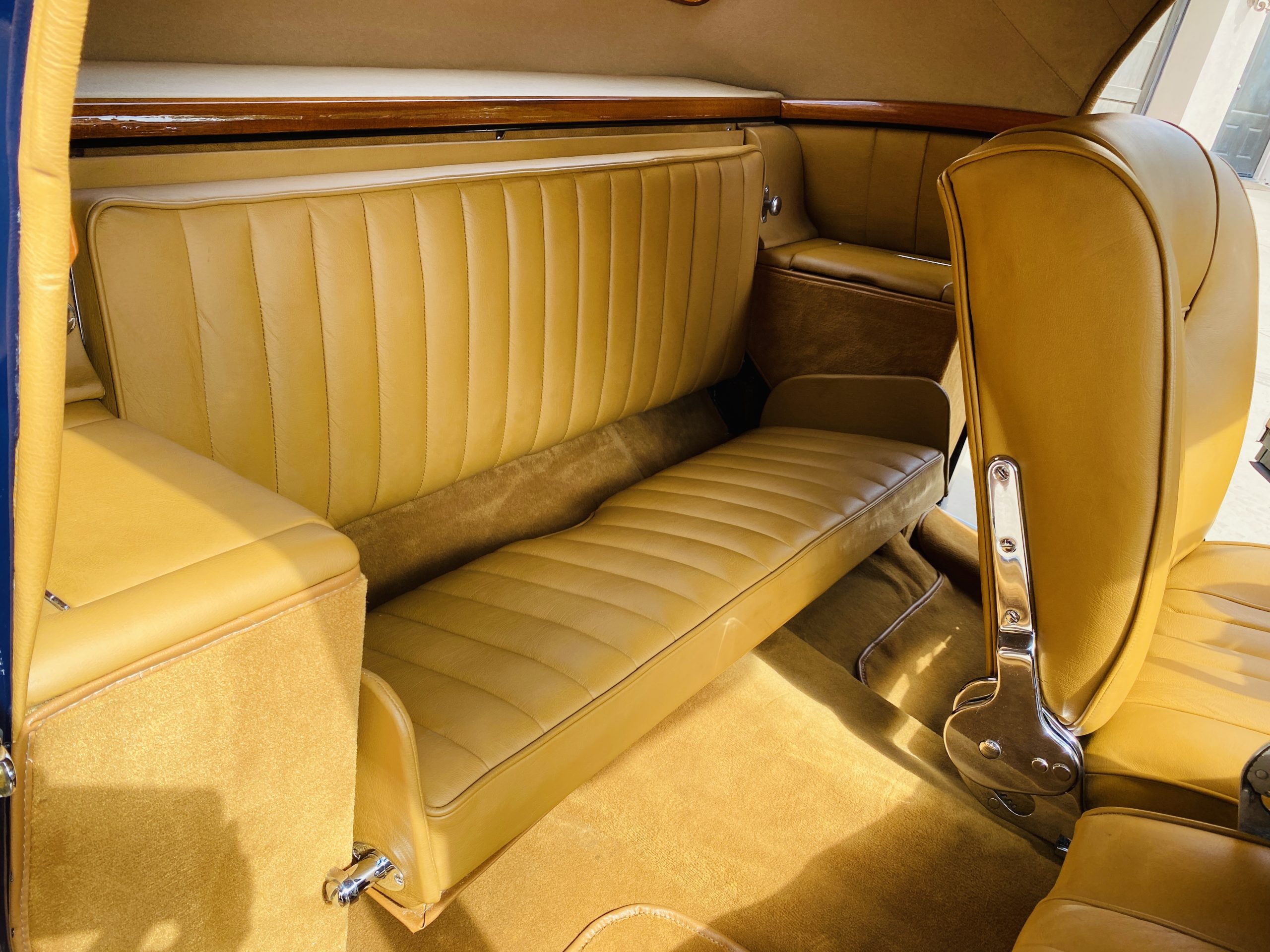 The vehicle offered here is a beautiful example that has been subject to a complete no-expense spared restoration. The livery is finished in a deep dark blue and the body retains all the original chrome work, which was individually made to fit each car. Inside, the deep tan leather is matched with original handles and fittings capped off with the carefully restored walnut dashboard. The rear compartment includes a purpose-built stowage compartment, and the spare wheel and tools are in excellent condition. The tan leather luggage is in the trunk and really sets the motorcar apart as the ultimate touring machine.
