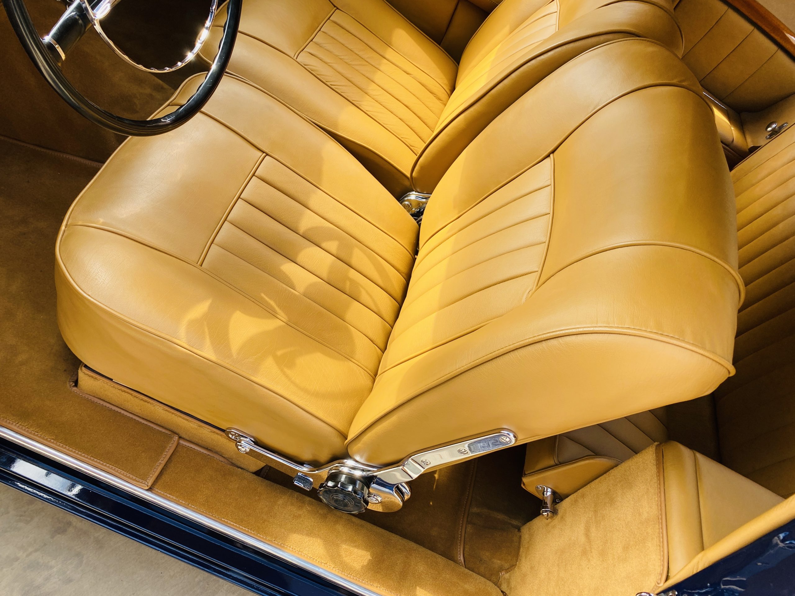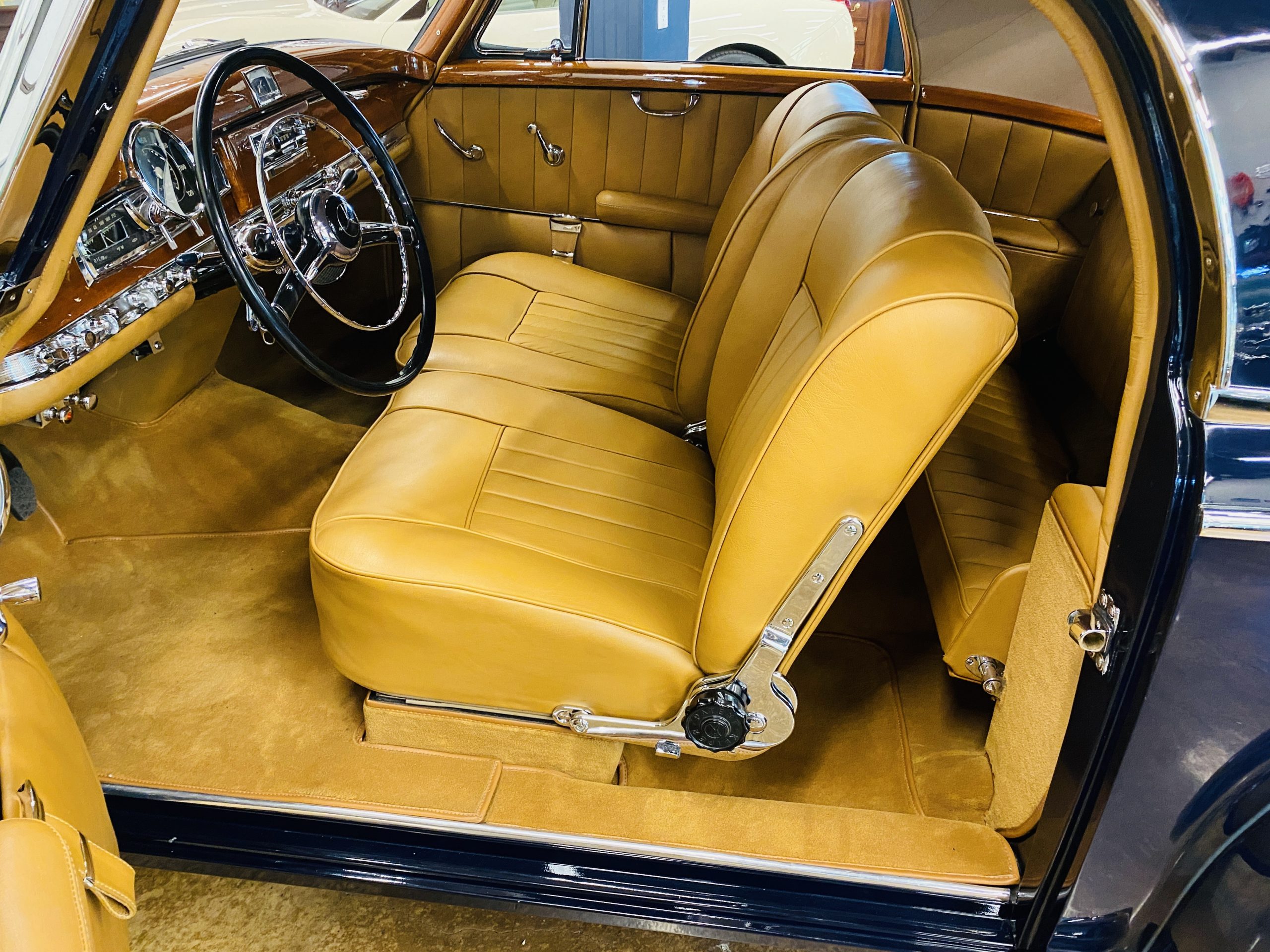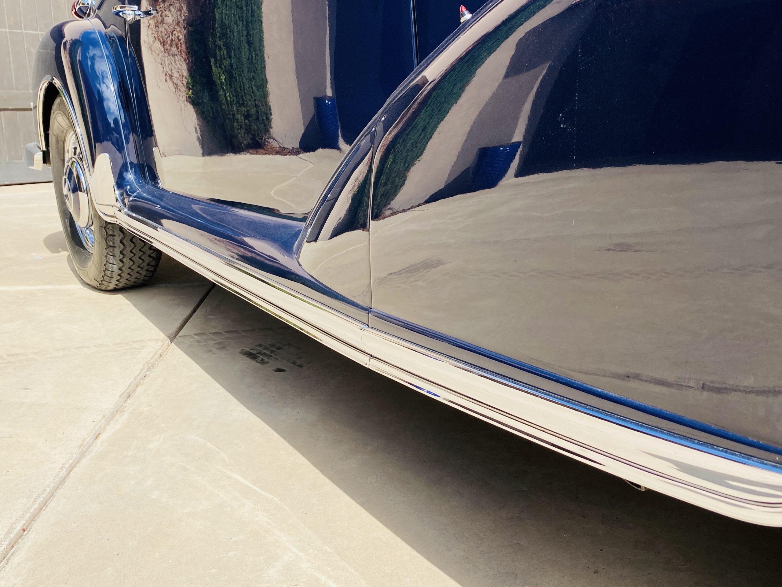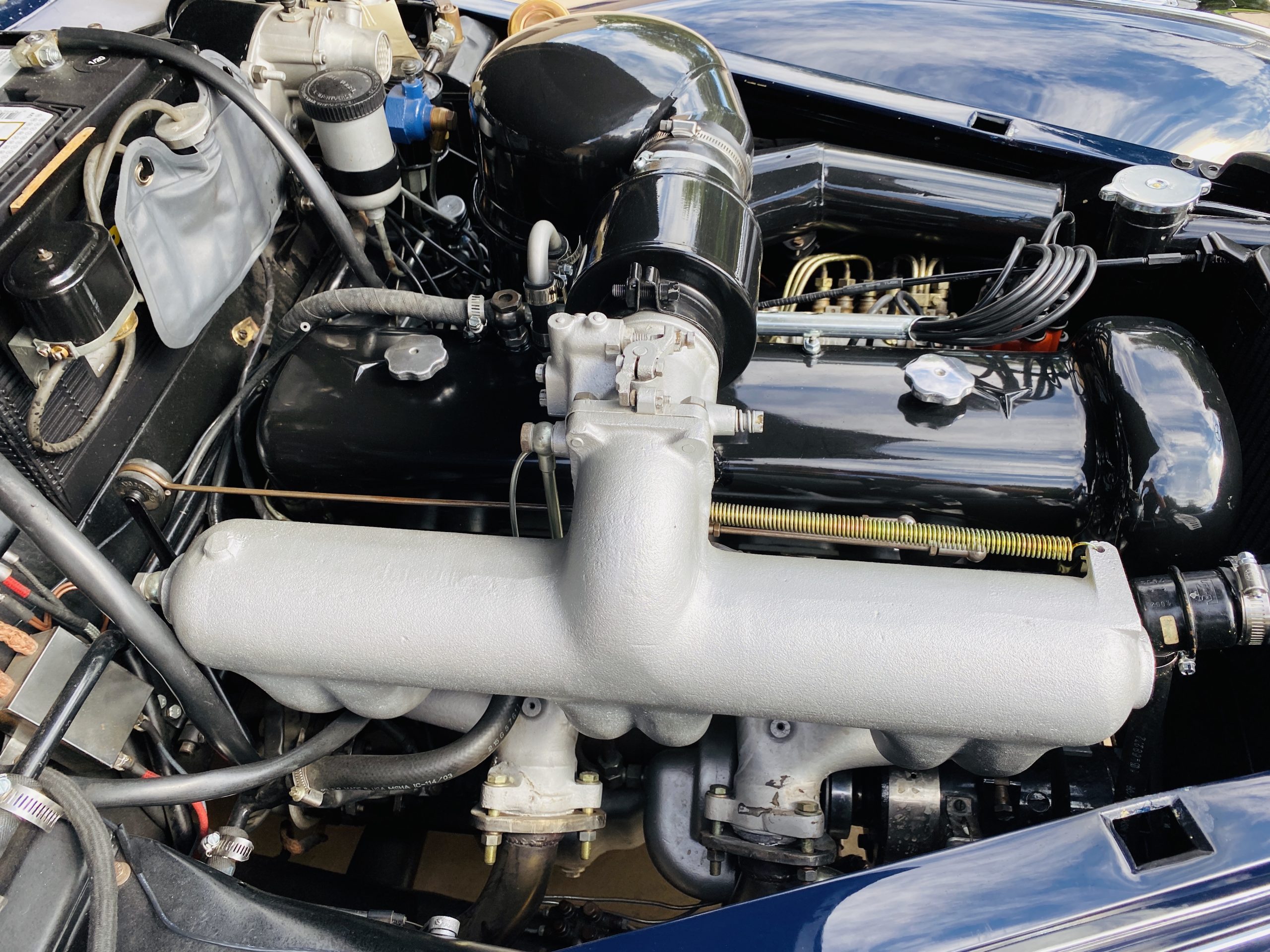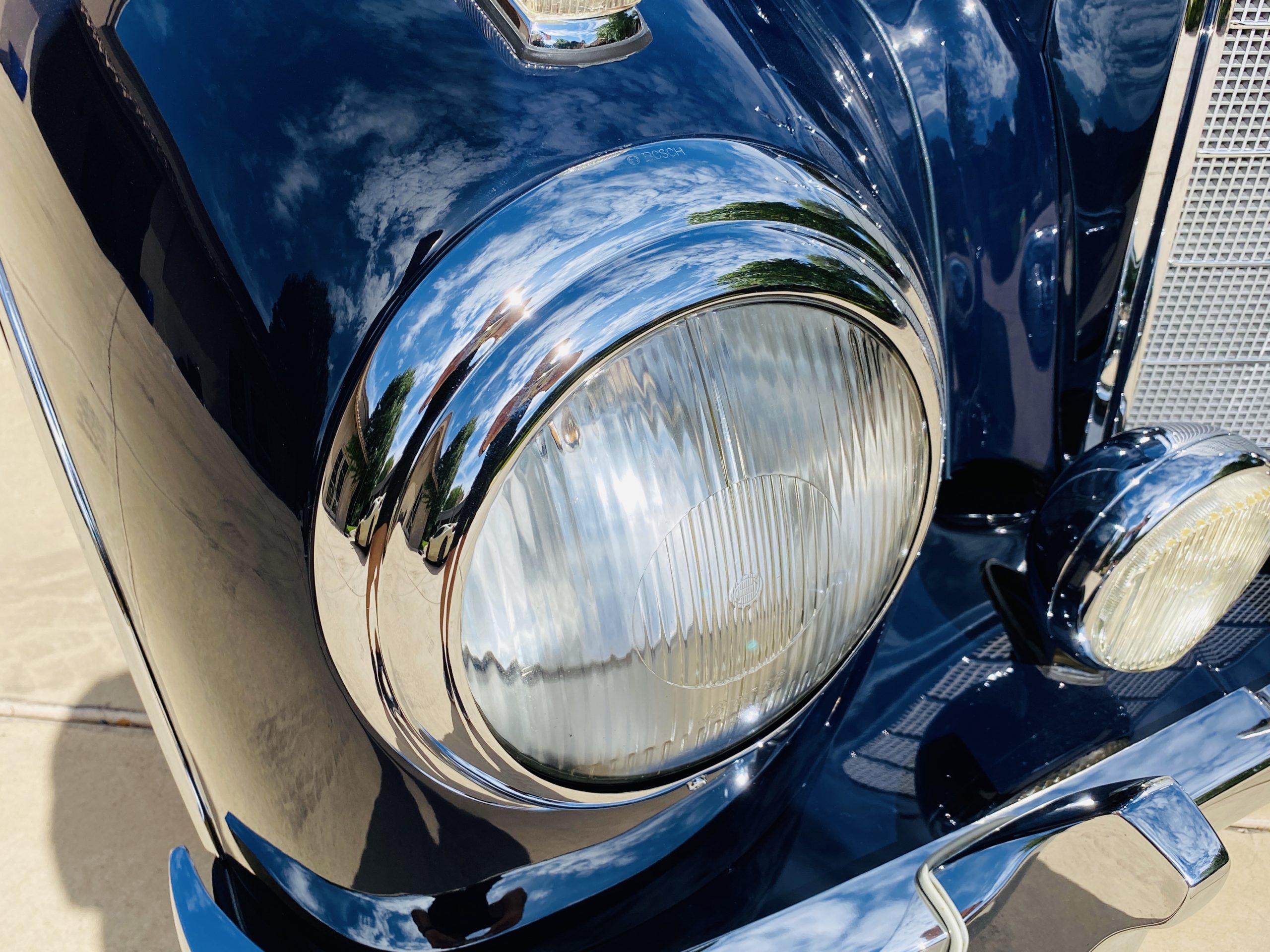 The vehicle offered here is a beautiful example that has been subject to a complete no-expense spared restoration. The livery is finished in a deep dark blue and the body retains all the original chrome work, which was individually made to fit each car. Inside, the deep tan leather is matched with original handles and fittings capped off with the carefully restored walnut dashboard. The rear compartment includes a purpose-built stowage compartment, and the spare wheel and tools are in excellent condition. The tan leather luggage is in the trunk and really sets the motorcar apart as the ultimate touring machine.