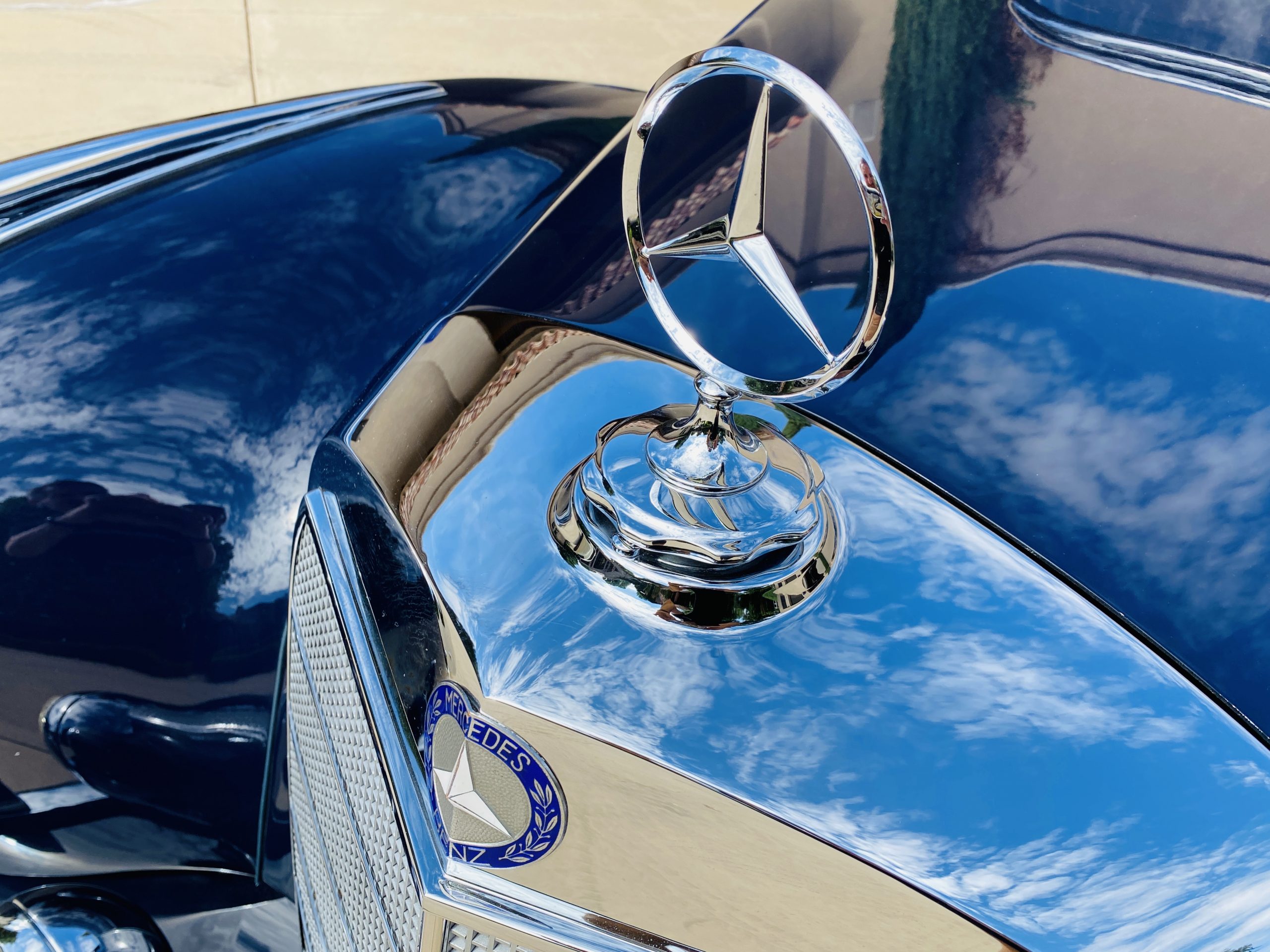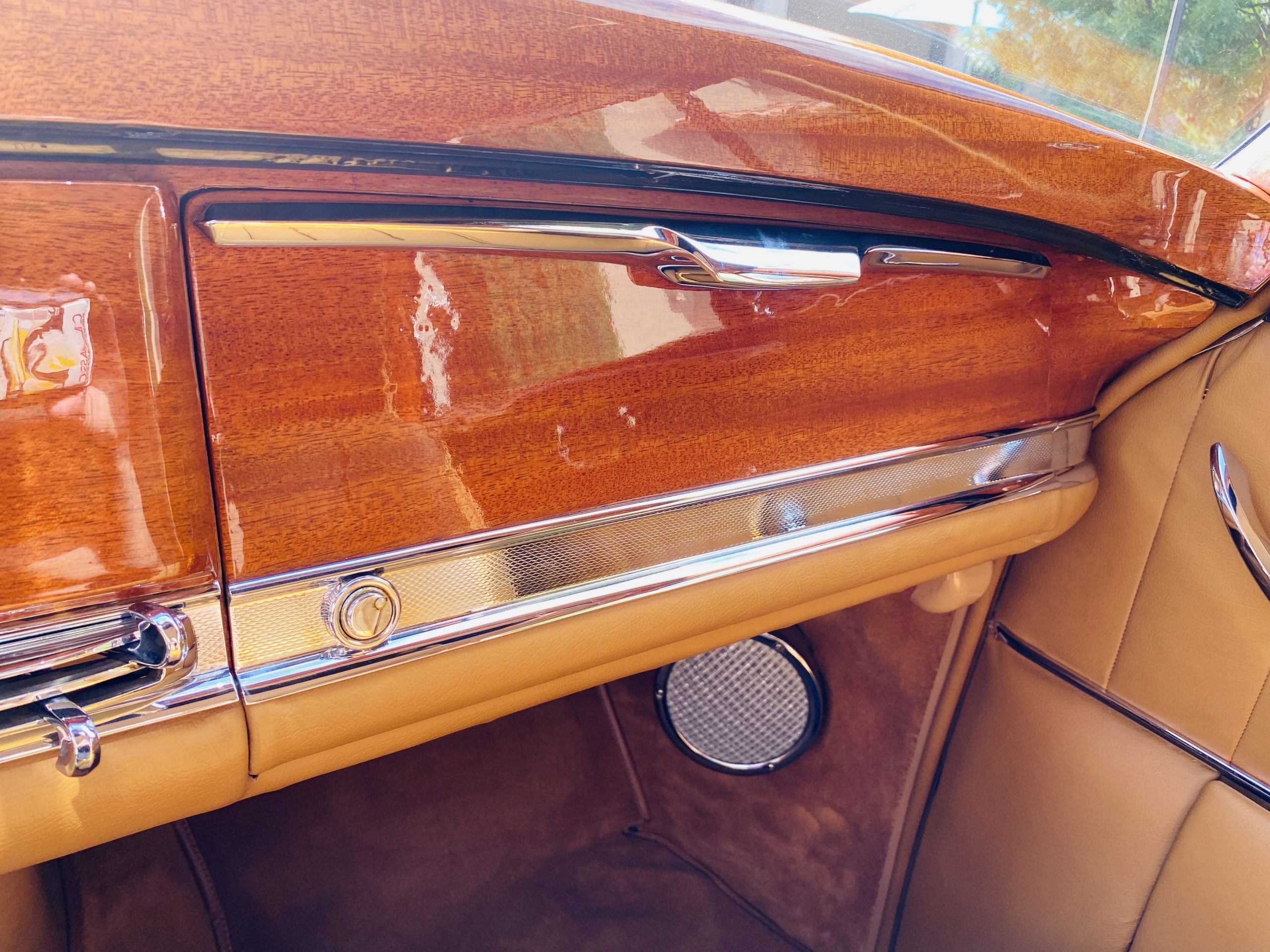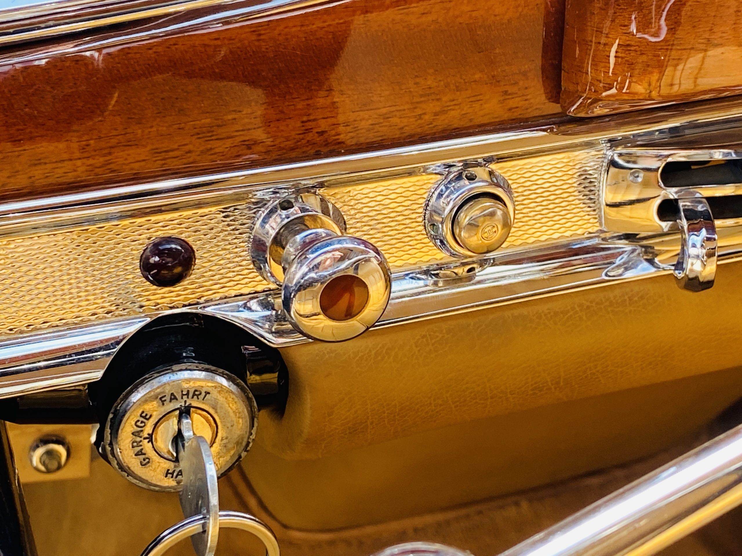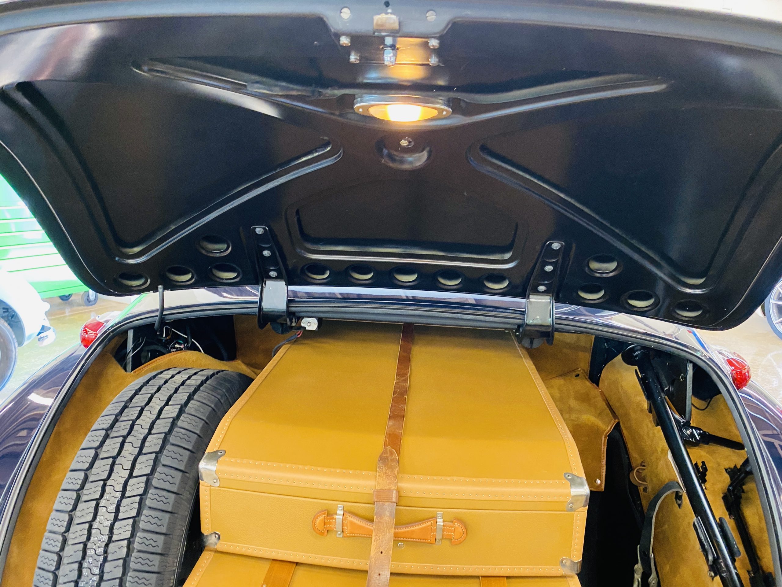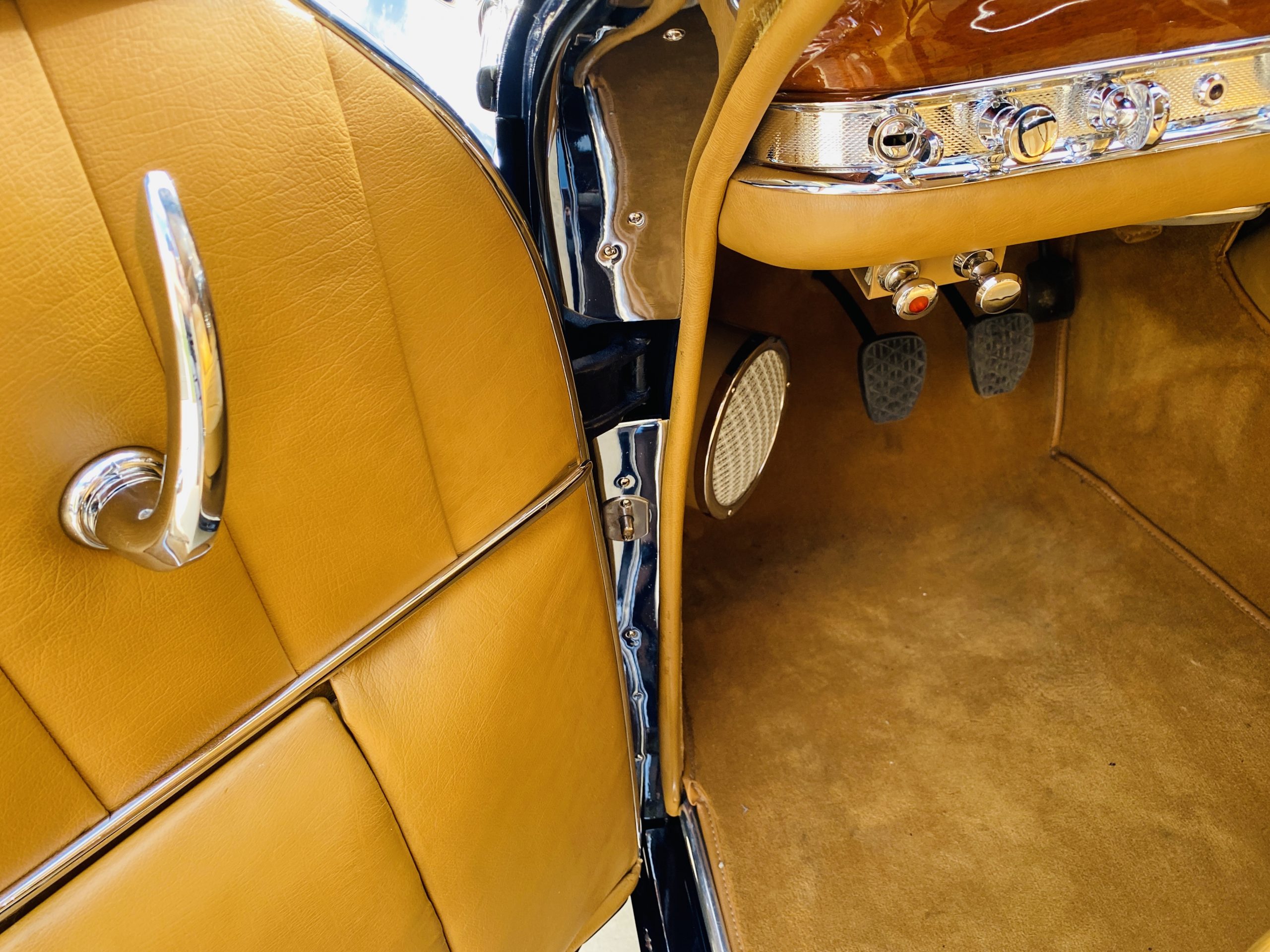 The vehicle offered here is a beautiful example that has been subject to a complete no-expense spared restoration. The livery is finished in a deep dark blue and the body retains all the original chrome work, which was individually made to fit each car. Inside, the deep tan leather is matched with original handles and fittings capped off with the carefully restored walnut dashboard. The rear compartment includes a purpose-built stowage compartment, and the spare wheel and tools are in excellent condition. The tan leather luggage is in the trunk and really sets the motorcar apart as the ultimate touring machine.
