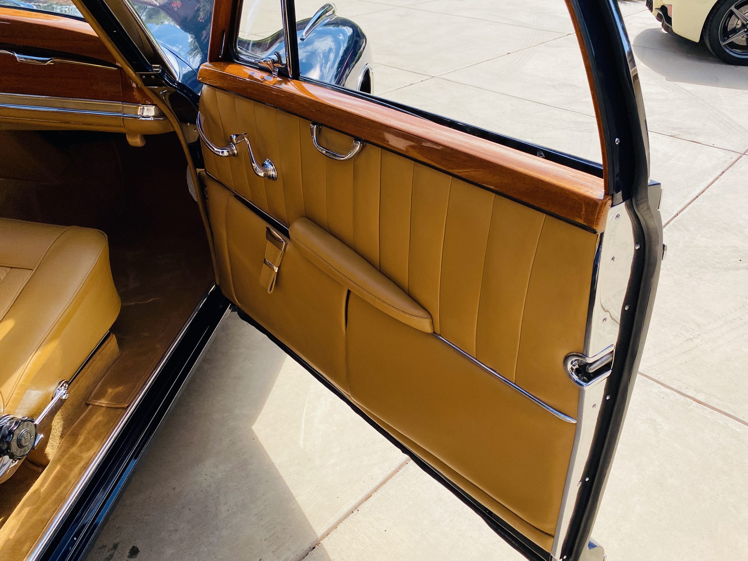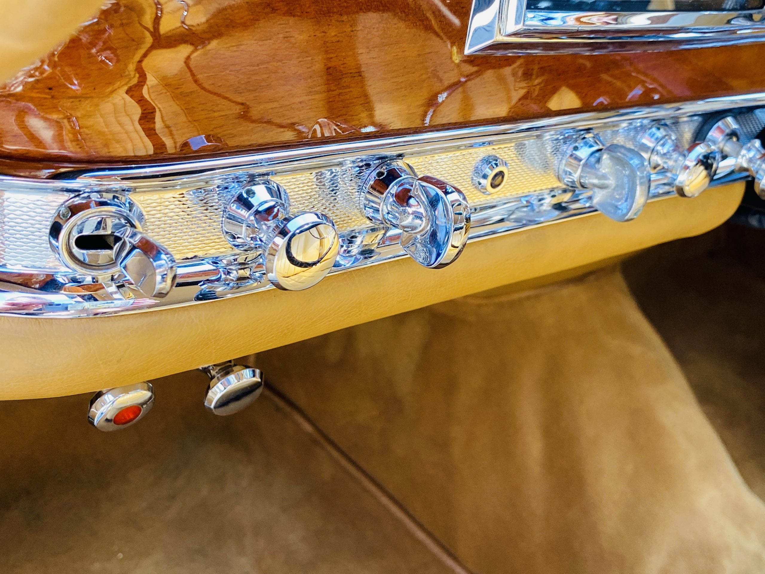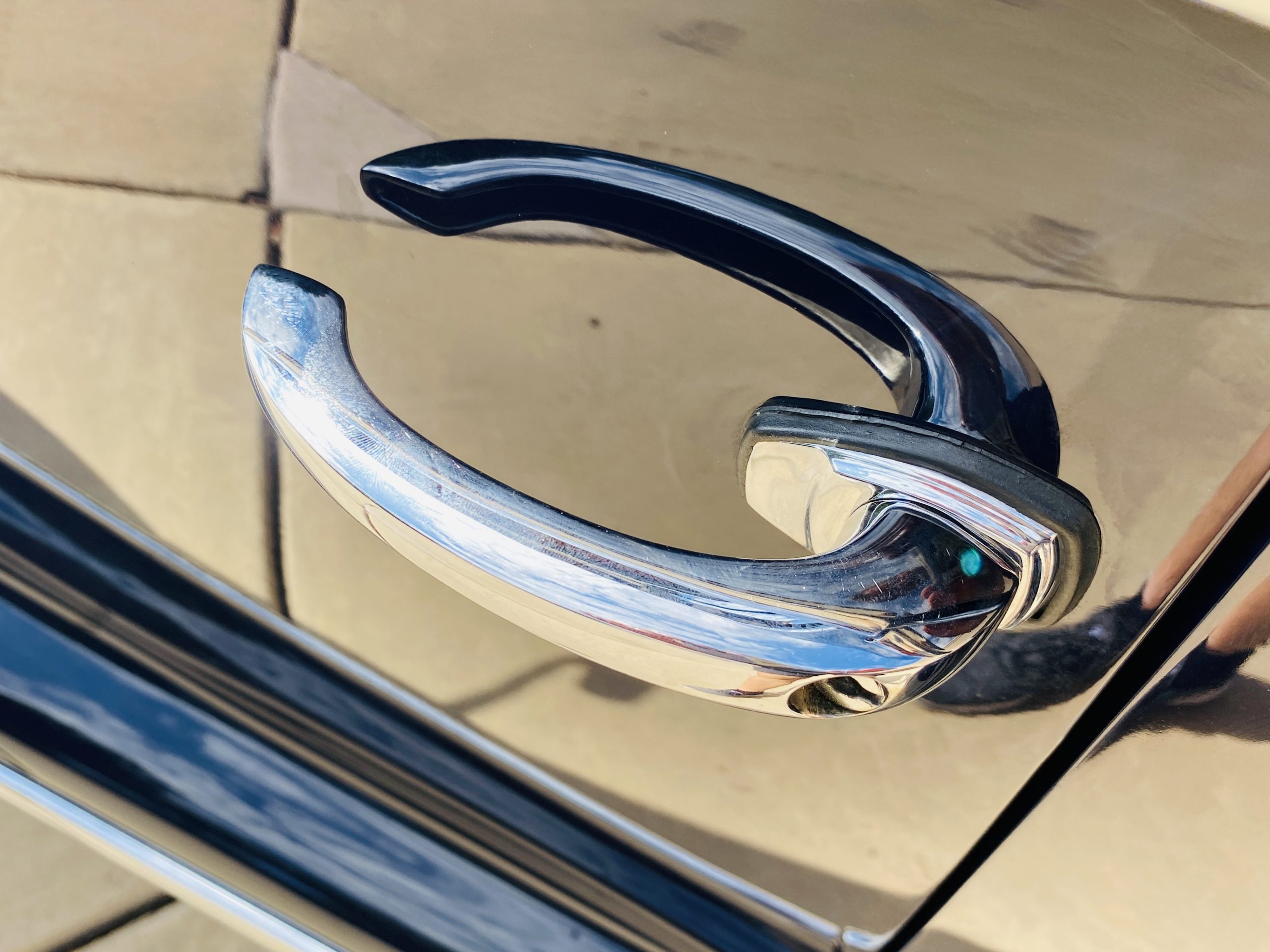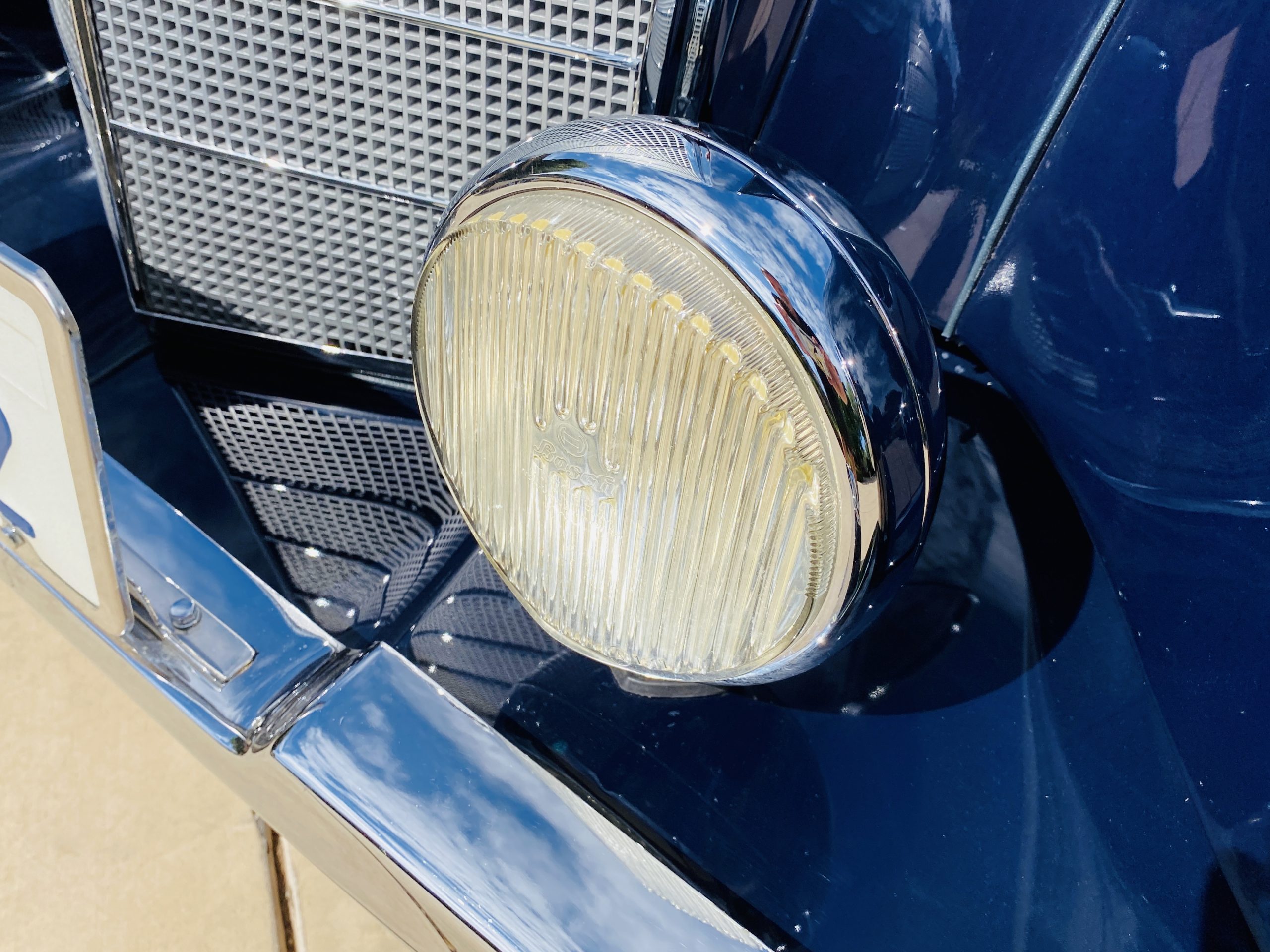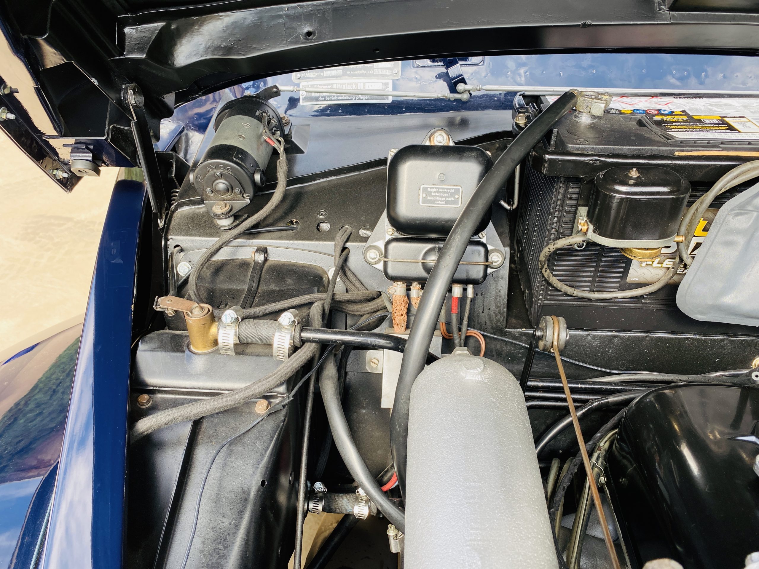 The vehicle offered here is a beautiful example that has been subject to a complete no-expense spared restoration. The livery is finished in a deep dark blue and the body retains all the original chrome work, which was individually made to fit each car. Inside, the deep tan leather is matched with original handles and fittings capped off with the carefully restored walnut dashboard. The rear compartment includes a purpose-built stowage compartment, and the spare wheel and tools are in excellent condition. The tan leather luggage is in the trunk and really sets the motorcar apart as the ultimate touring machine.