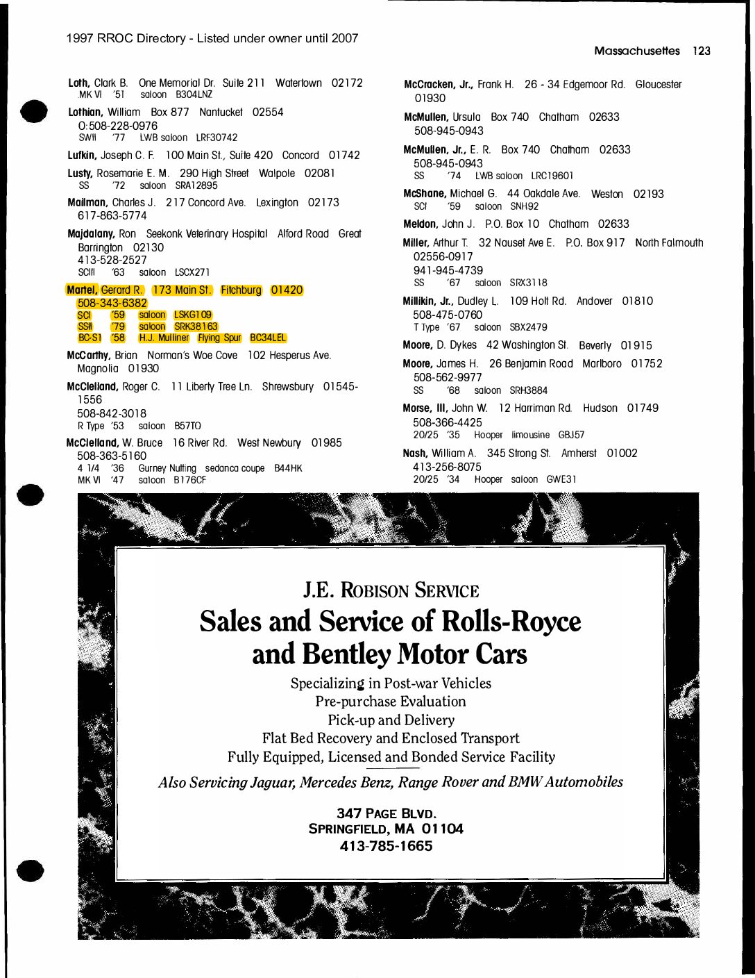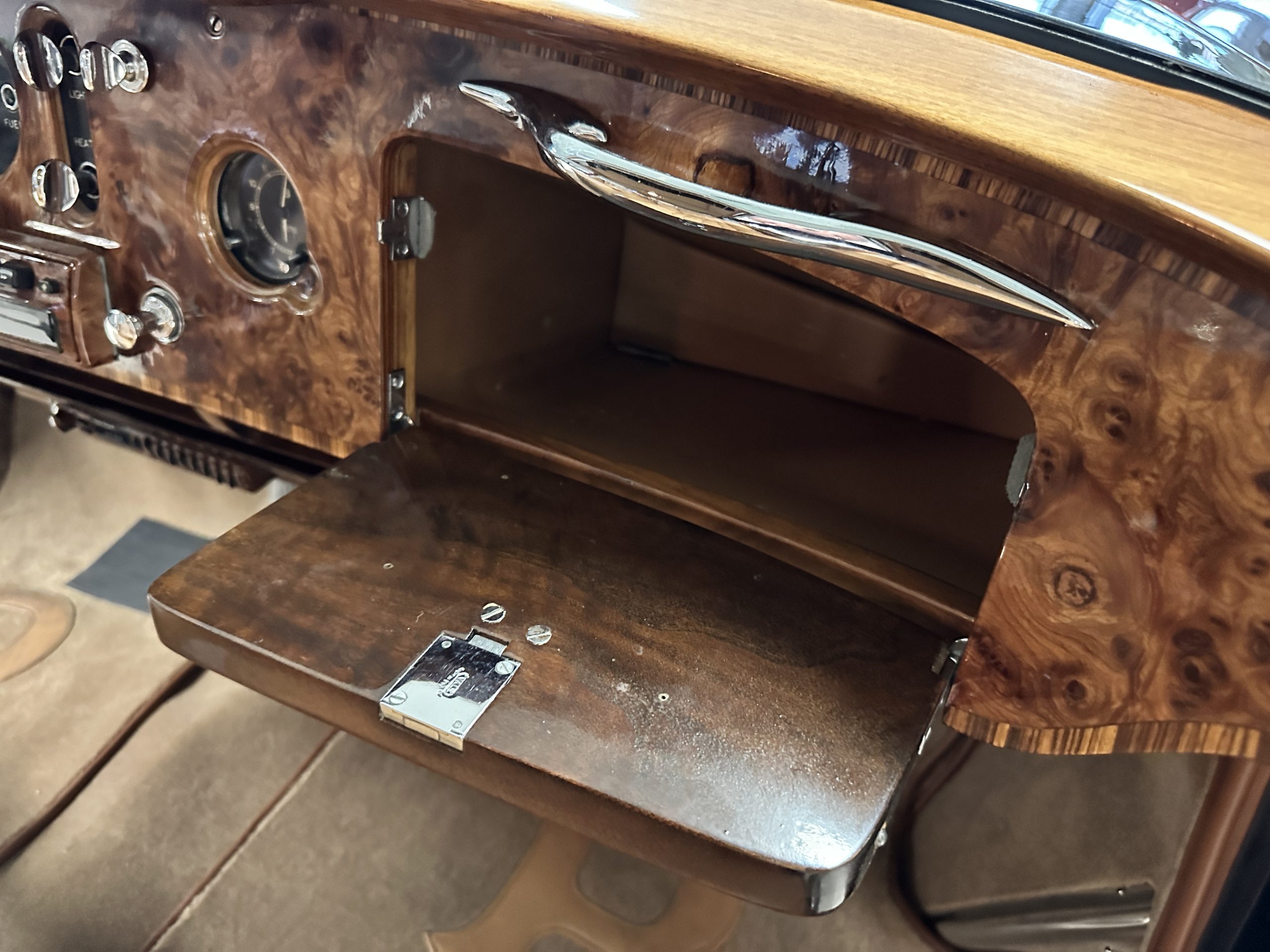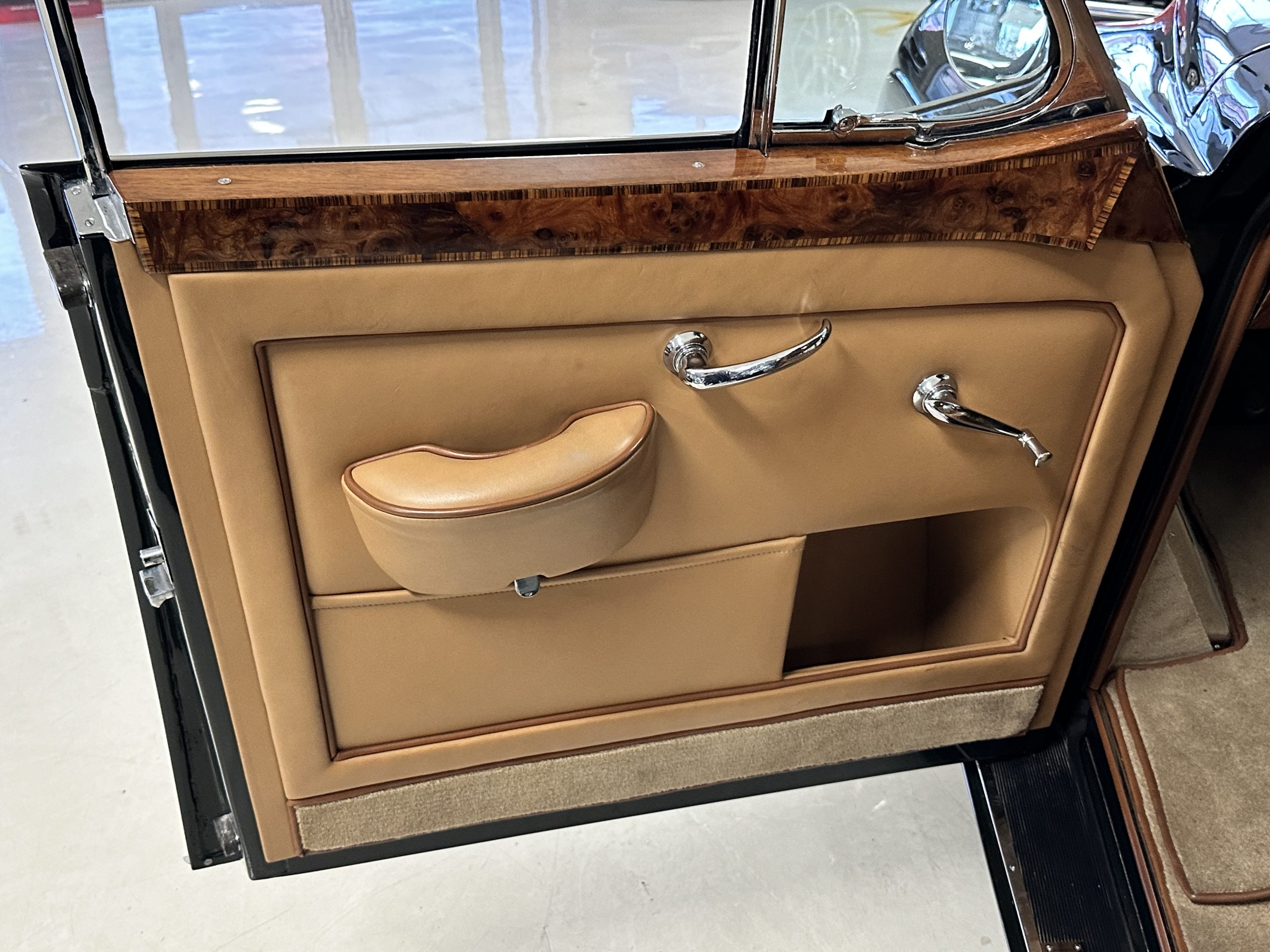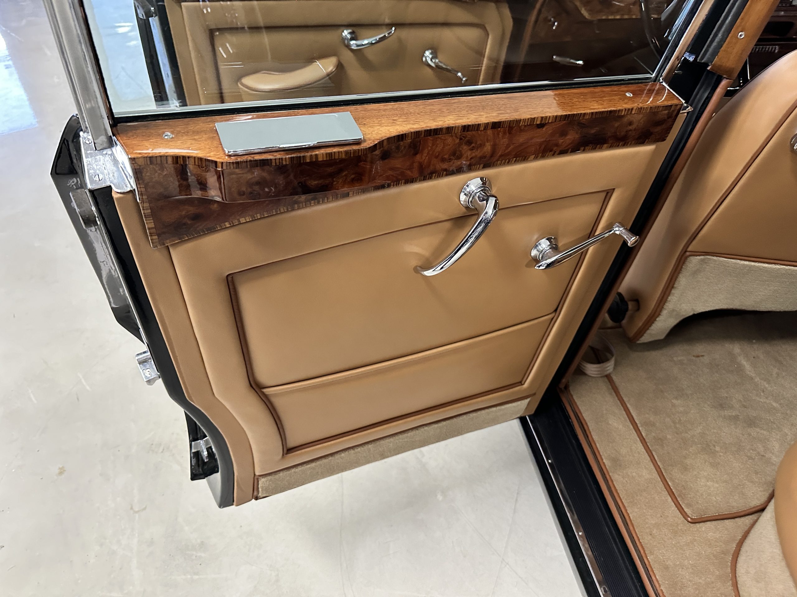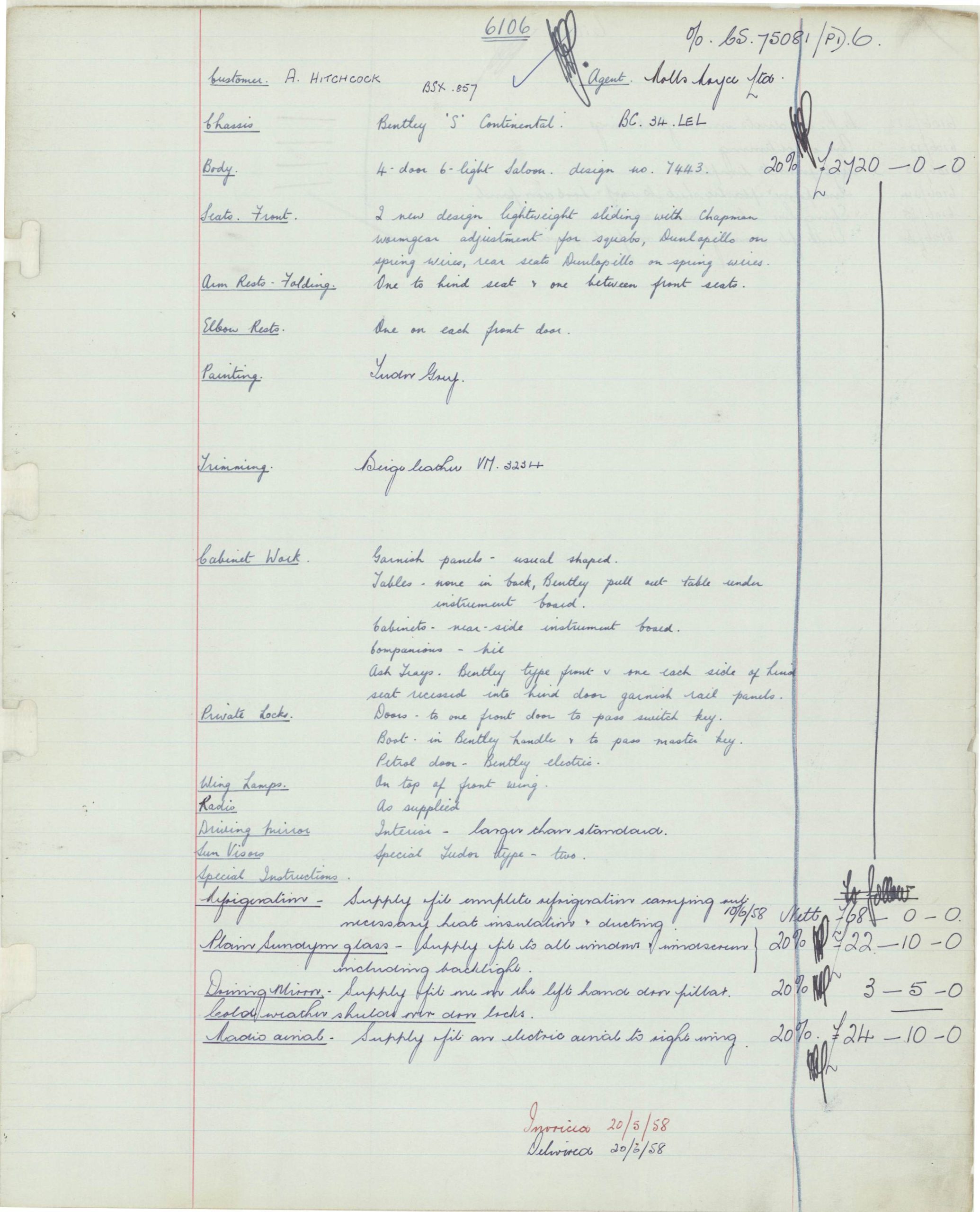 BC34LEL was ordered directly with Rolls-Royce, Inc. in New York for Alfred Hitchcock on January 27, 1958. The guarantee was issued on July 25th, 1958 and it was transport from London to Los Angeles aboard the “Loch Garth” on the 30th of July, 1958. Mr. Hitchcock ordered the H.J. Mulliner “six light” Flying Spur design no. 7443 on the S1 Continental chassis, of which a mere 16 were built in left-hand drive form. According to Sarah Holibaugh of the Rolls-Royce Foundation, at the time of its delivery he was working on the sixth season of Alfred Hitchcock Presents, and it is said that Cash Bentley, central character of the episode “O Youth and Beauty,” was named after this Bentley. Most recently, Alfred’s Bentley was in the renowned collection of Dr. Gail Reingold of Los Angeles, CA. Dr. Reingold retained D&D Classic Automobile Restoration of Covington, Ohio and well-known Michigan upholsterer Mark Larder to complete a restoration of the Bentley.