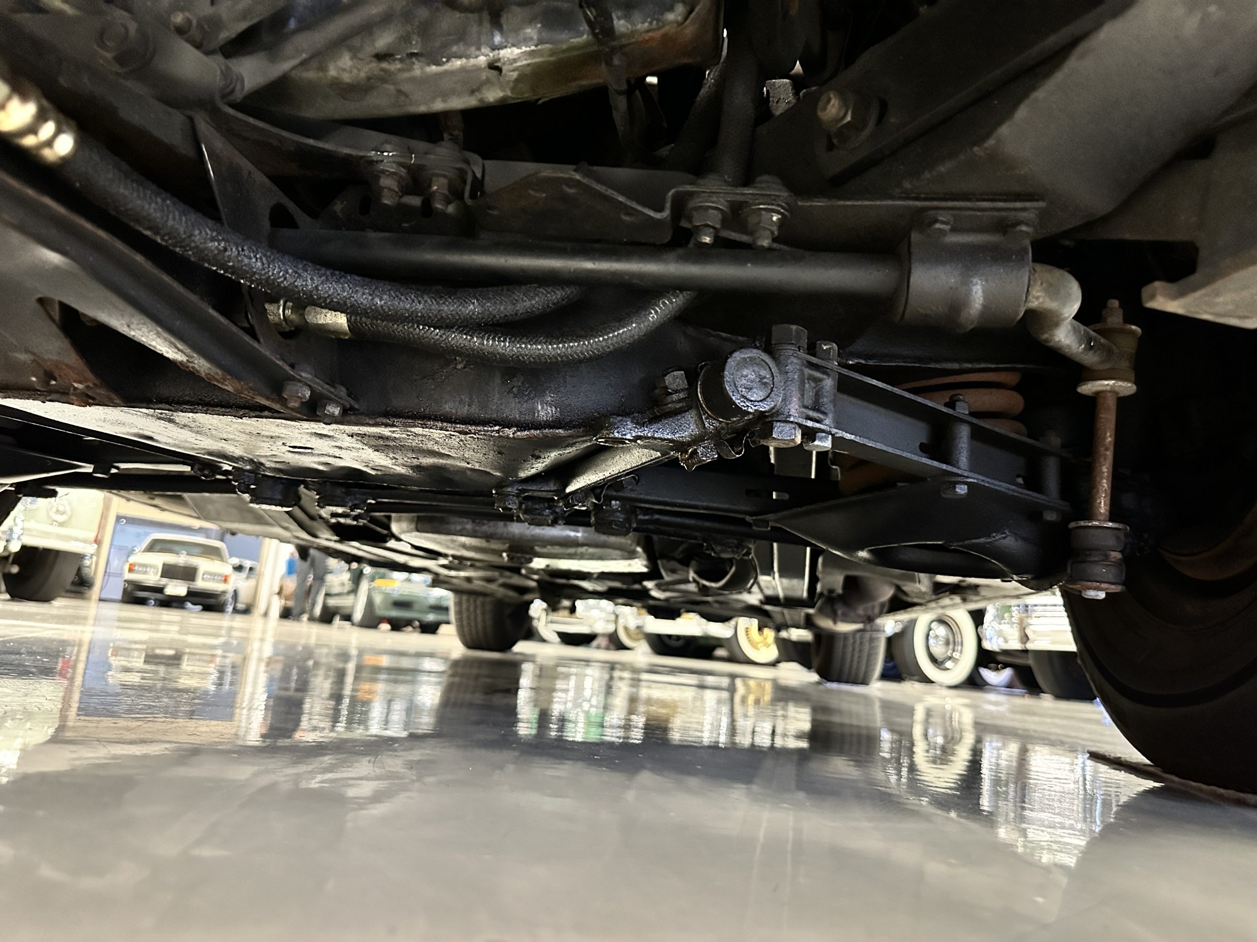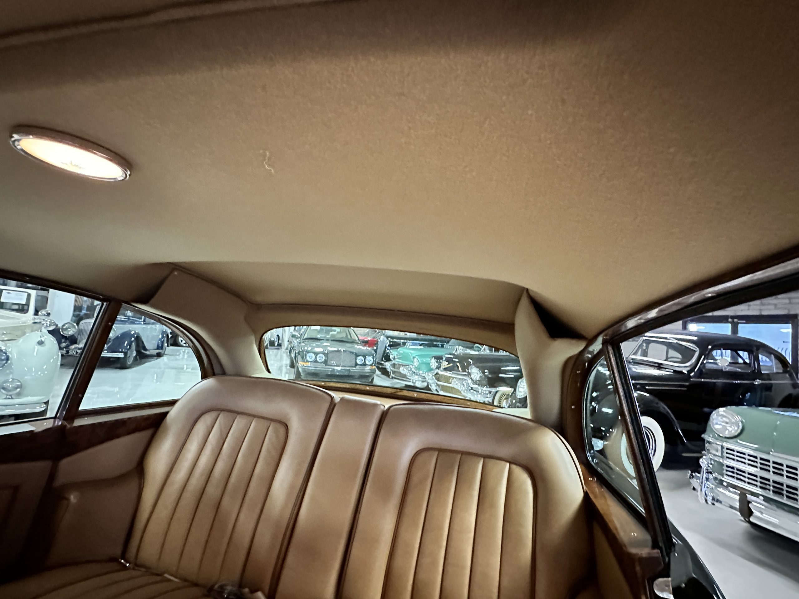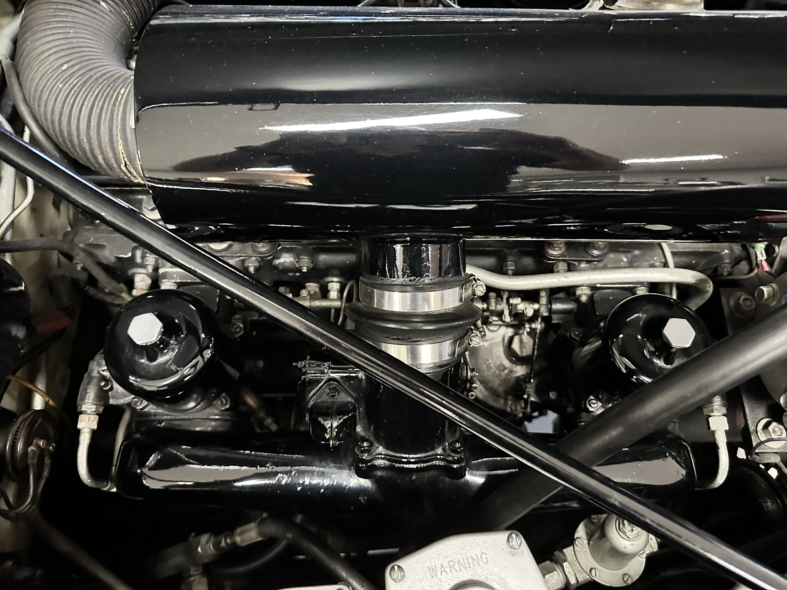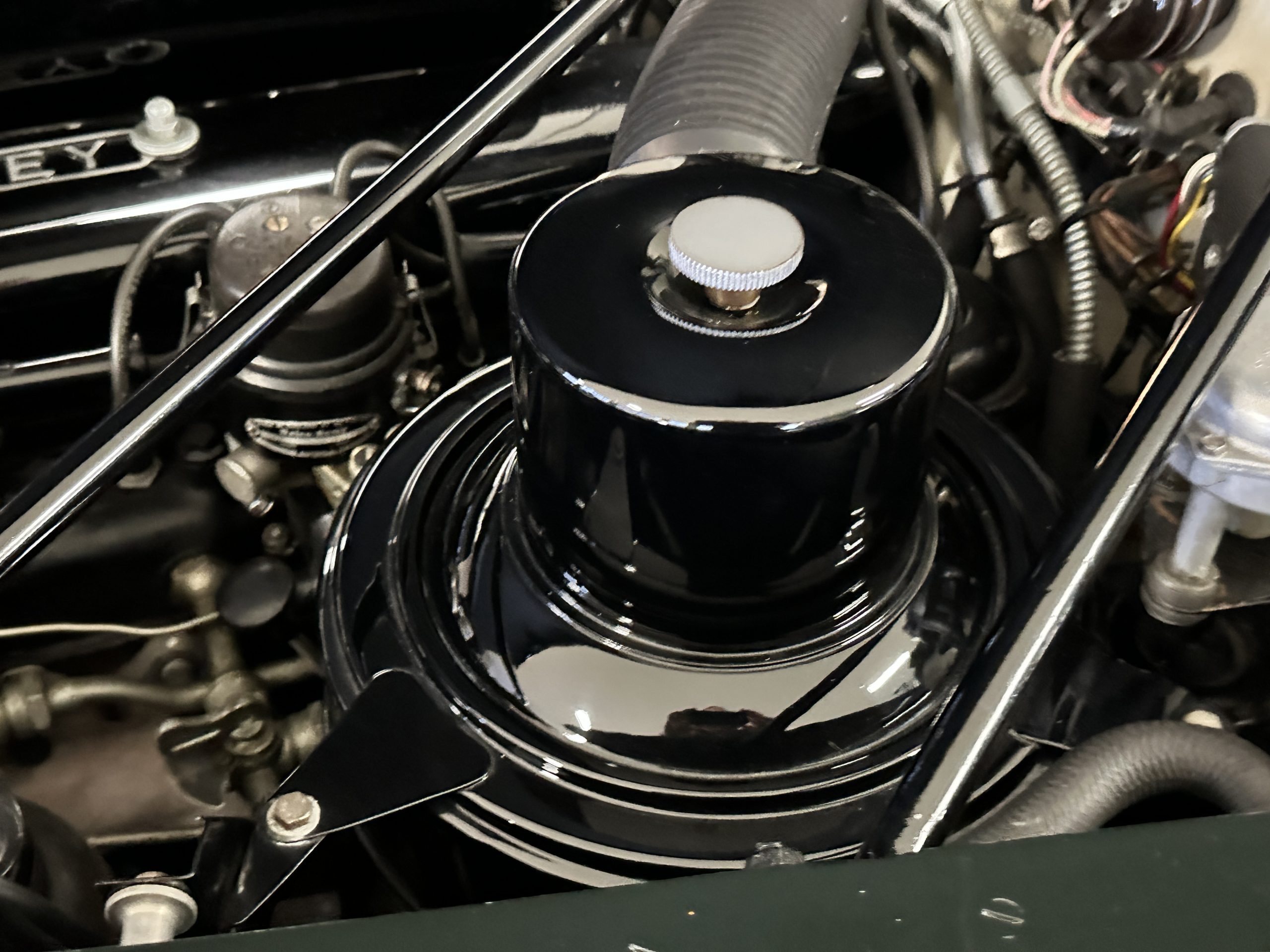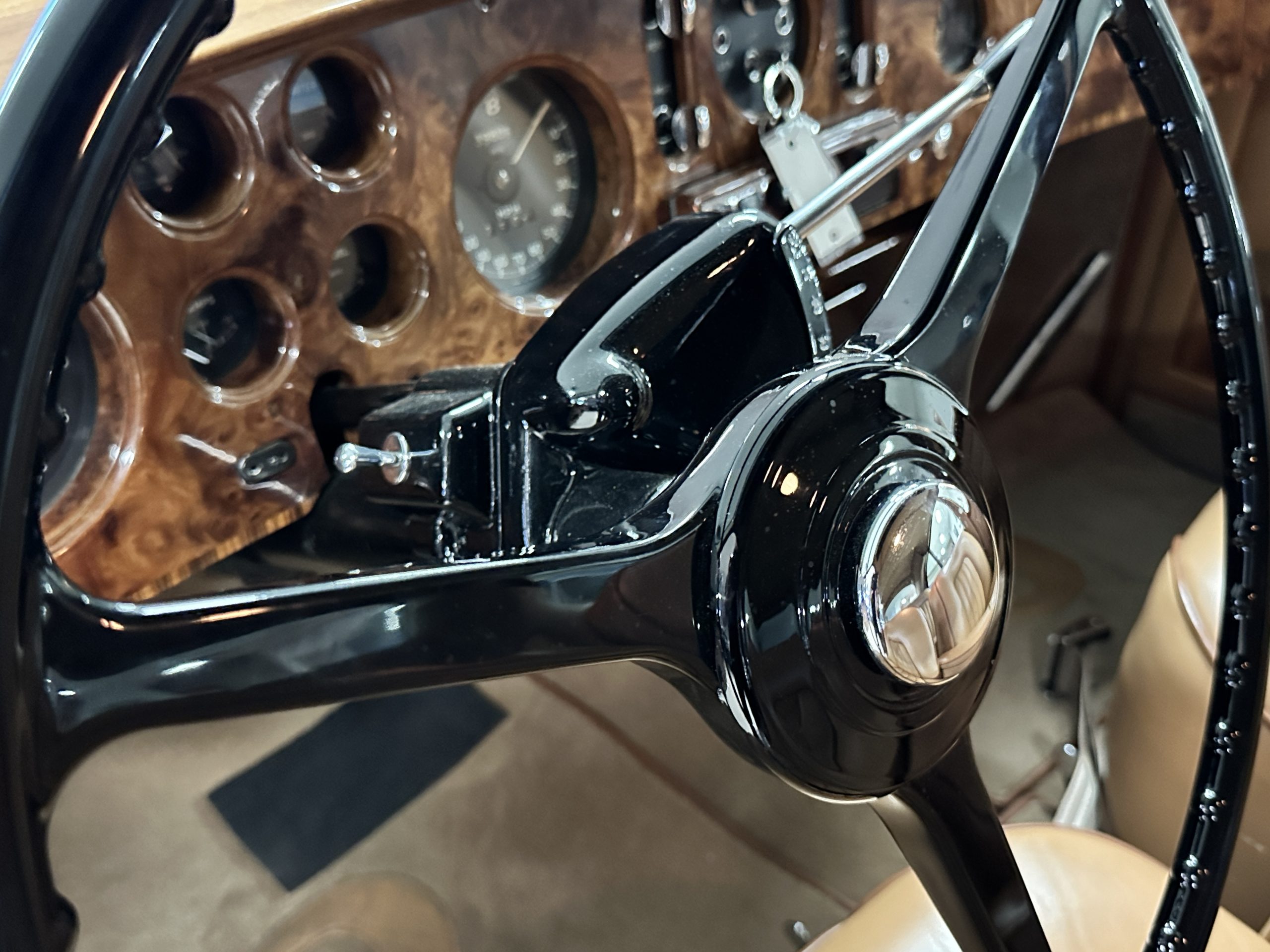 The engine compartment is exceptionally well detailed. The finishes are in excellent condition overall and is show quality. The venerable 4.9 liter straight six cylinder used dual SU carburetors and produced nearly 180 hp. This is connected to the four-speed automatic transmission, power steering and servo power assisted brakes. As elegant as the styling is, this Continental chassis was designed to be a high-speed touring car when new. The performance is striking.