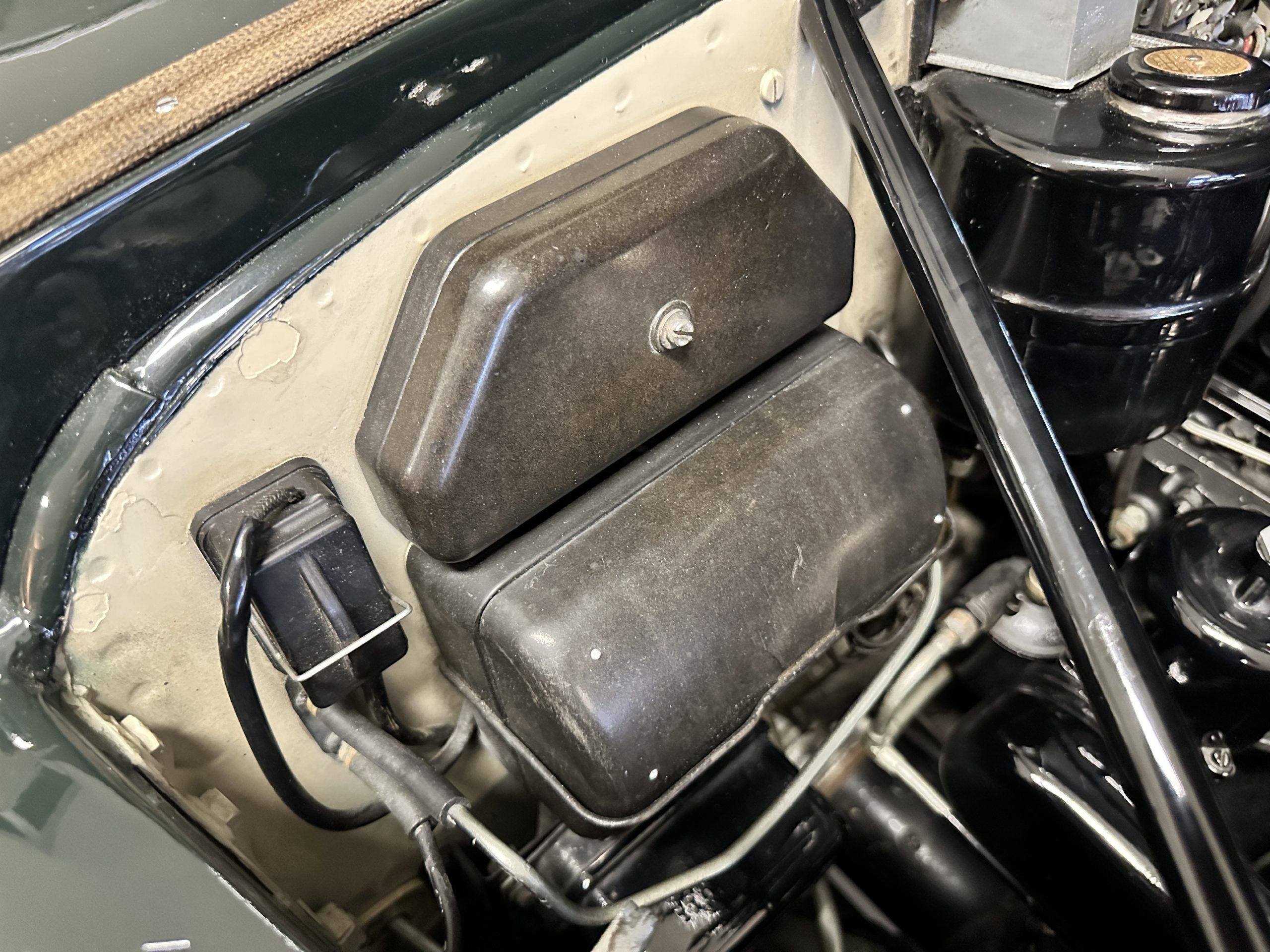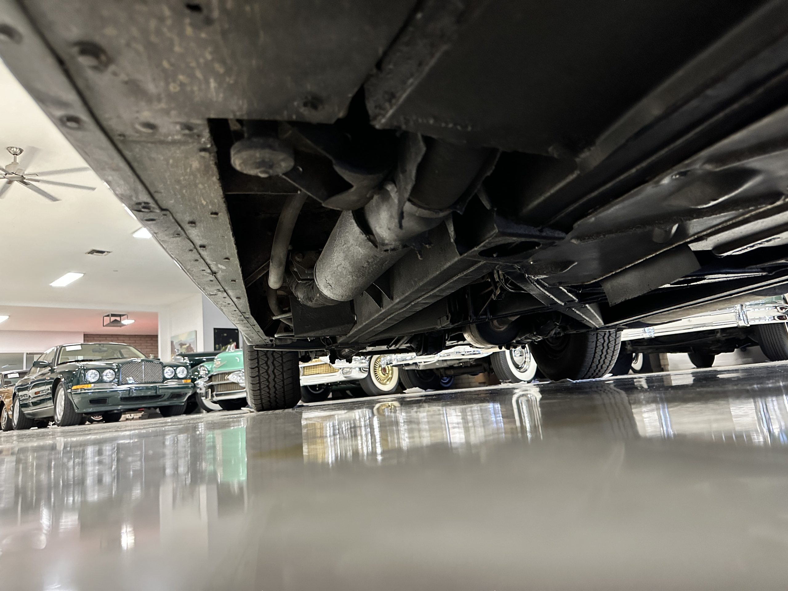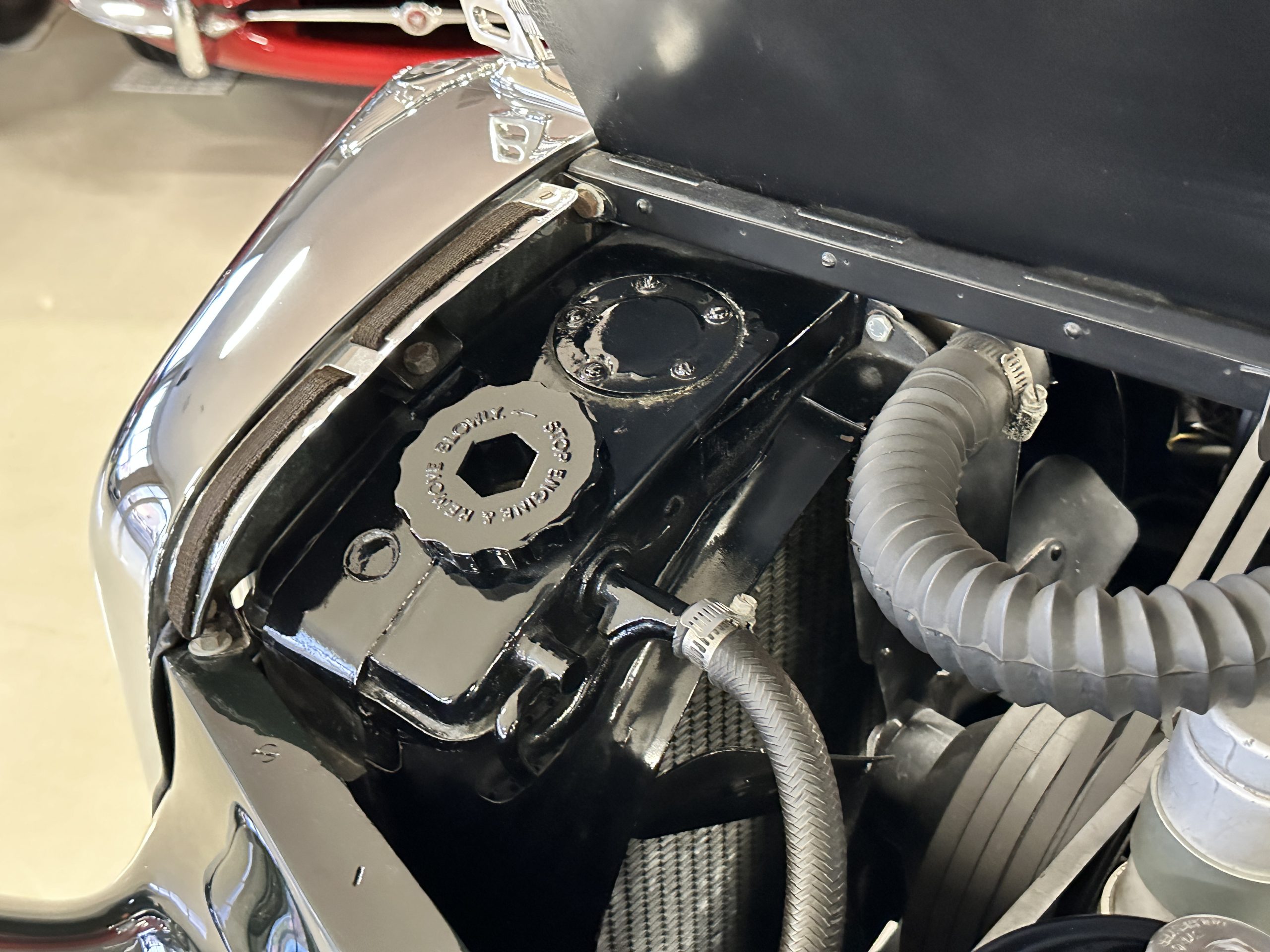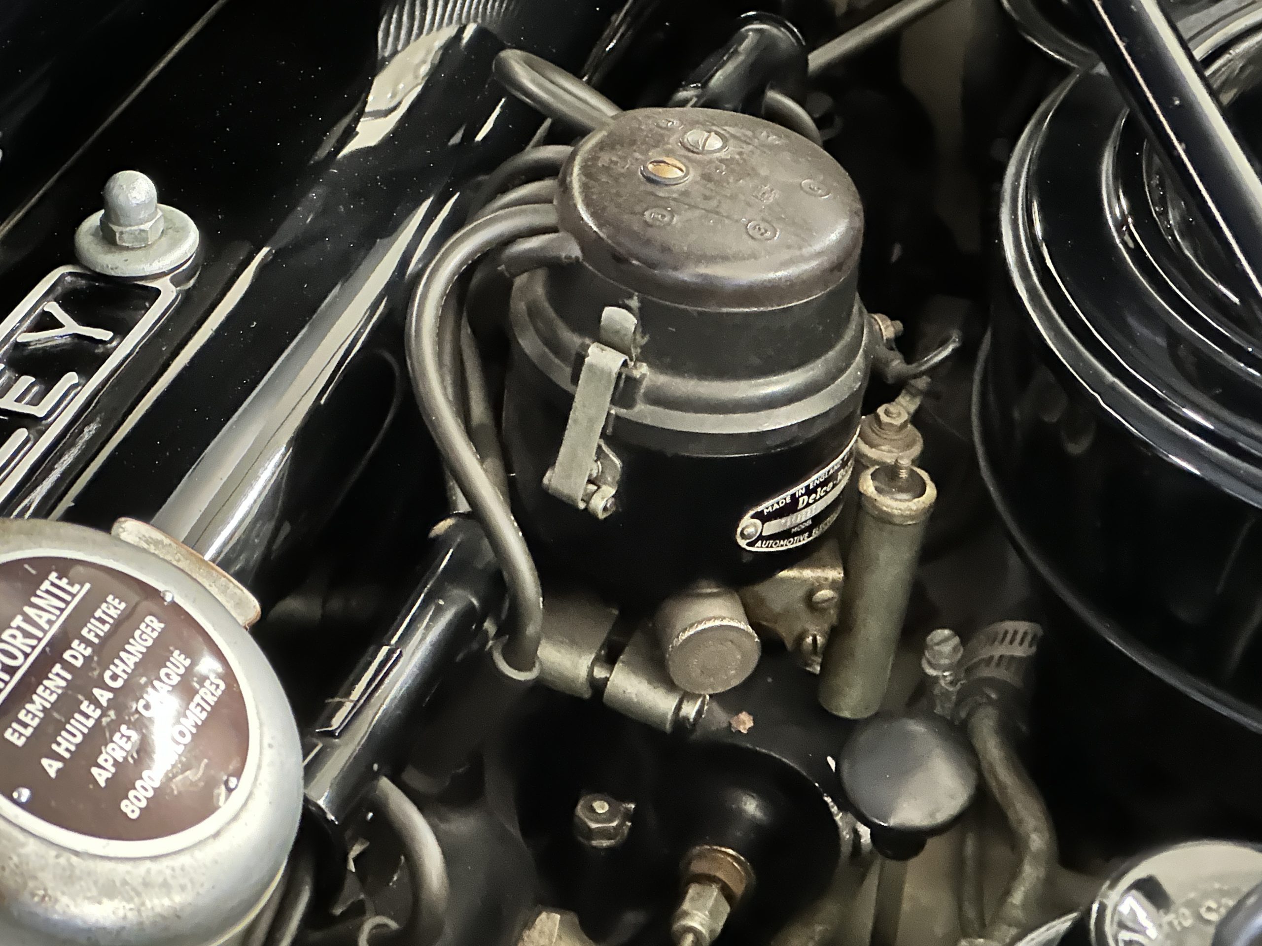 The engine compartment is exceptionally well detailed. The finishes are in excellent condition overall and is show quality. The venerable 4.9 liter straight six cylinder used dual SU carburetors and produced nearly 180 hp. This is connected to the four-speed automatic transmission, power steering and servo power assisted brakes. As elegant as the styling is, this Continental chassis was designed to be a high-speed touring car when new. The performance is striking.