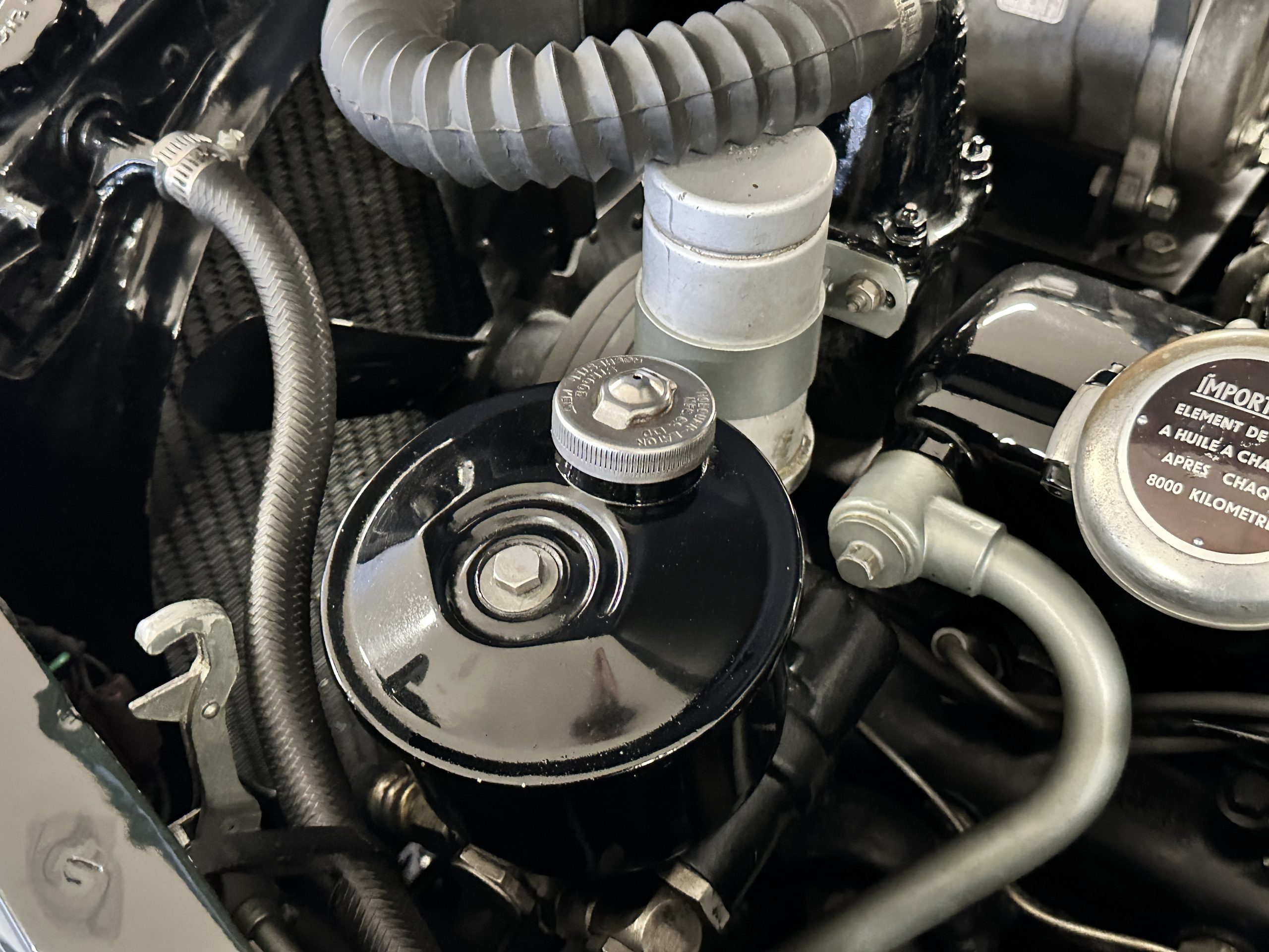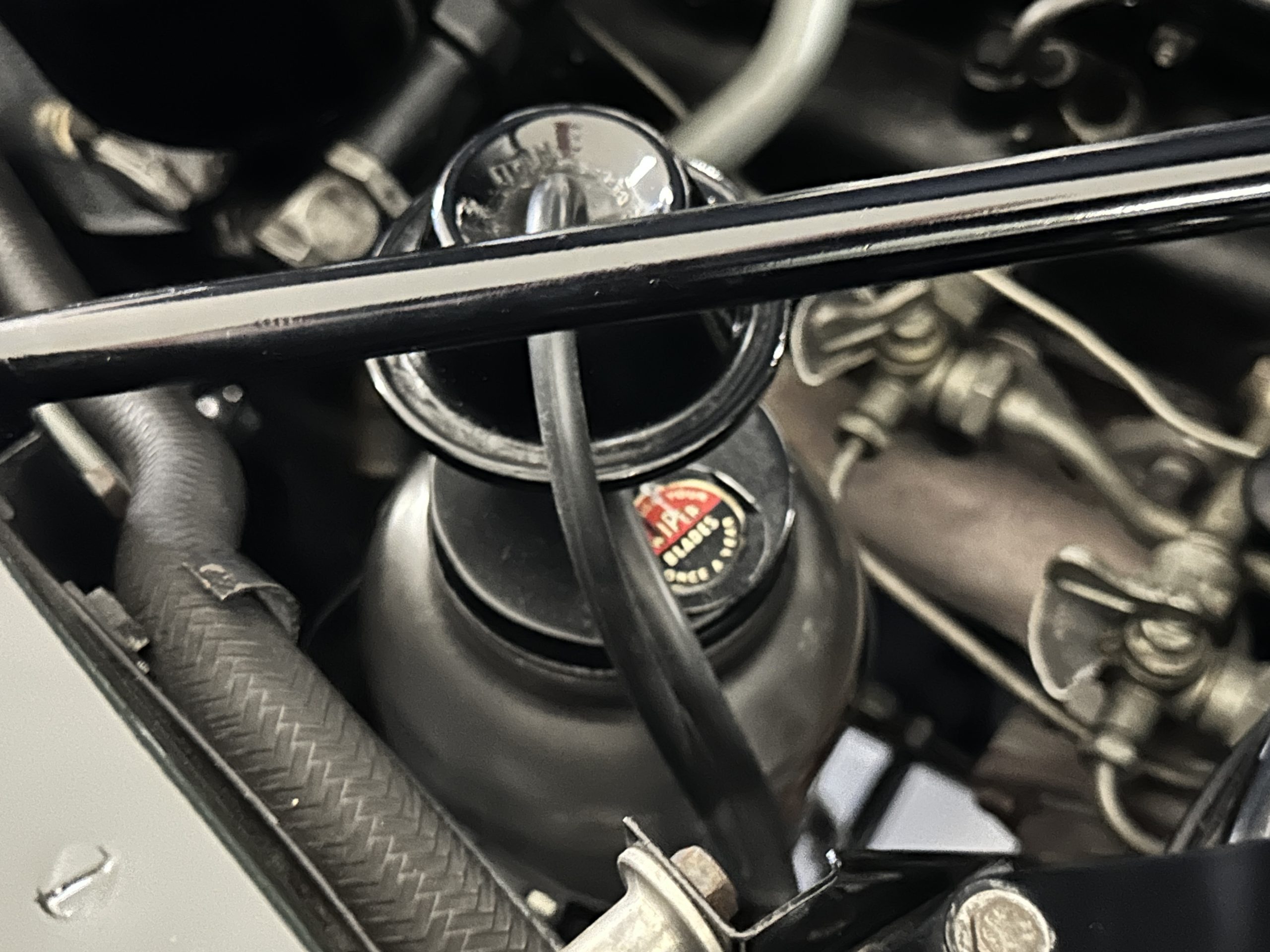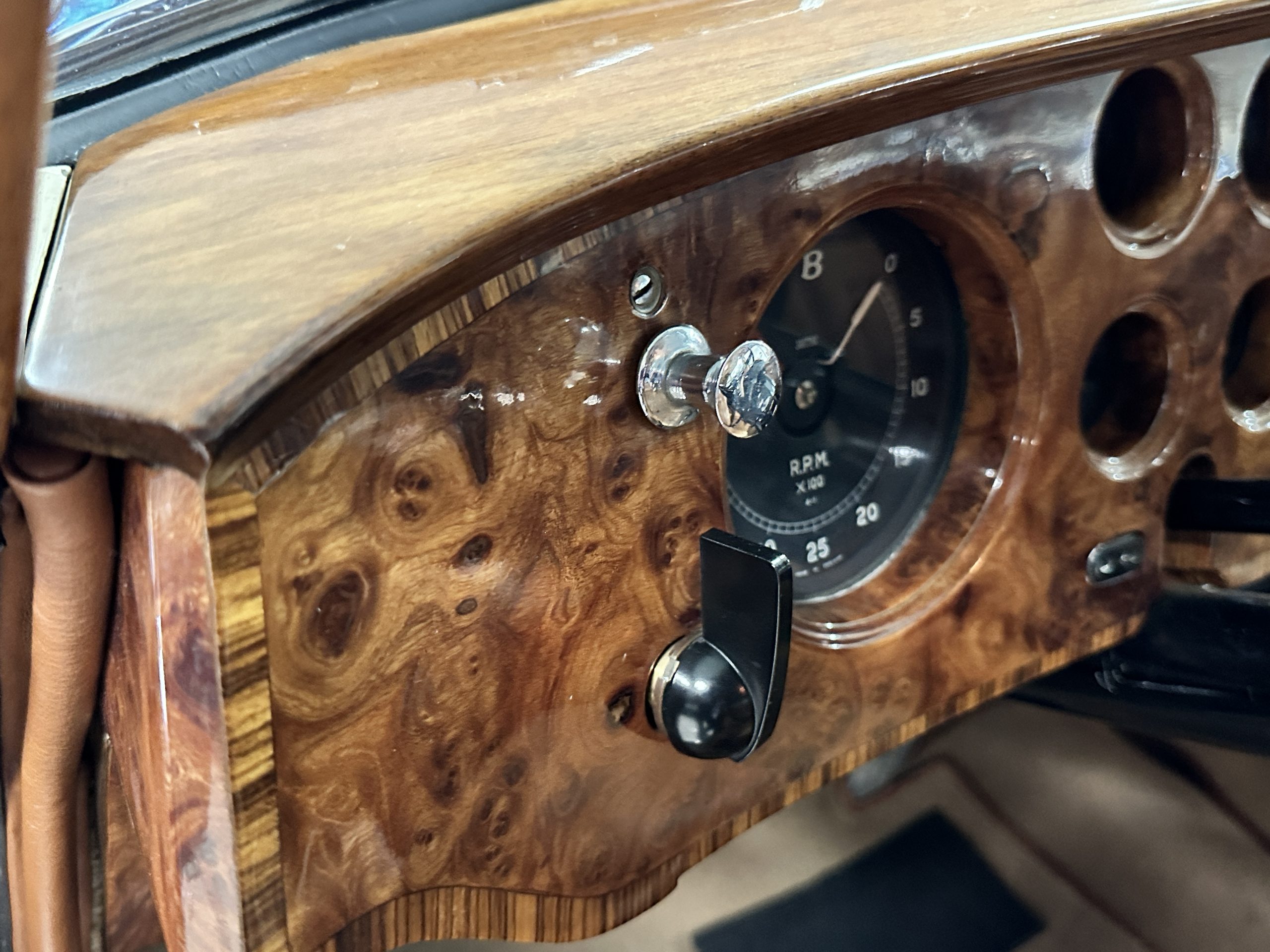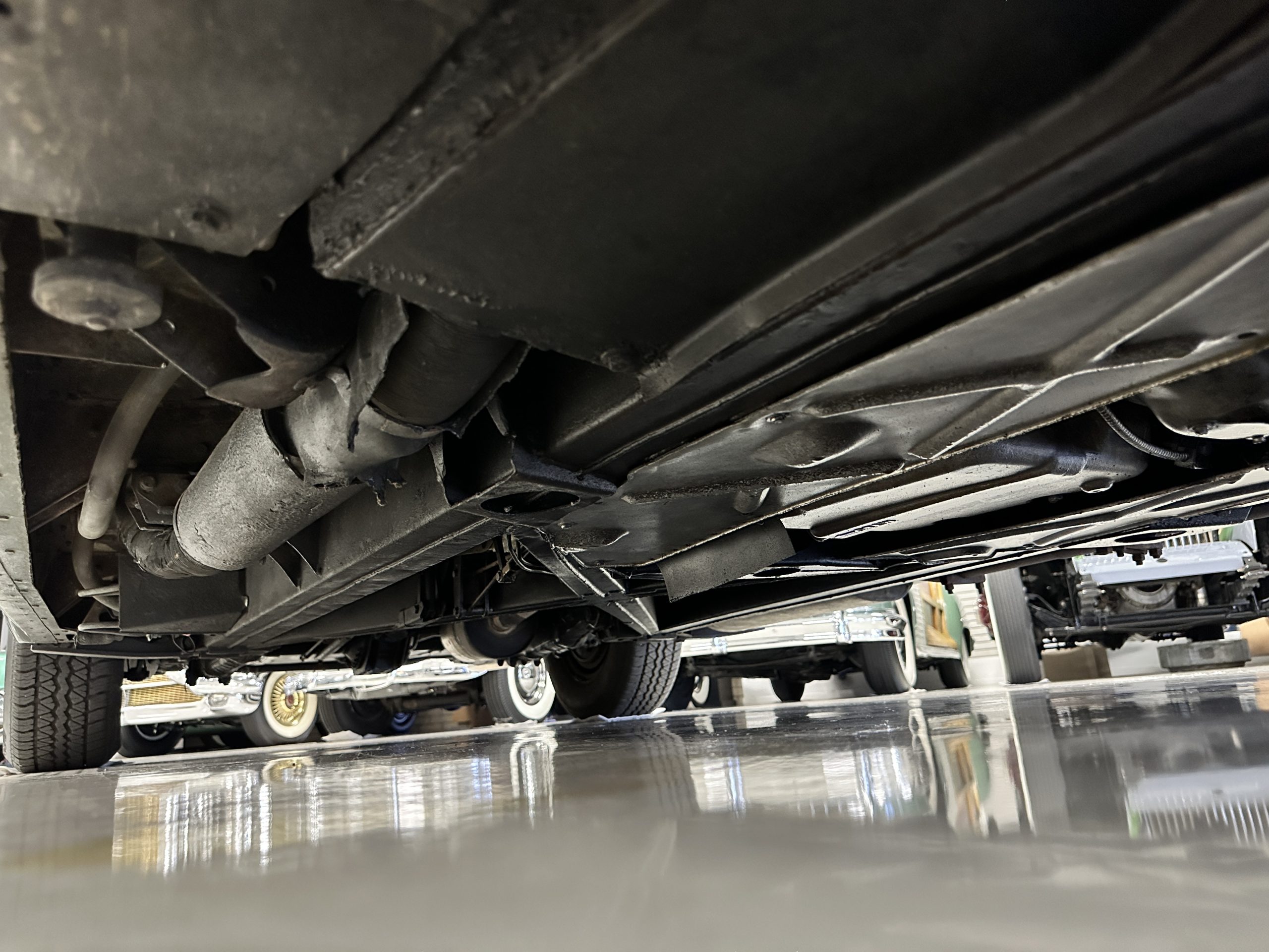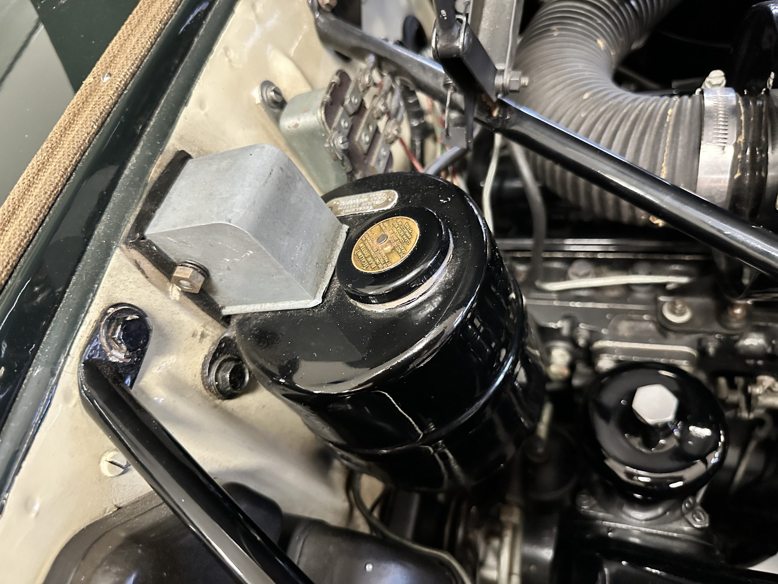 The engine compartment is exceptionally well detailed. The finishes are in excellent condition overall and is show quality. The venerable 4.9 liter straight six cylinder used dual SU carburetors and produced nearly 180 hp. This is connected to the four-speed automatic transmission, power steering and servo power assisted brakes. As elegant as the styling is, this Continental chassis was designed to be a high-speed touring car when new. The performance is striking.