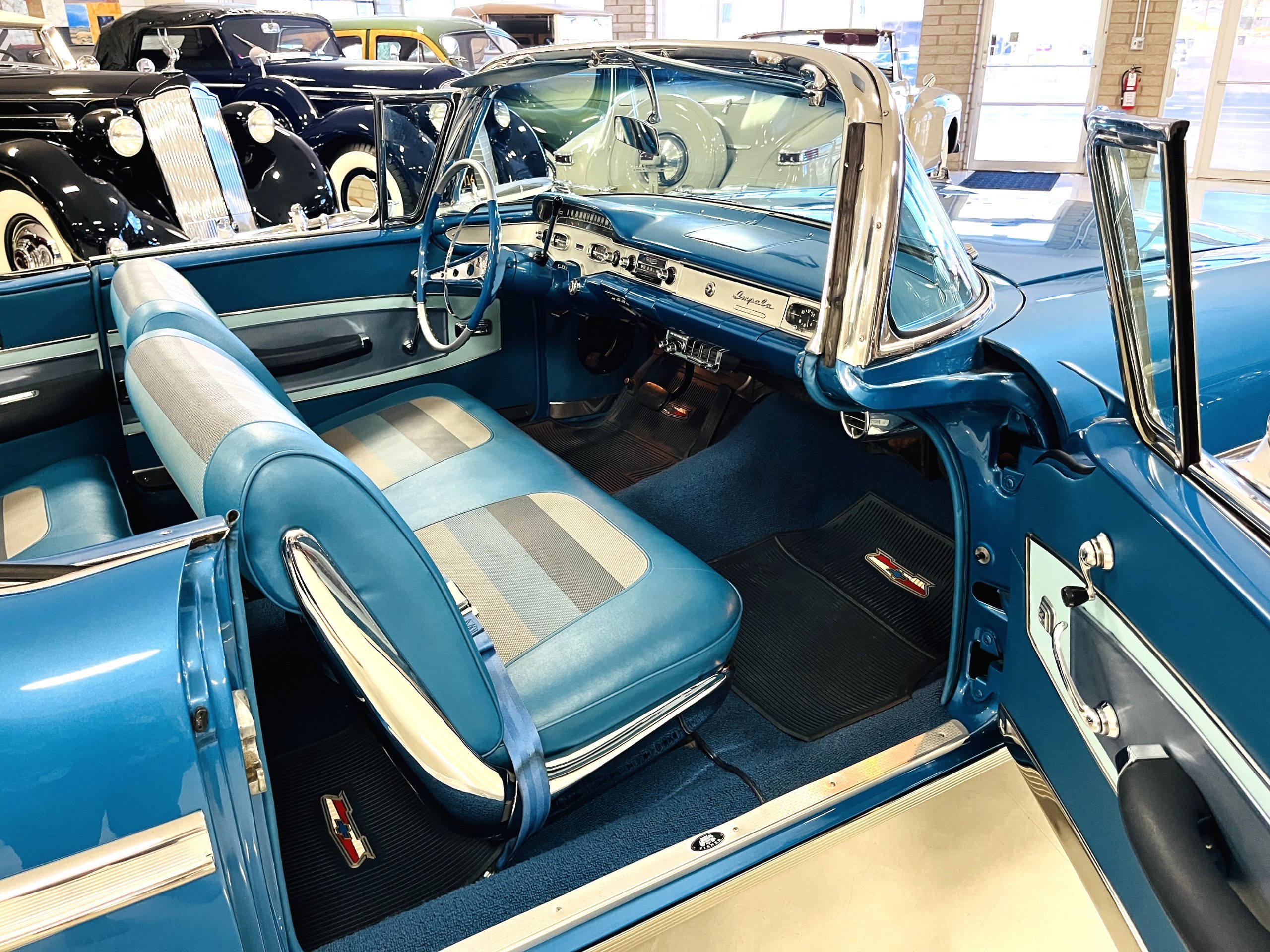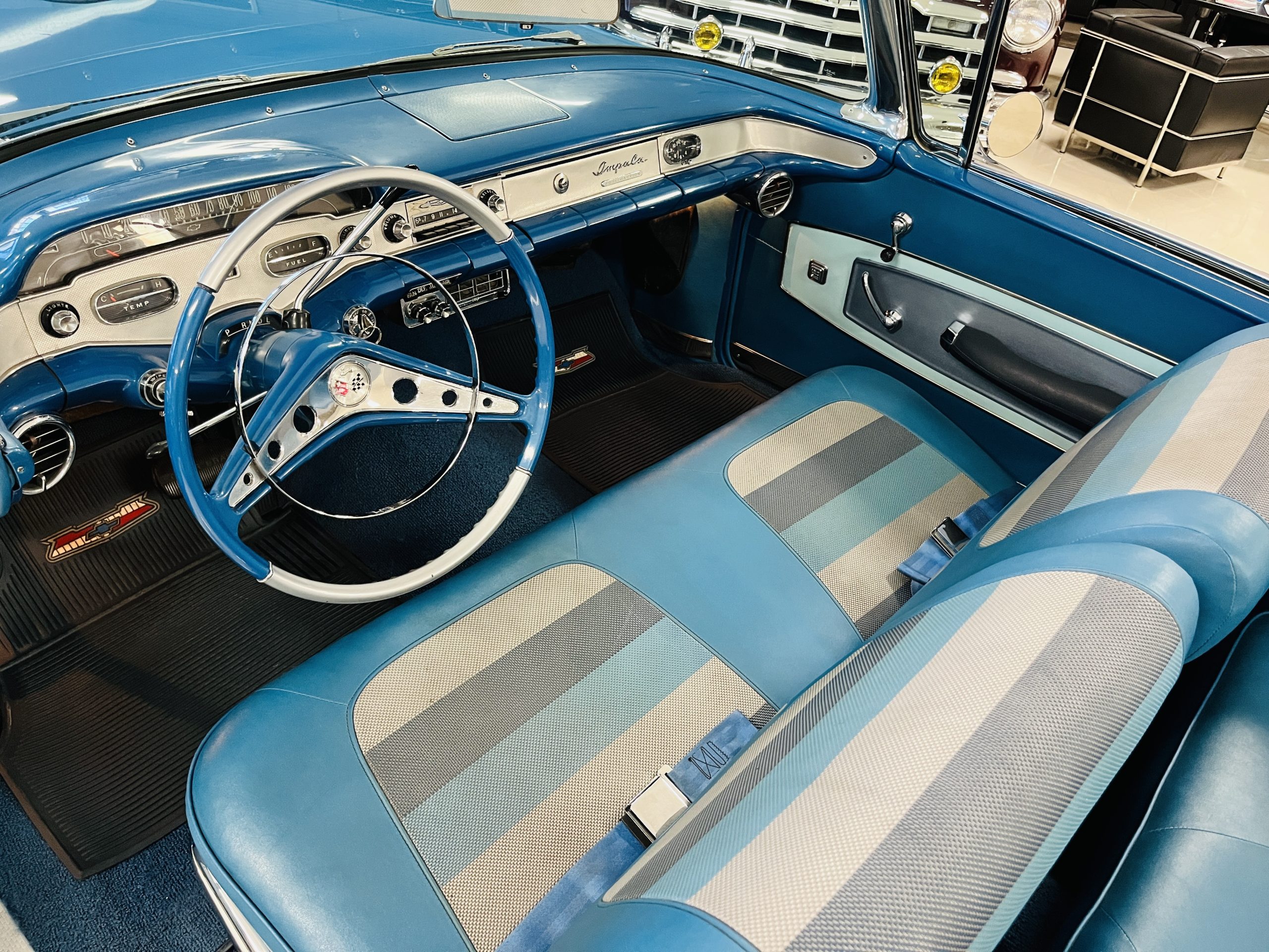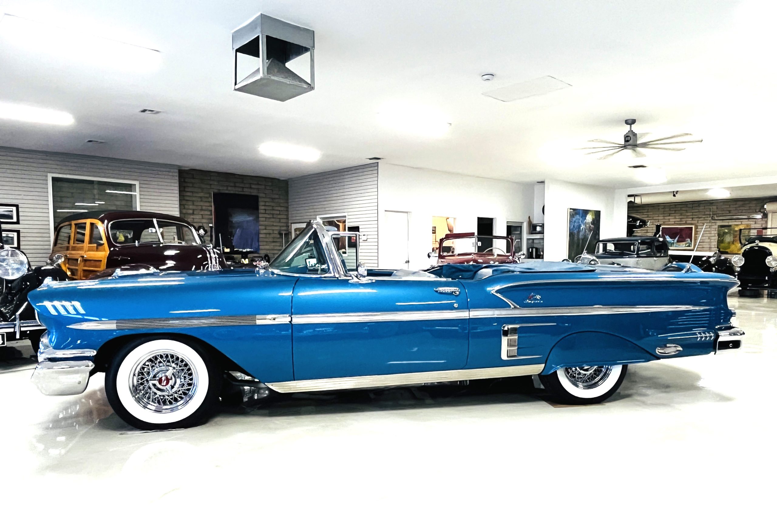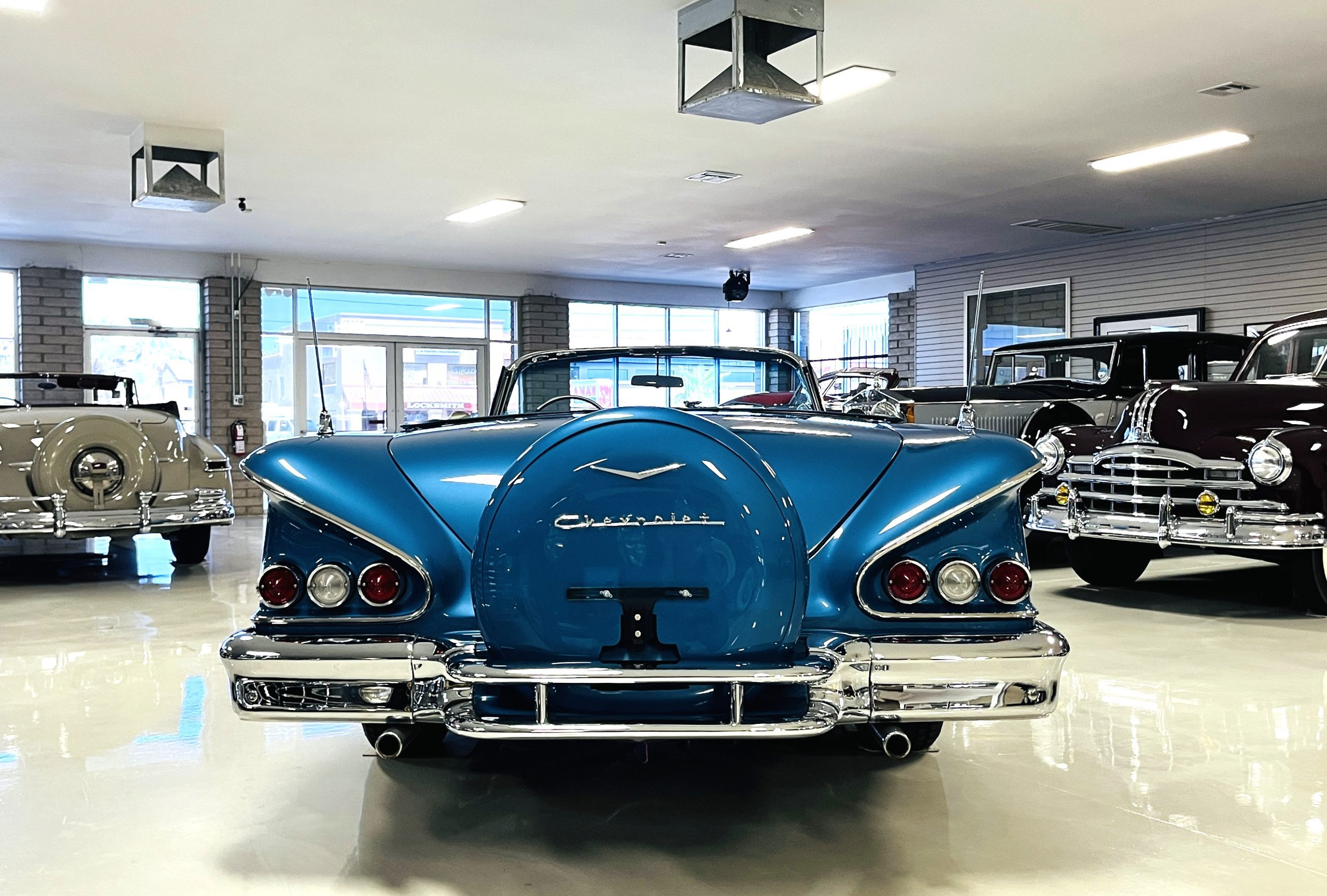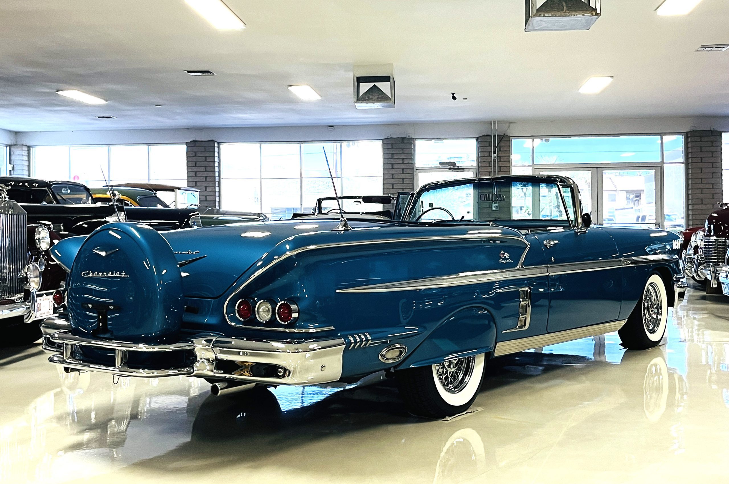 This is a beautiful concours quality example of a 1958 Chevrolet Bel Air Impala Convertible. This stunning Impala underwent a full restoration by a previous owner and stills shows in excellent condition today. Everything was painstakingly restored to as-new. This is an Impala that has nearly every desirable option including its date code correct (“numbers matching”) Big Block 348 CID V8, air conditioning, all power accessories, and the continental kit.
