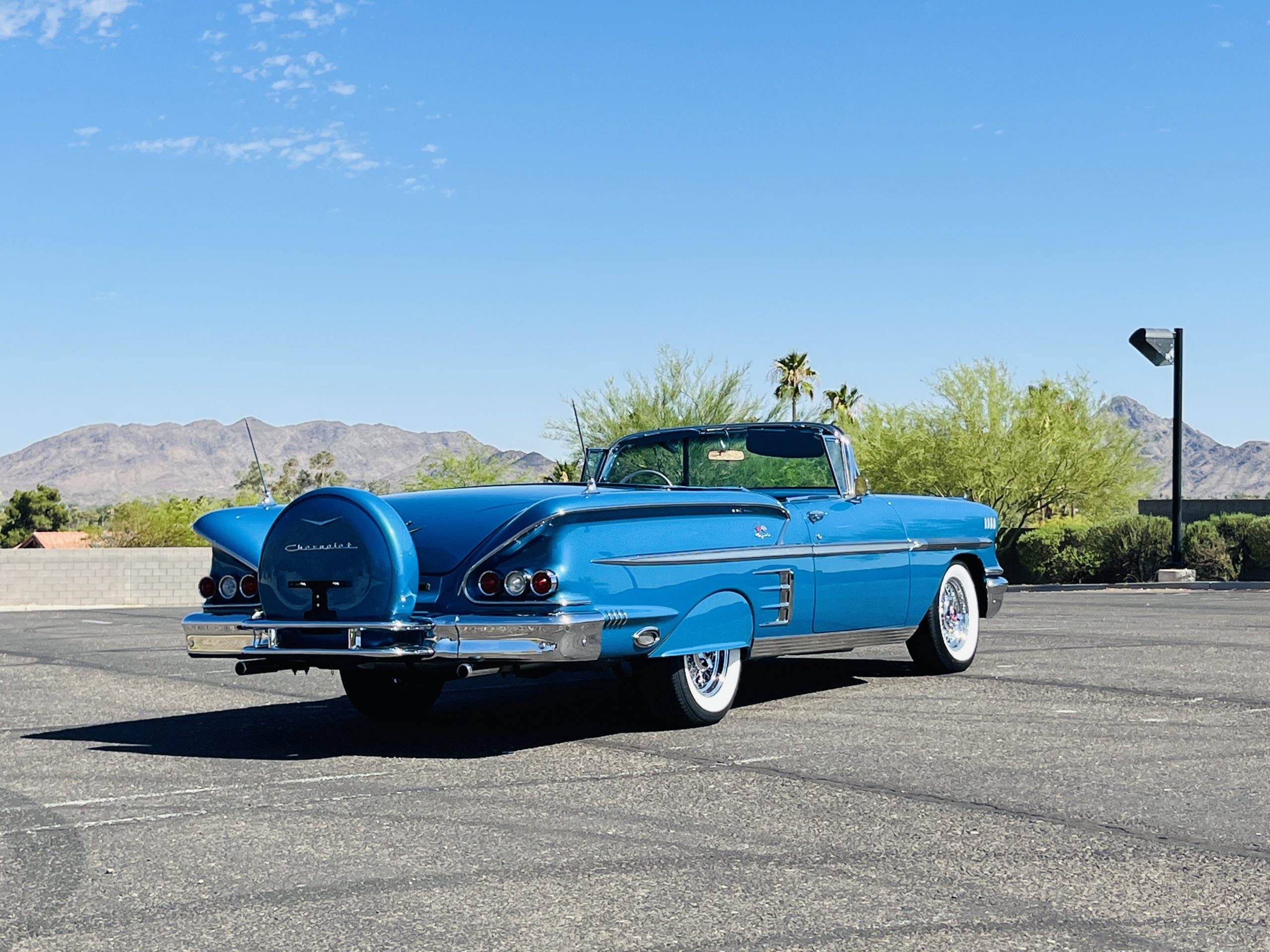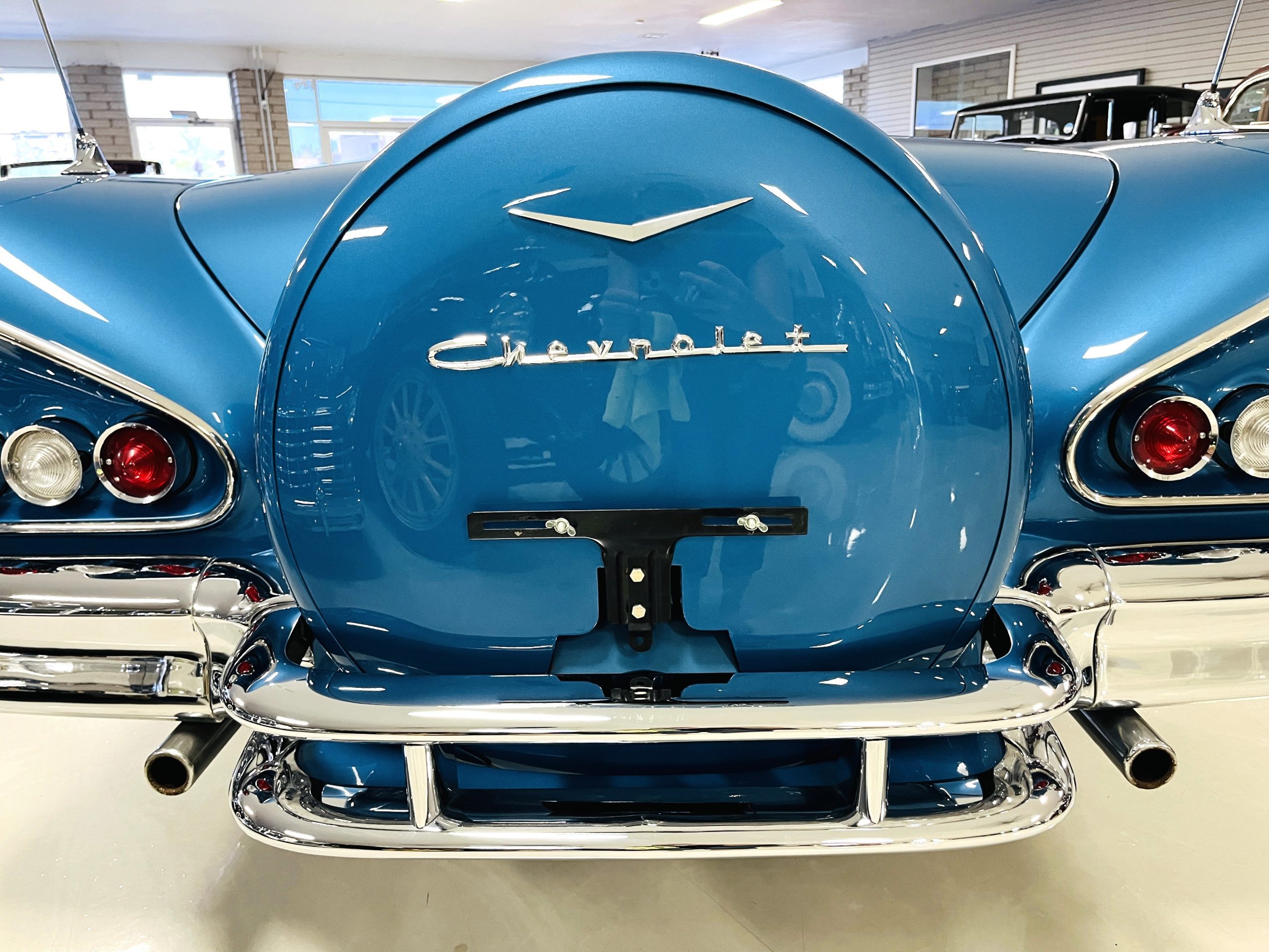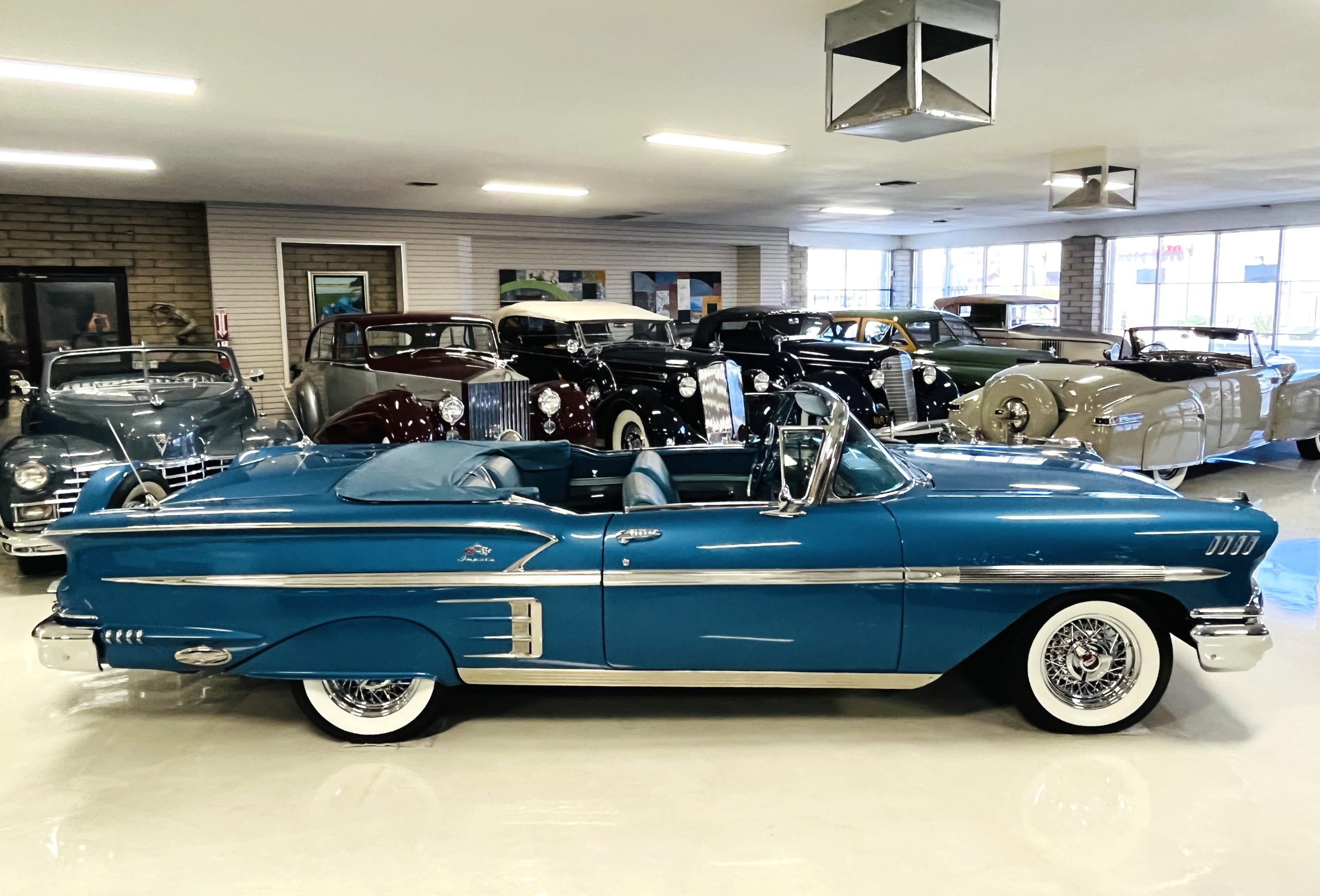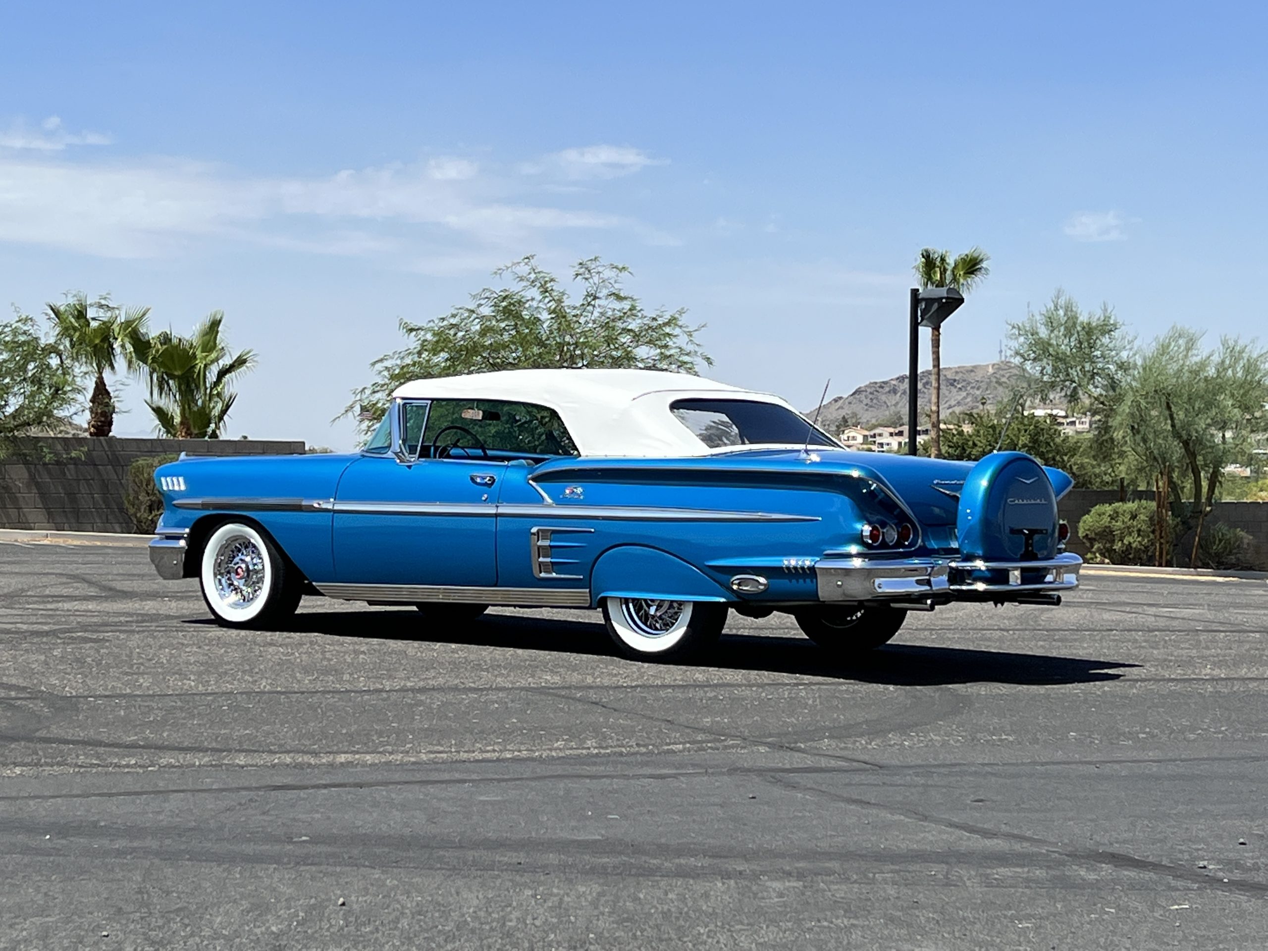 This is a beautiful concours quality example of a 1958 Chevrolet Bel Air Impala Convertible. This stunning Impala underwent a full restoration by a previous owner and stills shows in excellent condition today. Everything was painstakingly restored to as-new. This is an Impala that has nearly every desirable option including its date code correct (“numbers matching”) Big Block 348 CID V8, air conditioning, all power accessories, and the continental kit.