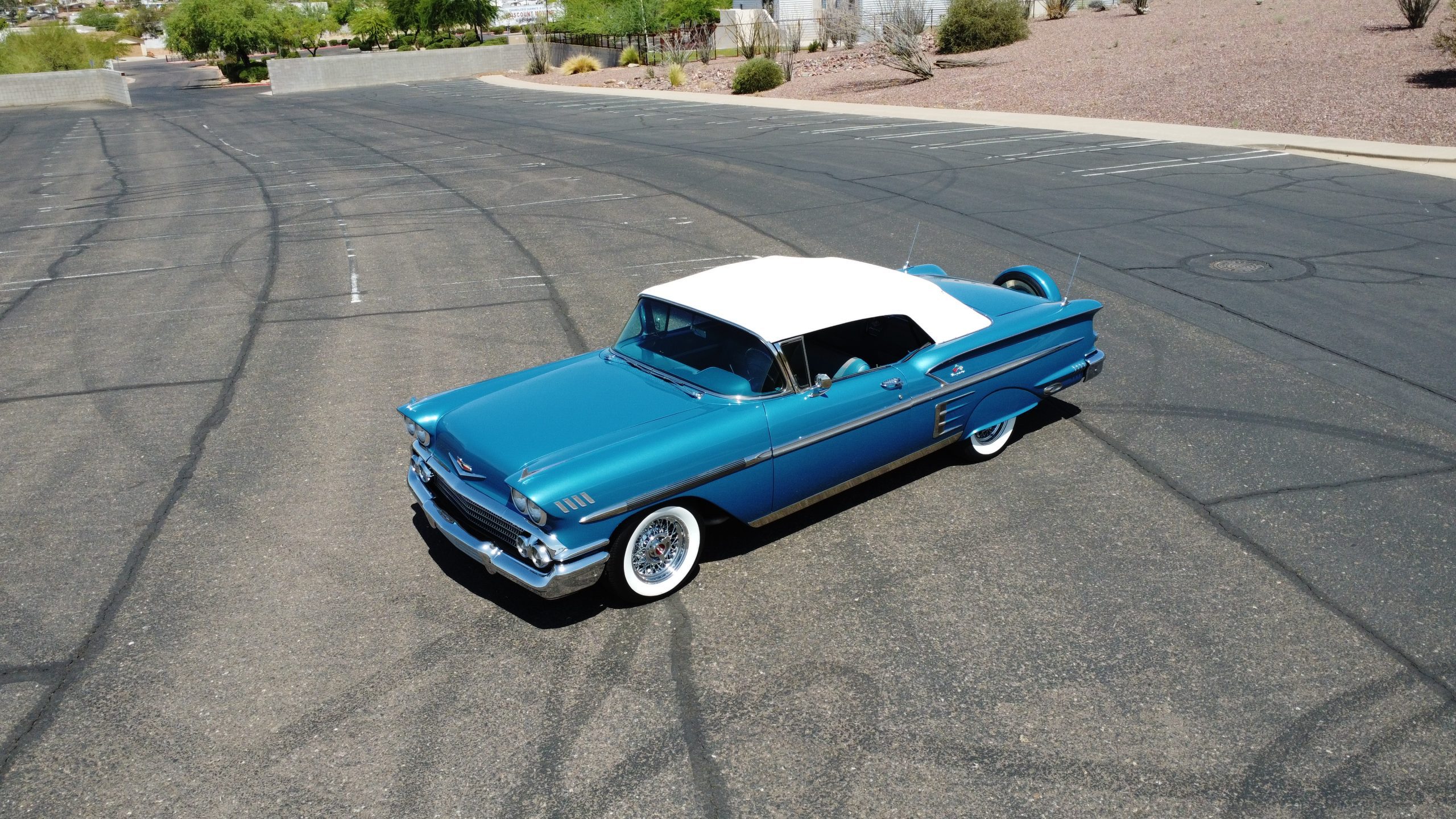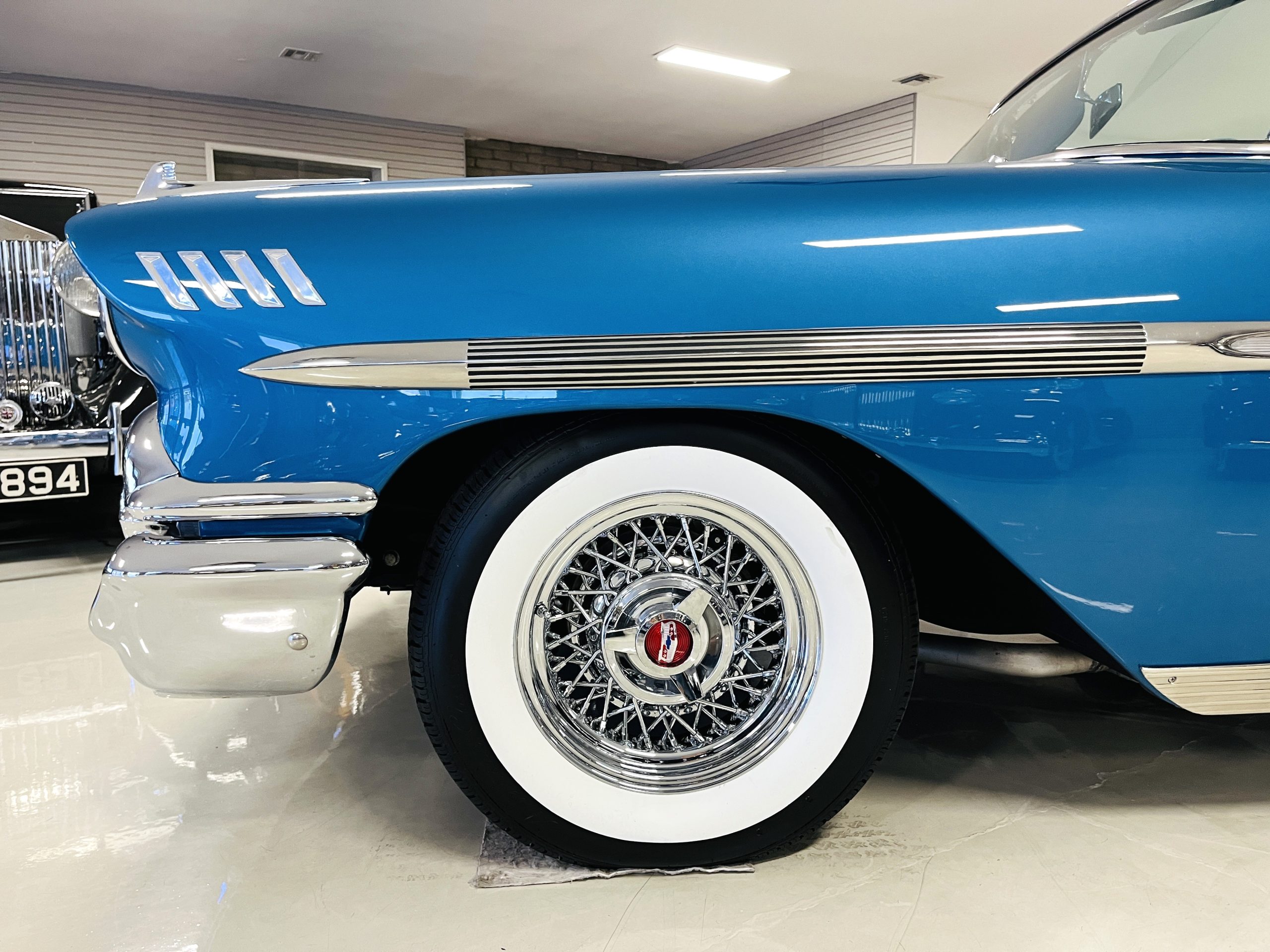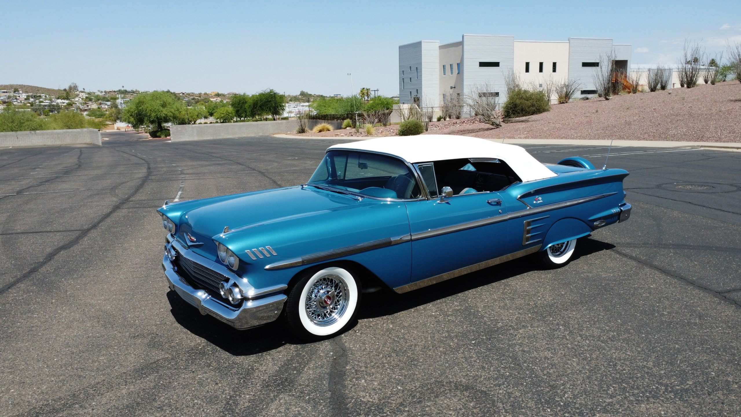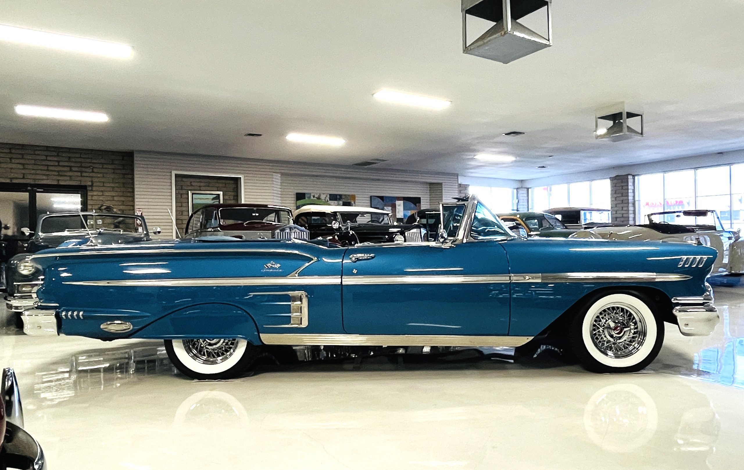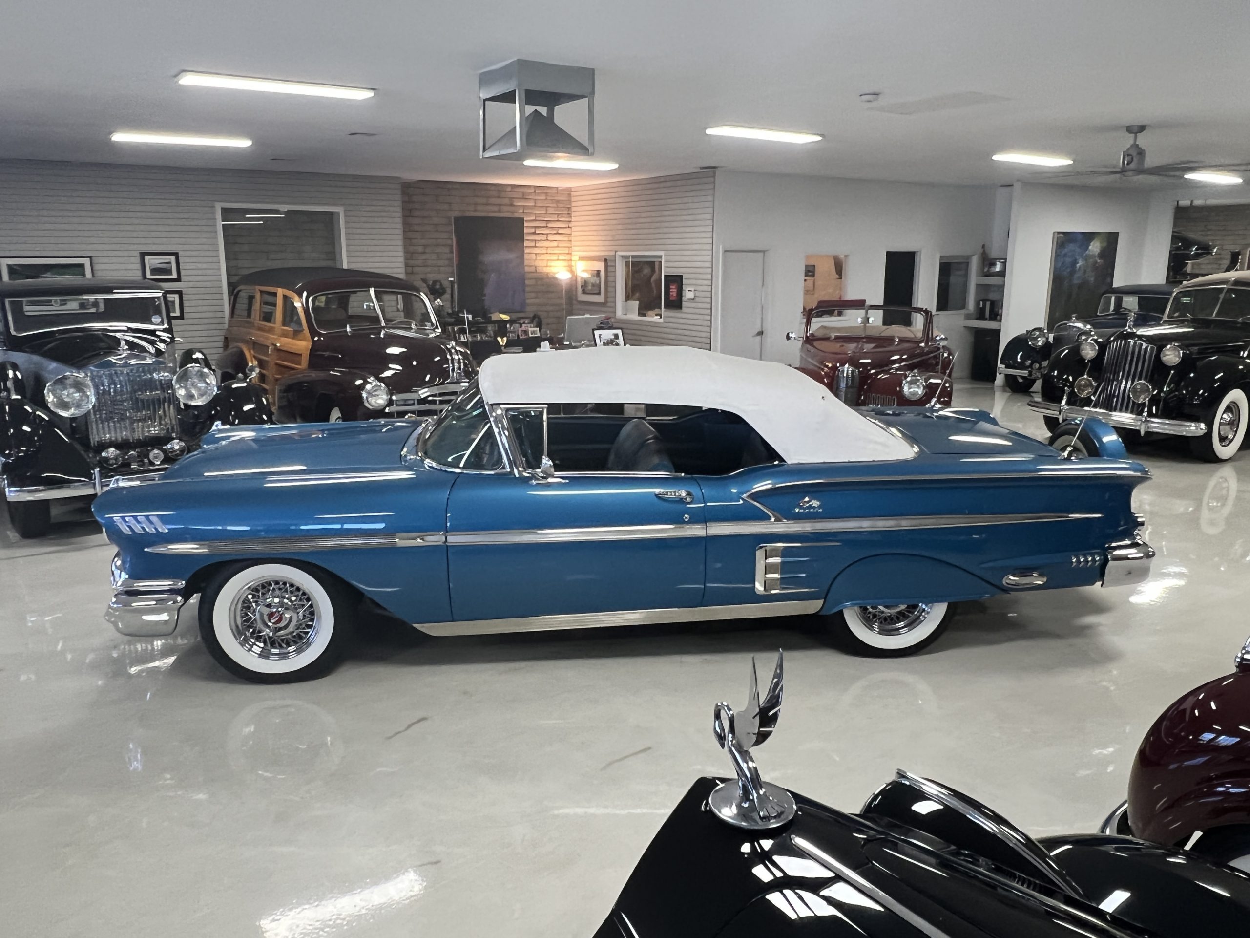 This is a beautiful concours quality example of a 1958 Chevrolet Bel Air Impala Convertible. This stunning Impala underwent a full restoration by a previous owner and stills shows in excellent condition today. Everything was painstakingly restored to as-new. This is an Impala that has nearly every desirable option including its date code correct (“numbers matching”) Big Block 348 CID V8, air conditioning, all power accessories, and the continental kit.