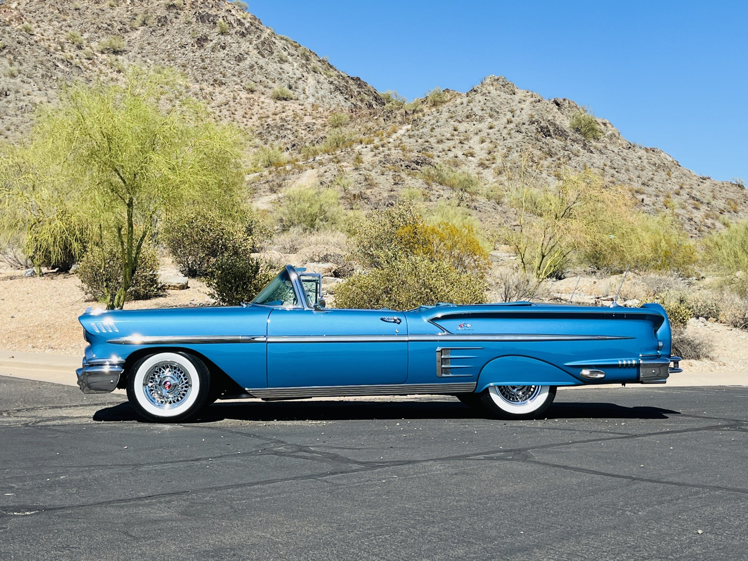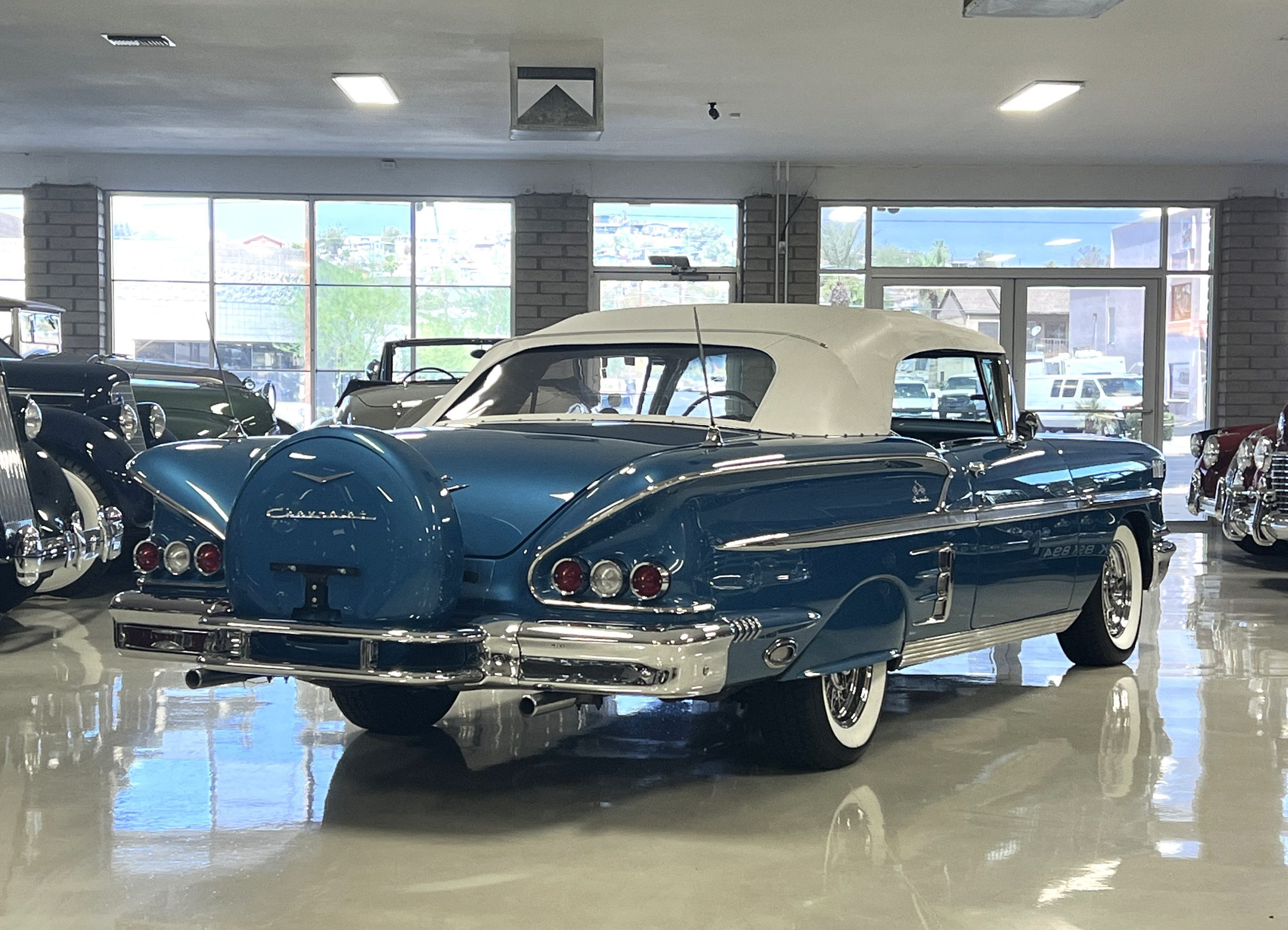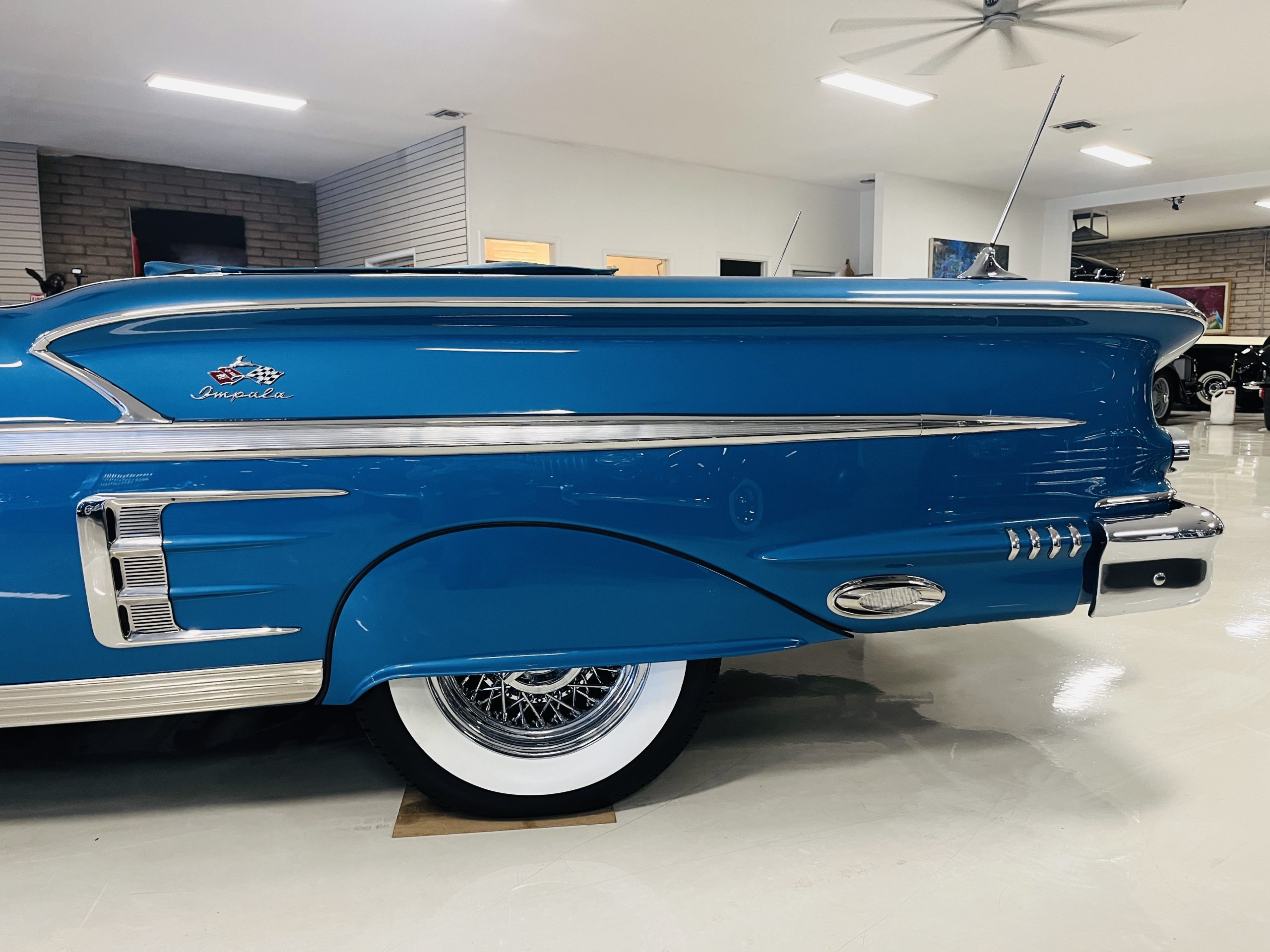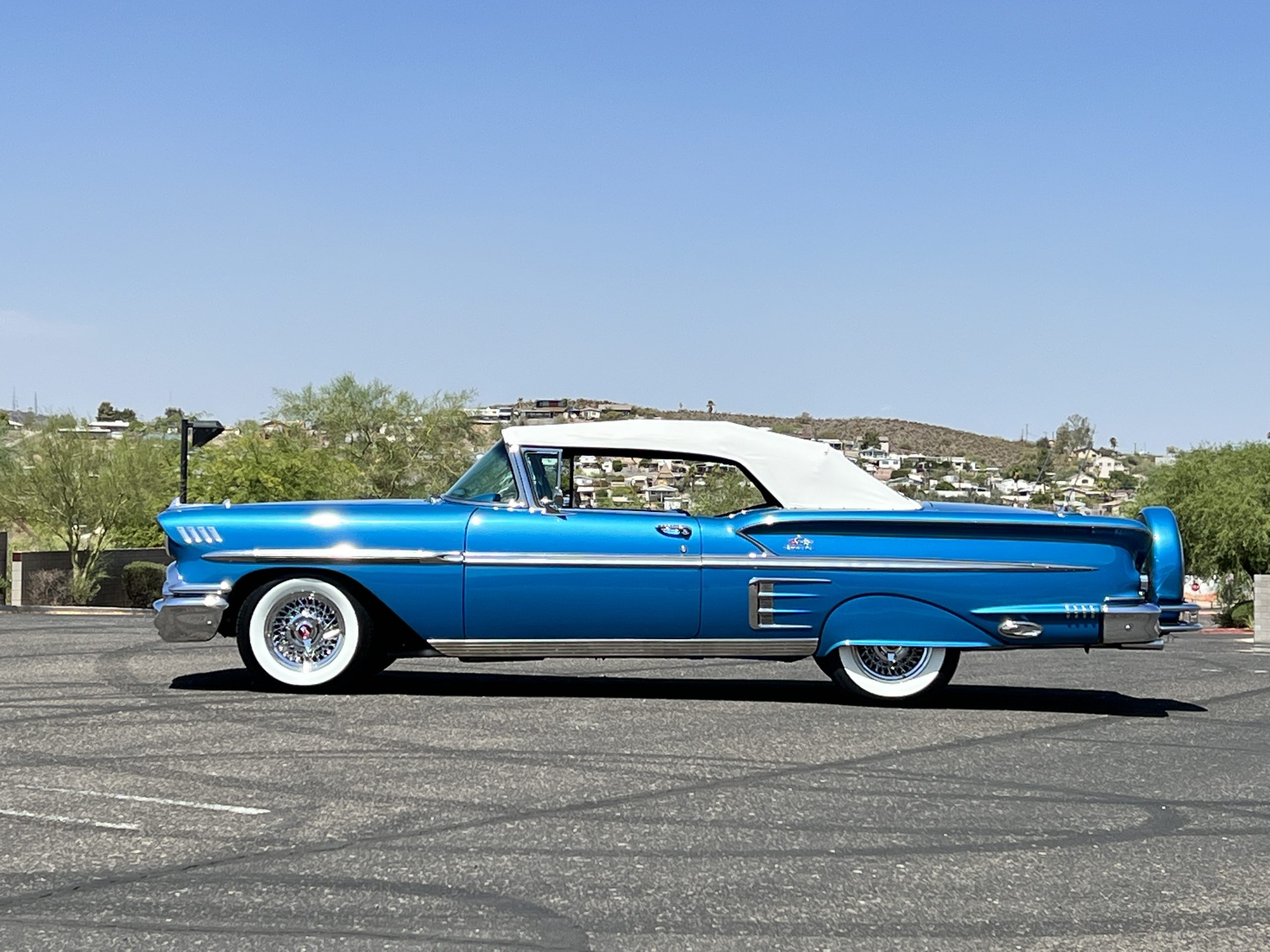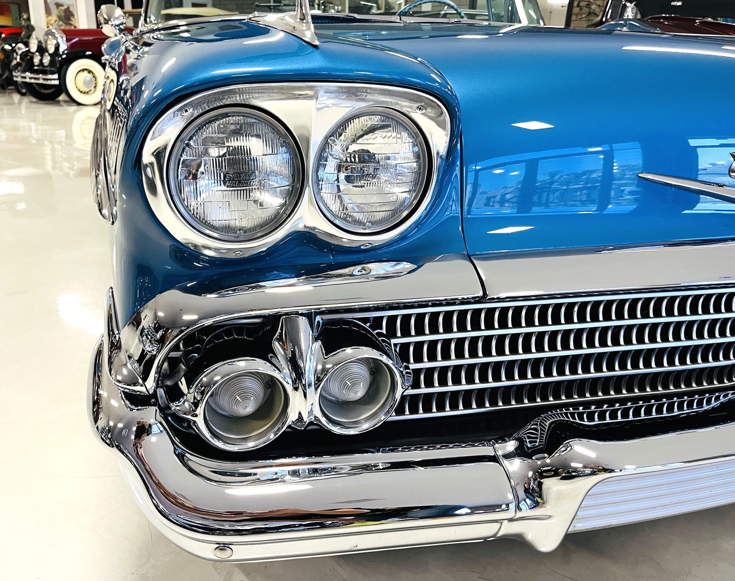 This is a beautiful concours quality example of a 1958 Chevrolet Bel Air Impala Convertible. This stunning Impala underwent a full restoration by a previous owner and stills shows in excellent condition today. Everything was painstakingly restored to as-new. This is an Impala that has nearly every desirable option including its date code correct (“numbers matching”) Big Block 348 CID V8, air conditioning, all power accessories, and the continental kit.