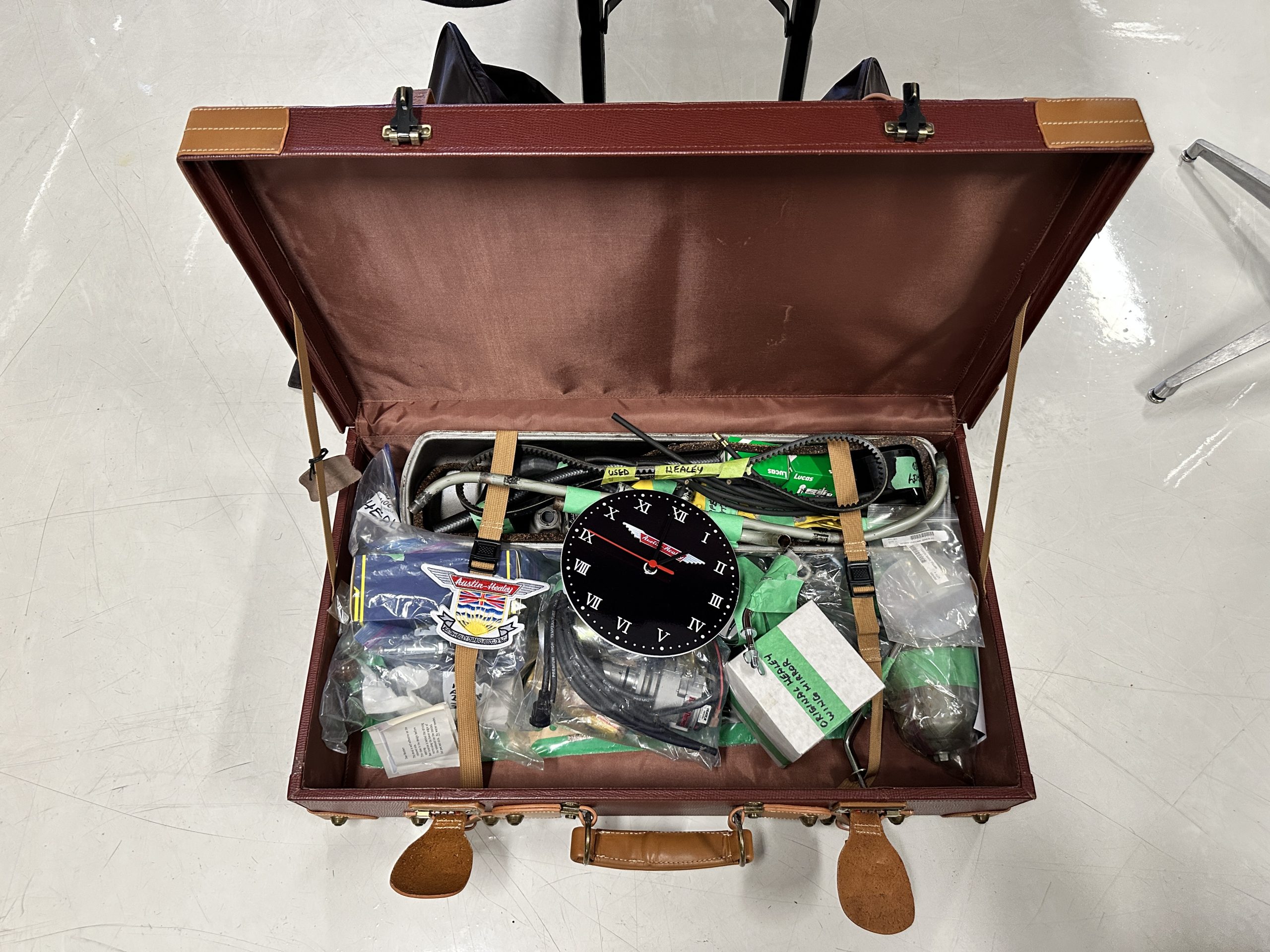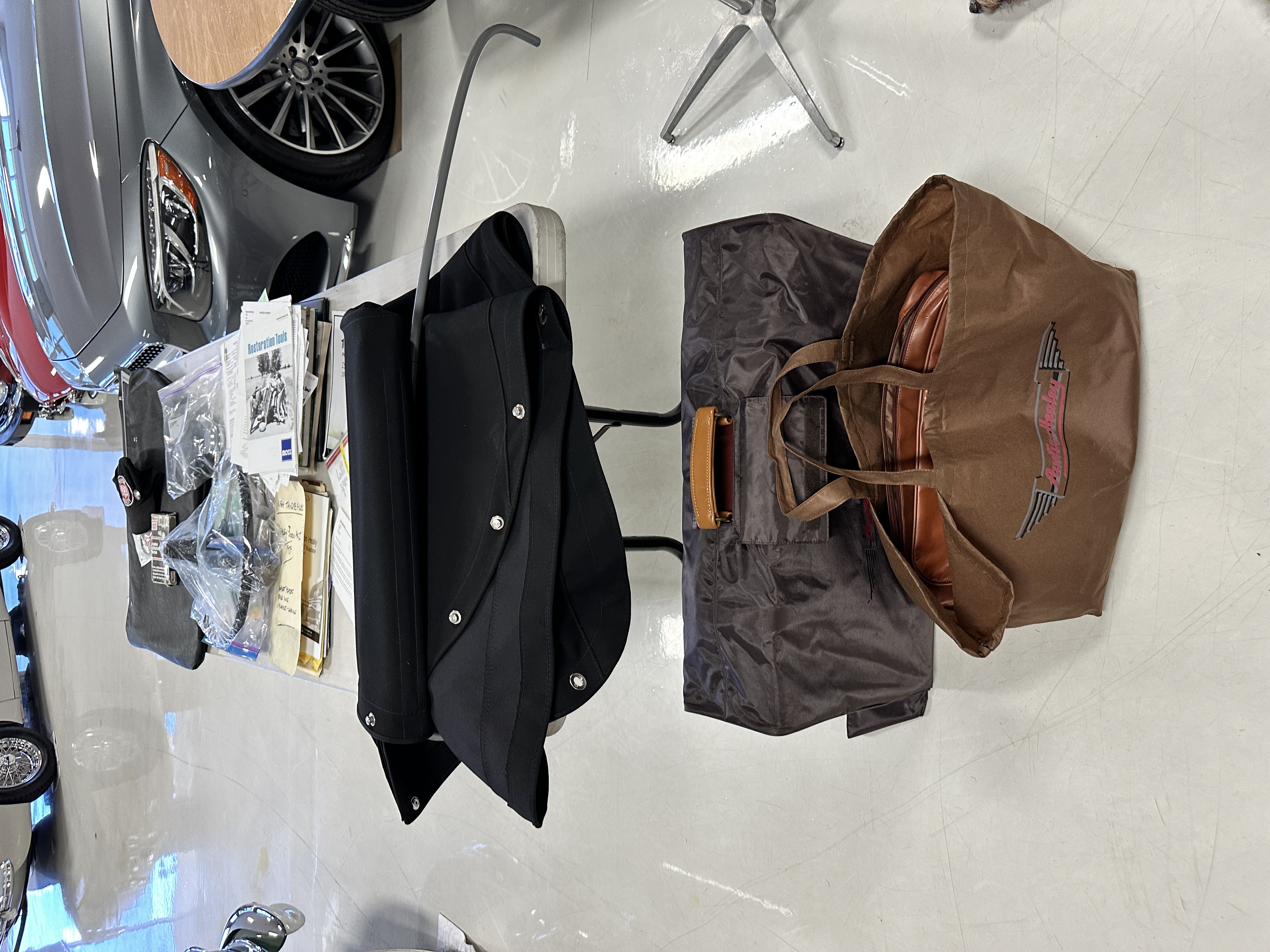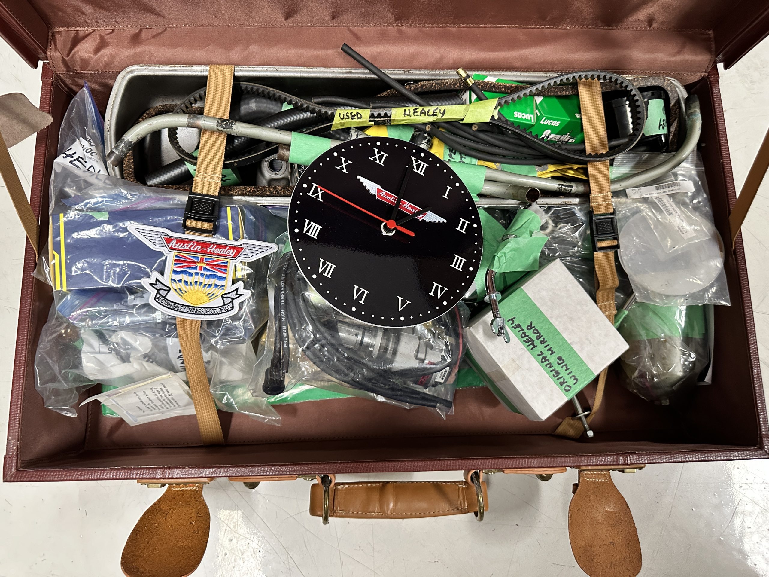 Included in the sale are the side curtains, tonneau cover and the huge collection of extra parts, spares, Austin-Healey branded leather luggage and so much more!!