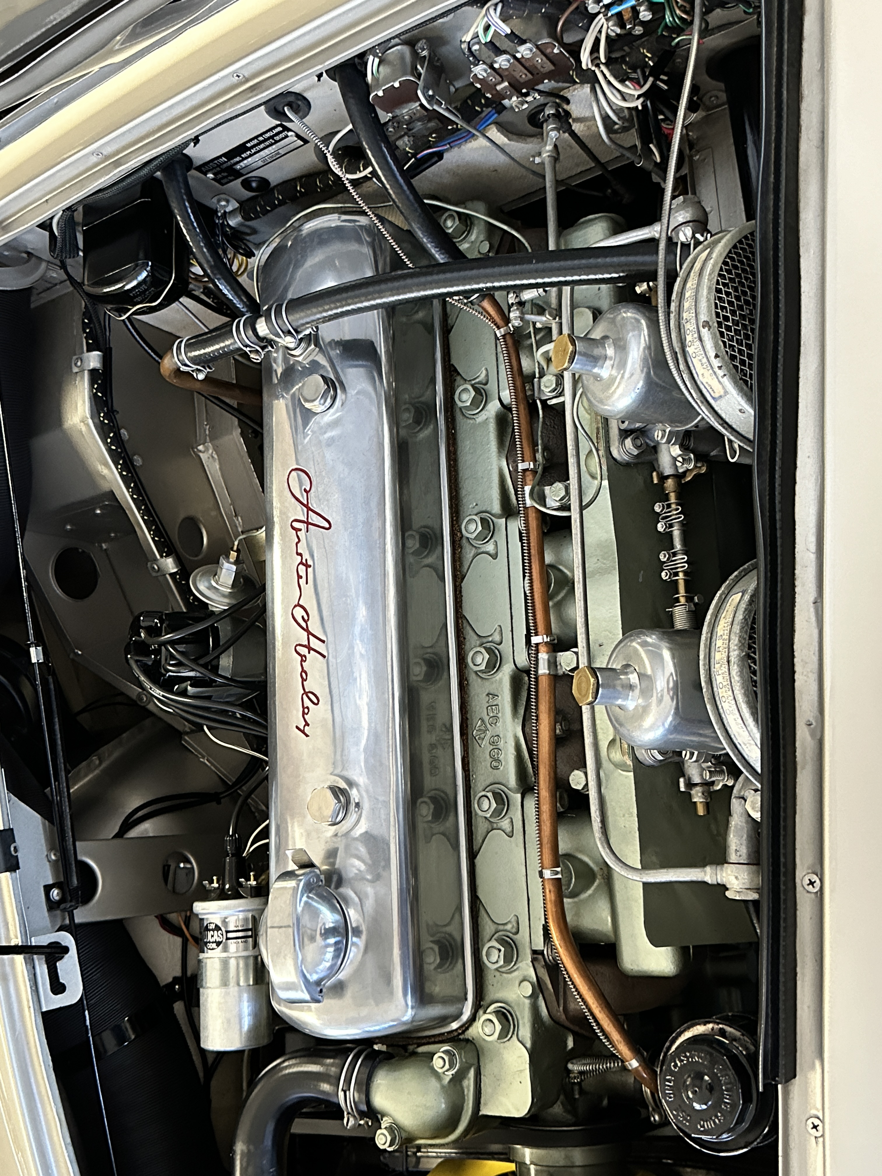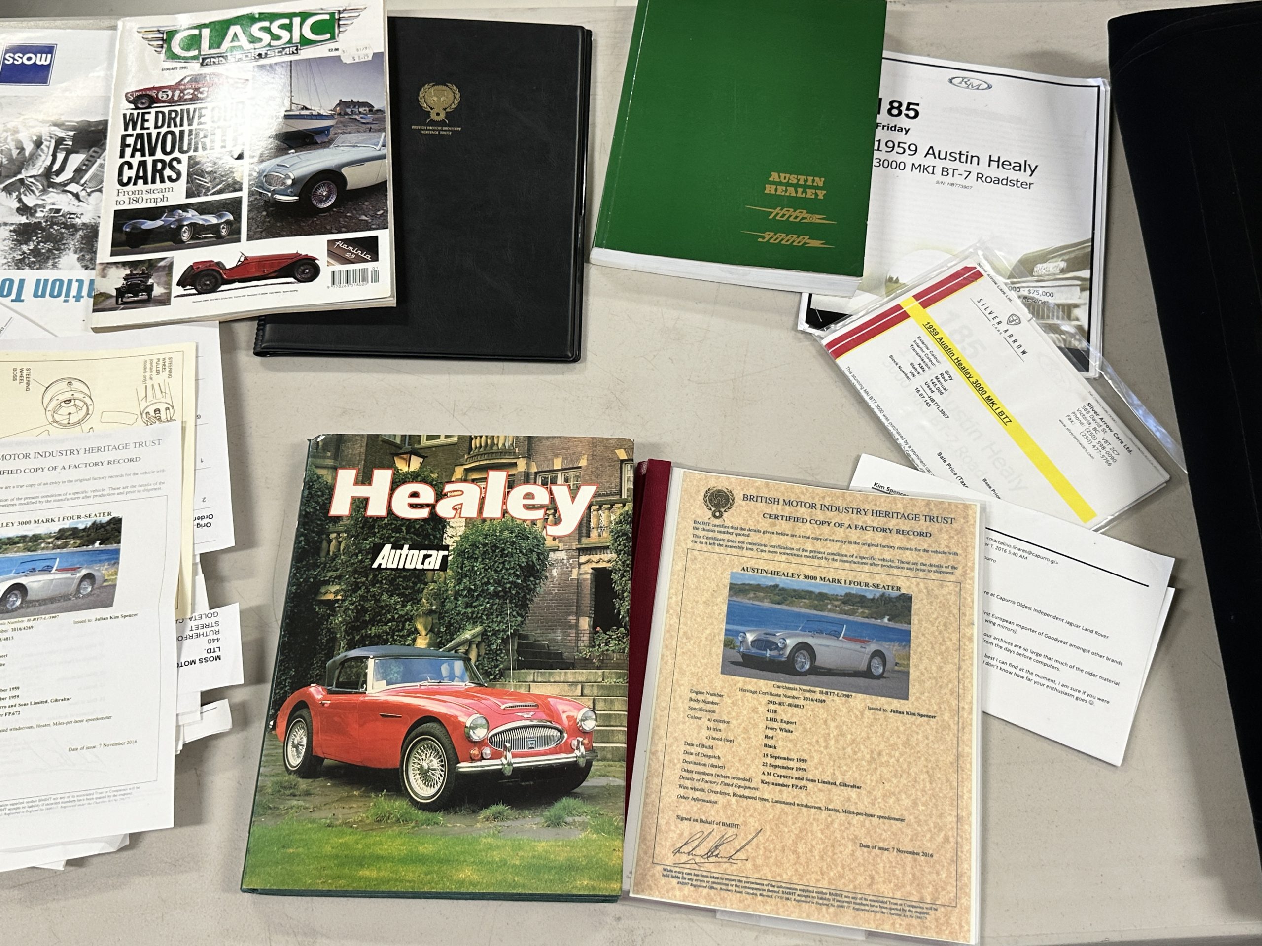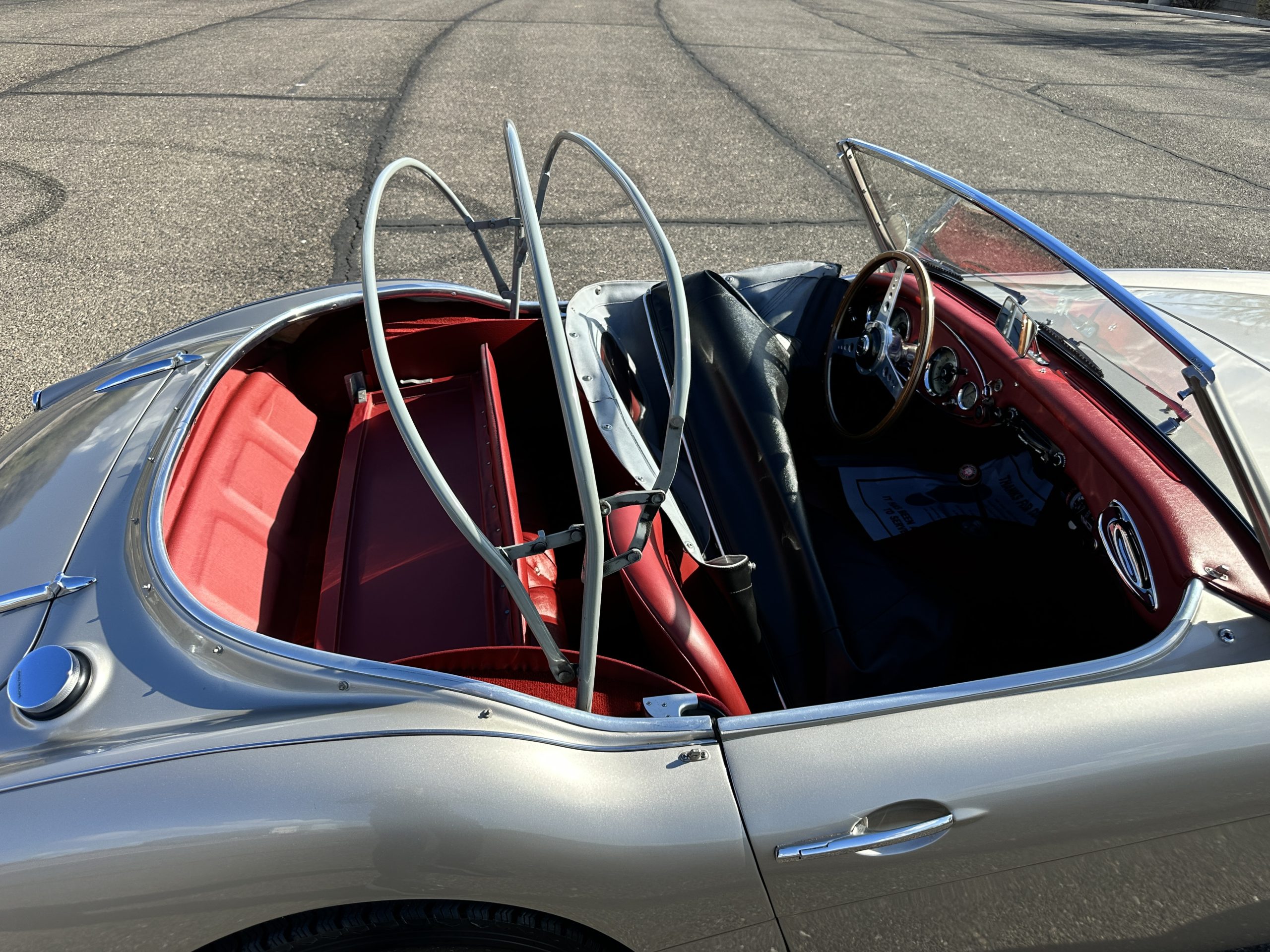 Included in the sale are the side curtains, tonneau cover and the huge collection of extra parts, spares, Austin-Healey branded leather luggage and so much more!!